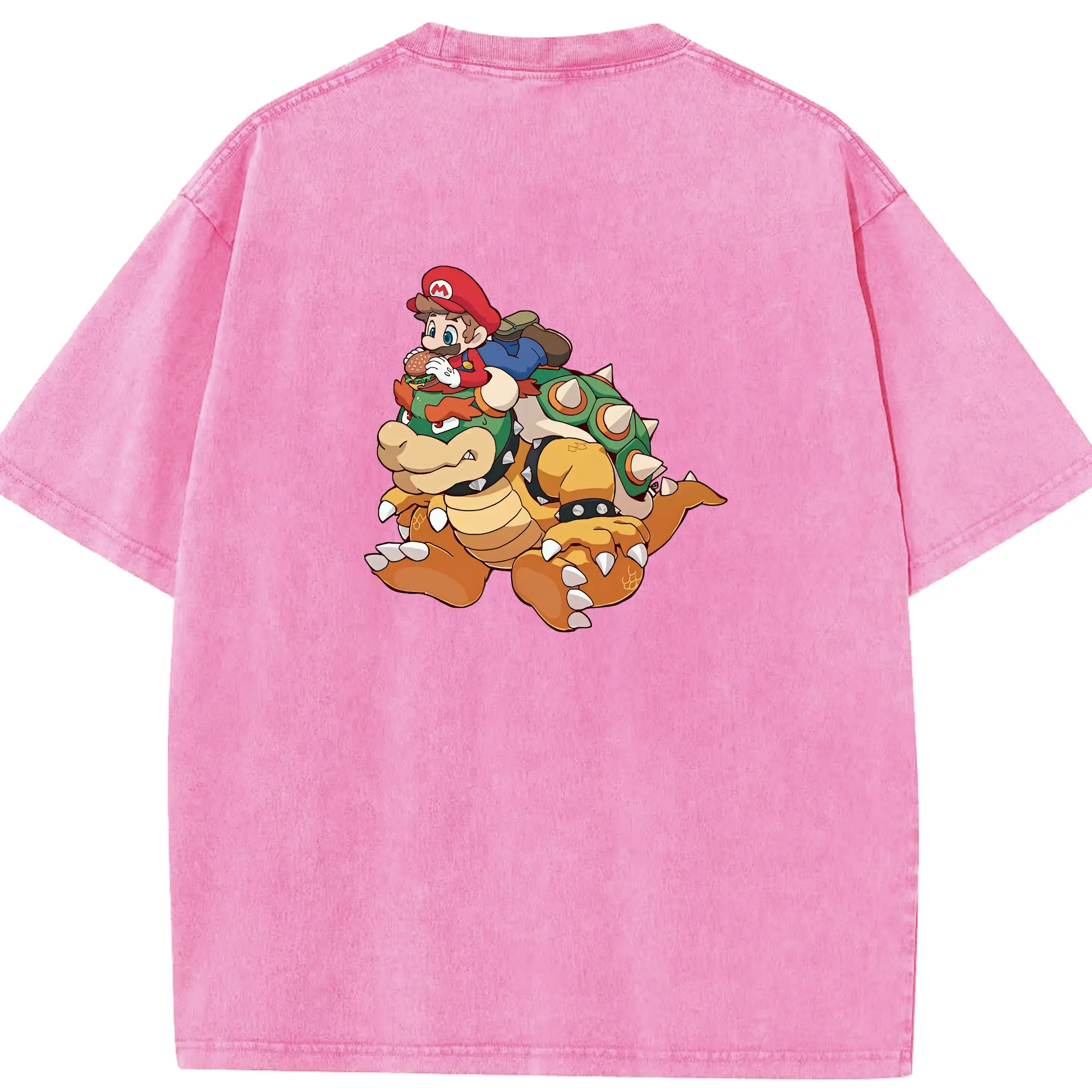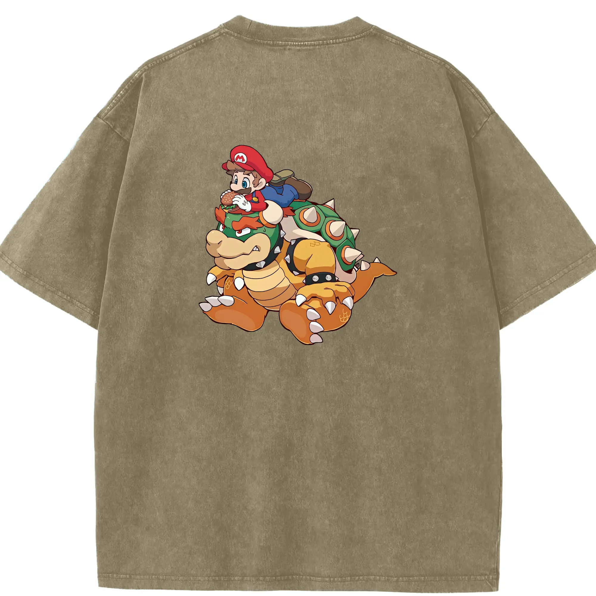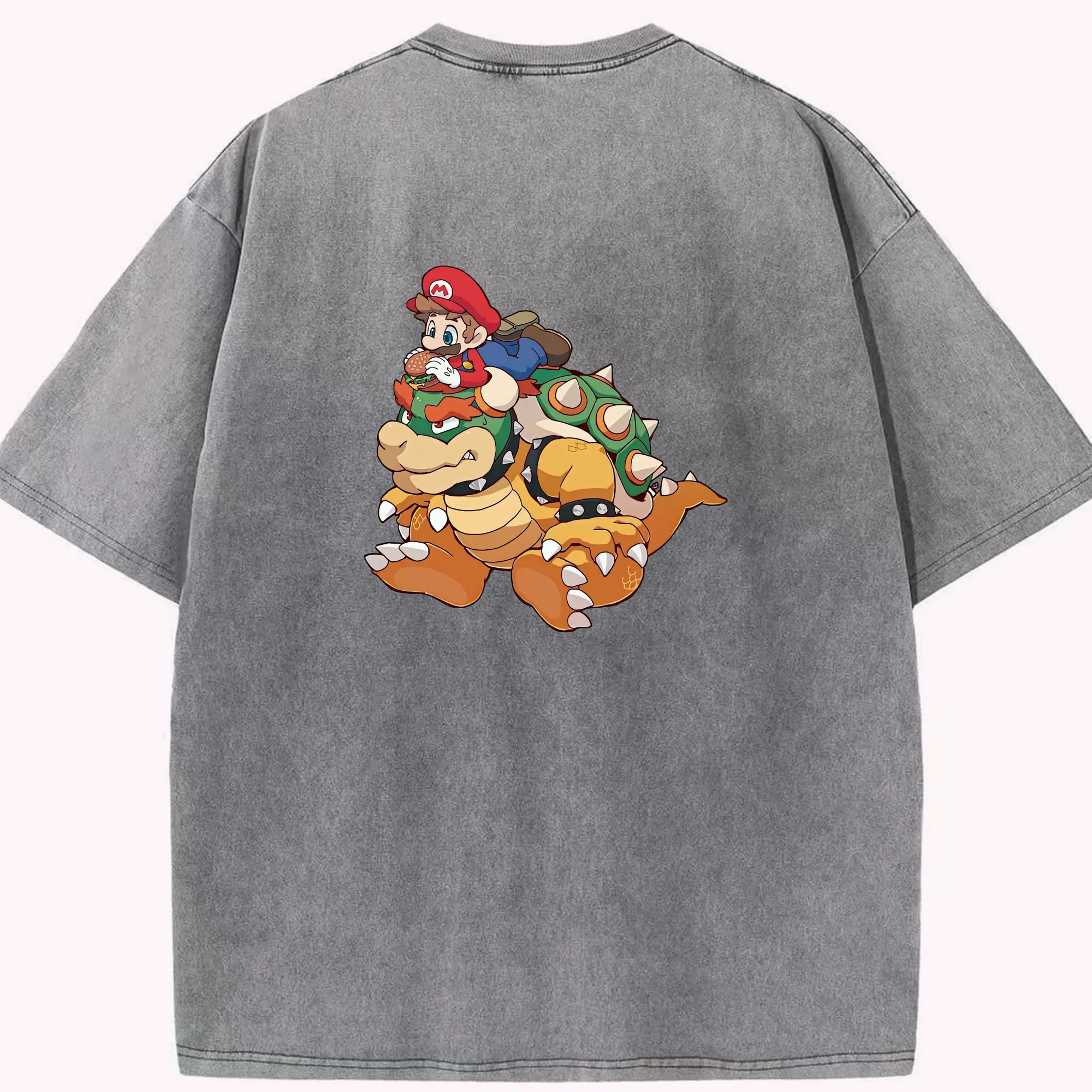 マリオ グッズ クッパ - 綿100% ヴィンテージ風 半袖Tシャツ ・ フロントプリント ・ 柔らか肌触り ・ 通気性 快適 ・ スポーツ カジュアル 外出用