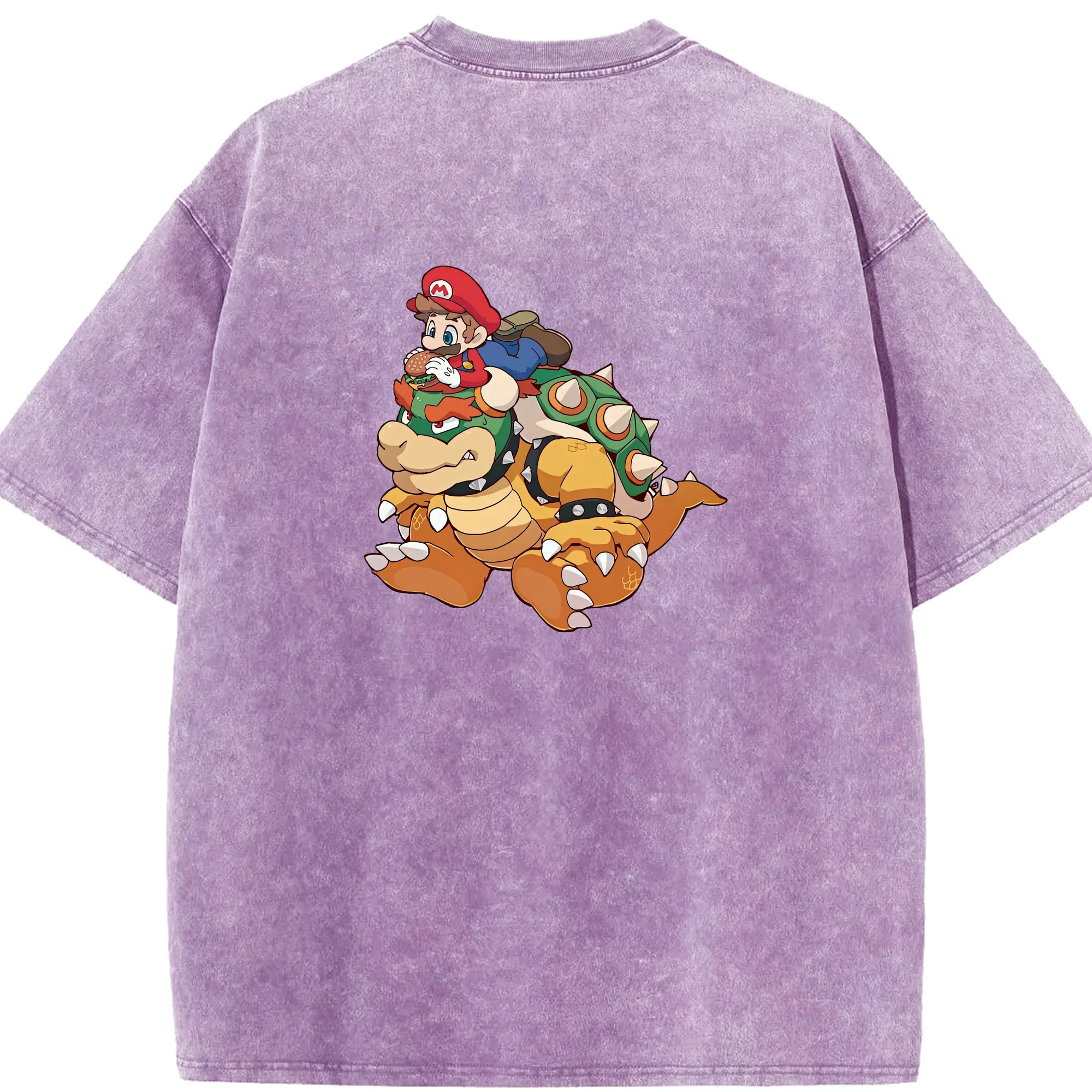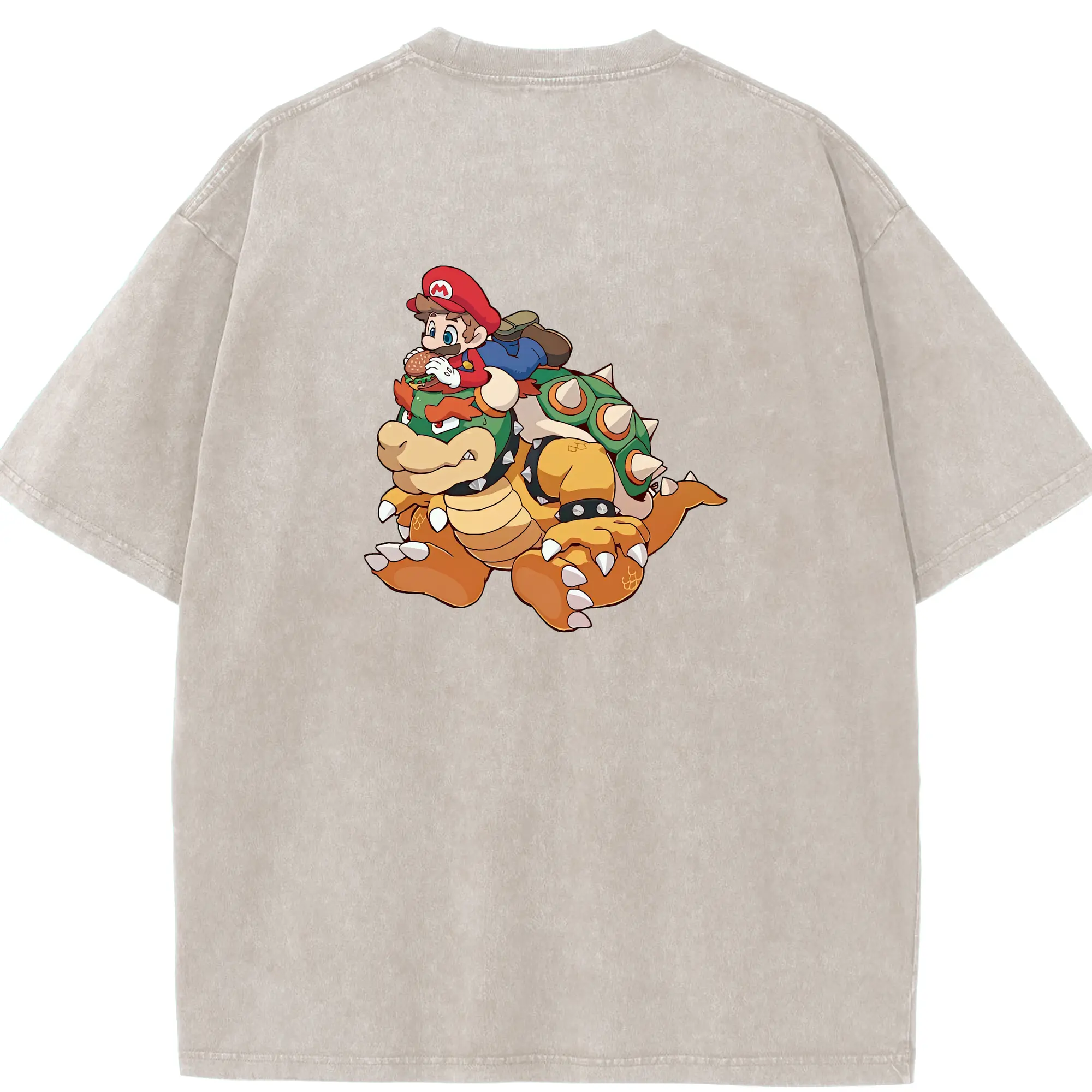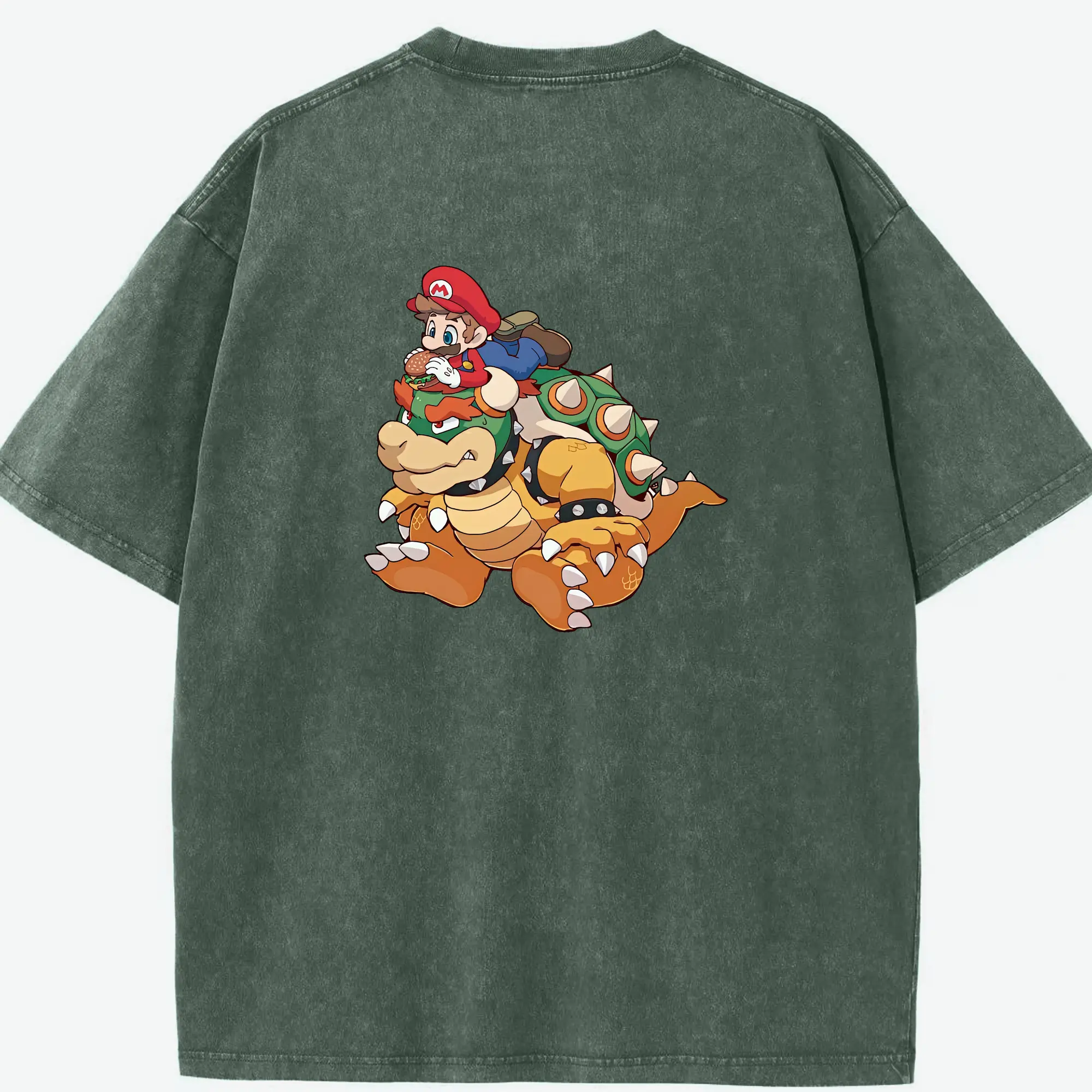 マリオ グッズ クッパ - 綿100% ヴィンテージ風 半袖Tシャツ ・ フロントプリント ・ 柔らか肌触り ・ 通気性 快適 ・ スポーツ カジュアル 外出用