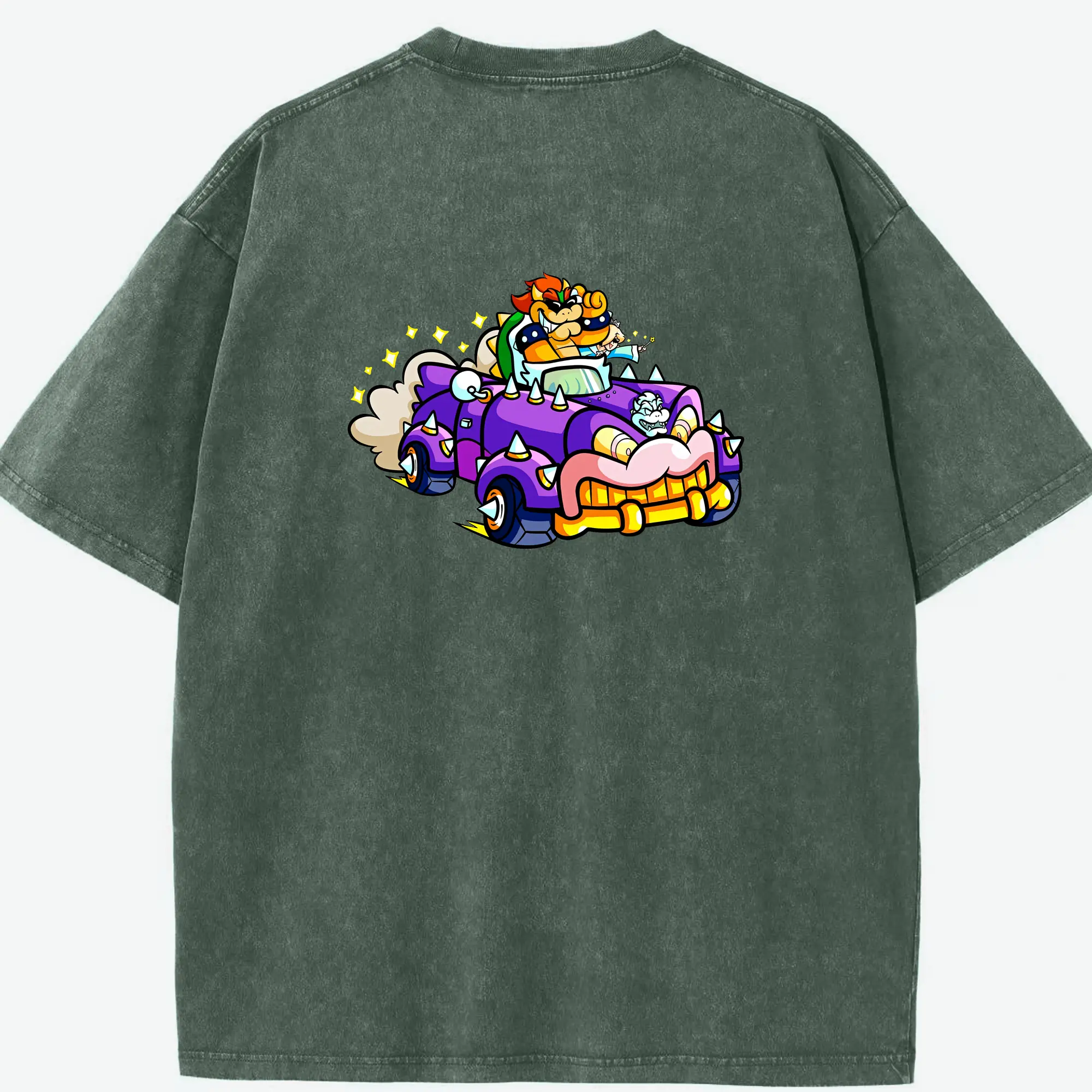 マリオ グッズ クッパ - 綿100% ヴィンテージ風 半袖Tシャツ ・ フロントプリント ・ 柔らか肌触り ・ 通気性 快適 ・ スポーツ カジュアル 外出用