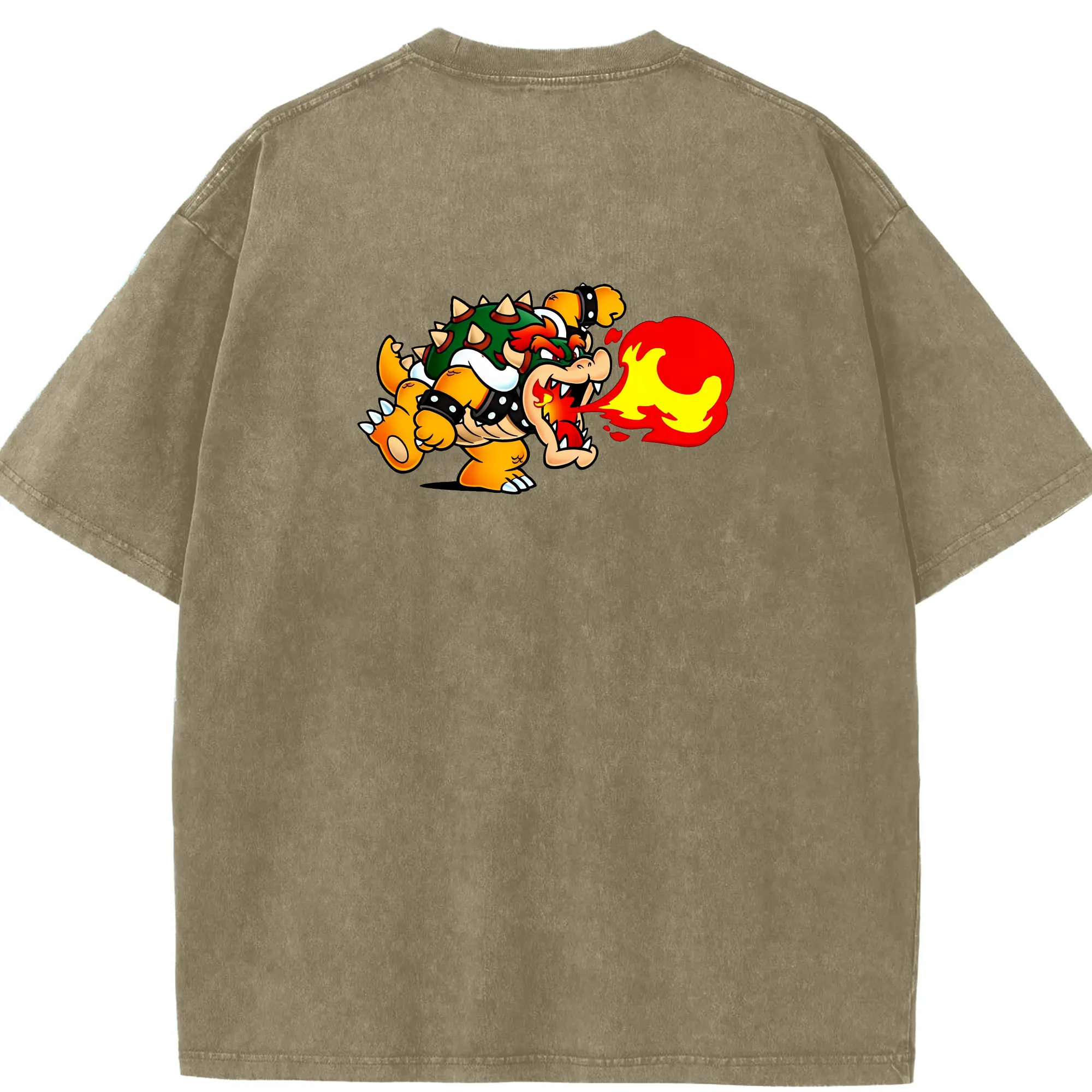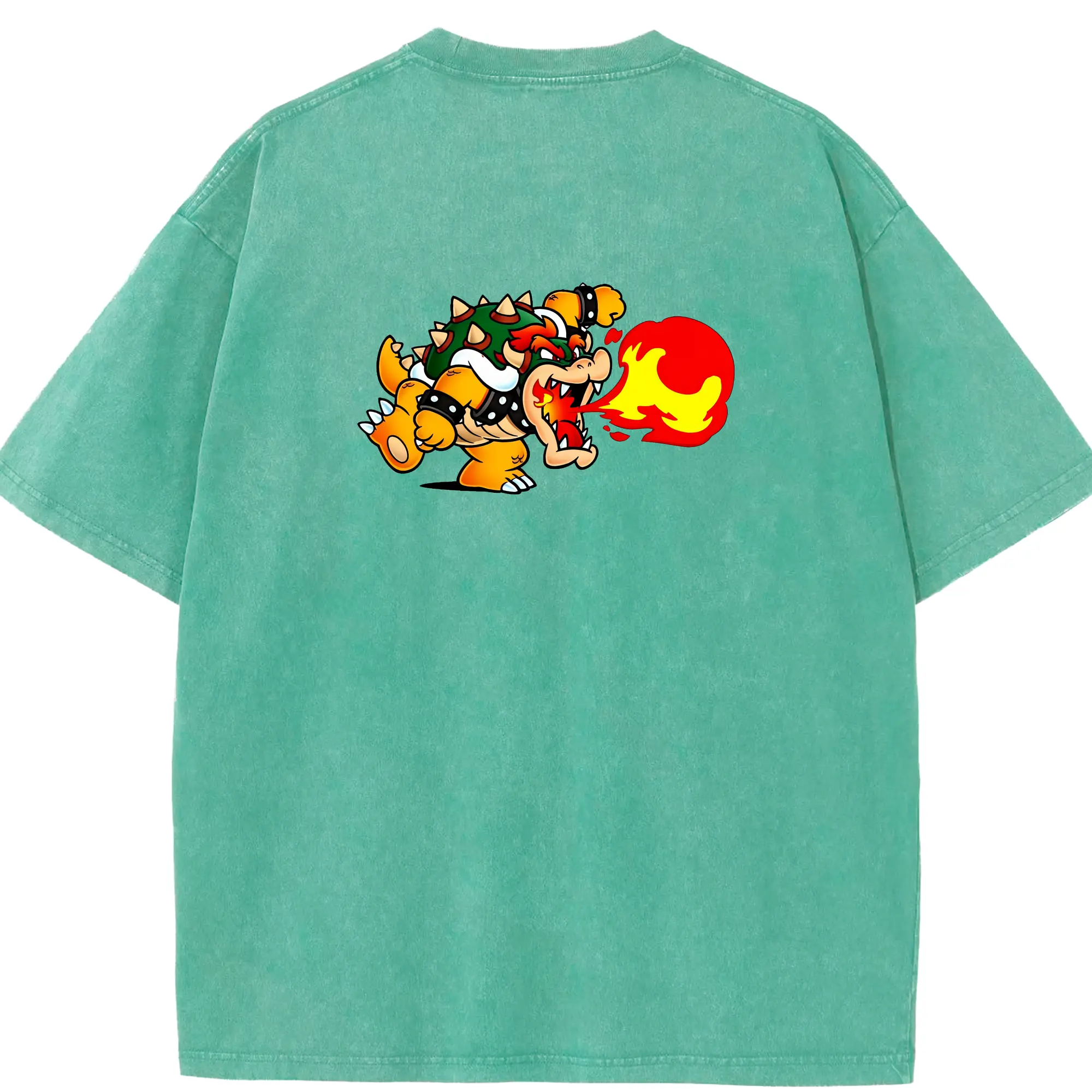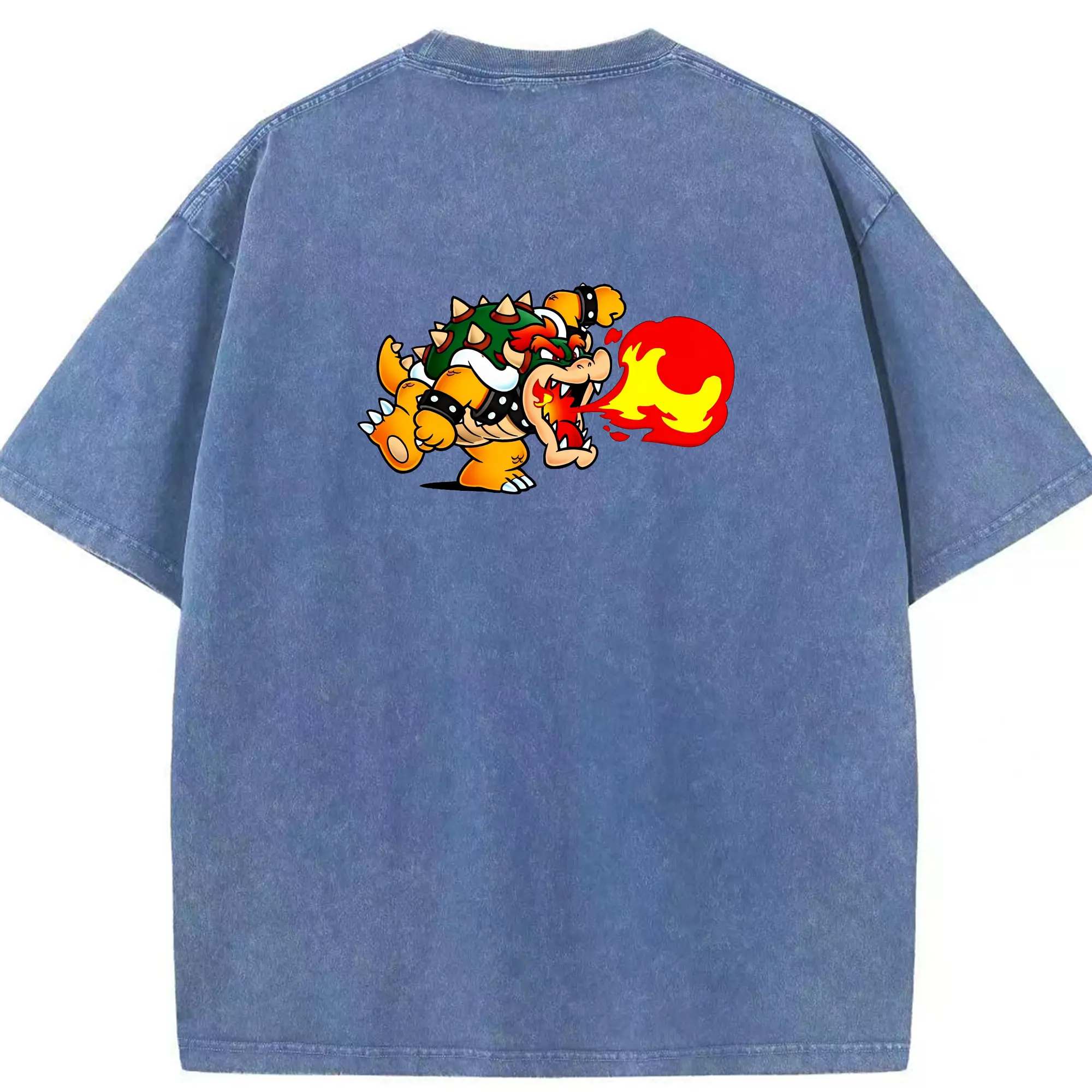 マリオ グッズ クッパ - 綿100% ヴィンテージ風 半袖Tシャツ ・ フロントプリント ・ 柔らか肌触り ・ 通気性 快適 ・ スポーツ カジュアル 外出用