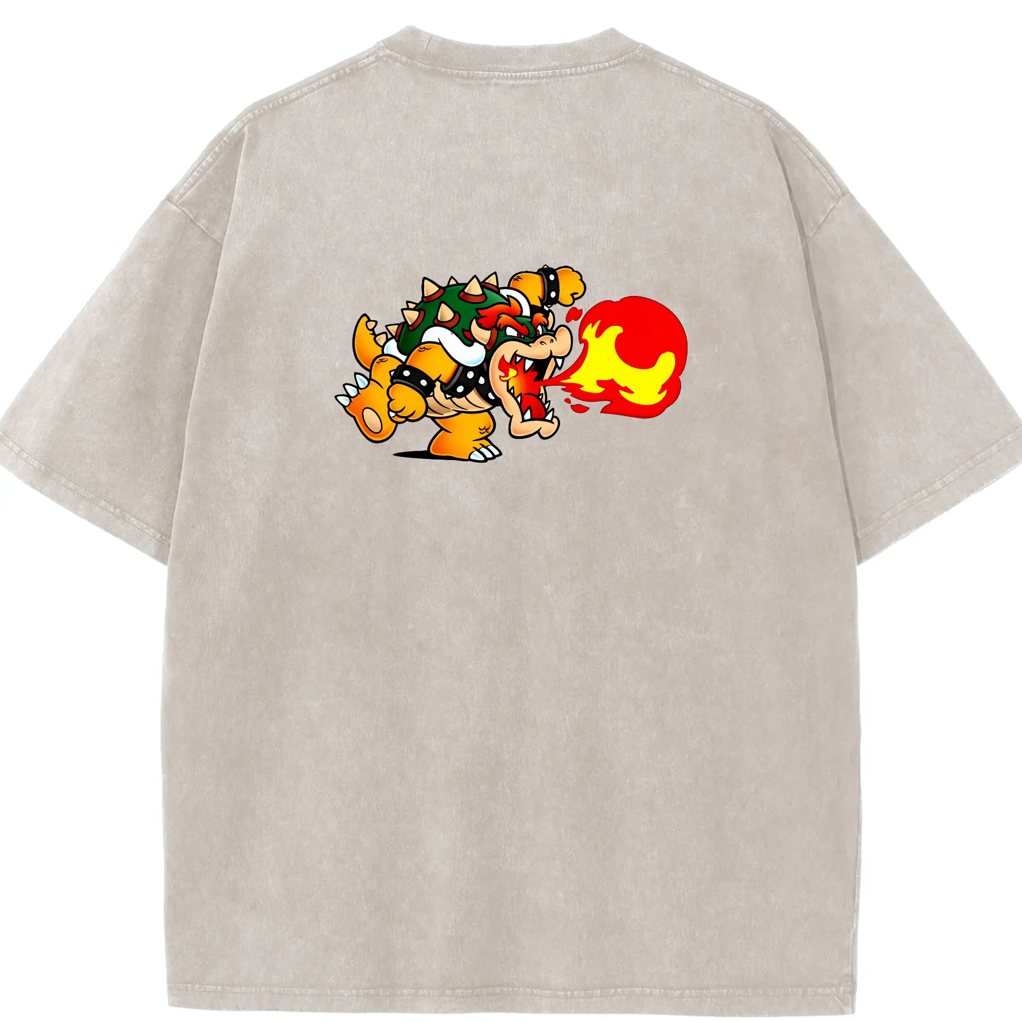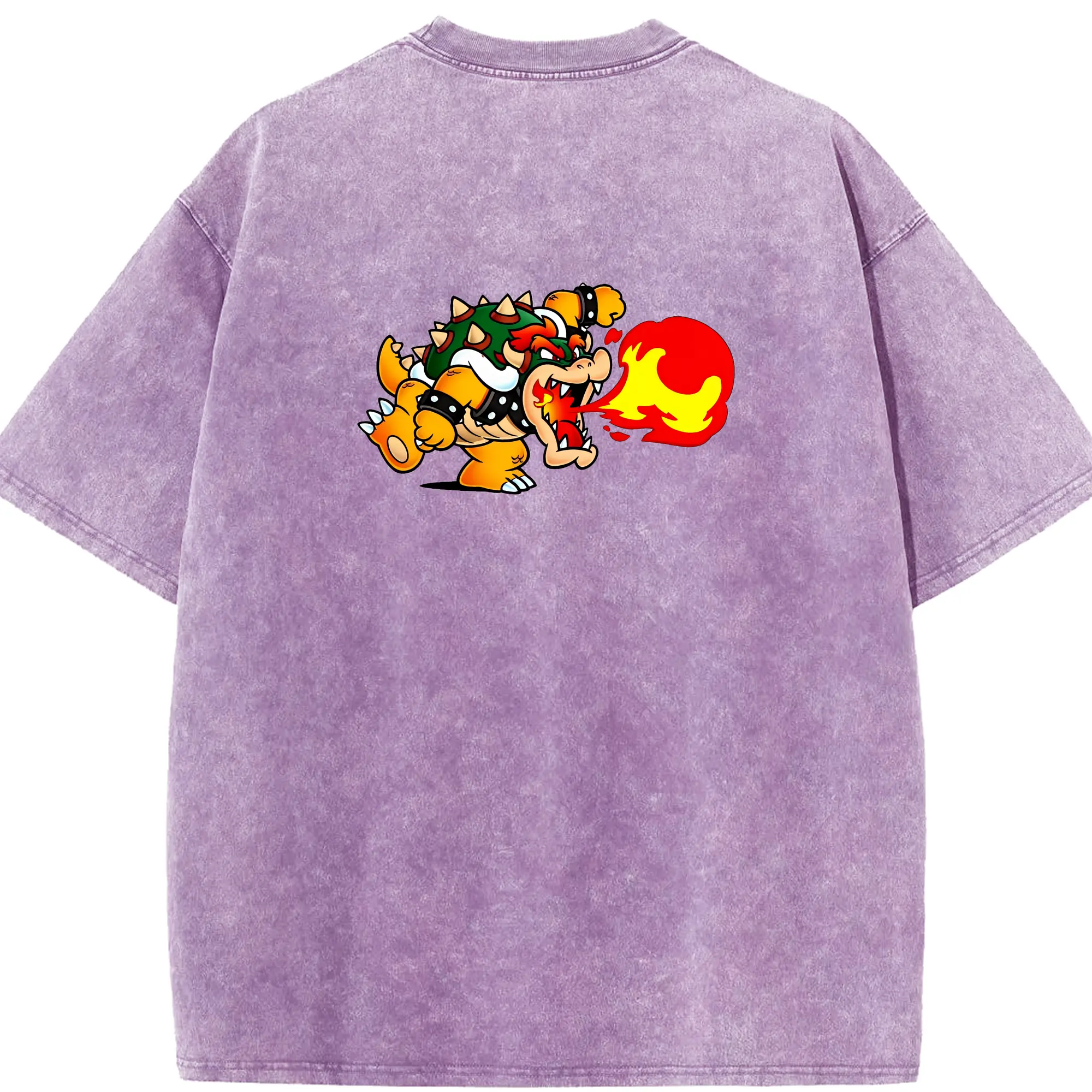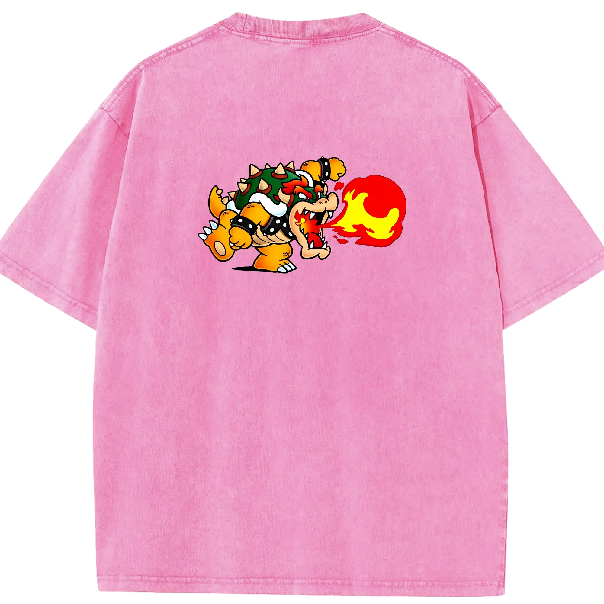 マリオ グッズ クッパ - 綿100% ヴィンテージ風 半袖Tシャツ ・ フロントプリント ・ 柔らか肌触り ・ 通気性 快適 ・ スポーツ カジュアル 外出用