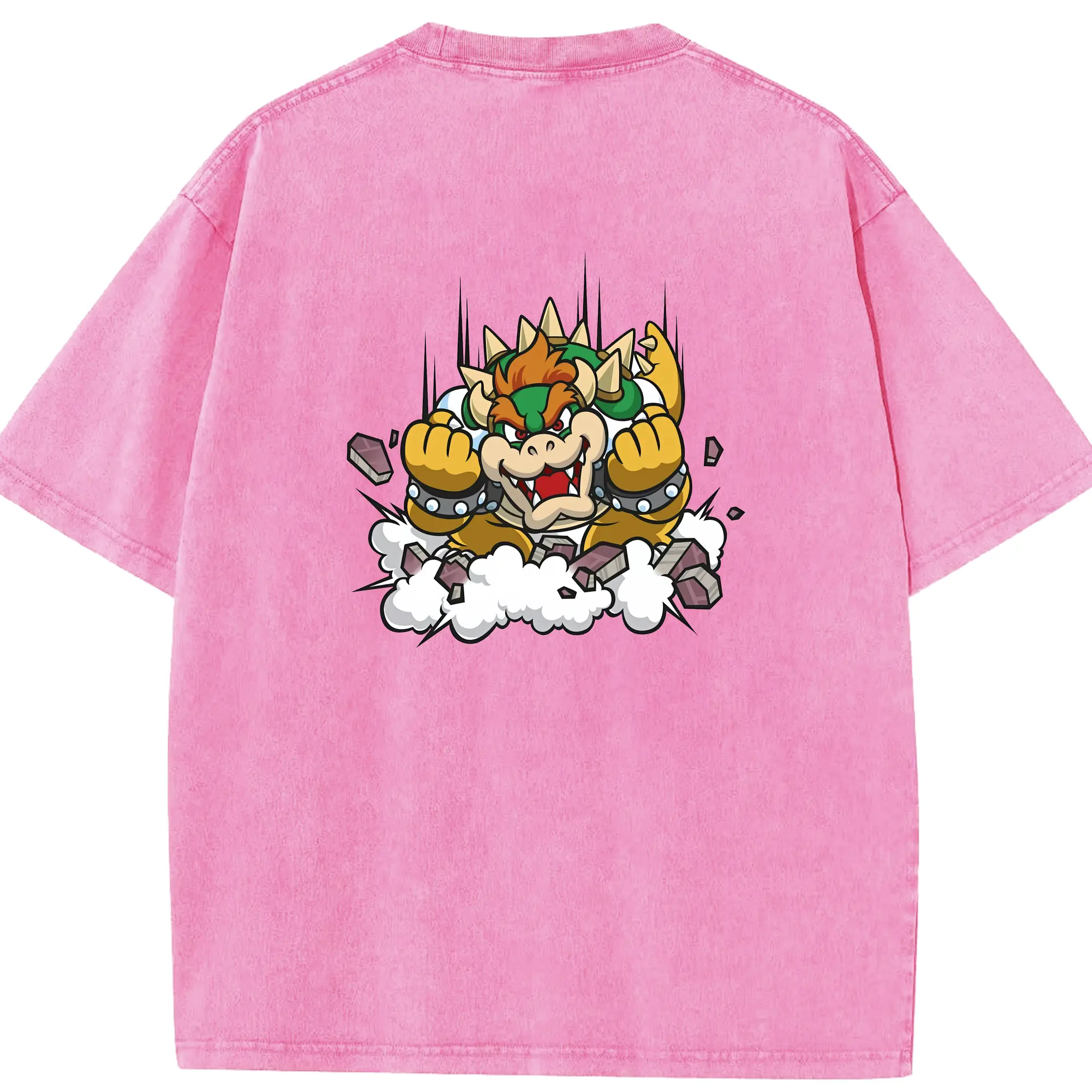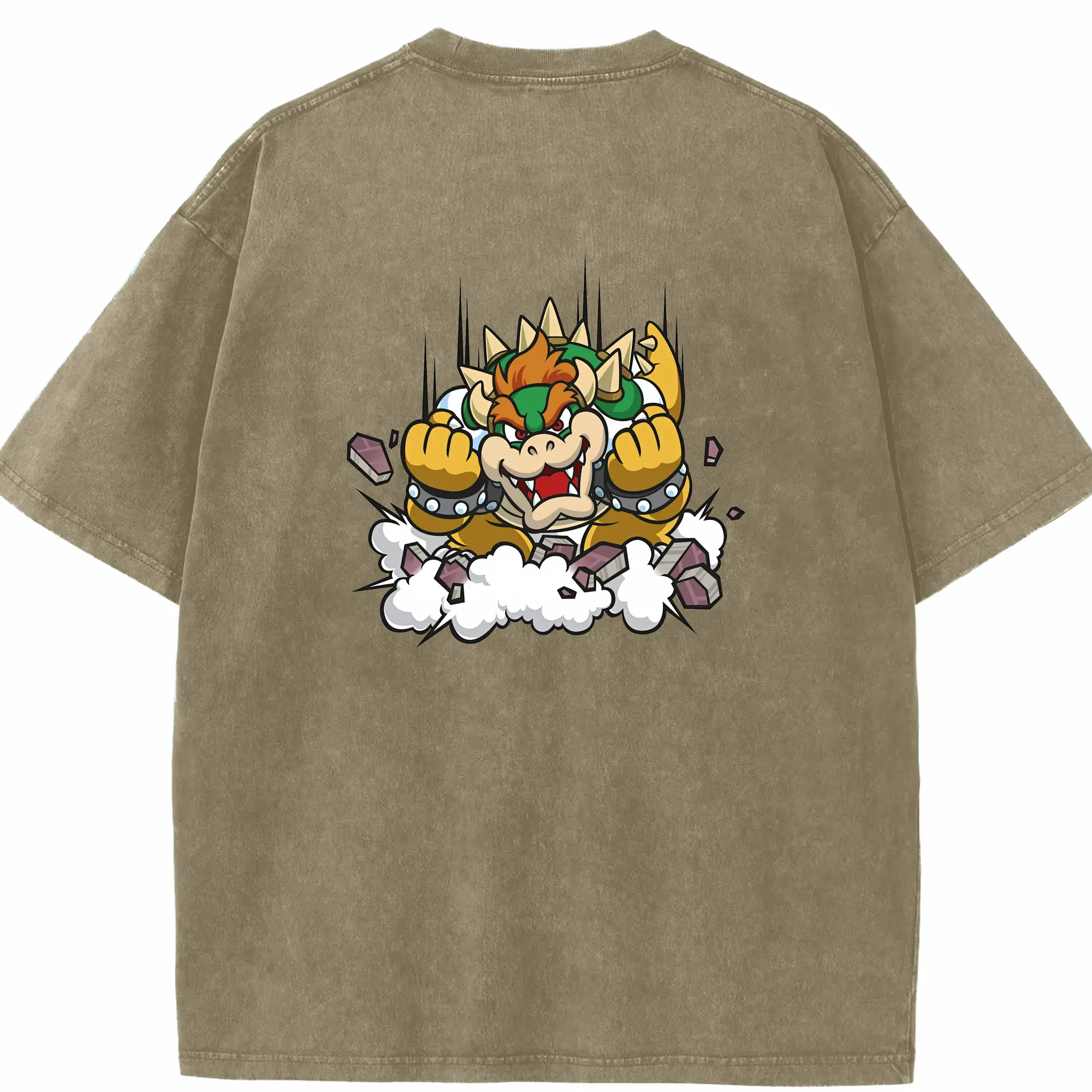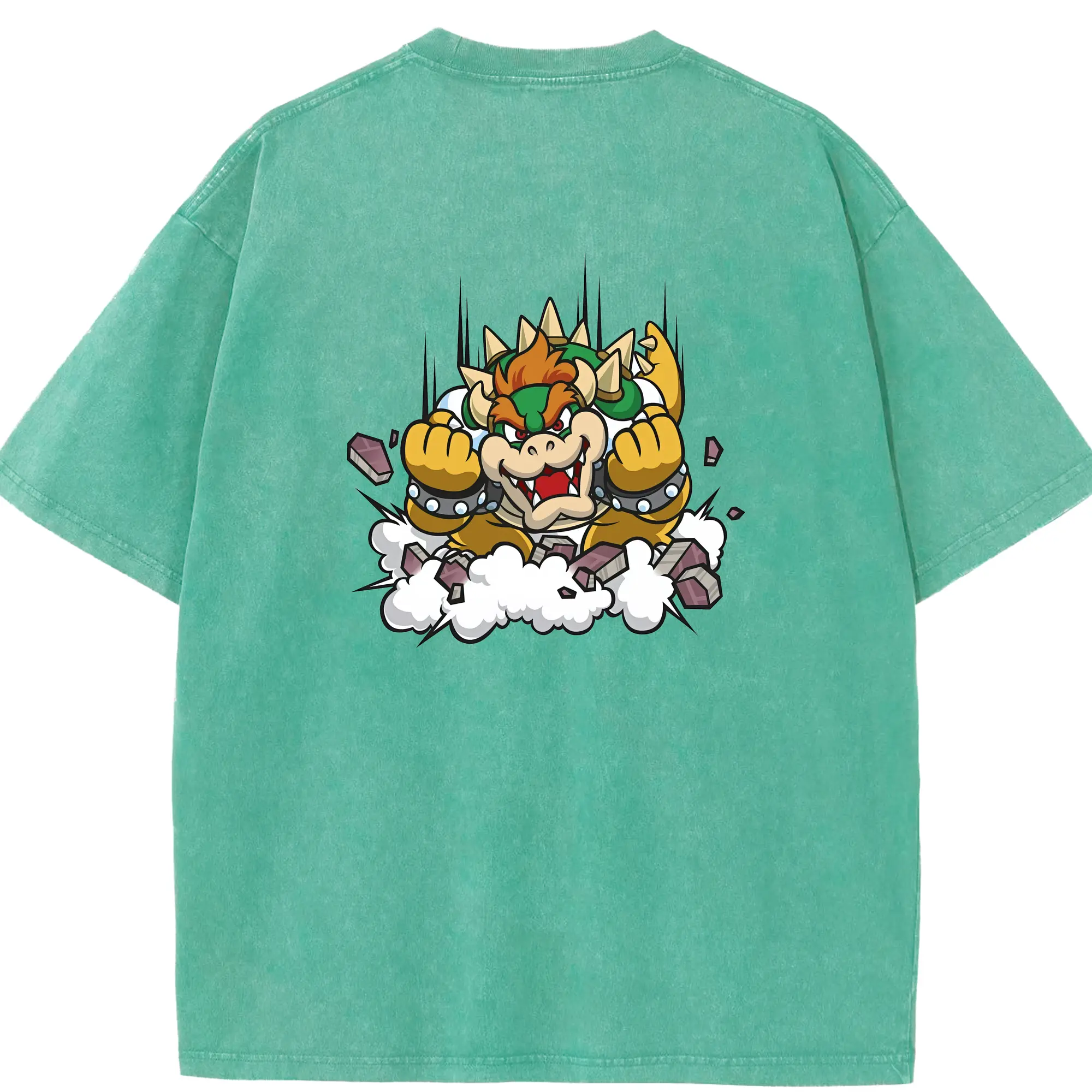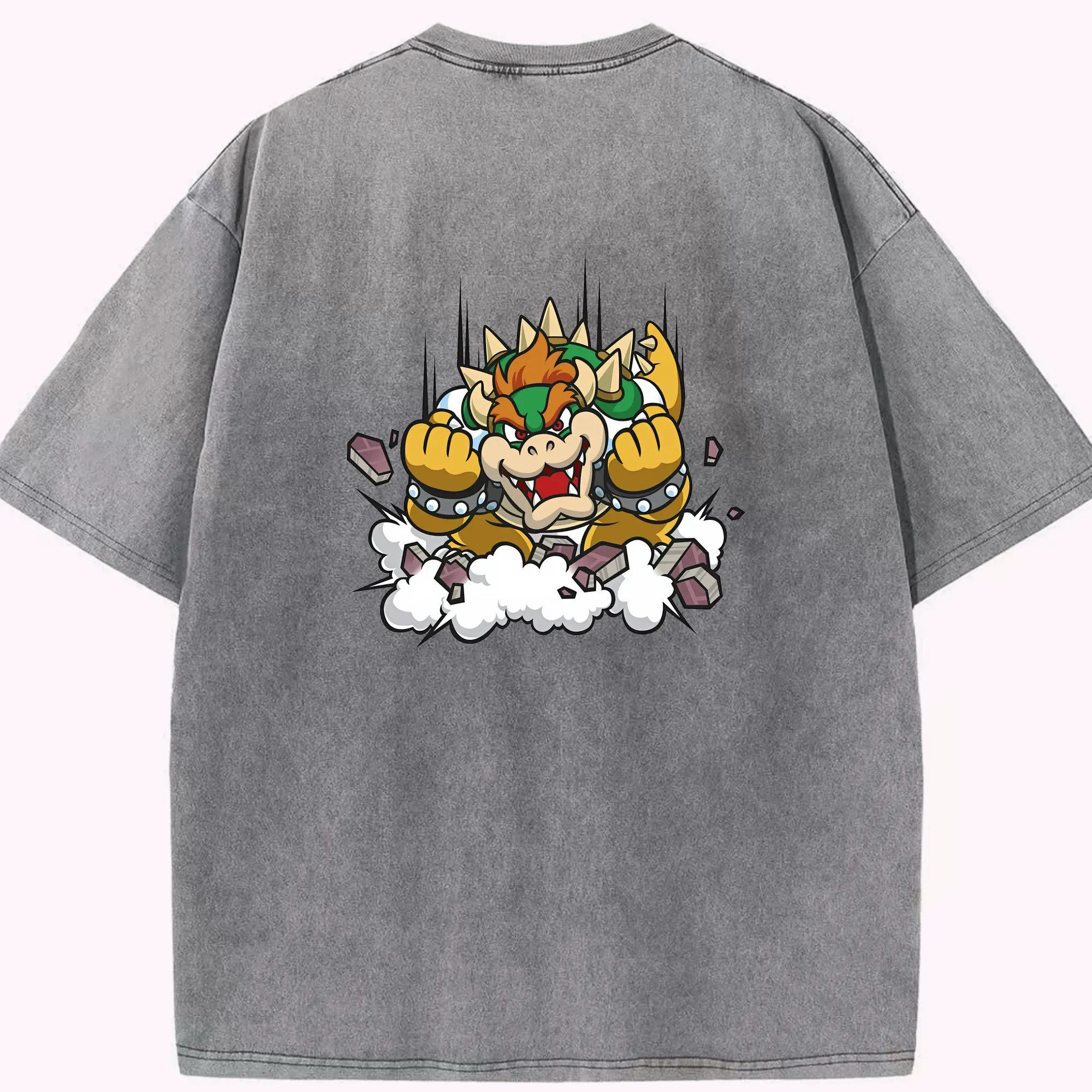 マリオ グッズ クッパ - 綿100% ヴィンテージ風 半袖Tシャツ ・ フロントプリント ・ 柔らか肌触り ・ 通気性 快適 ・ スポーツ カジュアル 外出用