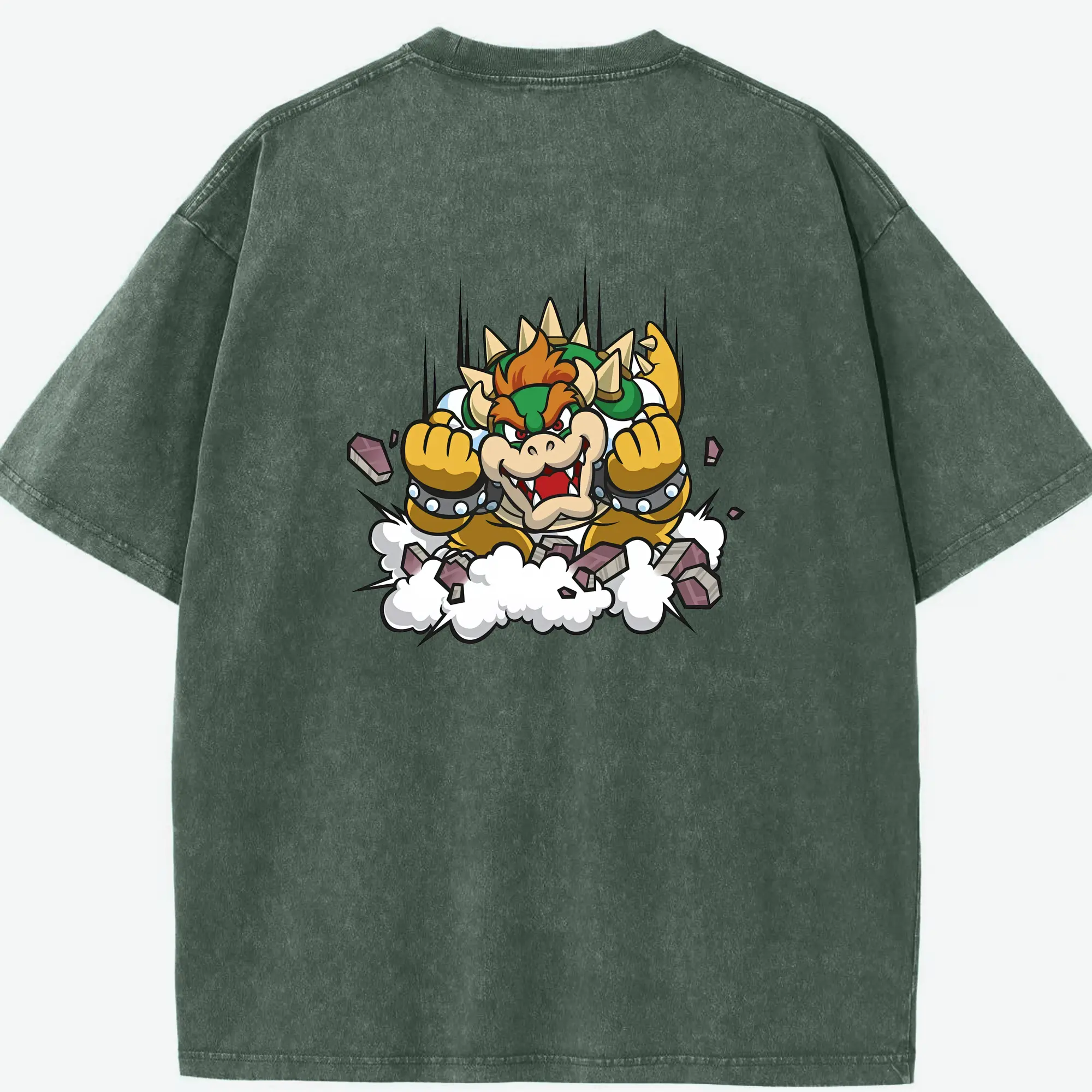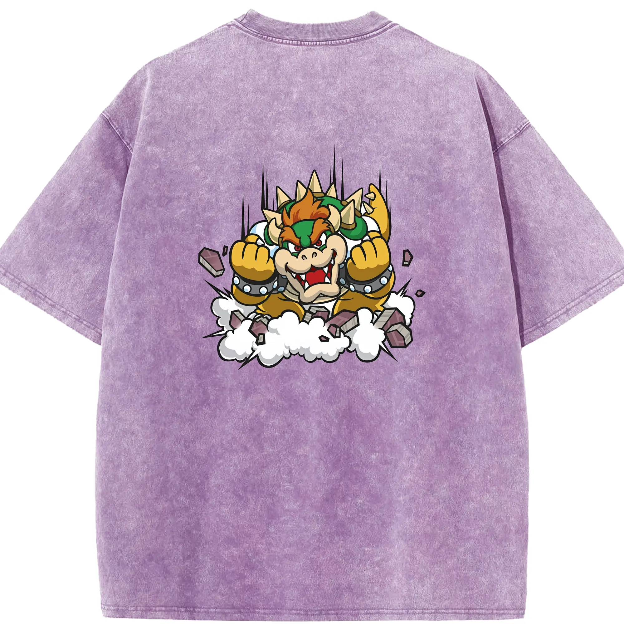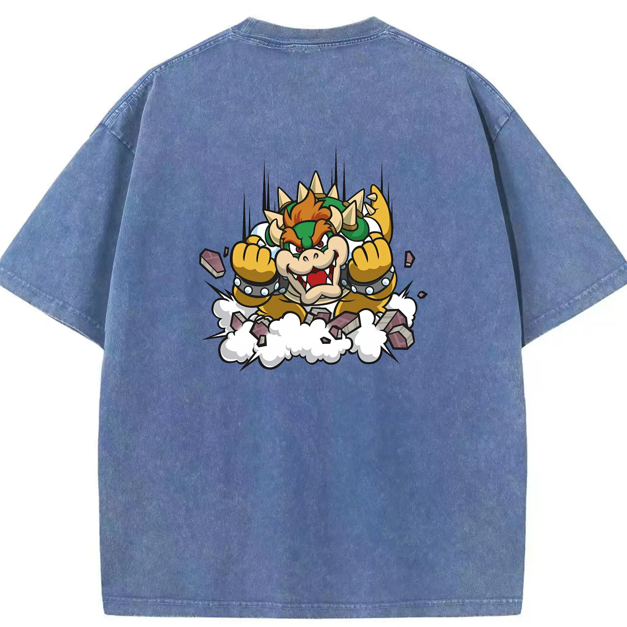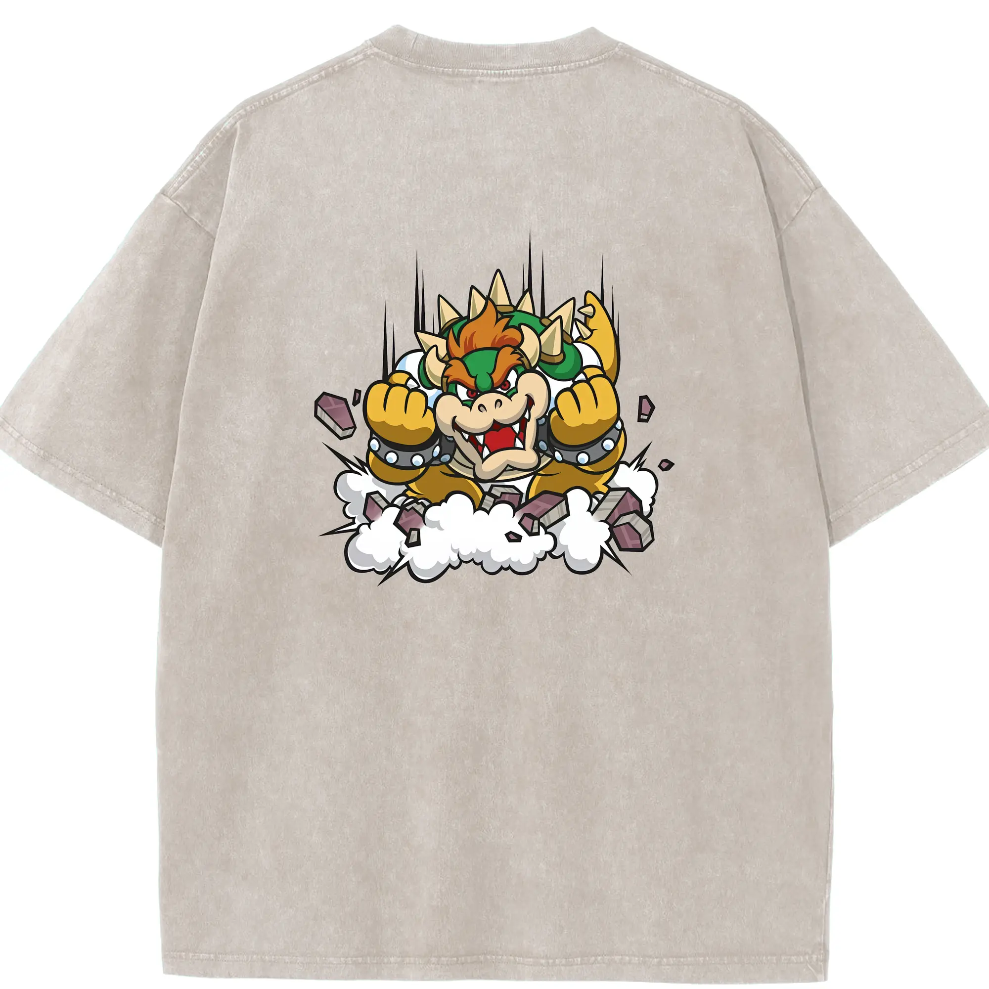 マリオ グッズ クッパ - 綿100% ヴィンテージ風 半袖Tシャツ ・ フロントプリント ・ 柔らか肌触り ・ 通気性 快適 ・ スポーツ カジュアル 外出用