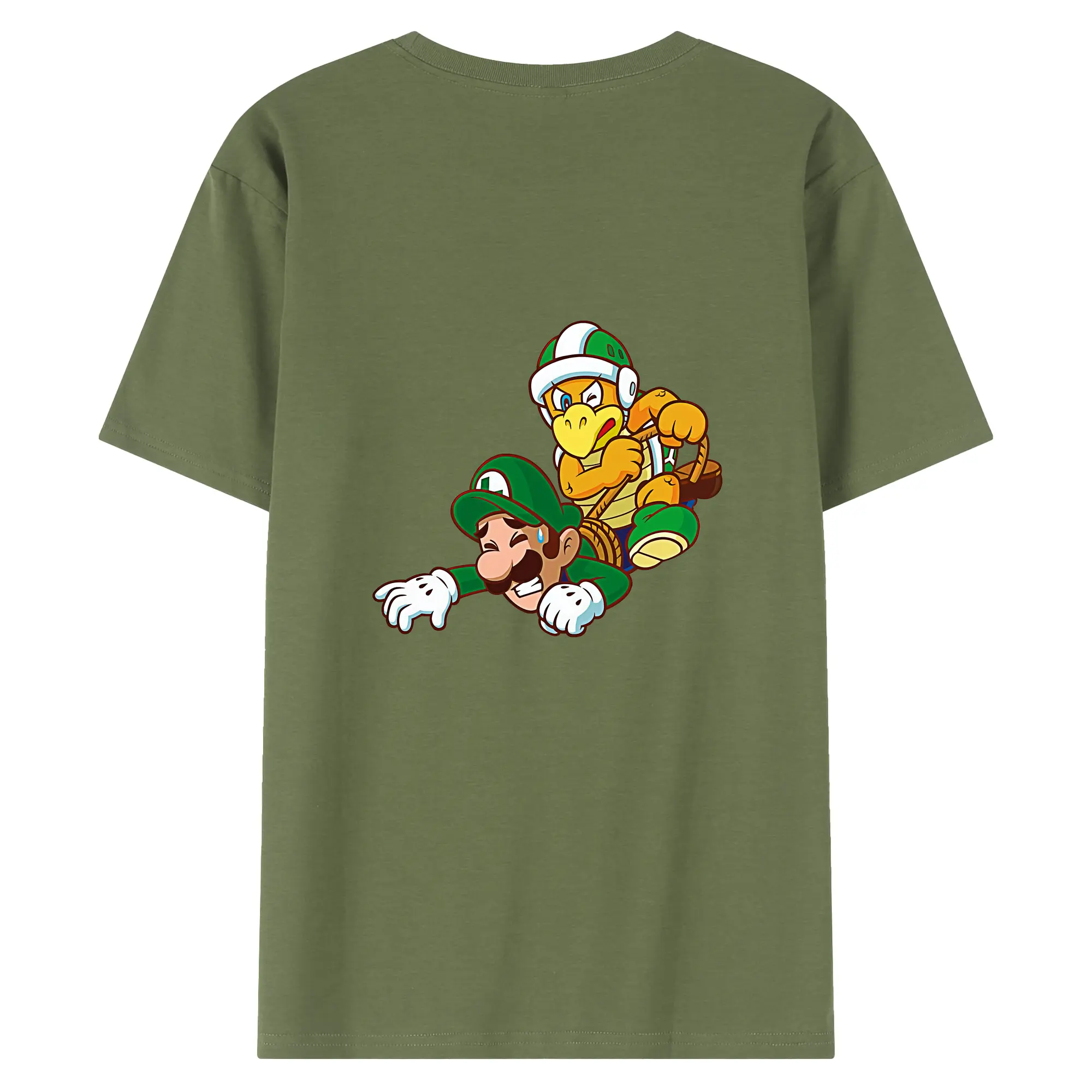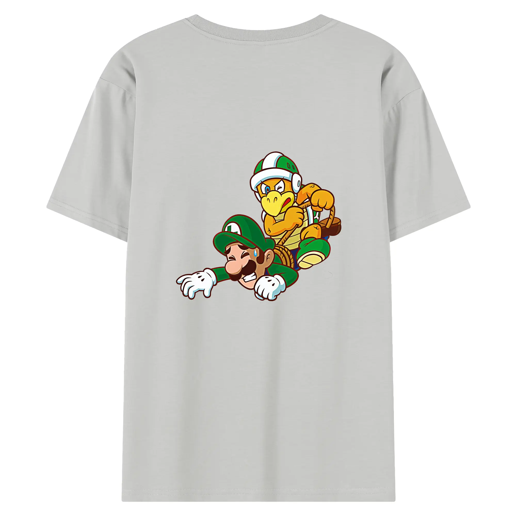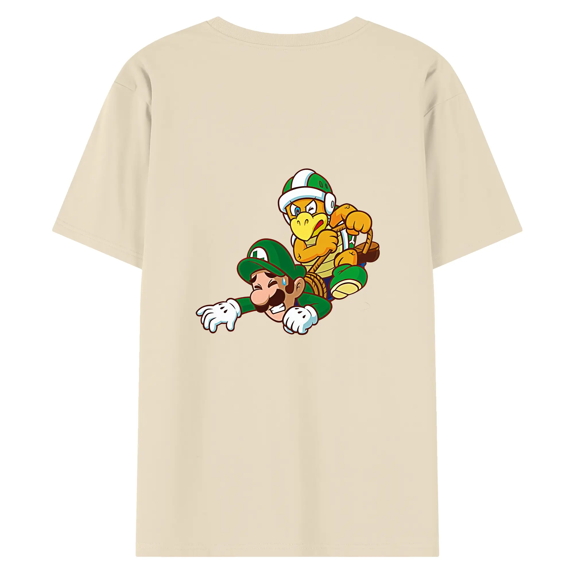 マリオ グッズ パタパタ - 綿100% ヴィンテージ風 半袖Tシャツ ・ 背面プリント ・ 柔らか肌触り ・ 通気性 快適 ・ スポーツ カジュアル 外出用