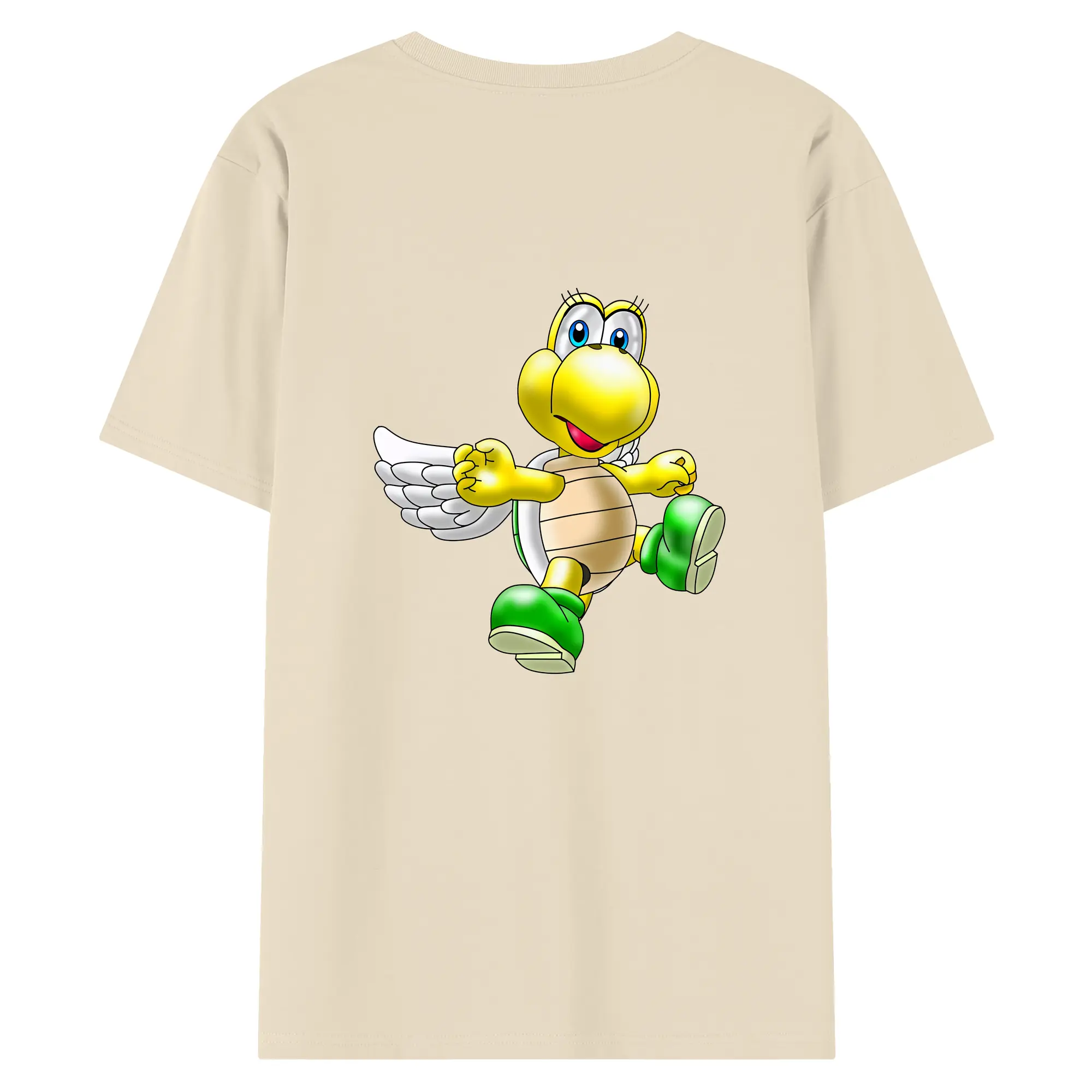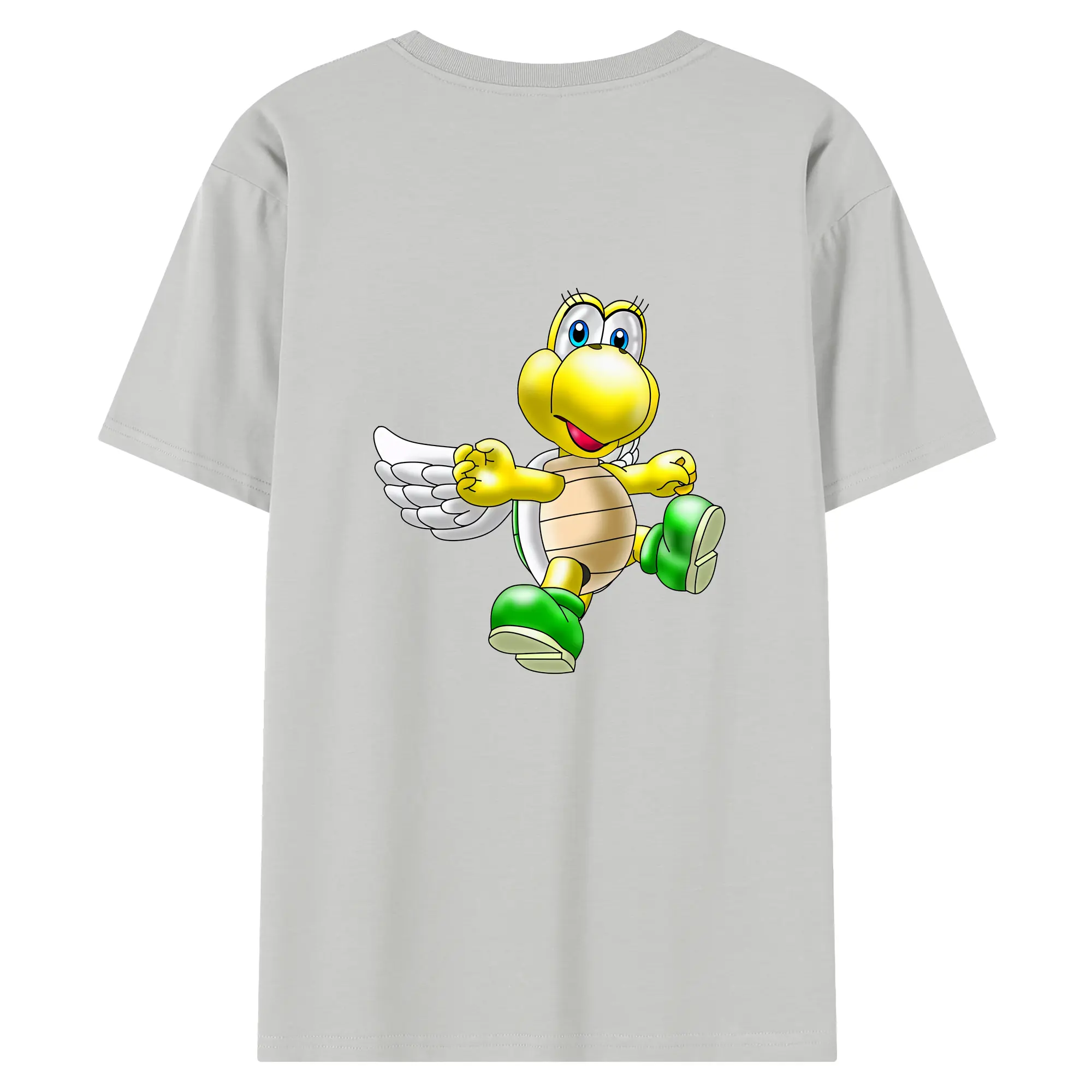 マリオ グッズ パタパタ - 綿100% ヴィンテージ風 半袖Tシャツ ・ 背面プリント ・ 柔らか肌触り ・ 通気性 快適 ・ スポーツ カジュアル 外出用