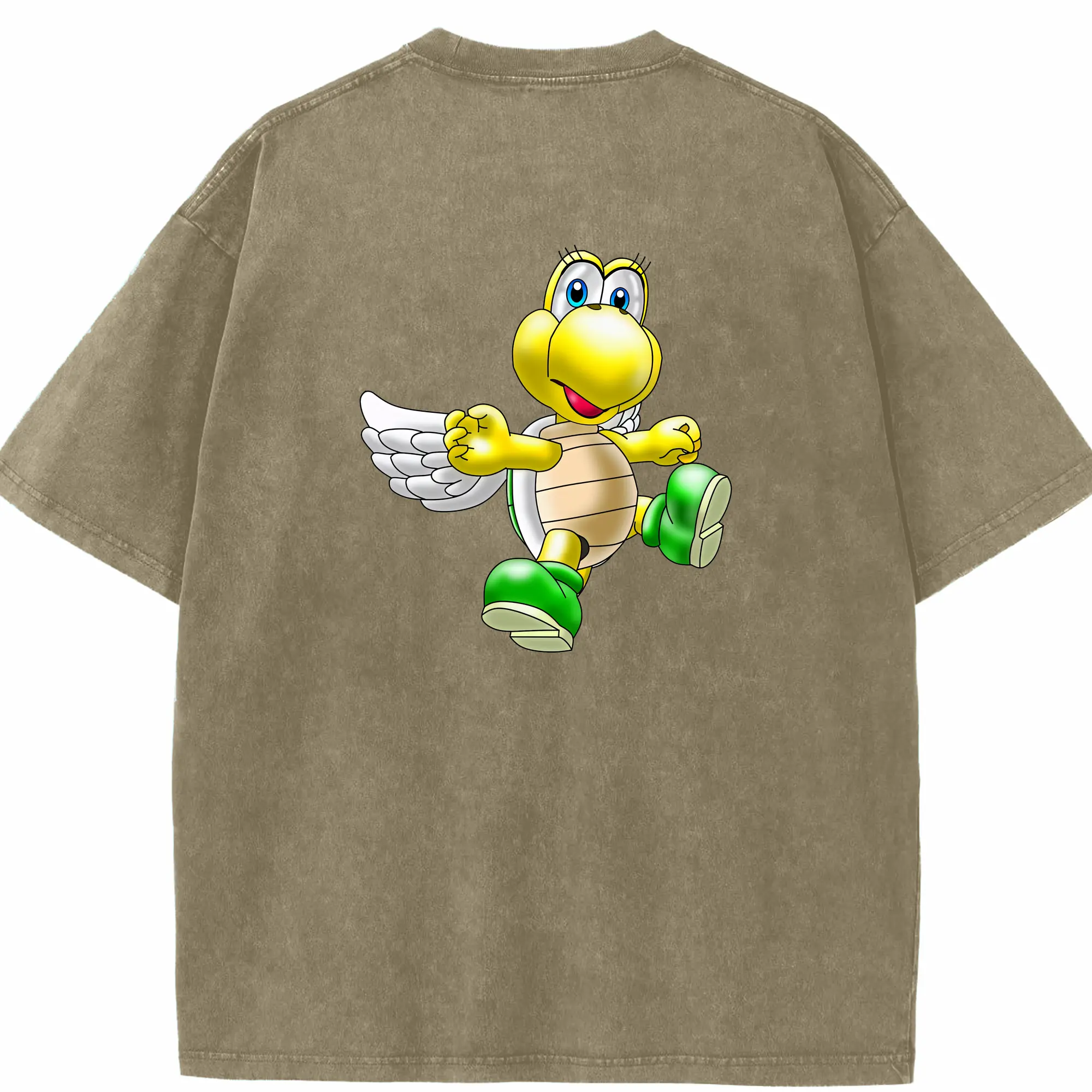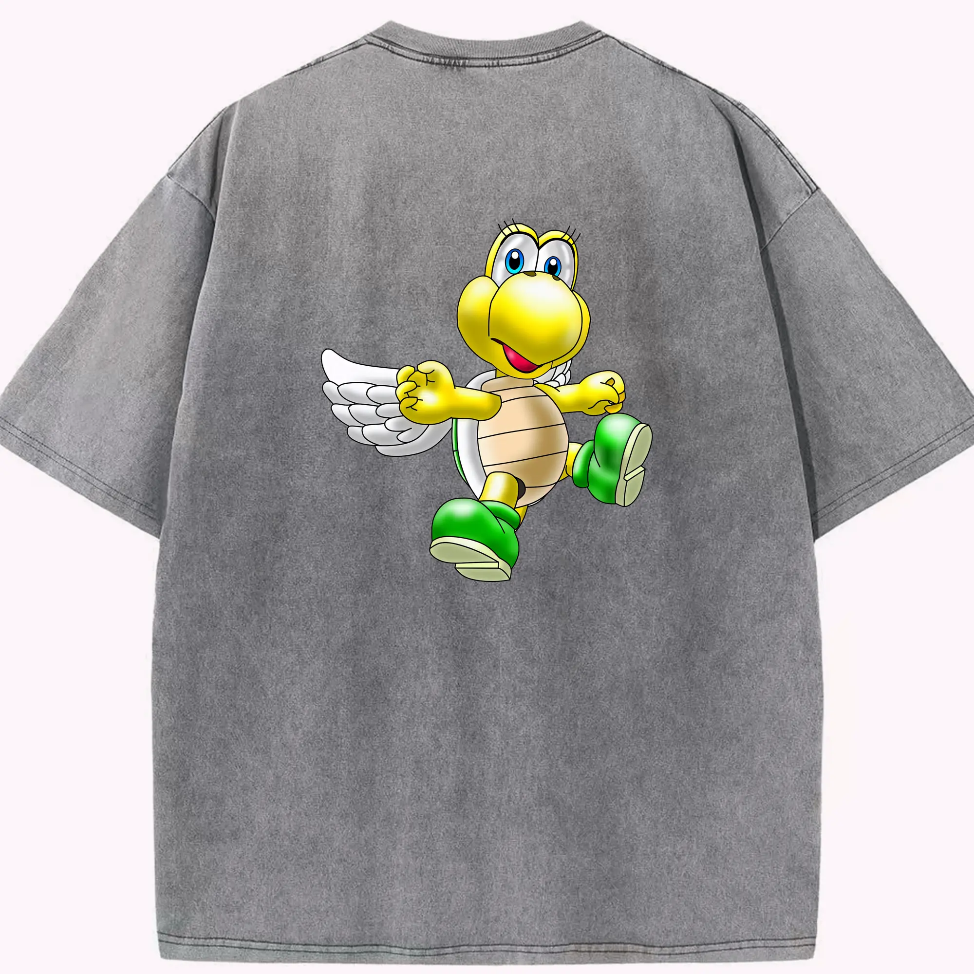 マリオ グッズ ヨッシー - 綿100% ヴィンテージ風 半袖Tシャツ ・ 背面プリント ・ 柔らか肌触り ・ 通気性 快適 ・ スポーツ カジュアル 外出用