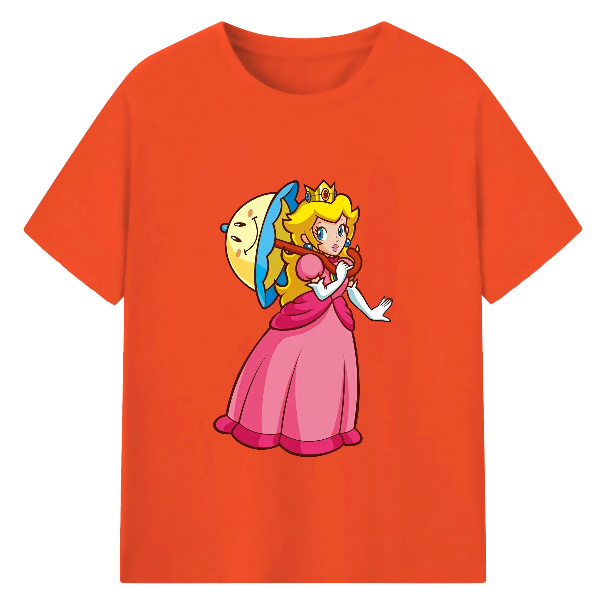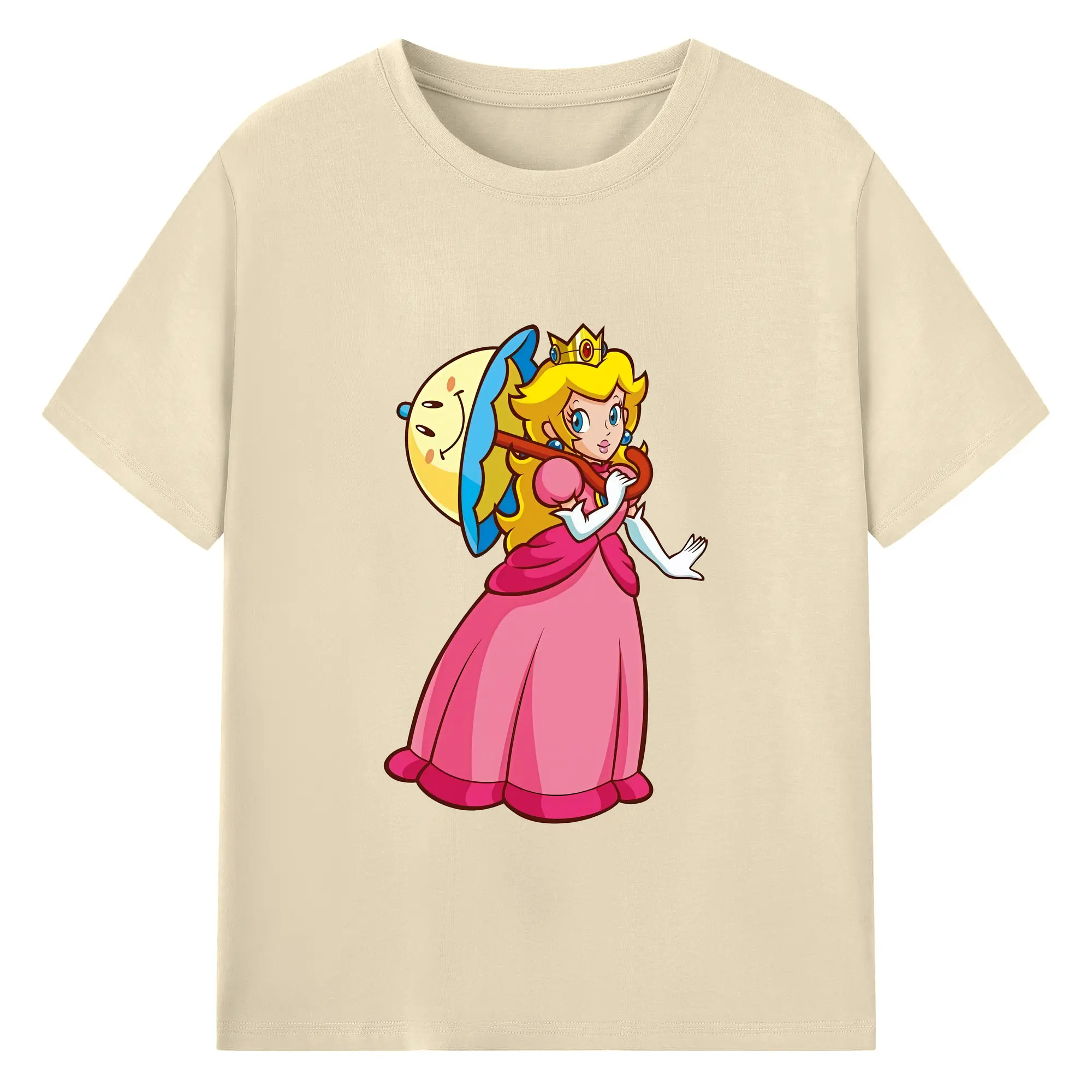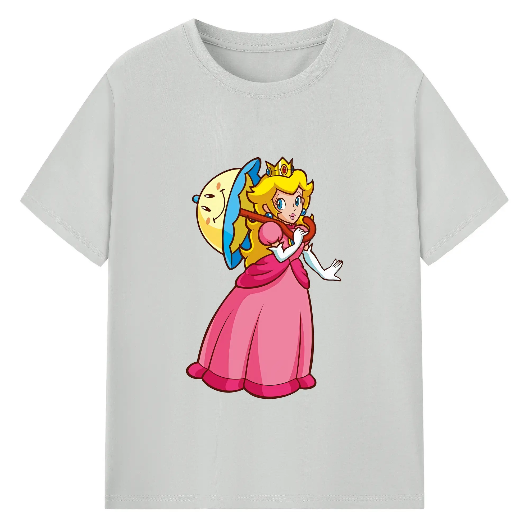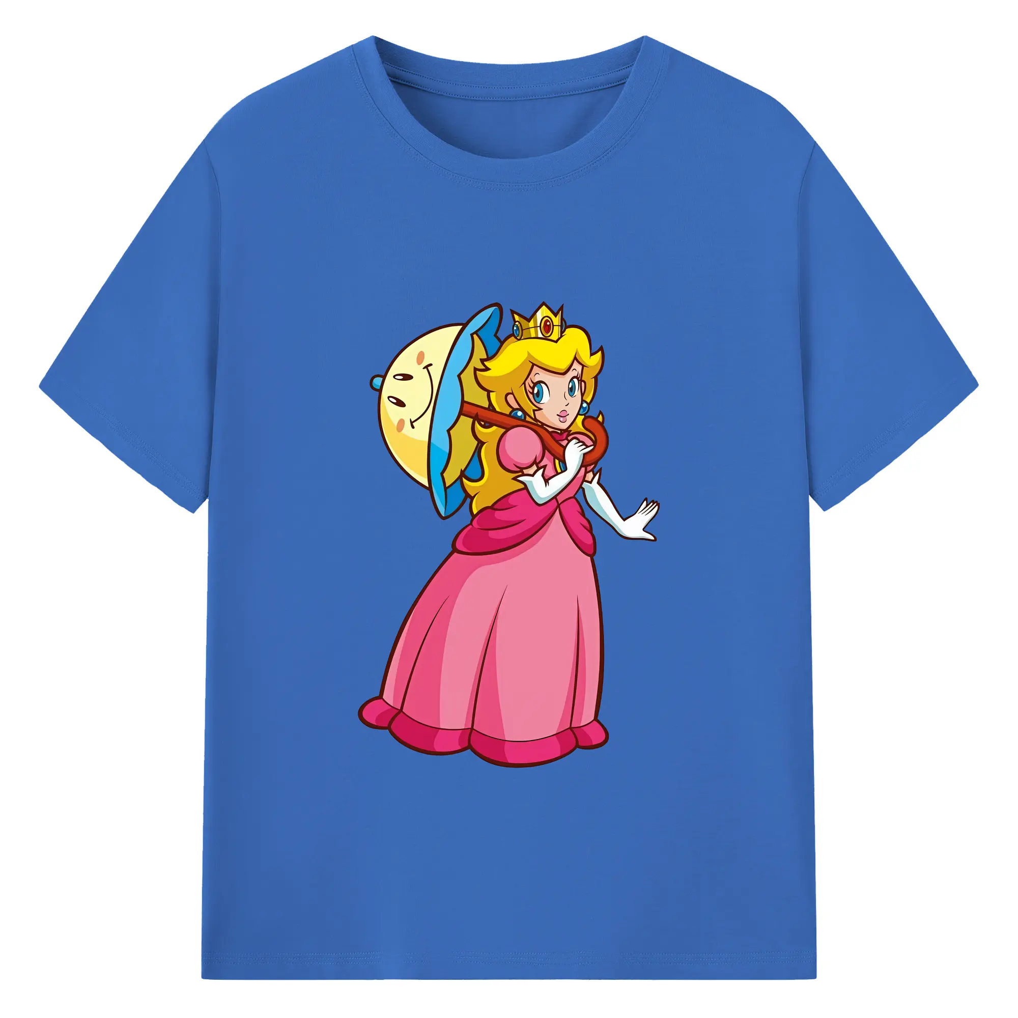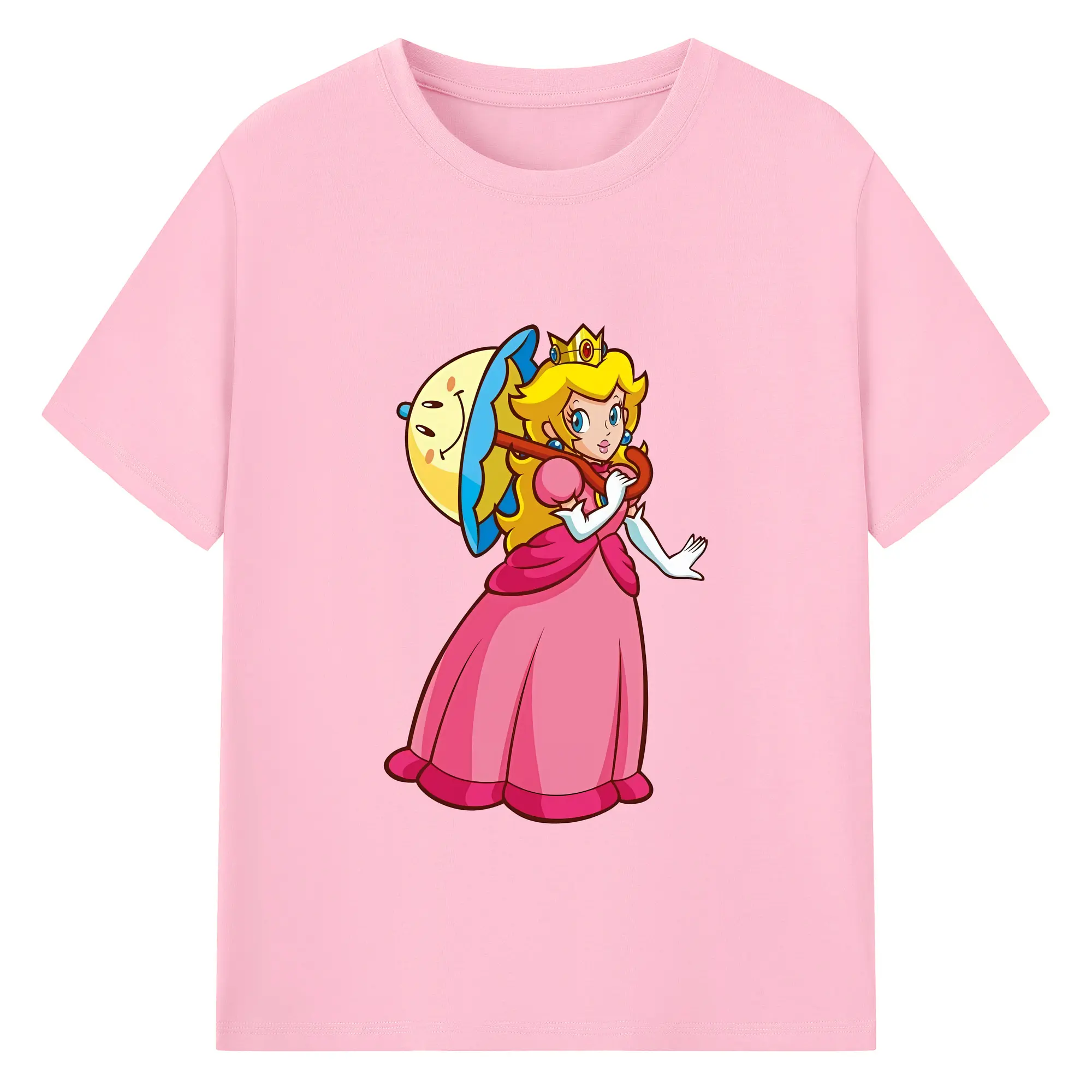 マリオ グッズ ピーチ姫 - 綿100% 半袖Tシャツ ・ バックプリント ・ 快適 通気性 ・ 日常使い 散歩 スポーツ用