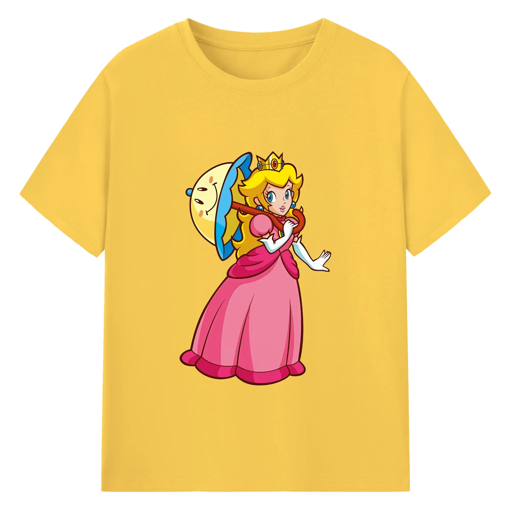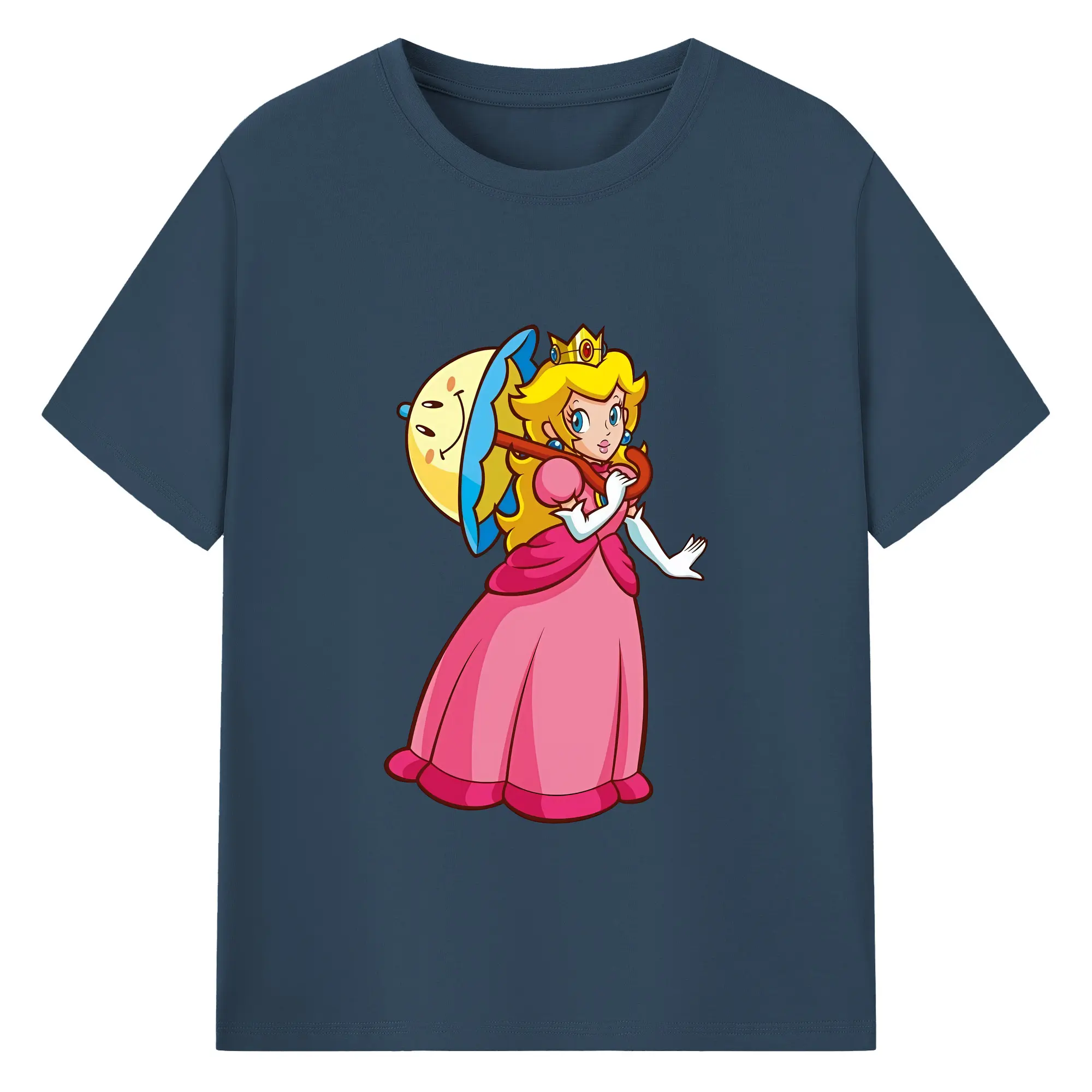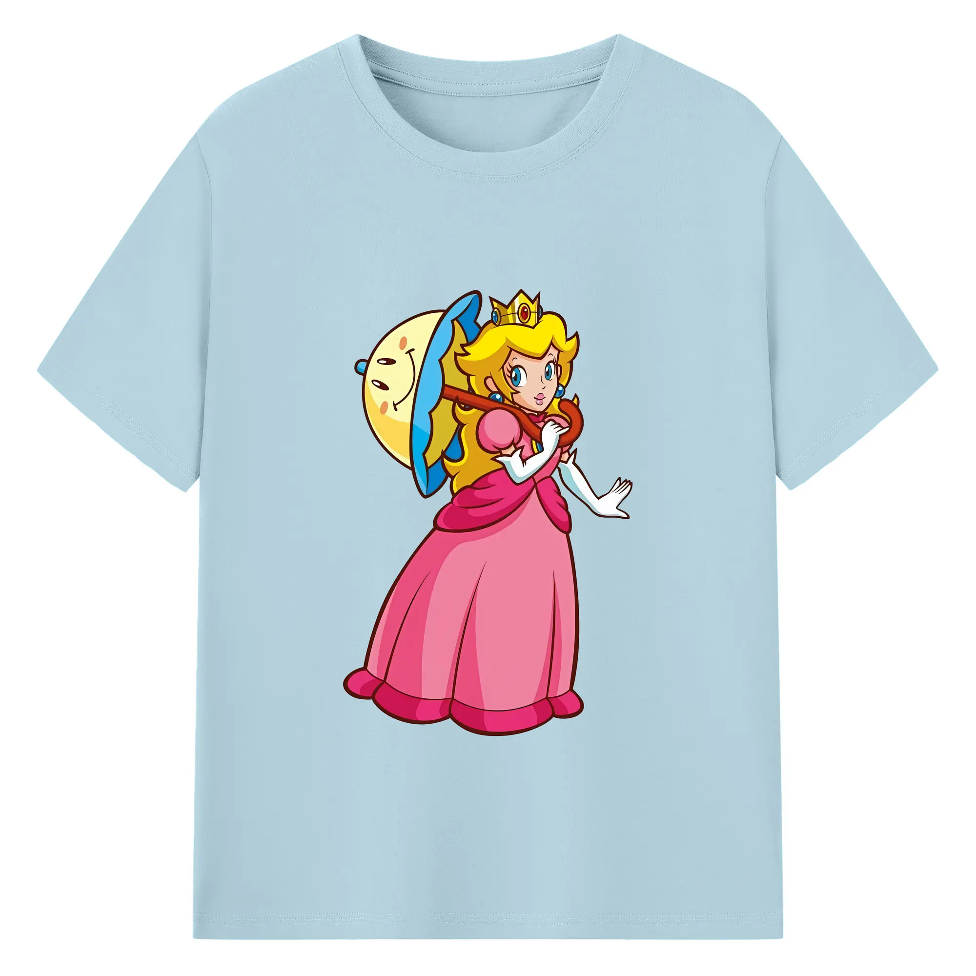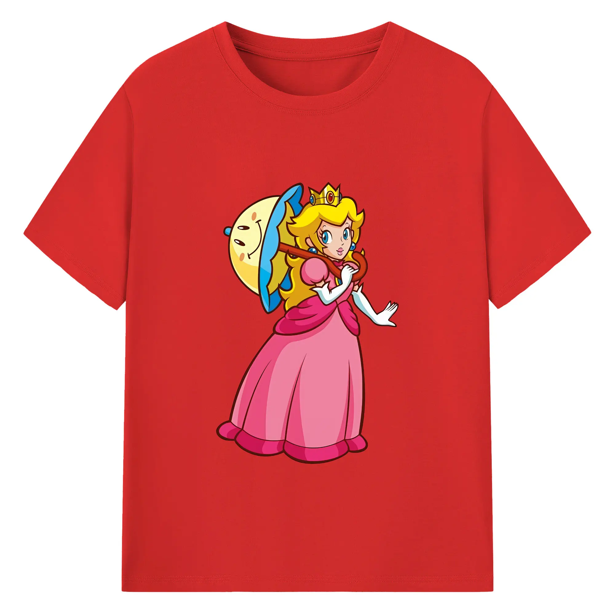 マリオ グッズ ピーチ姫 - 綿100% 半袖Tシャツ ・ バックプリント ・ 快適 通気性 ・ 日常使い 散歩 スポーツ用