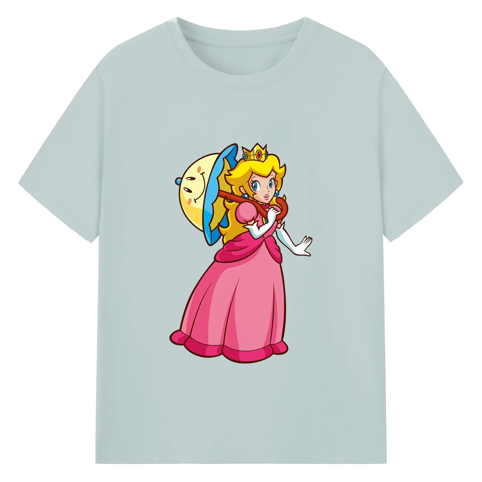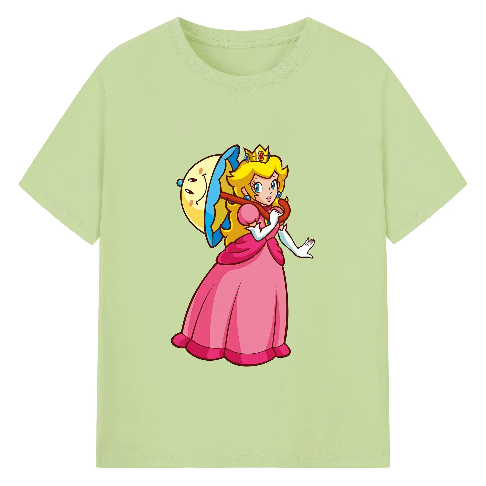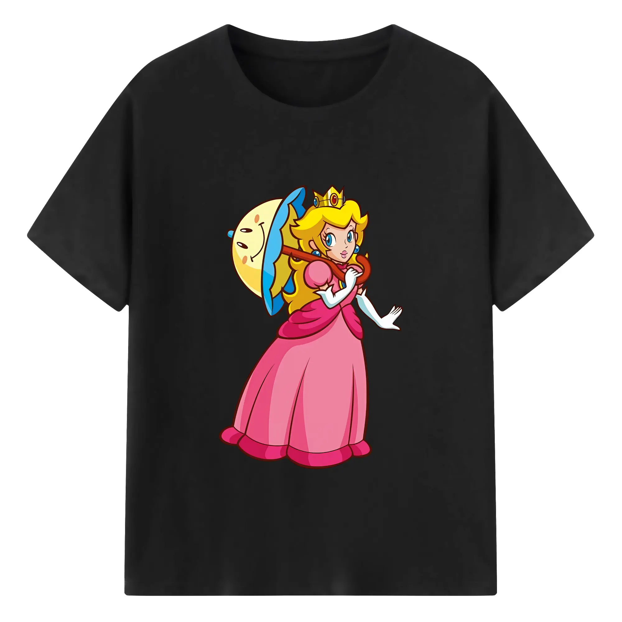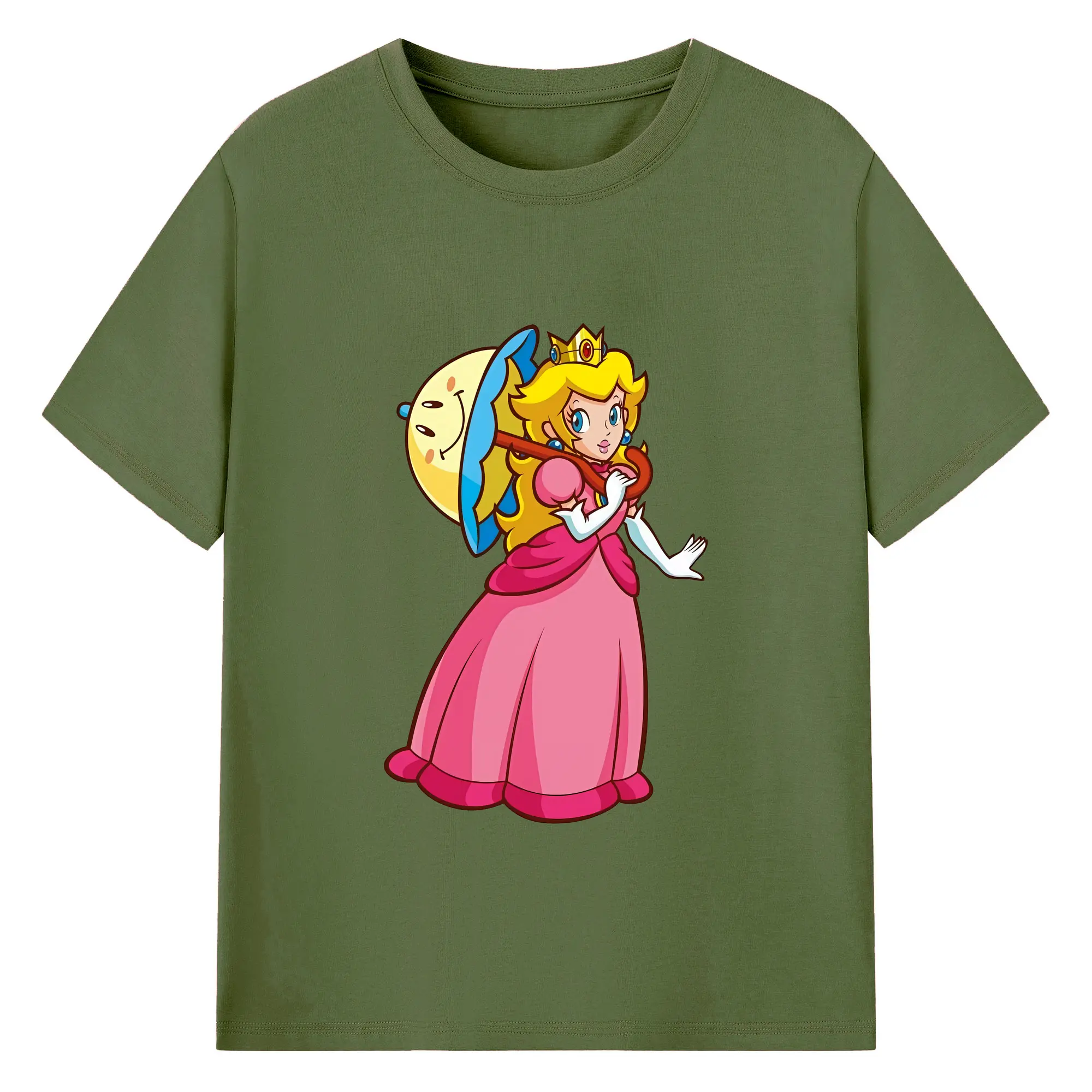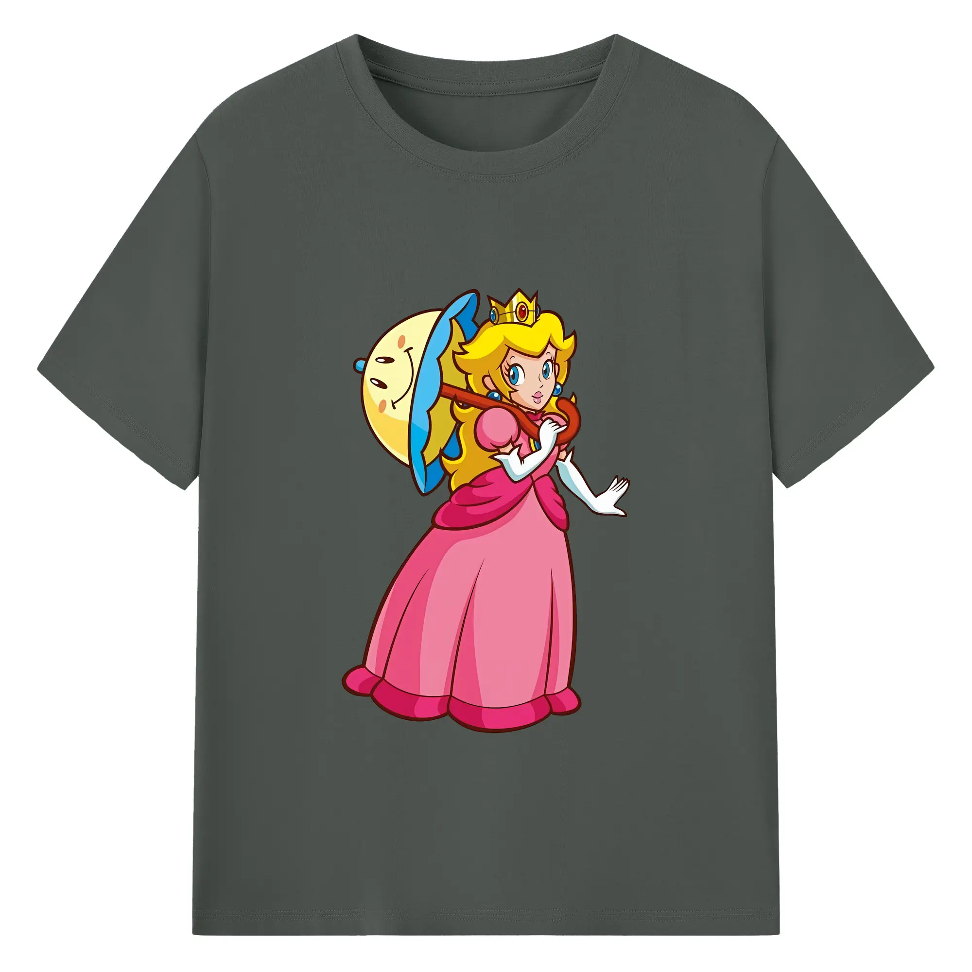 マリオ グッズ ピーチ姫 - 綿100% 半袖Tシャツ ・ バックプリント ・ 快適 通気性 ・ 日常使い 散歩 スポーツ用