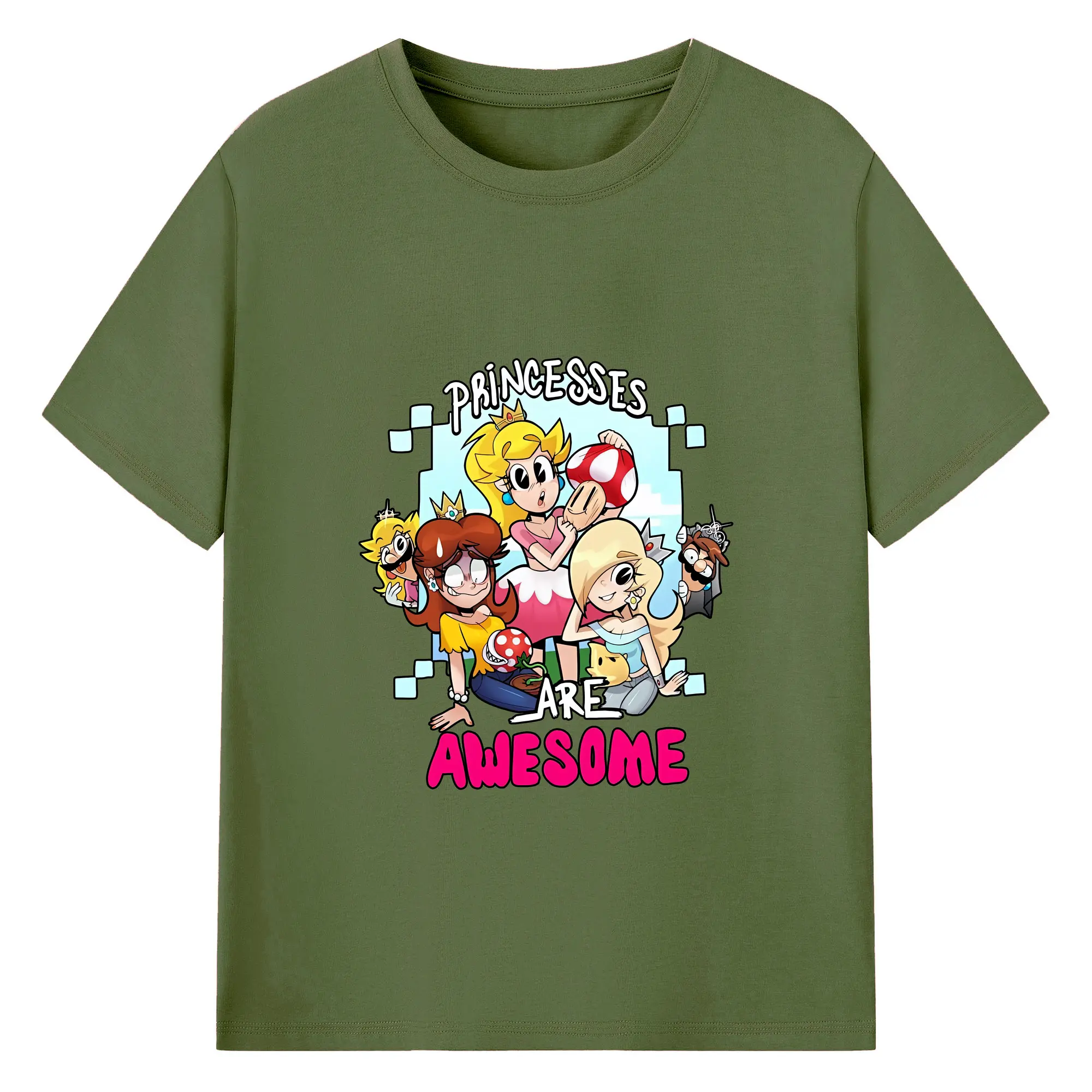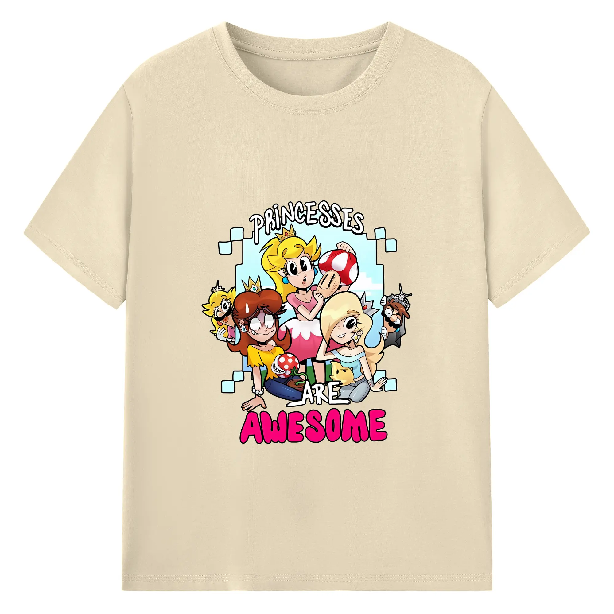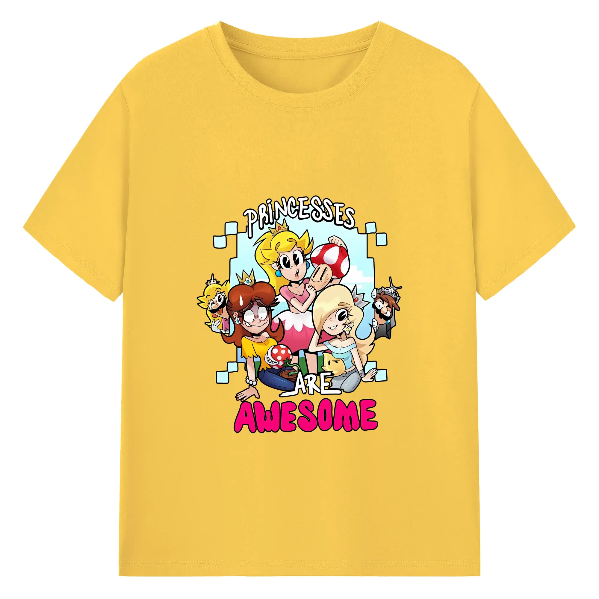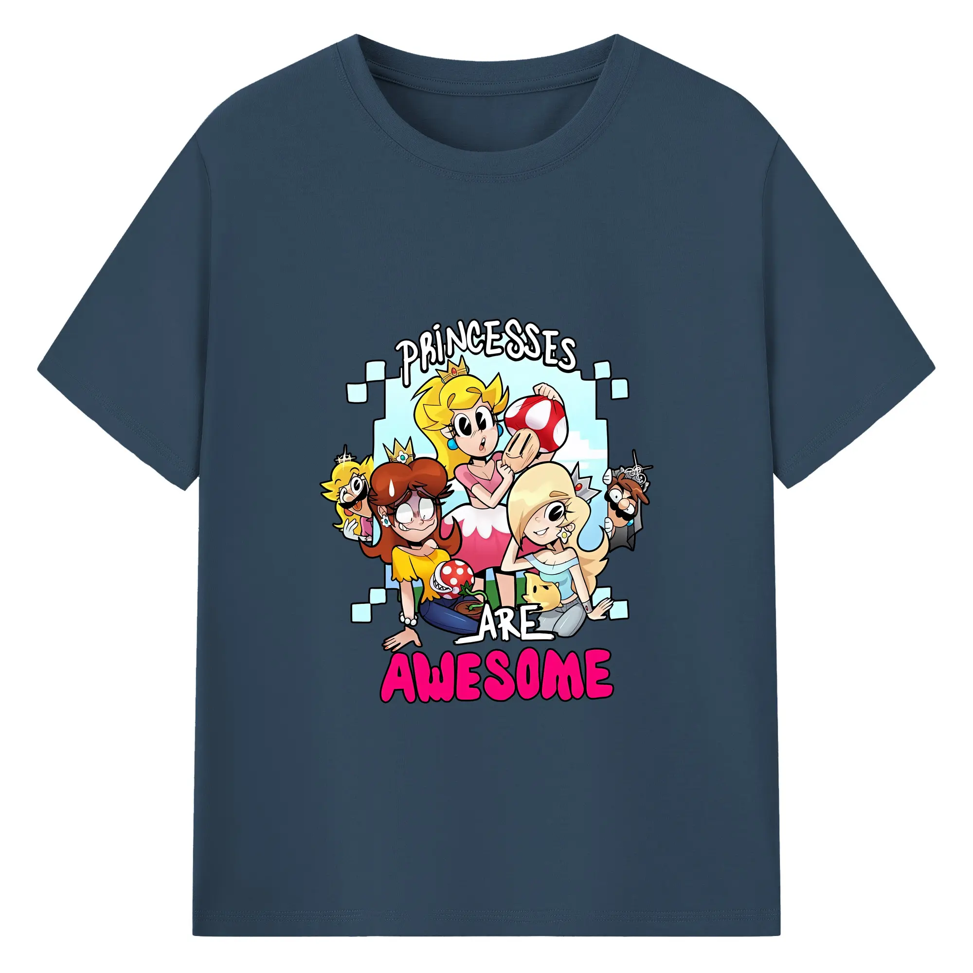マリオ グッズ ピーチ姫 - 綿100% ヴィンテージ風 半袖Tシャツ ・ フロントプリント ・ 柔らか肌触り ・ 通気性 快適 ・ スポーツ カジュアル 外出用