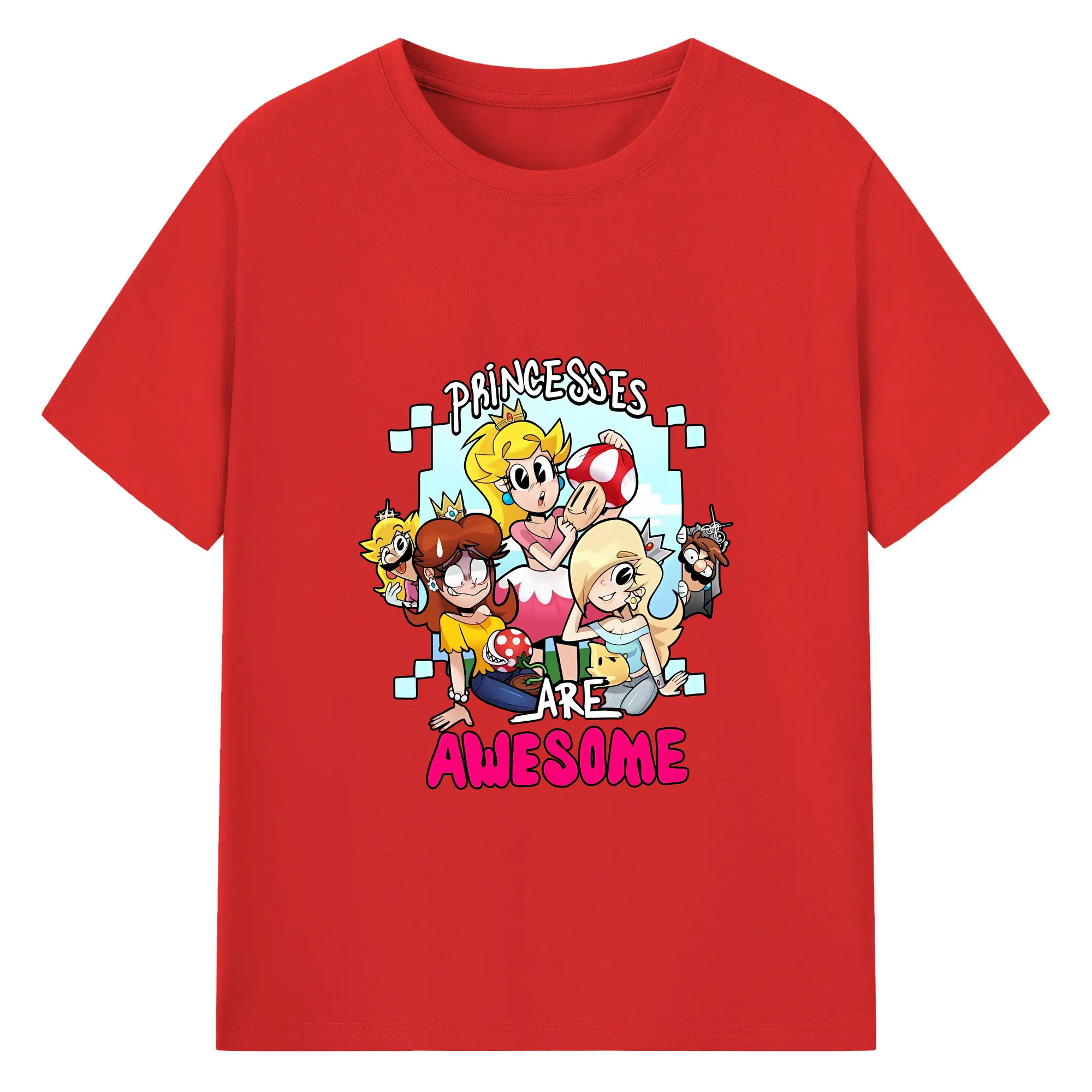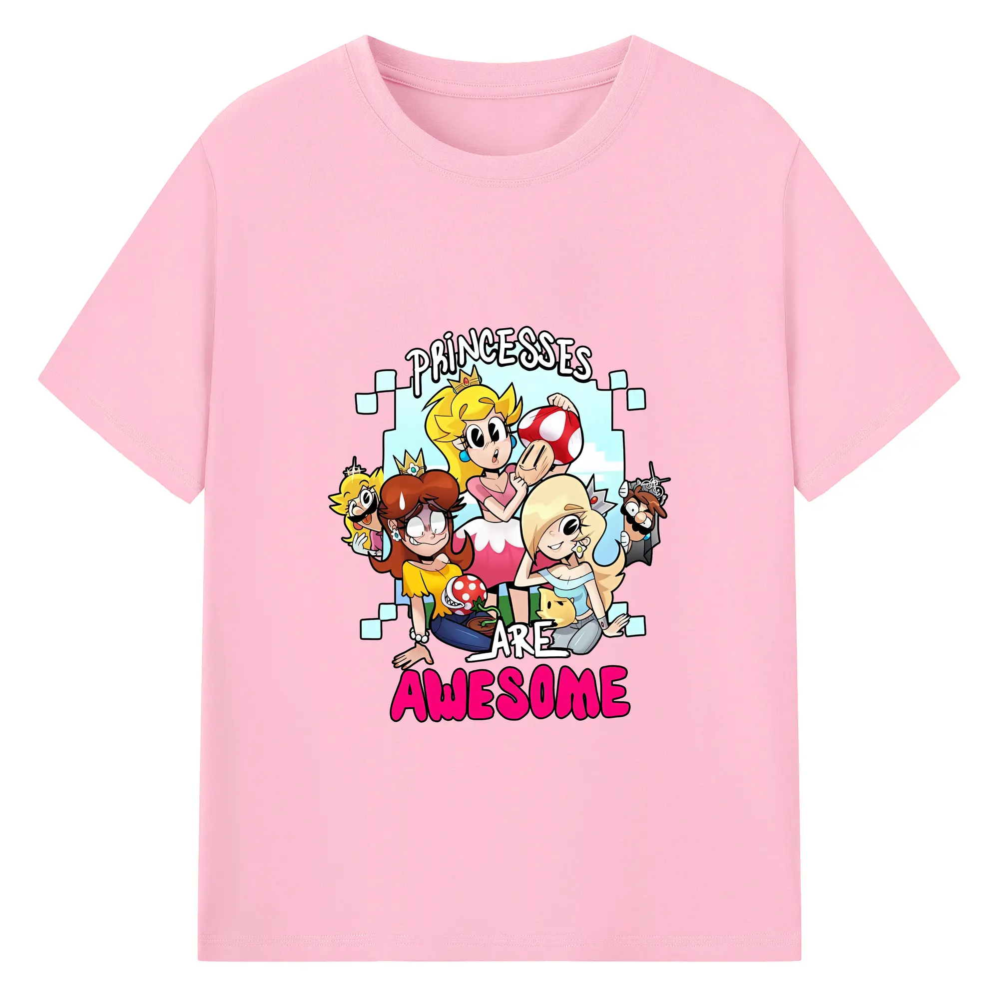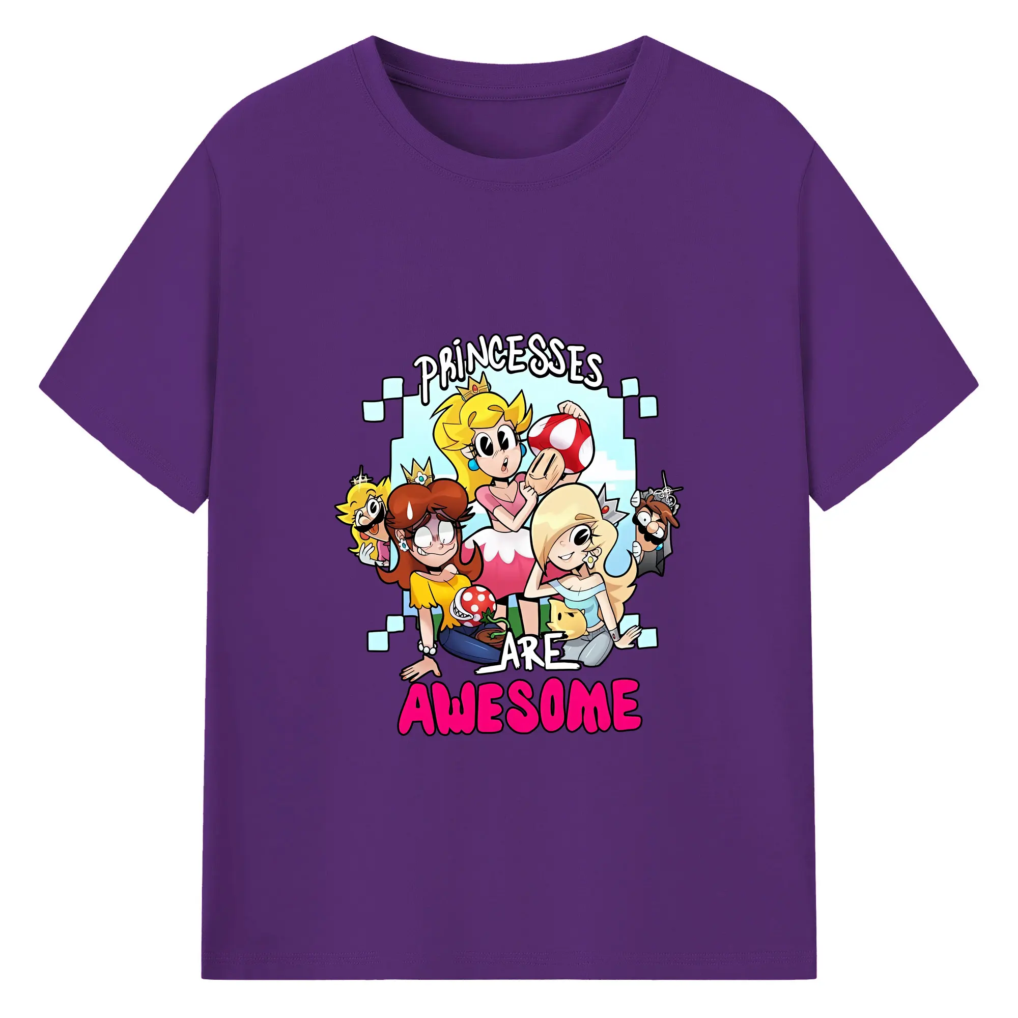マリオ グッズ ピーチ姫 - 綿100% 半袖Tシャツ ・ バックプリント ・ 快適 通気性 ・ 日常使い 散歩 スポーツ用