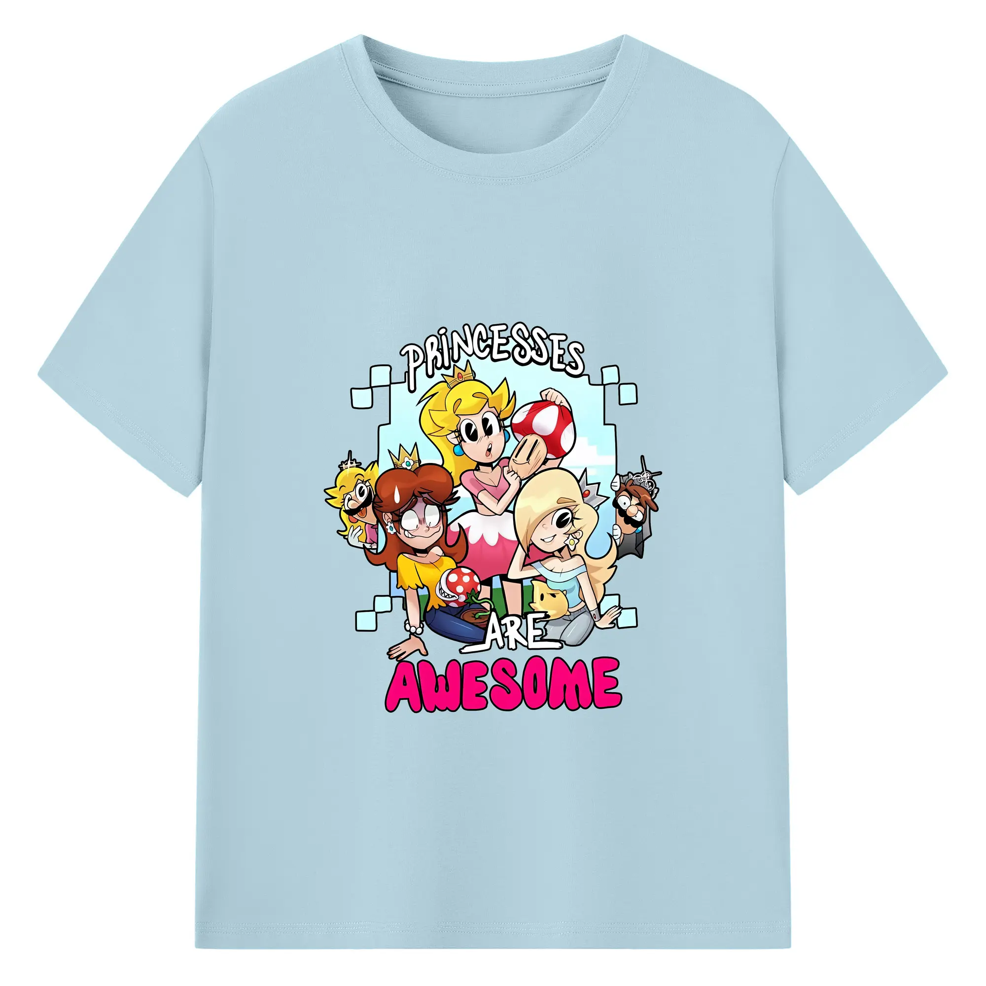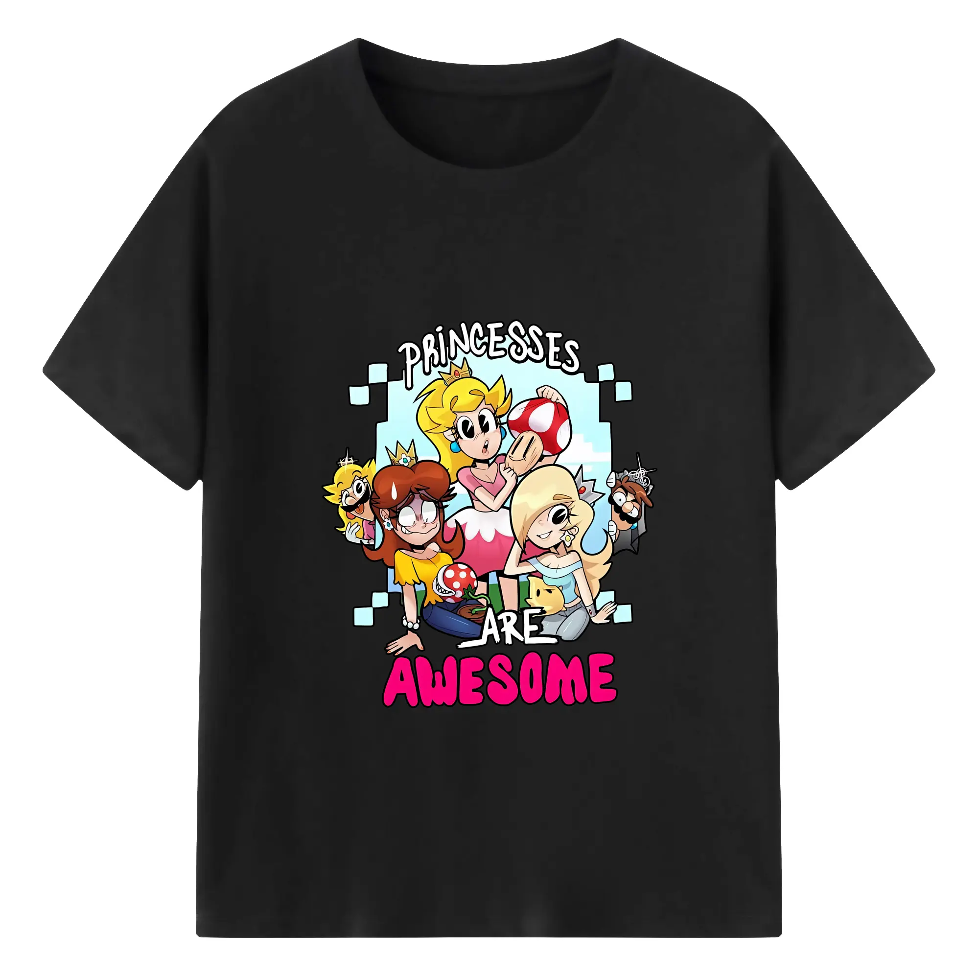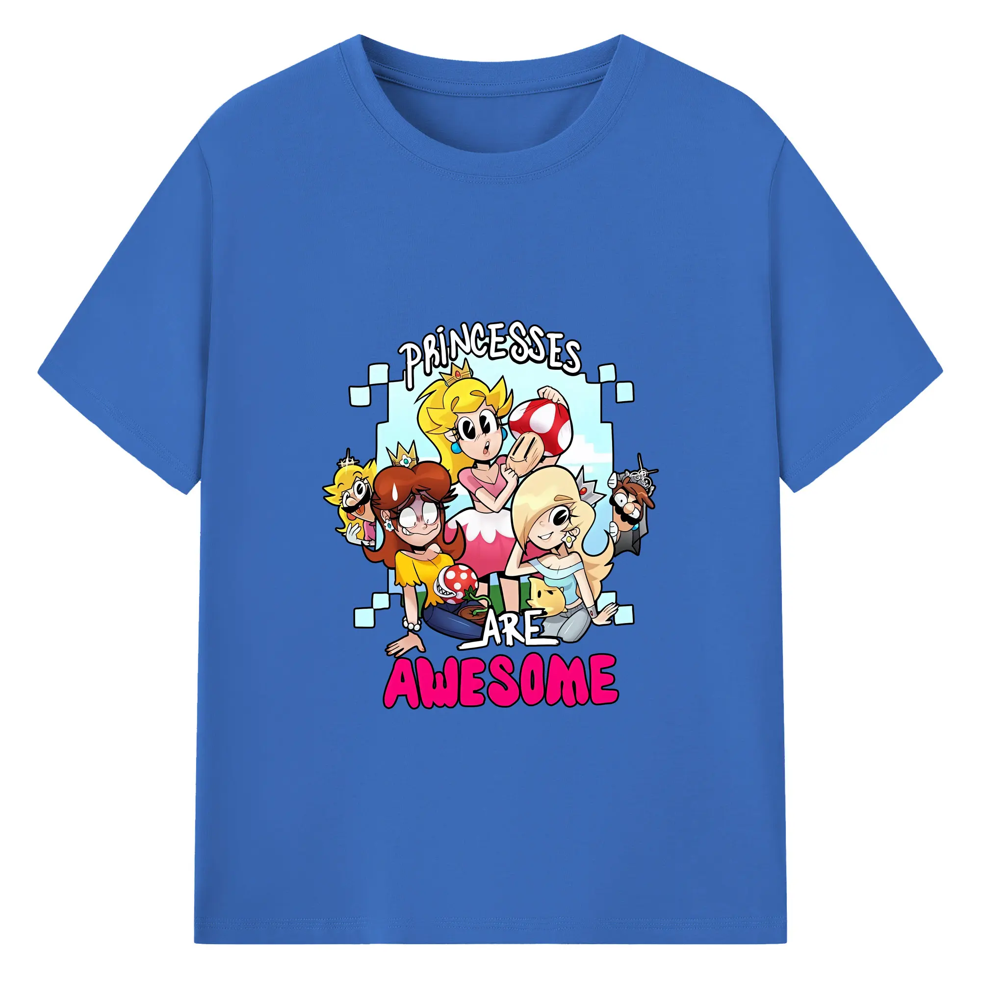 マリオ グッズ ピーチ姫 - 綿100% 半袖Tシャツ ・ バックプリント ・ 快適 通気性 ・ 日常使い 散歩 スポーツ用
