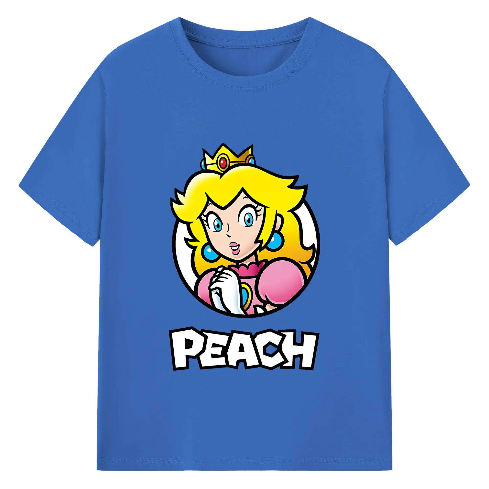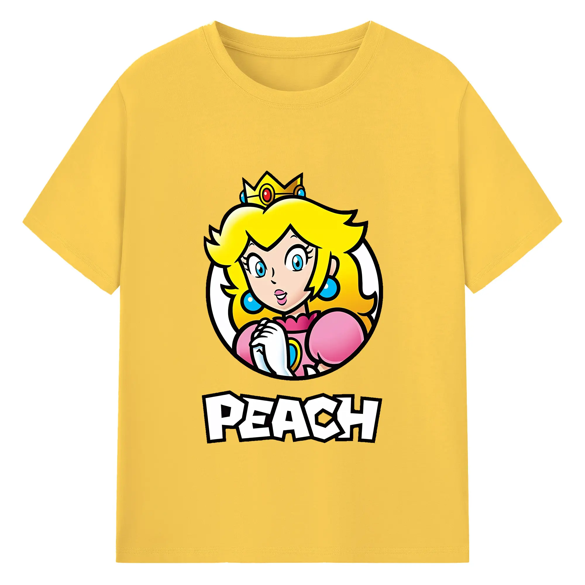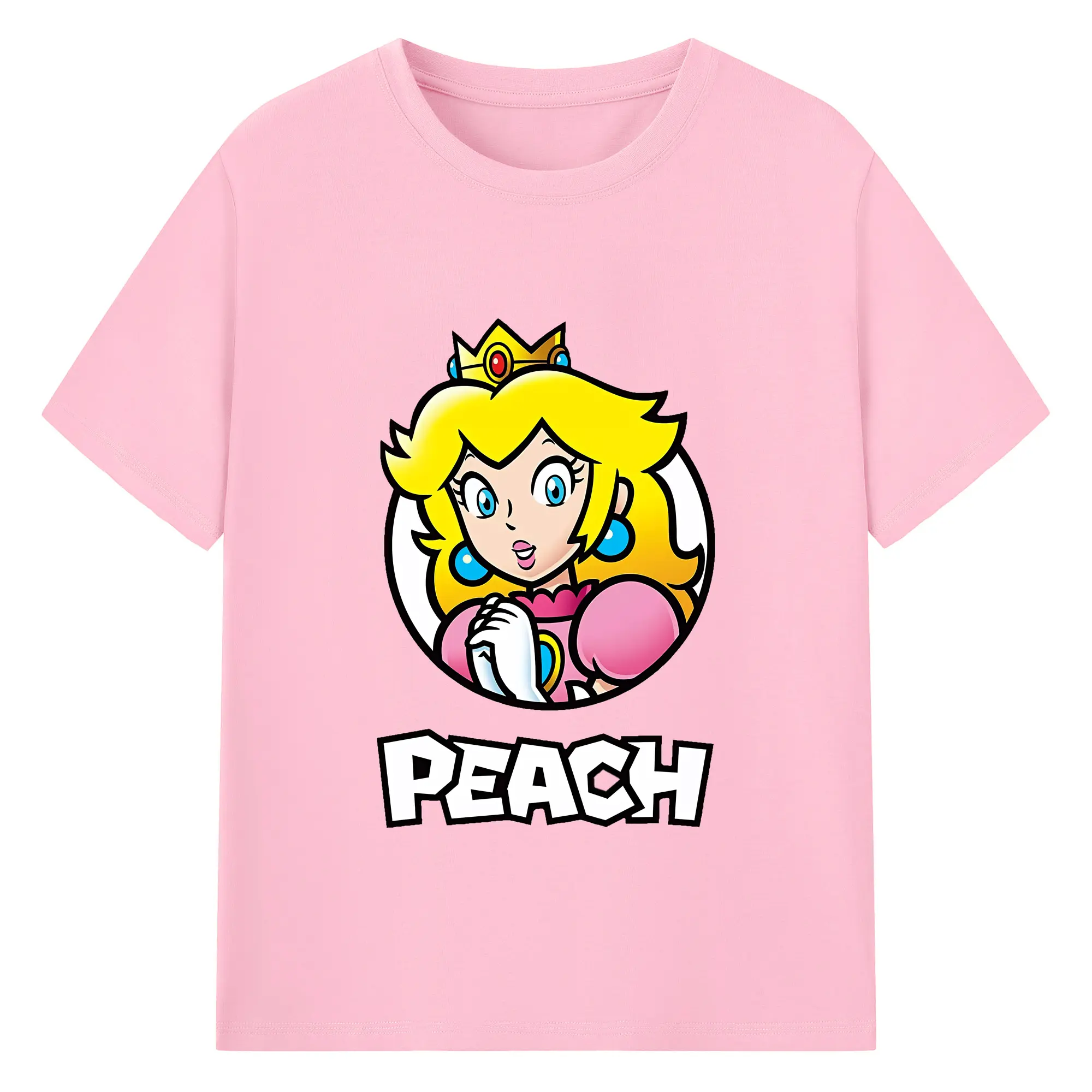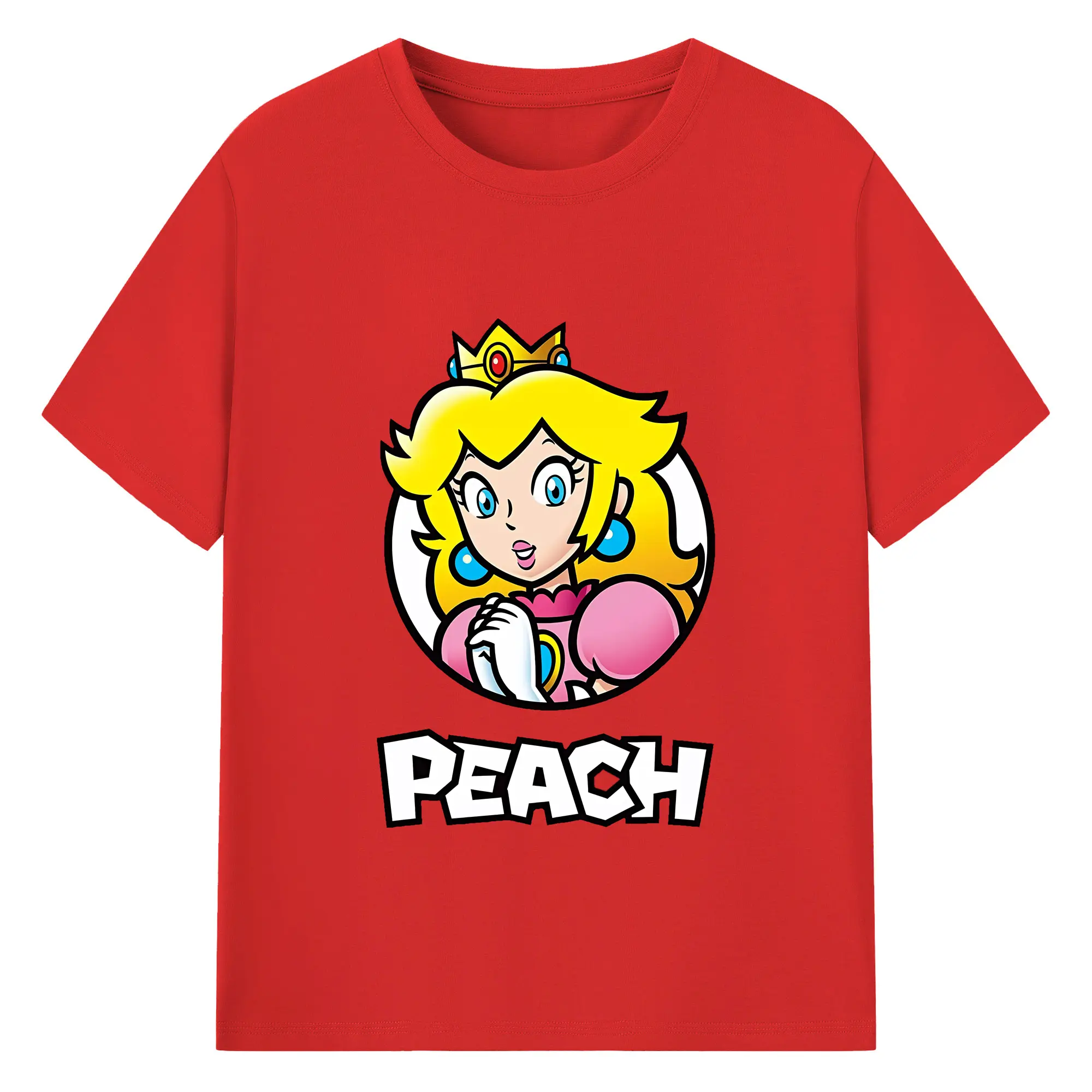 マリオ グッズ ピーチ姫 - 綿100% 半袖Tシャツ ・ バックプリント ・ 快適 通気性 ・ 日常使い 散歩 スポーツ用