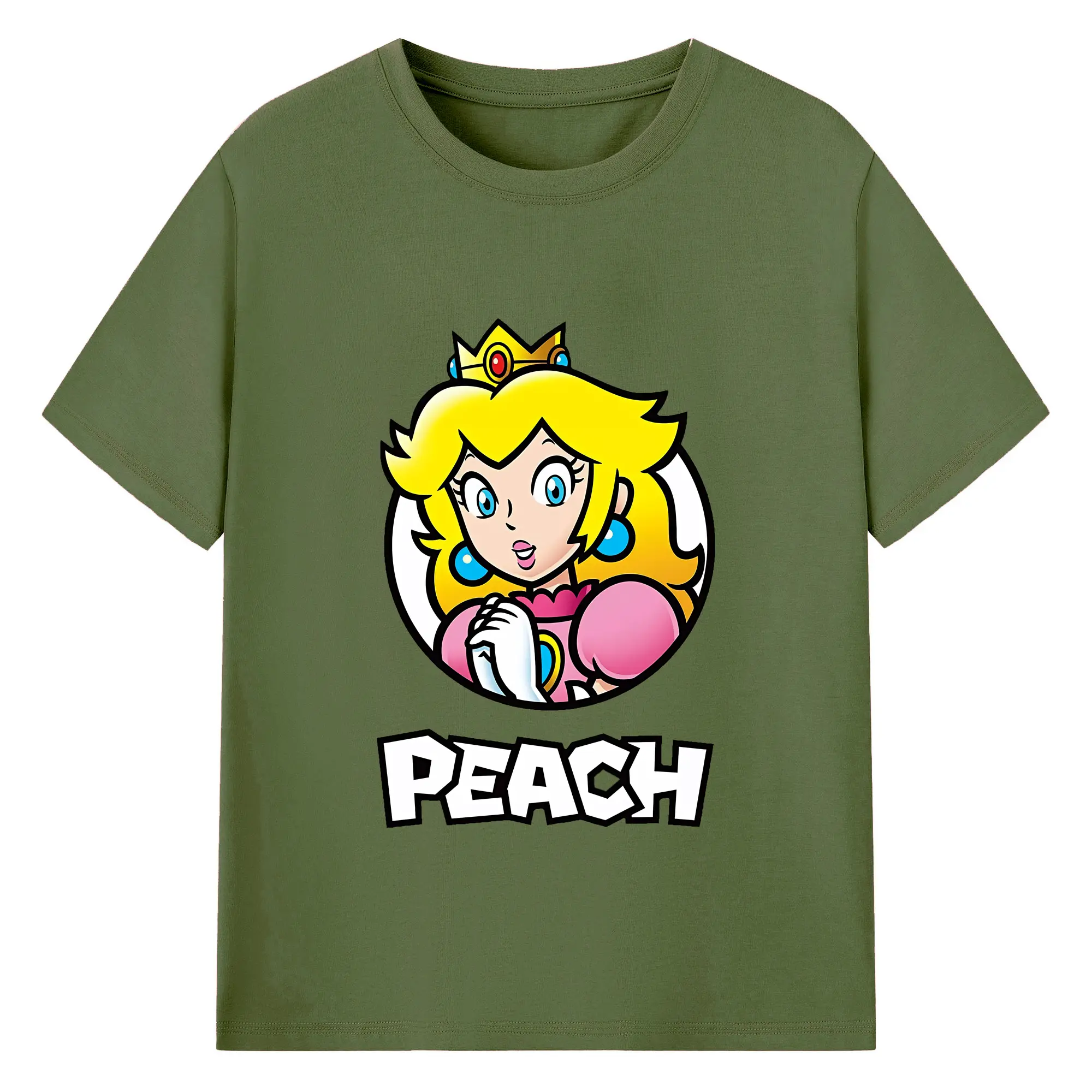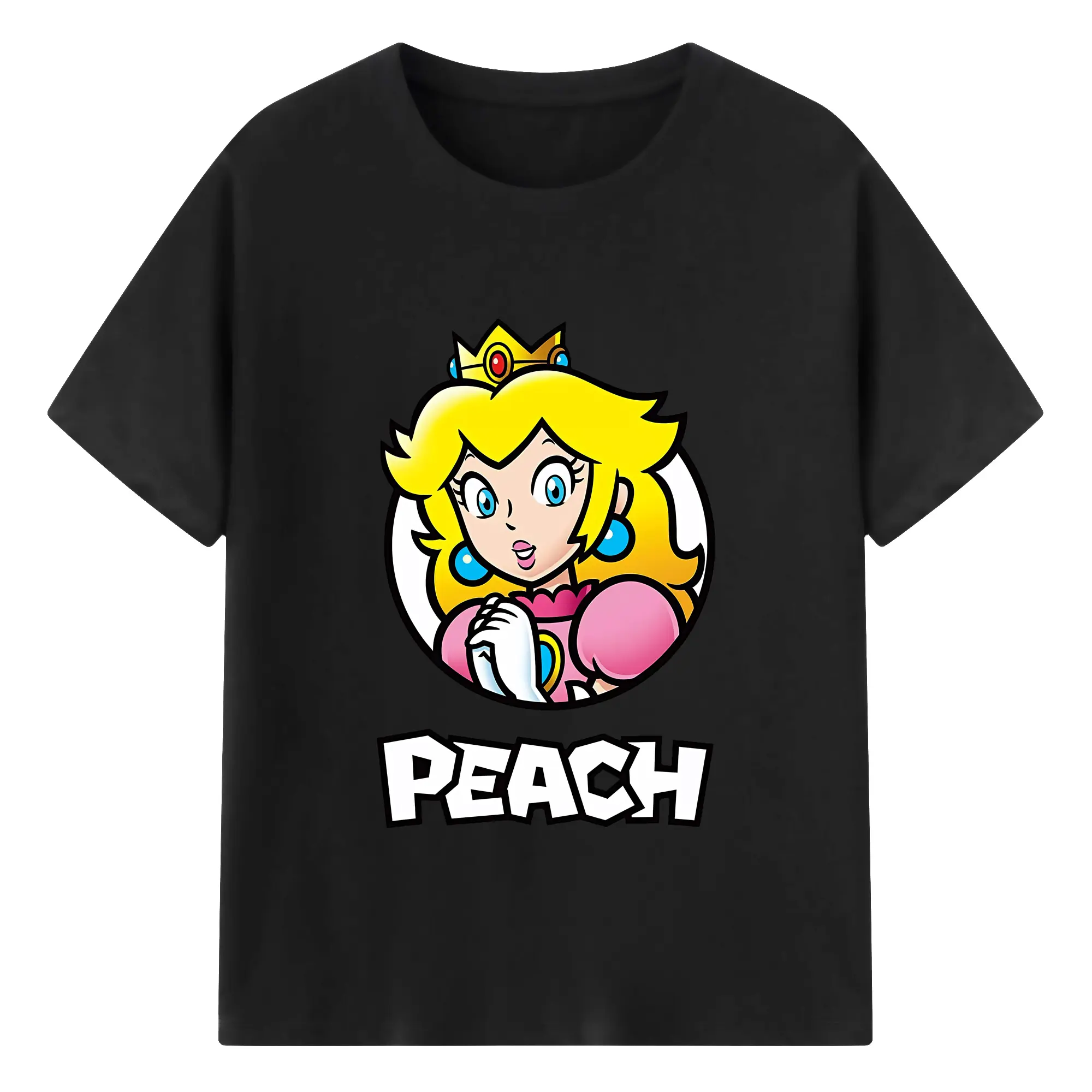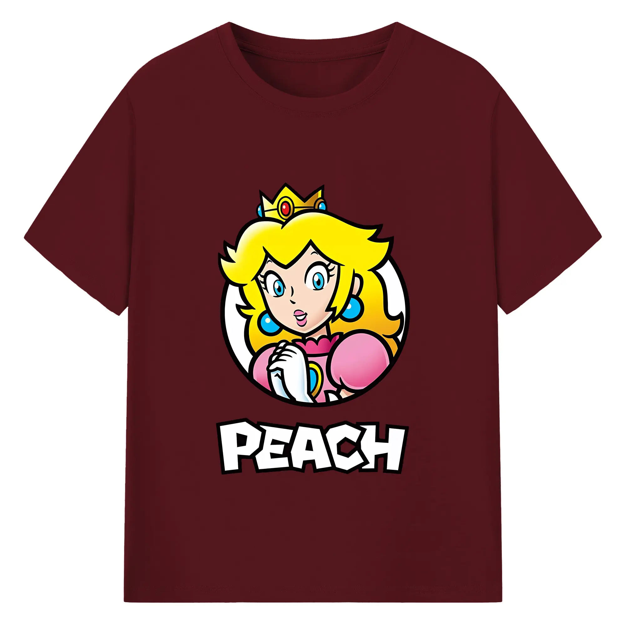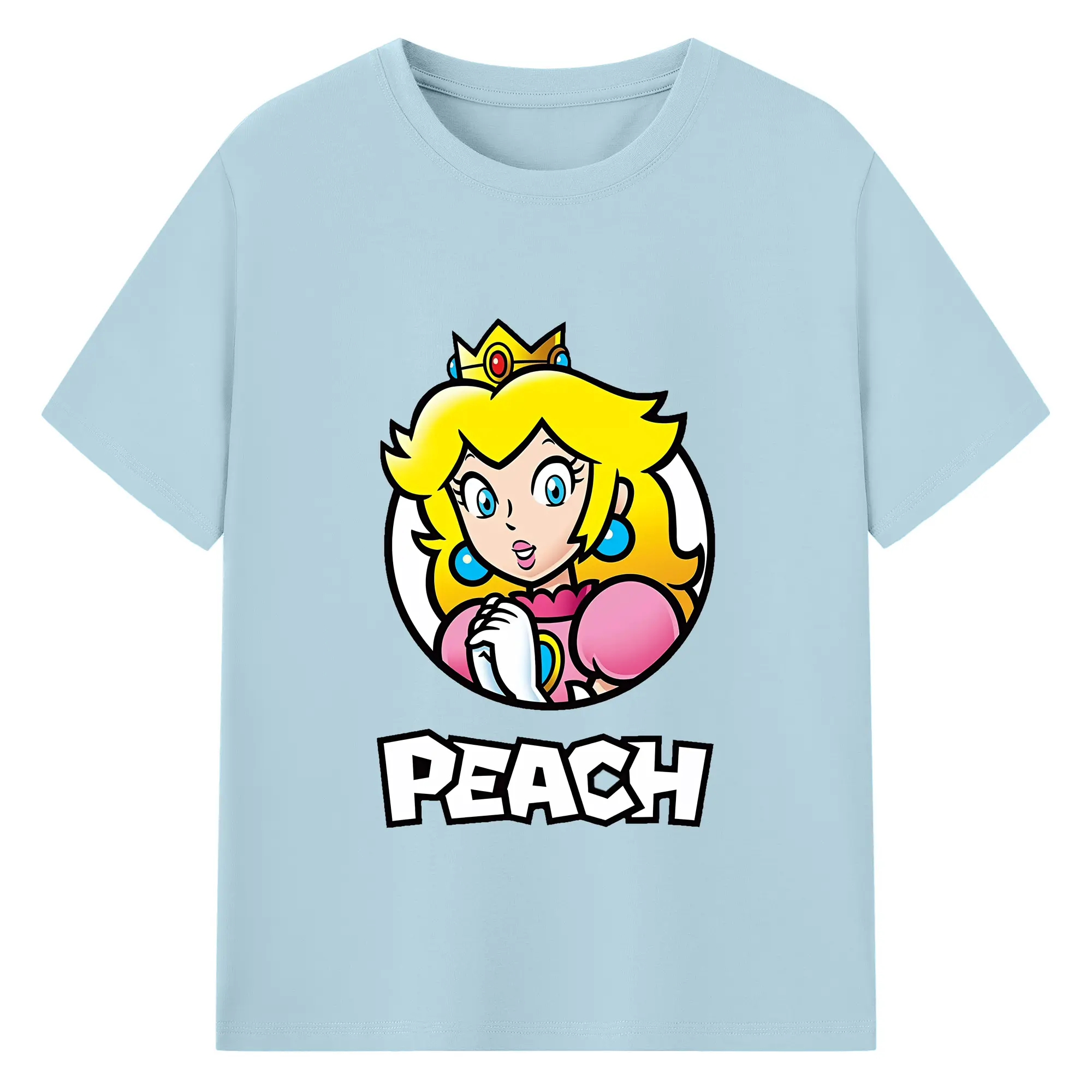 マリオ グッズ ピーチ姫 - 綿100% 半袖Tシャツ ・ バックプリント ・ 快適 通気性 ・ 日常使い 散歩 スポーツ用