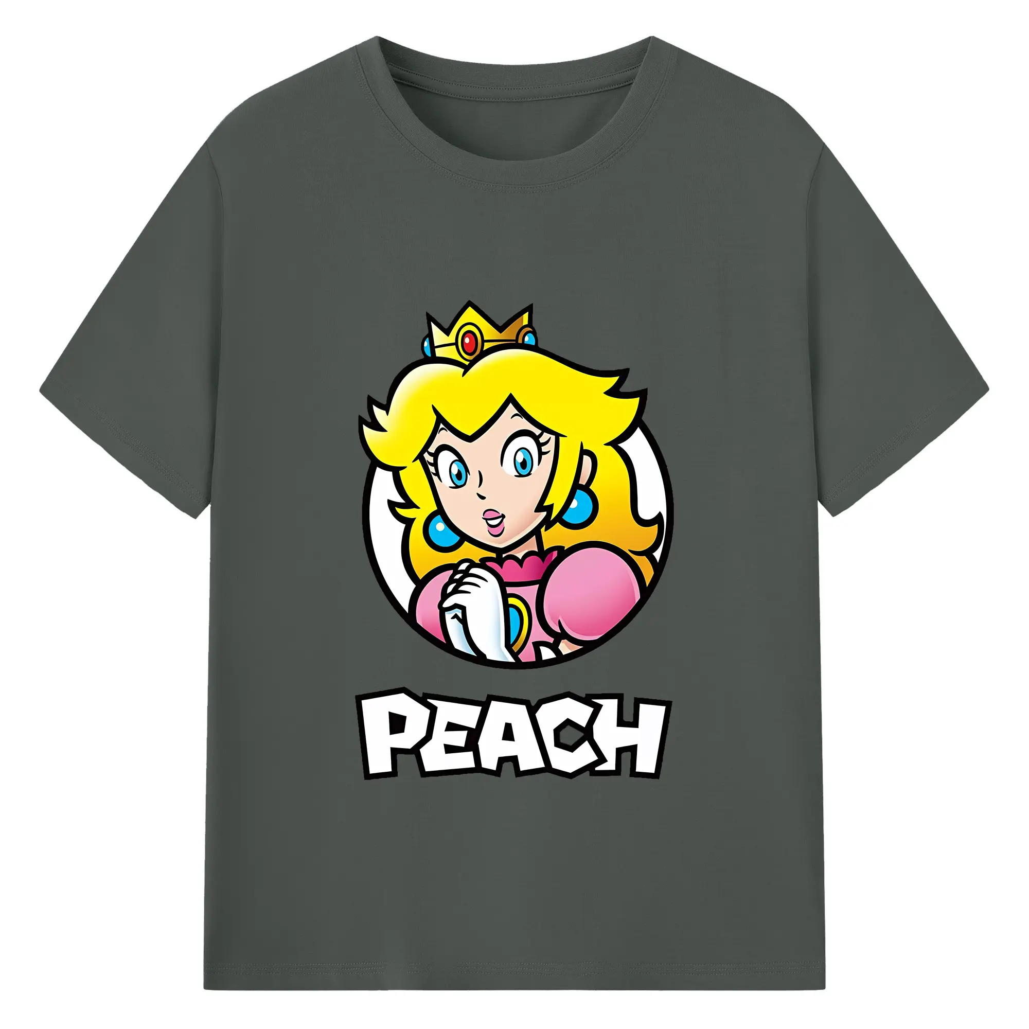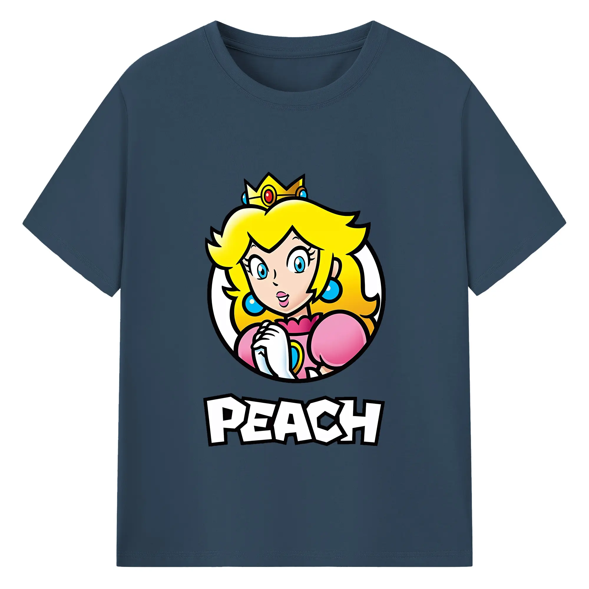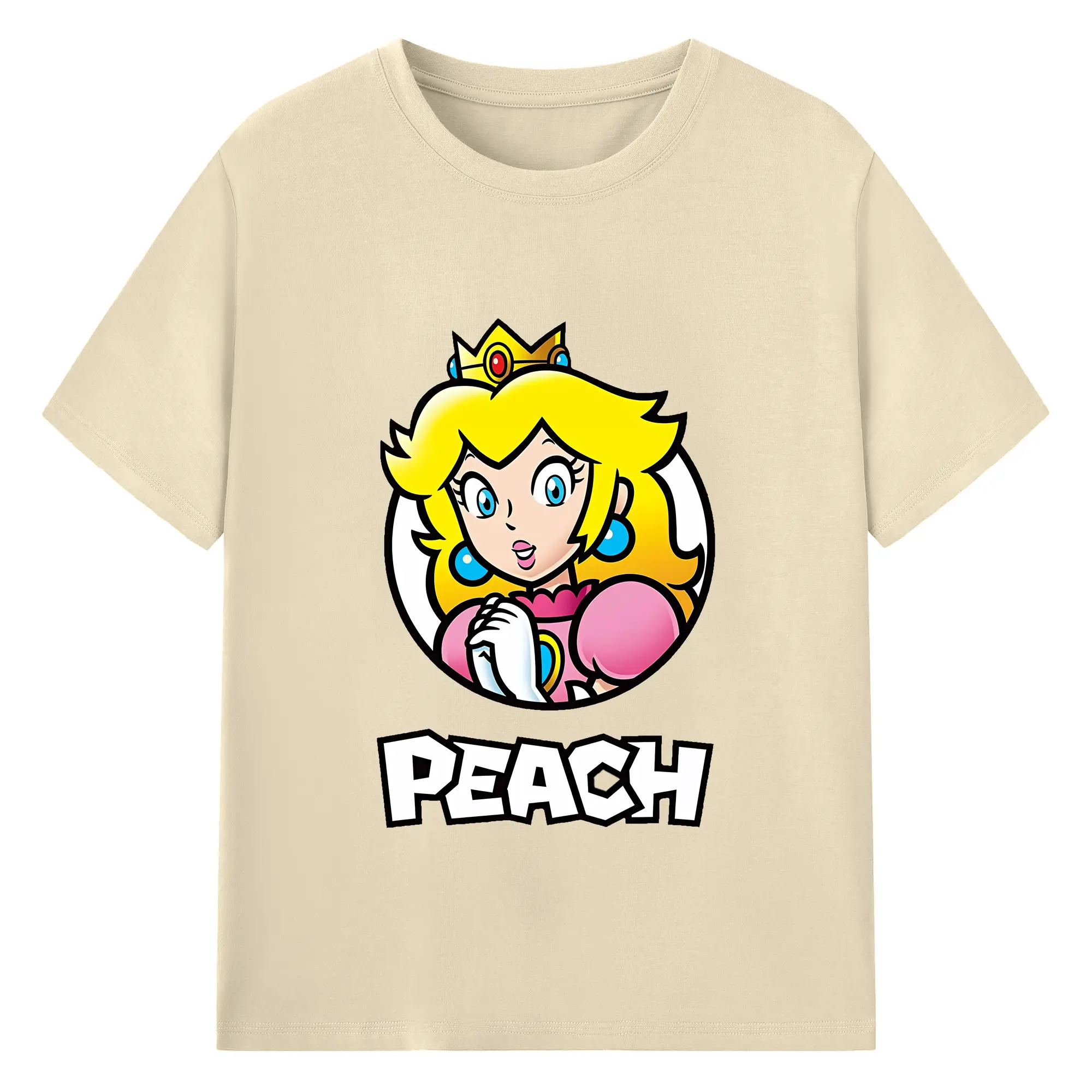 マリオ グッズ ピーチ姫 - 綿100% ヴィンテージ風 半袖Tシャツ ・ フロントプリント ・ 柔らか肌触り ・ 通気性 快適 ・ スポーツ カジュアル 外出用