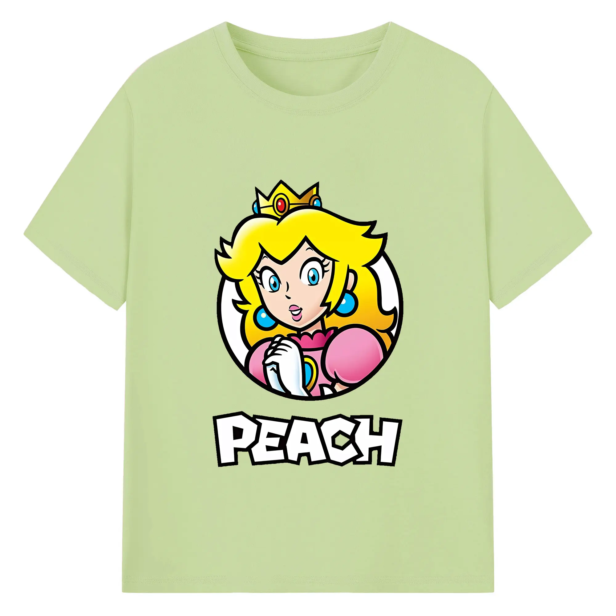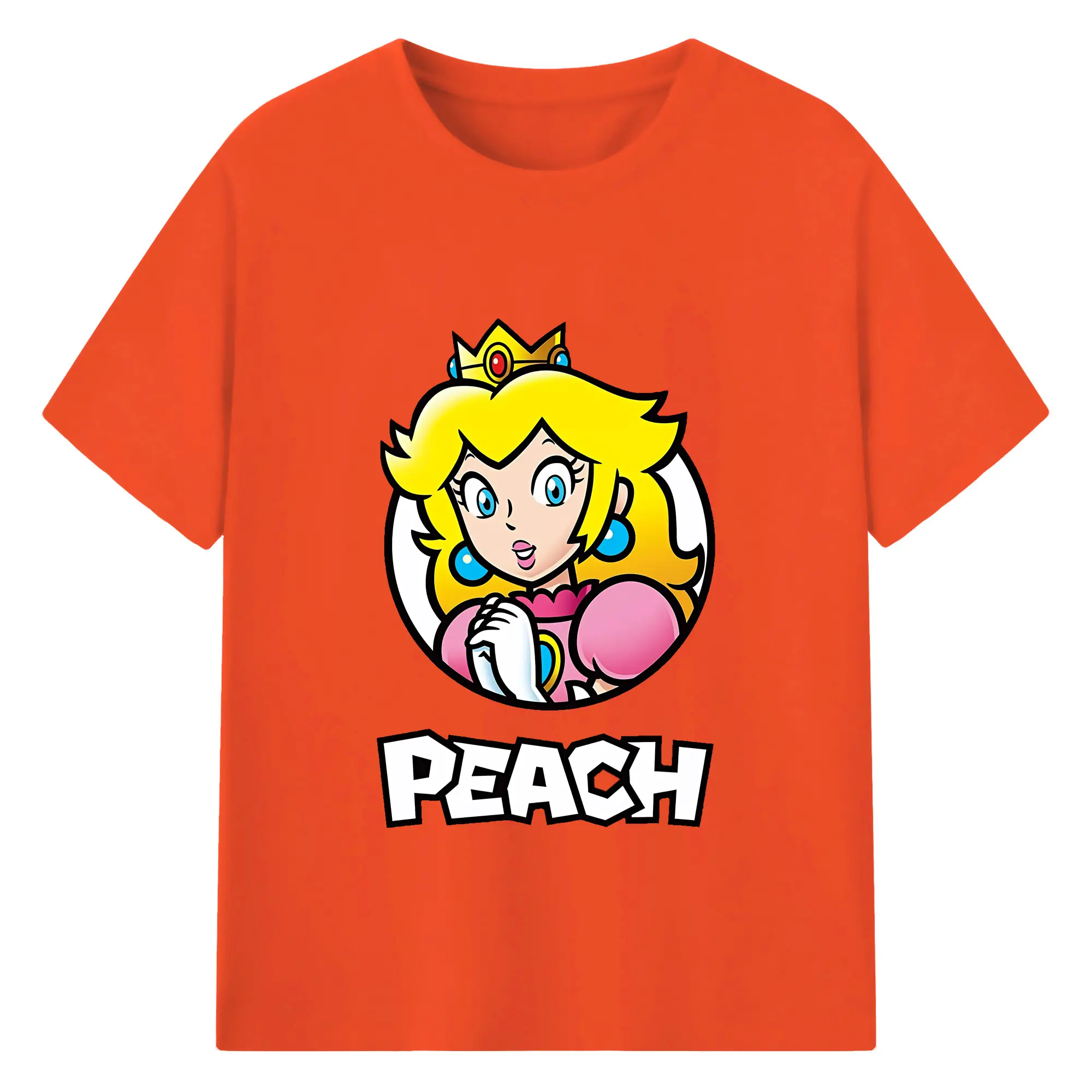 マリオ グッズ ピーチ姫 - 綿100% キッズTシャツ ・ フロントプリント ・ 快適 通気性 ・ スポーツ カジュアル 散歩用