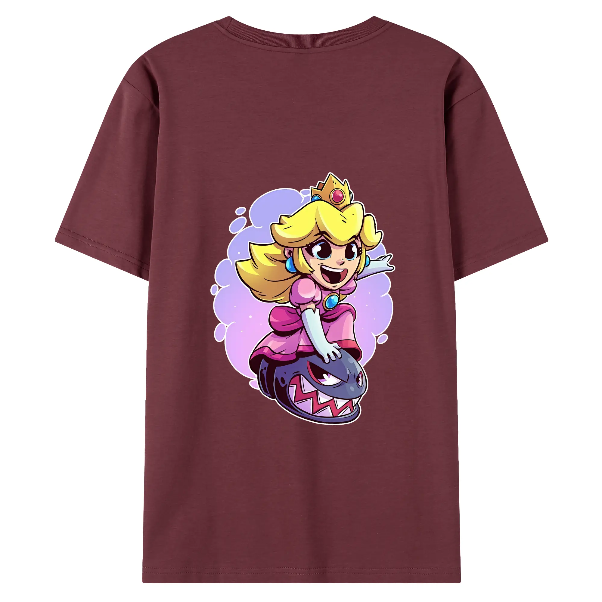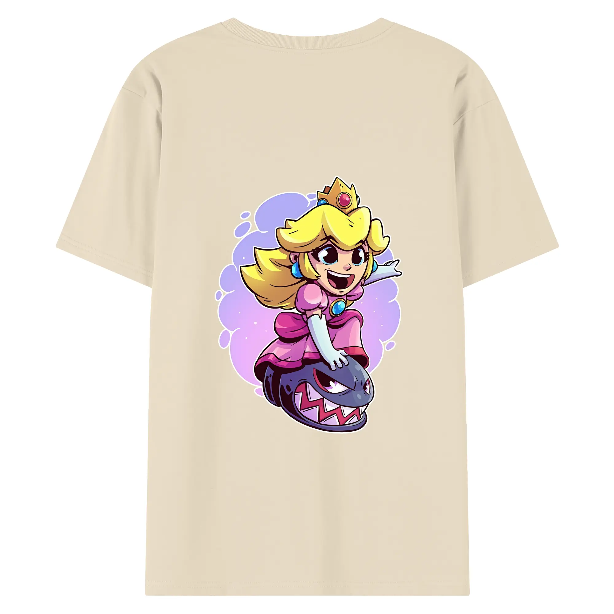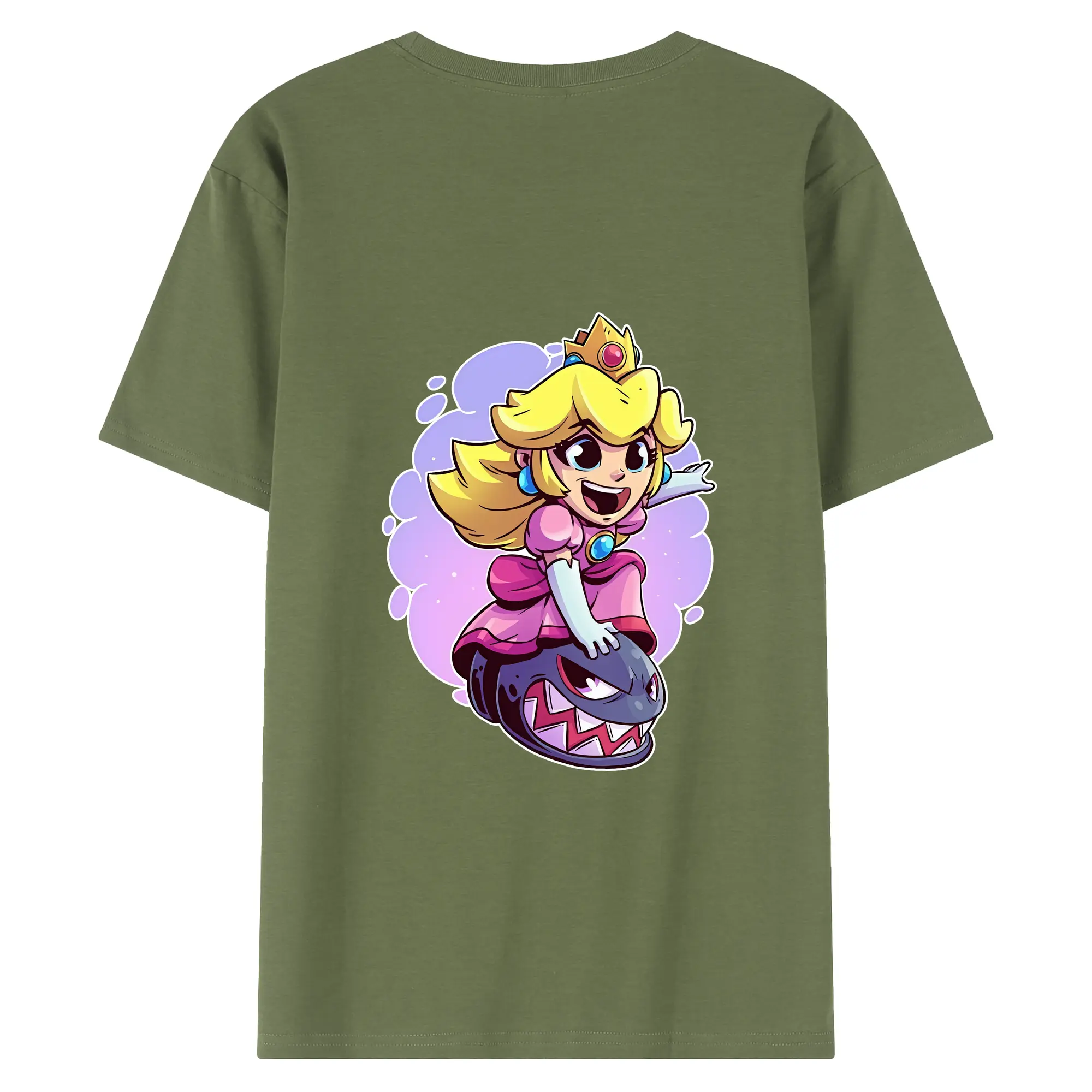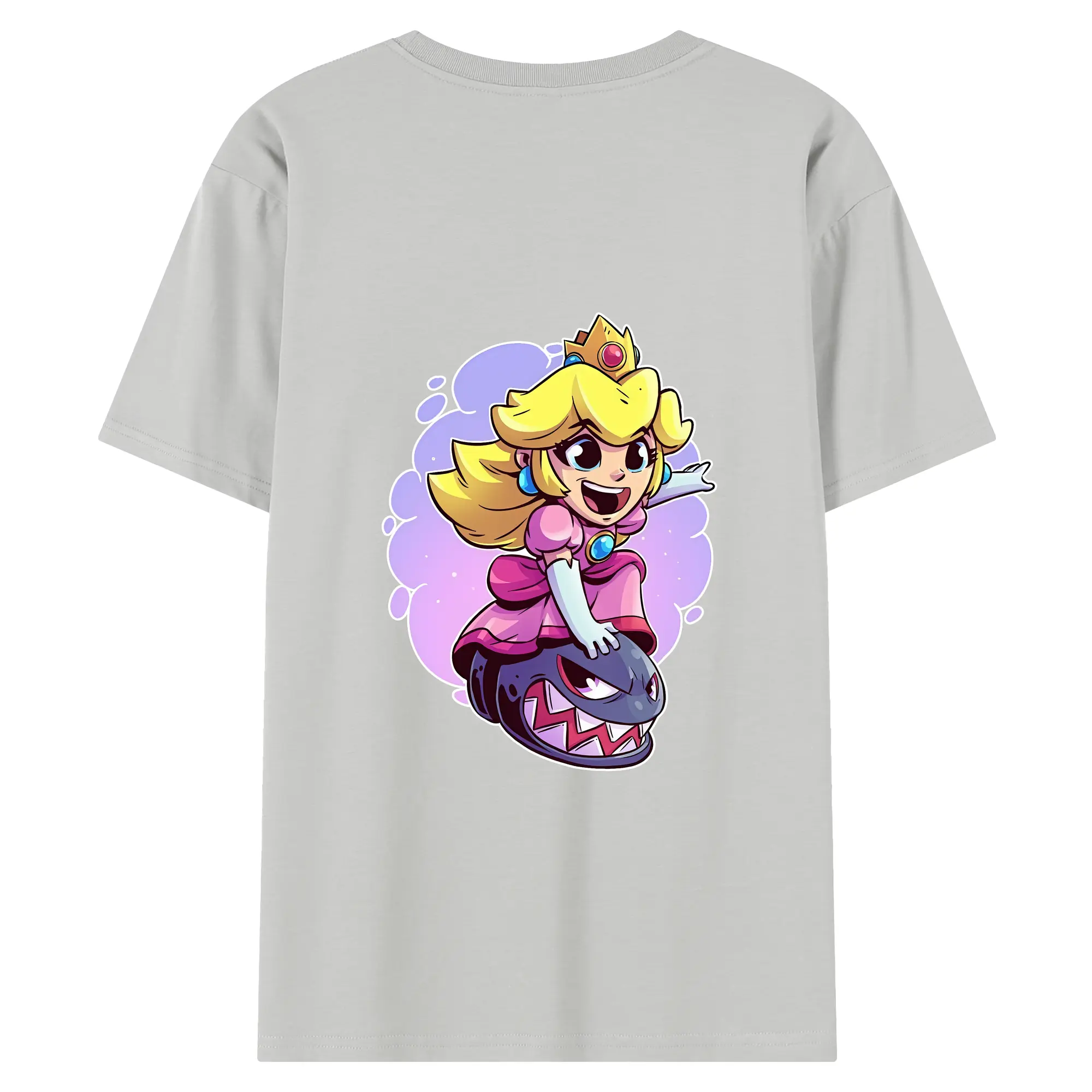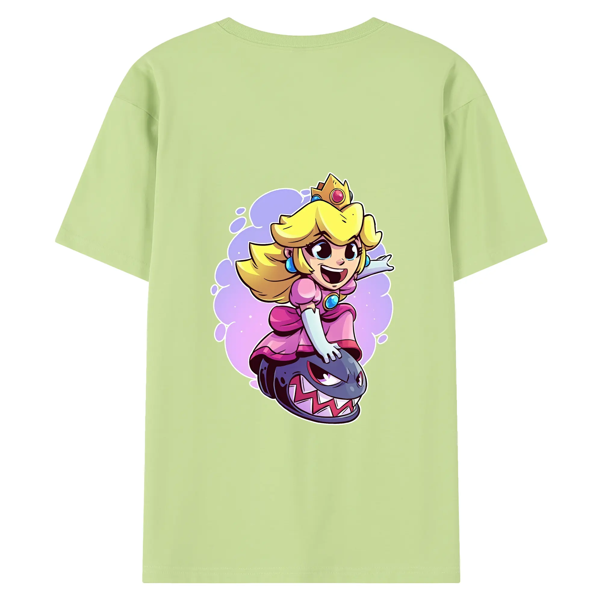 マリオ グッズ ピーチ姫 - 綿100% ヴィンテージ風 半袖Tシャツ ・ 背面プリント ・ 柔らか肌触り ・ 通気性 快適 ・ スポーツ カジュアル 外出用