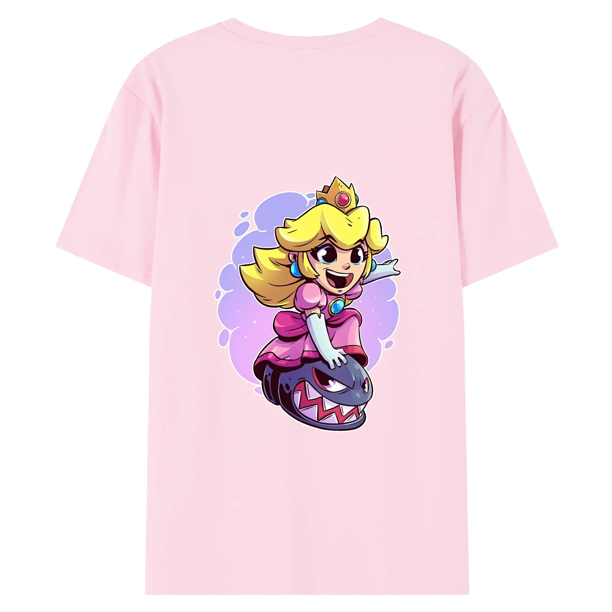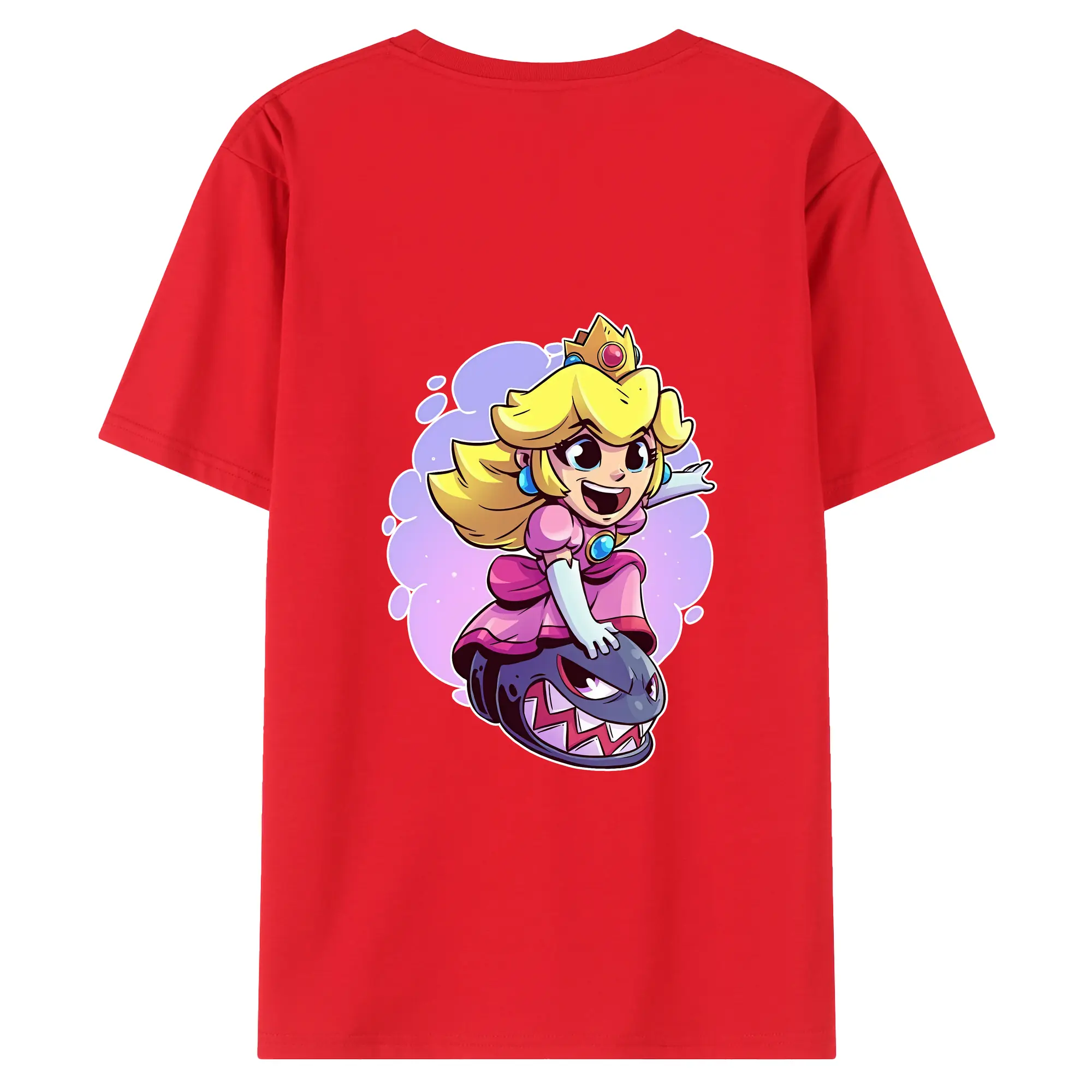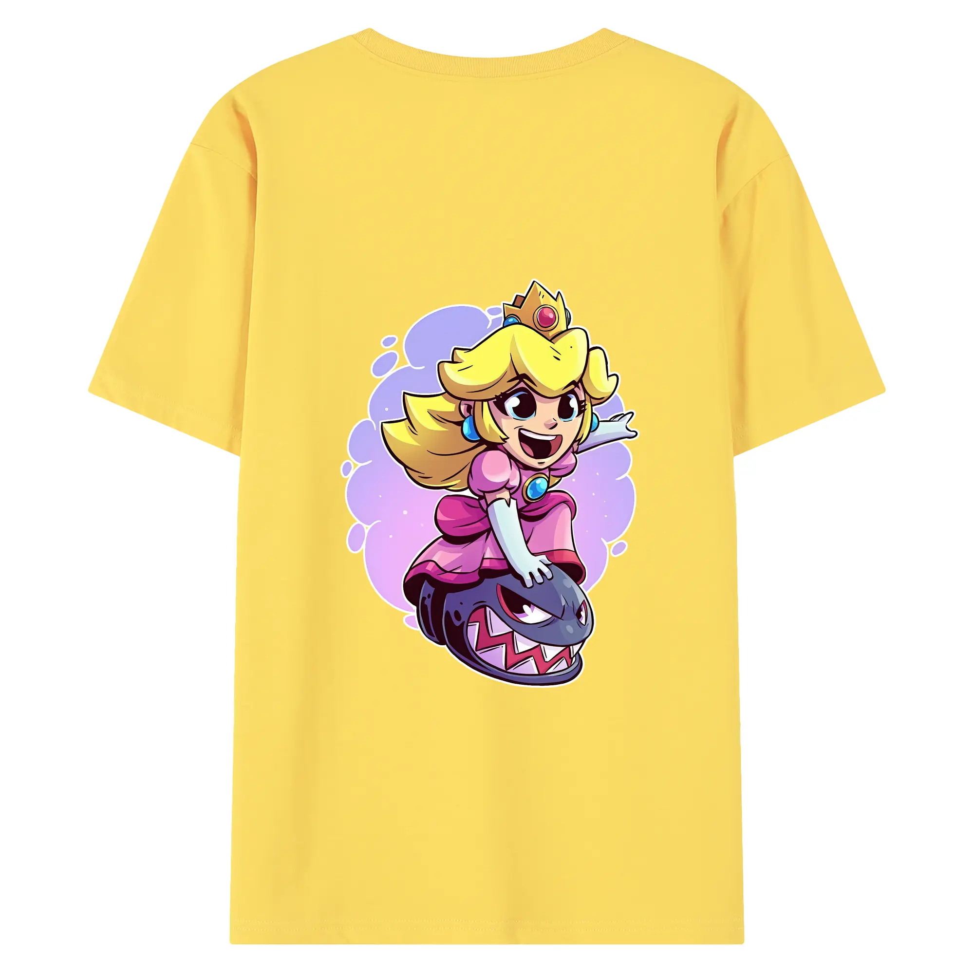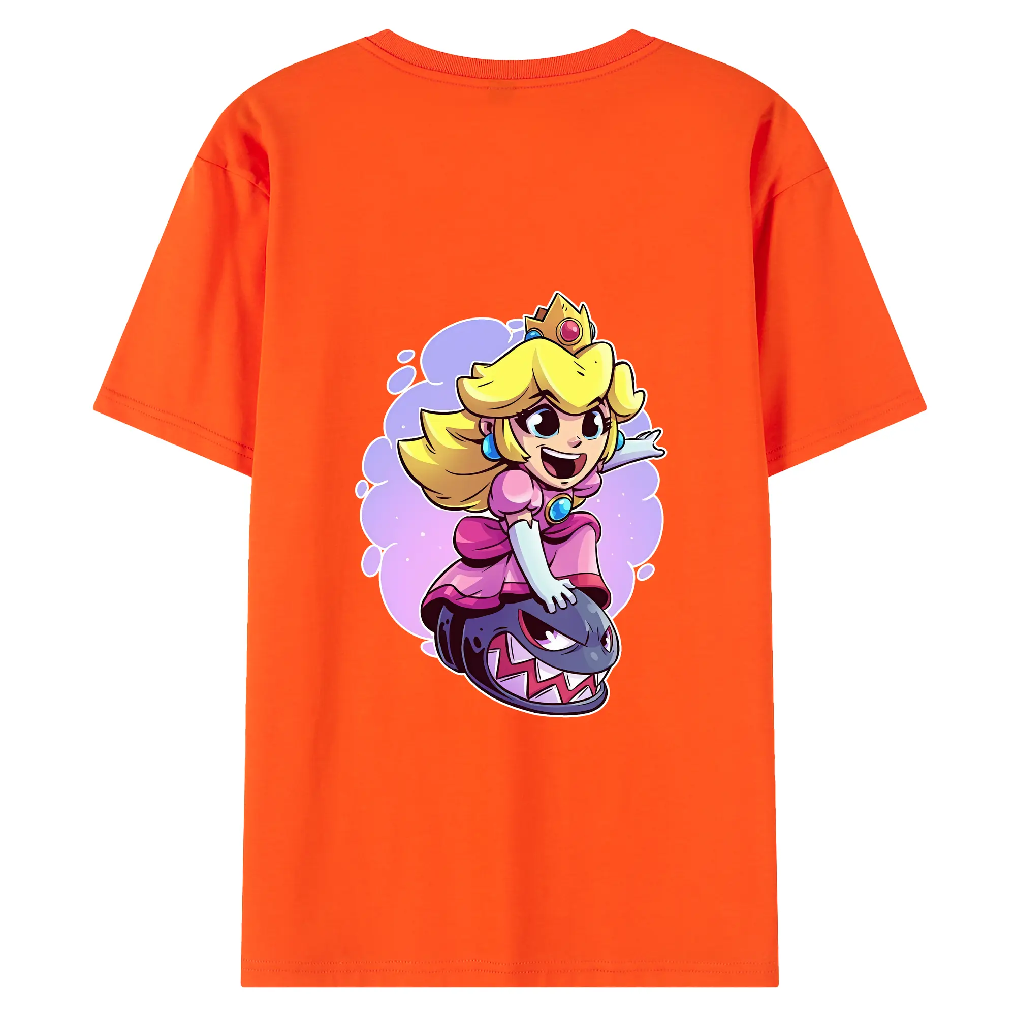 マリオ グッズ ピーチ姫 - 綿100% 半袖Tシャツ ・ フロントプリント ・ 快適 通気性 ・ 日常使い 散歩 スポーツ用