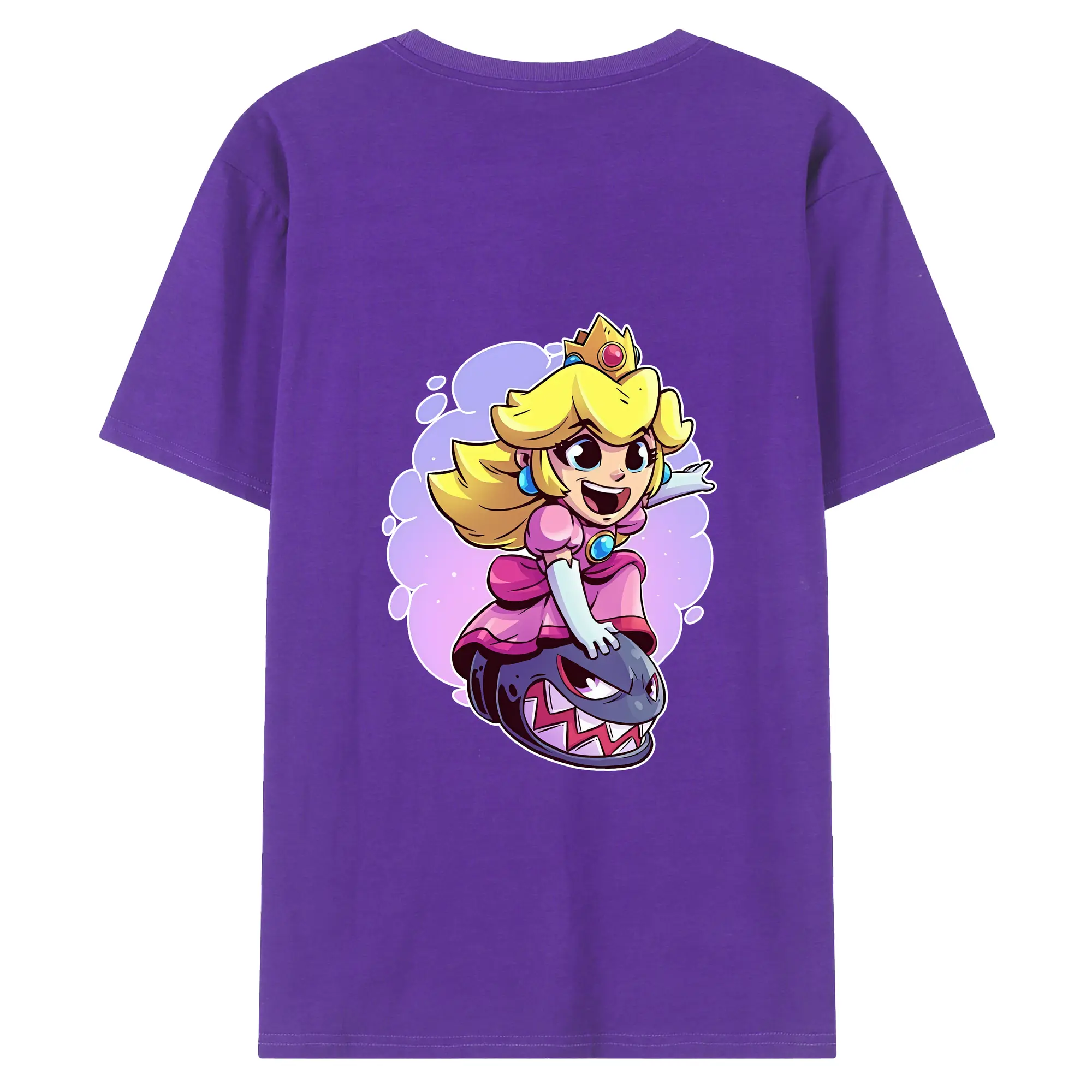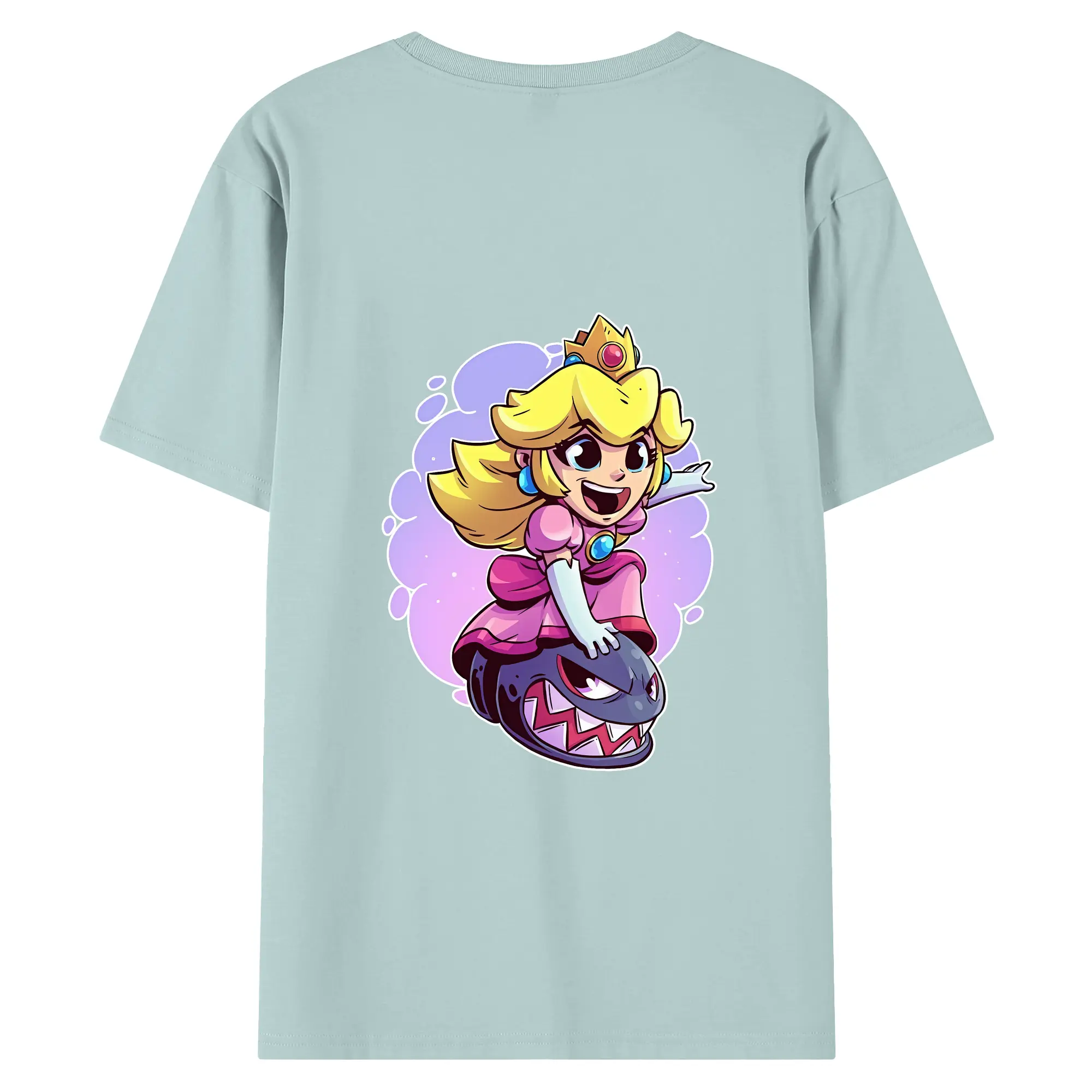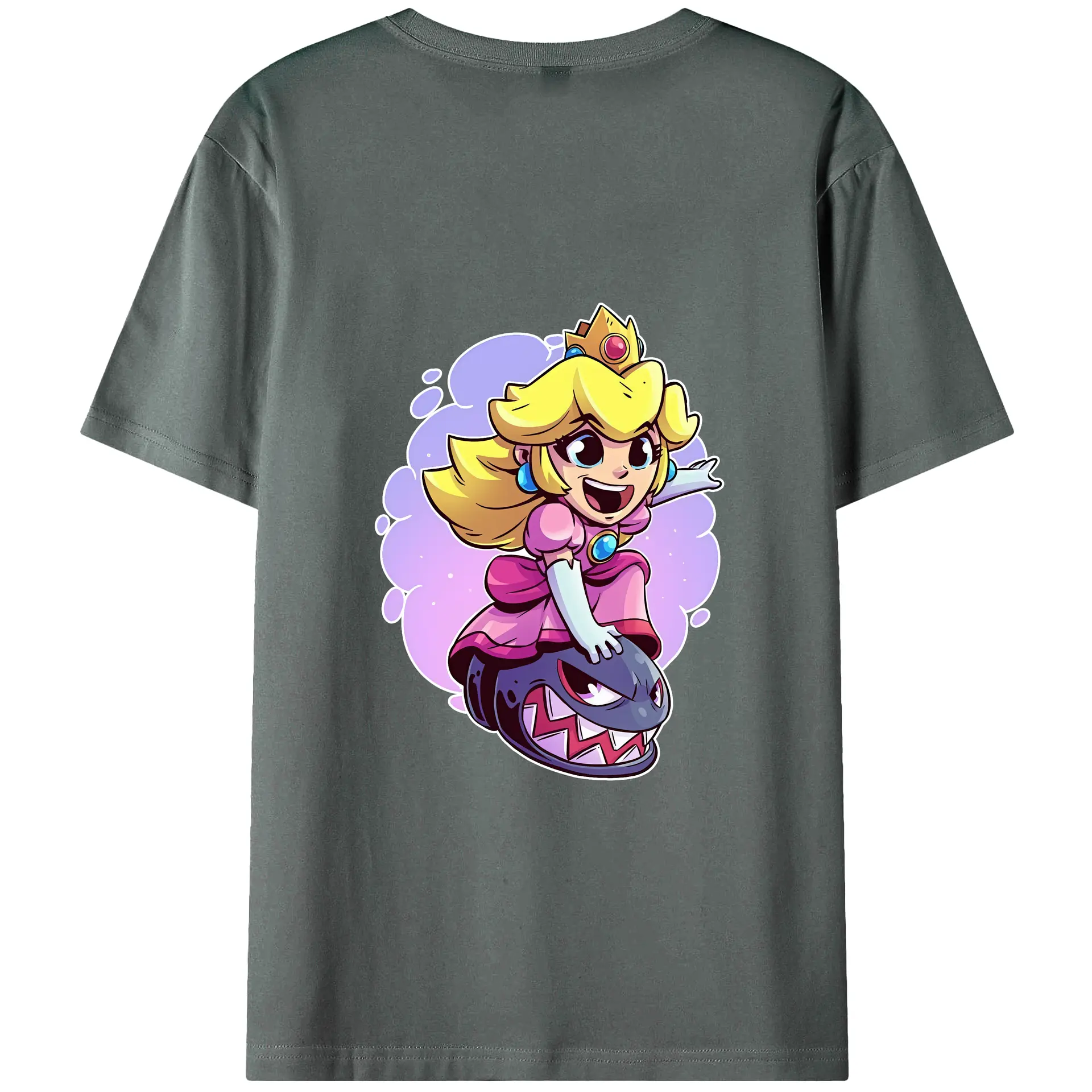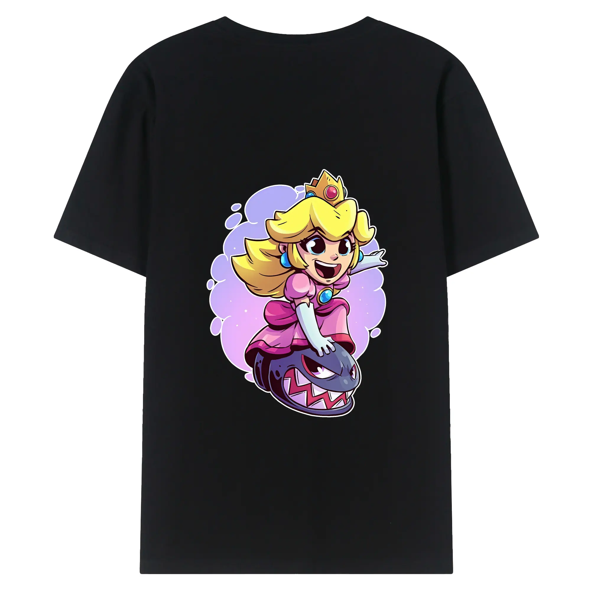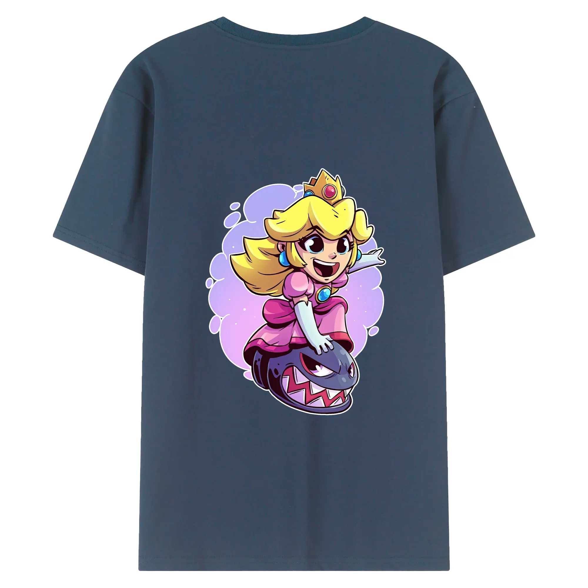 マリオ グッズ ピーチ姫 - 綿100% 半袖Tシャツ ・ フロントプリント ・ 快適 通気性 ・ 日常使い 散歩 スポーツ用