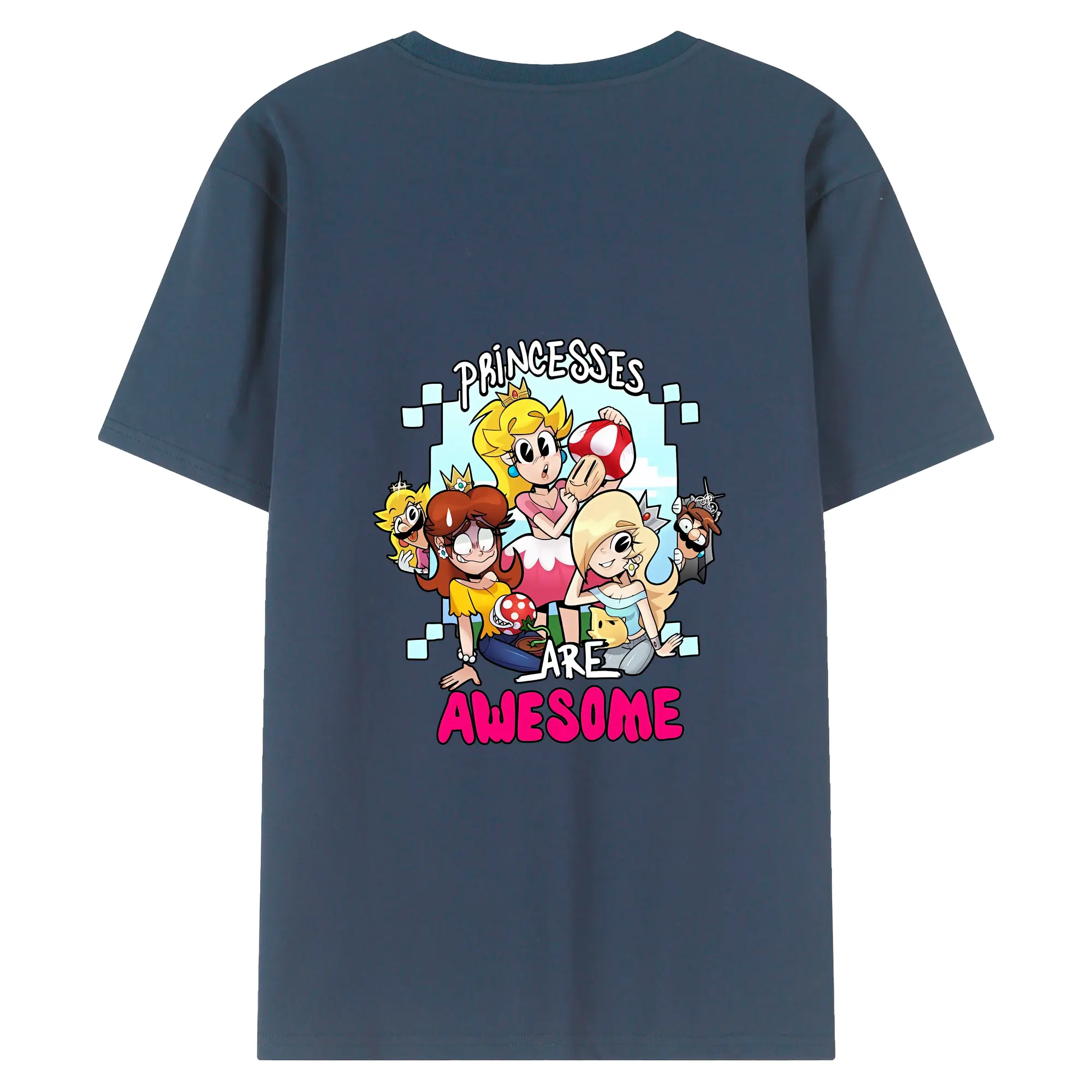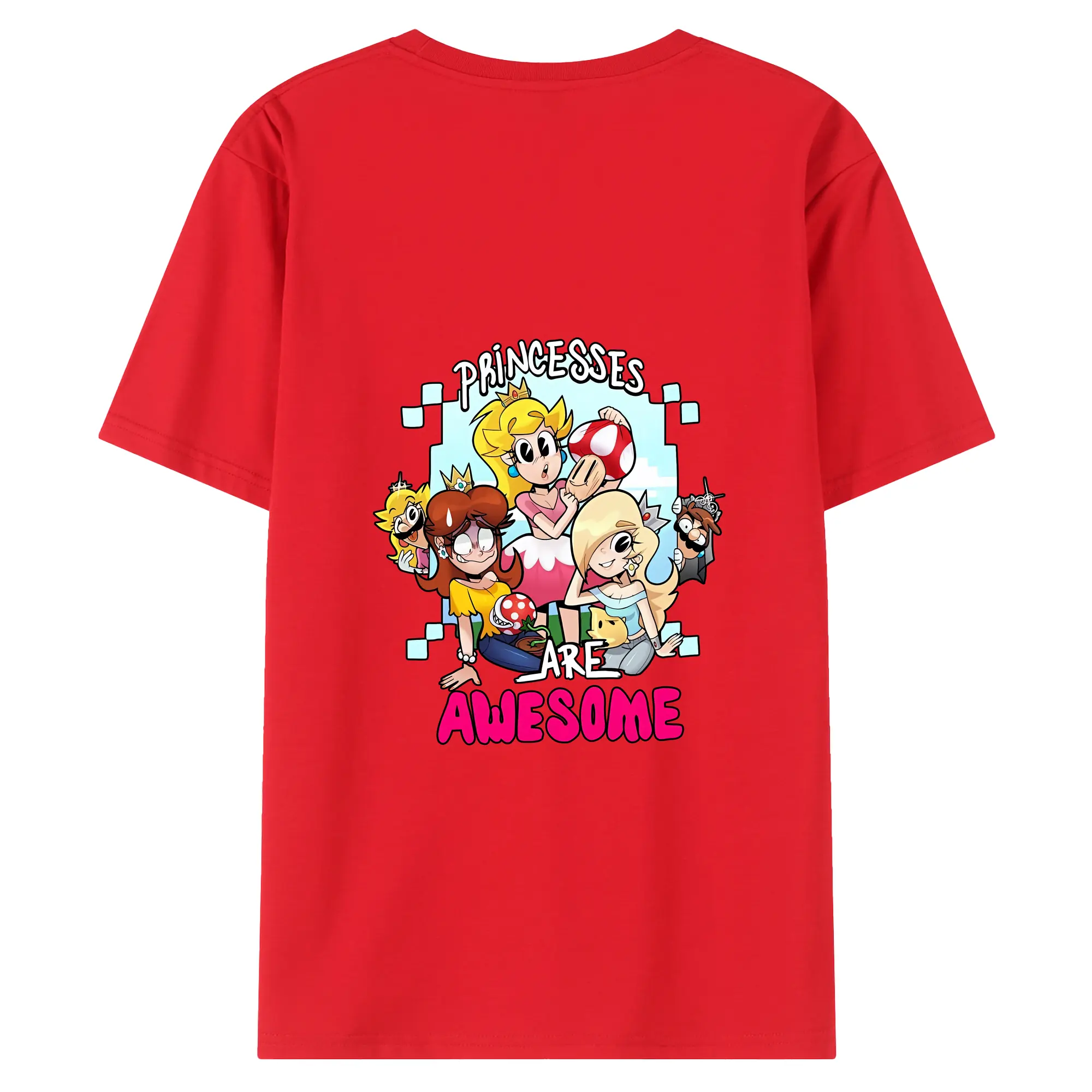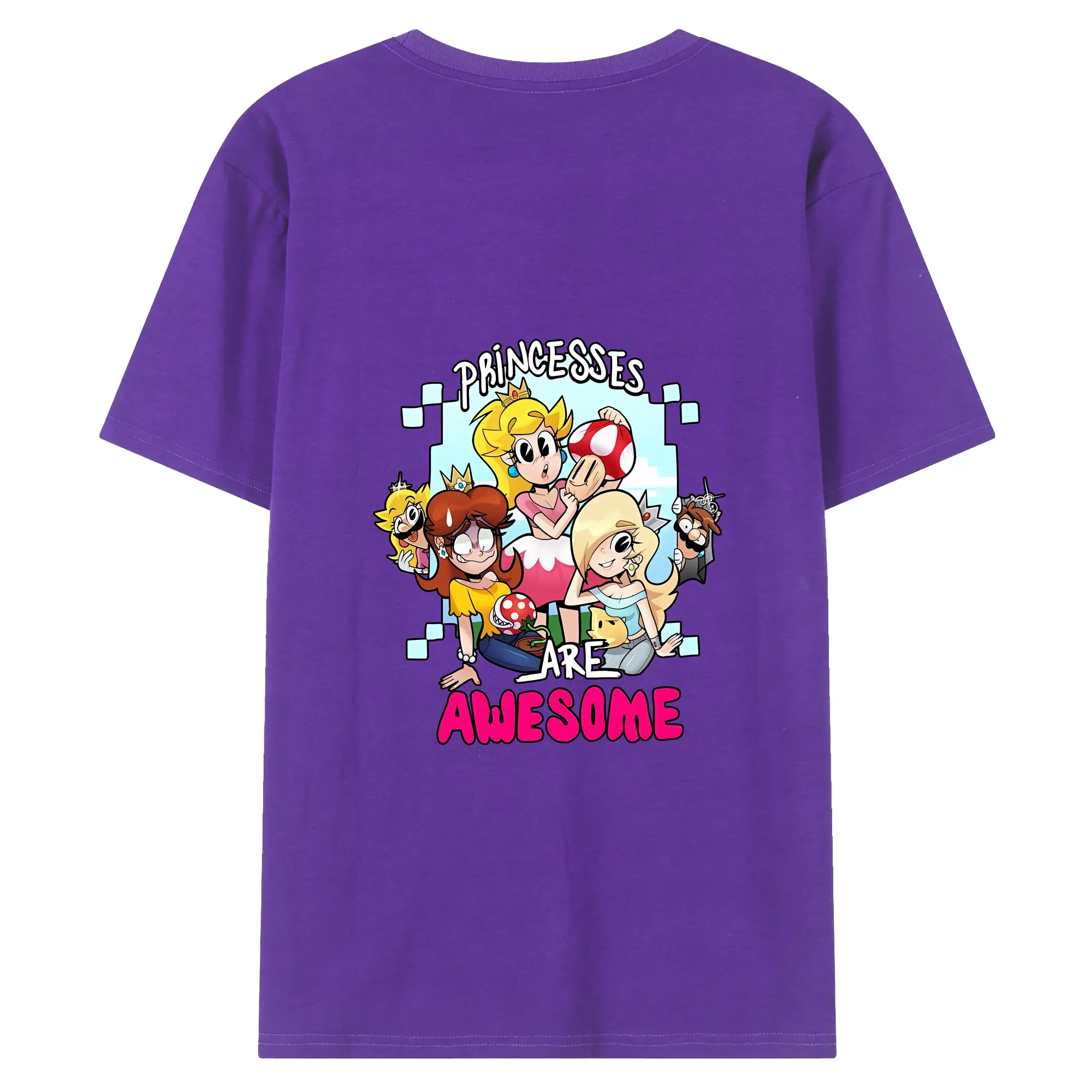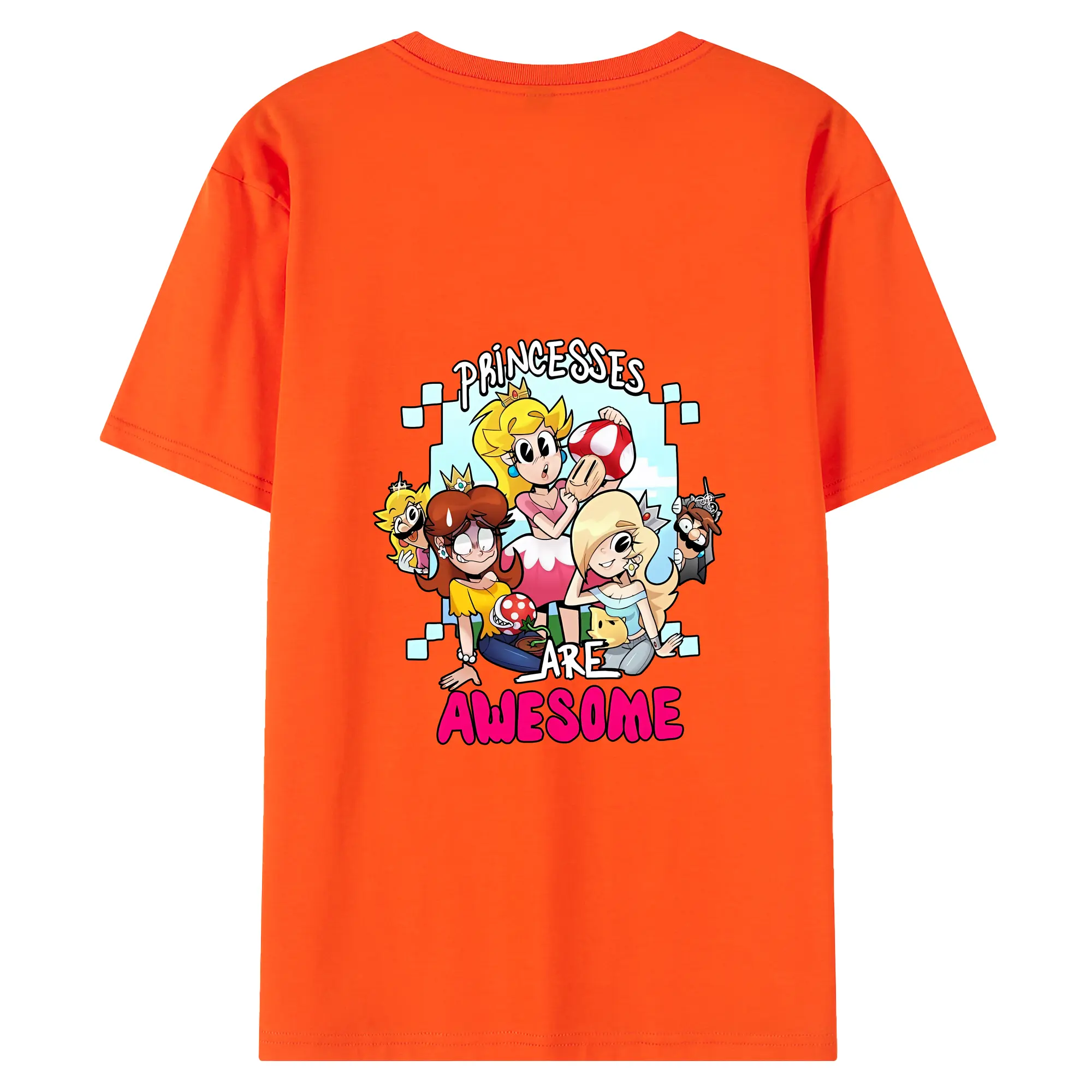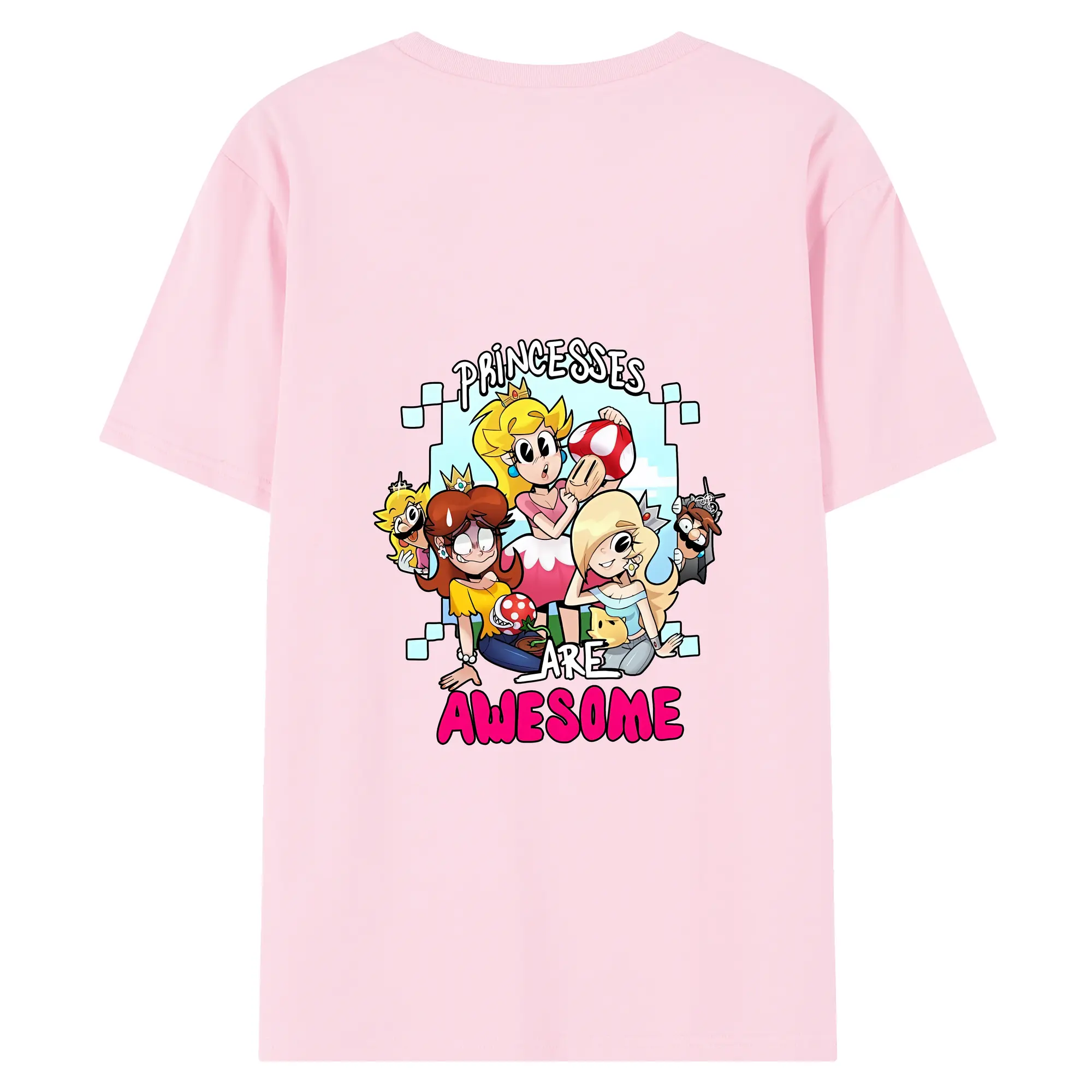 マリオ グッズ ピーチ姫 - 綿100% ヴィンテージ風 半袖Tシャツ ・ 背面プリント ・ 柔らか肌触り ・ 通気性 快適 ・ スポーツ カジュアル 外出用