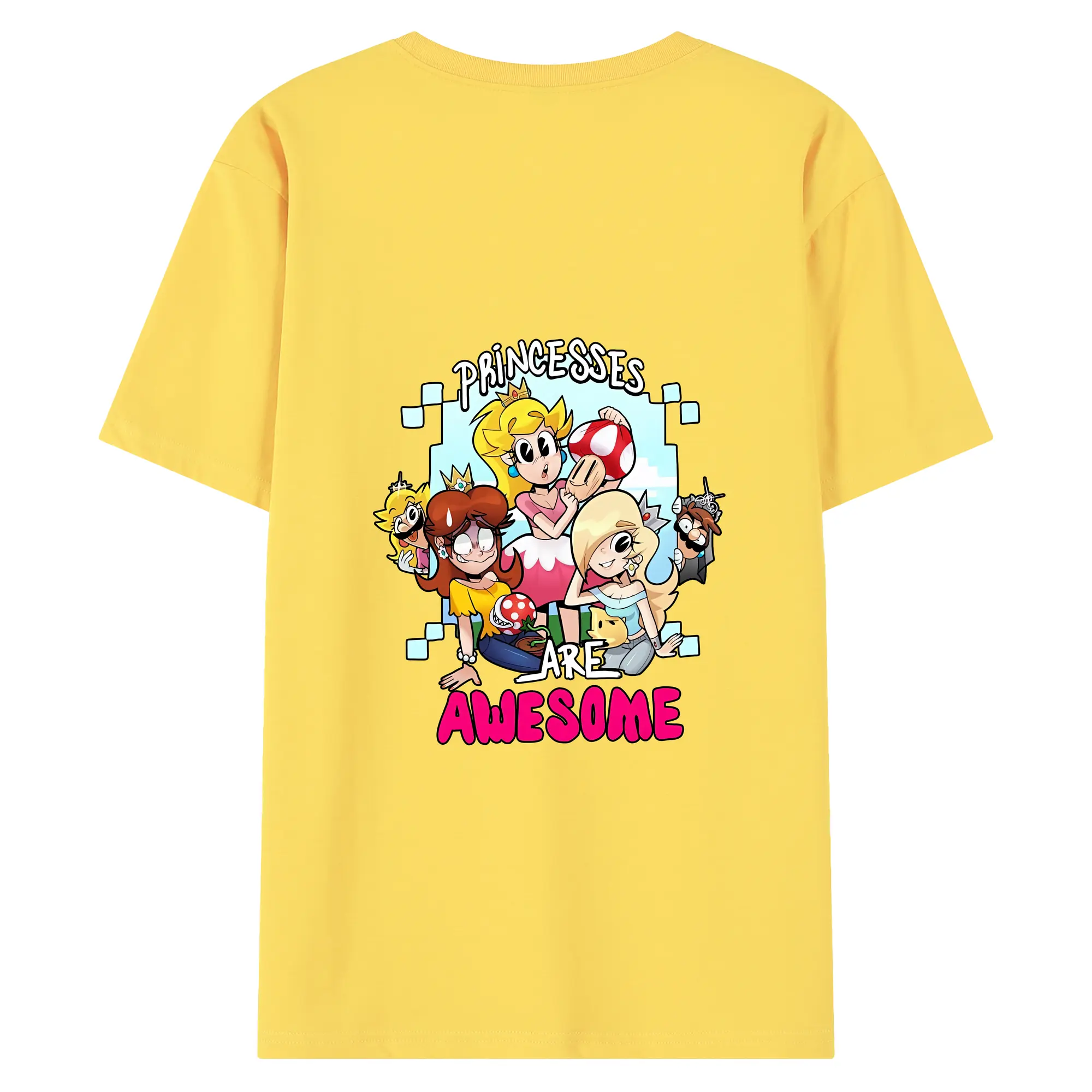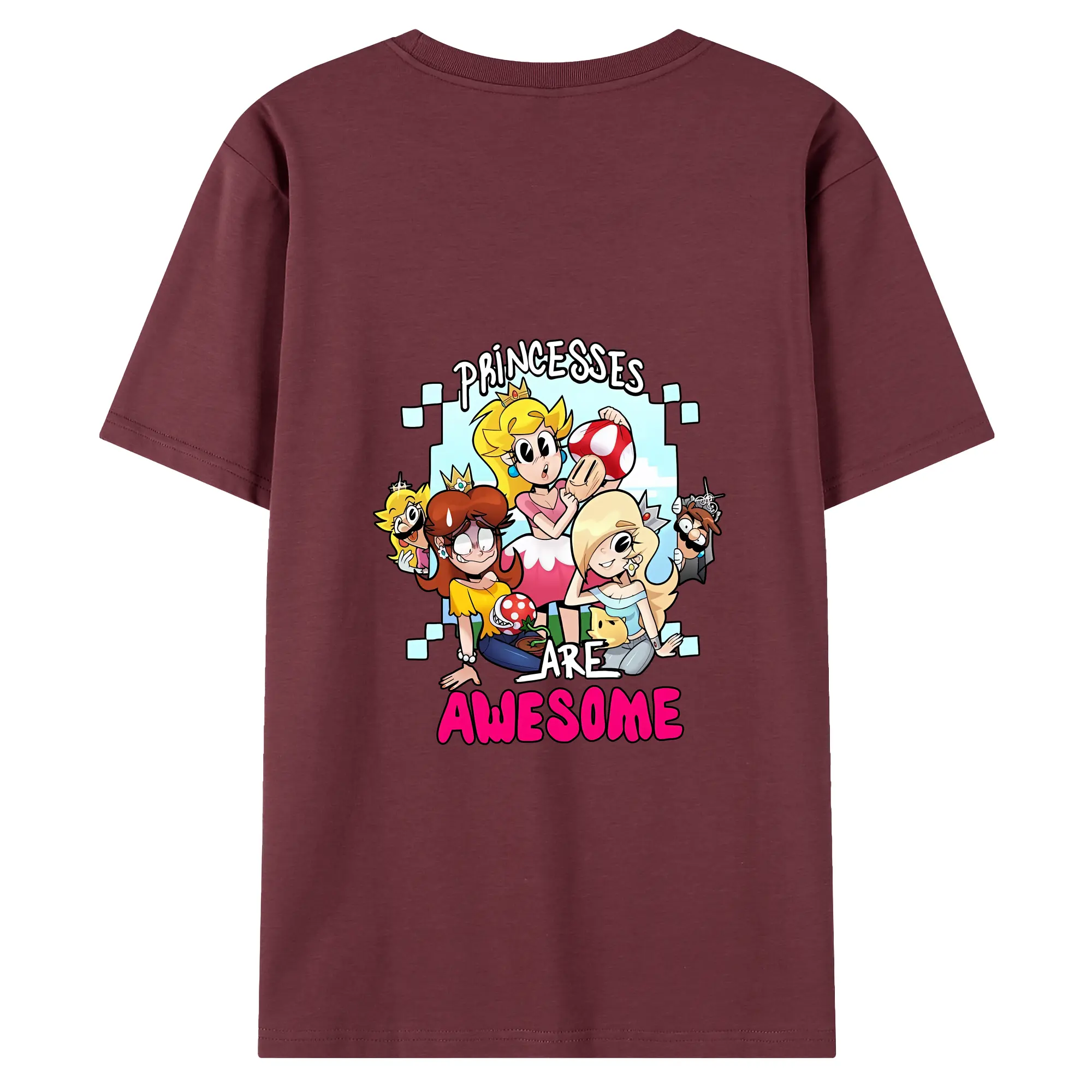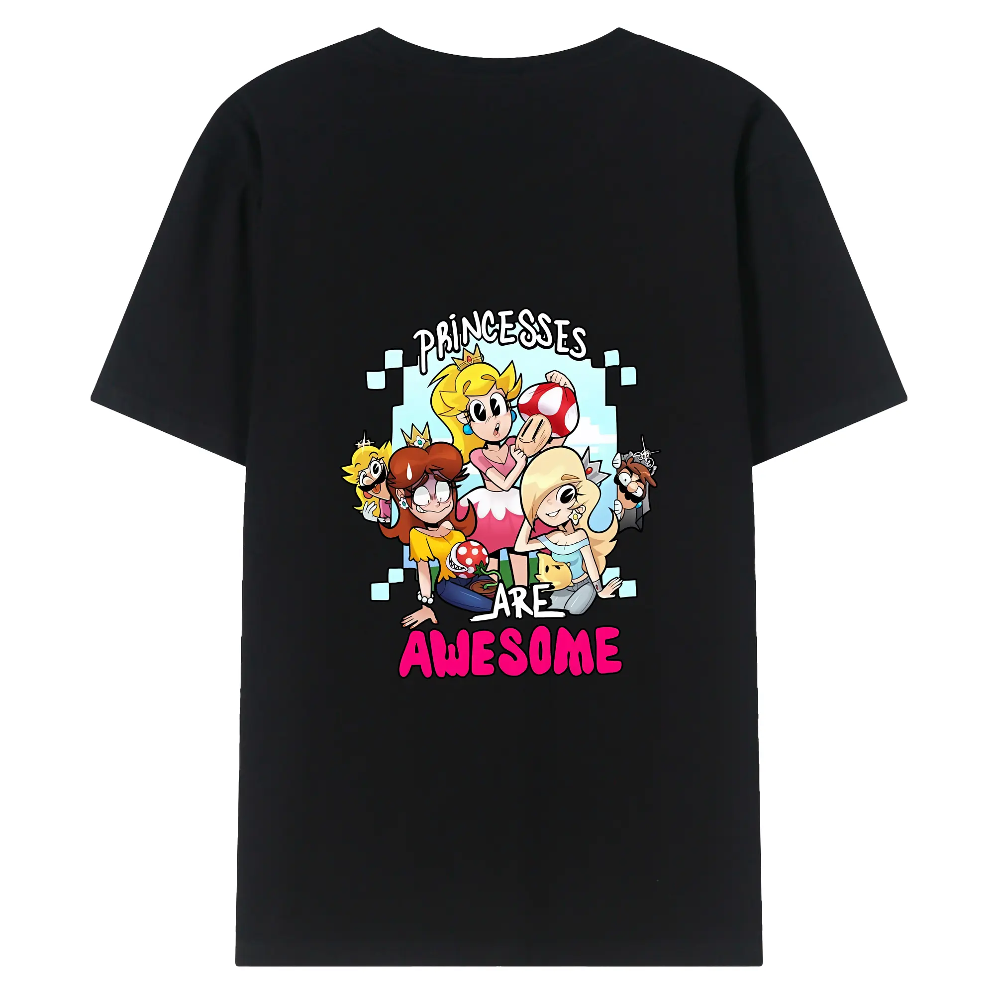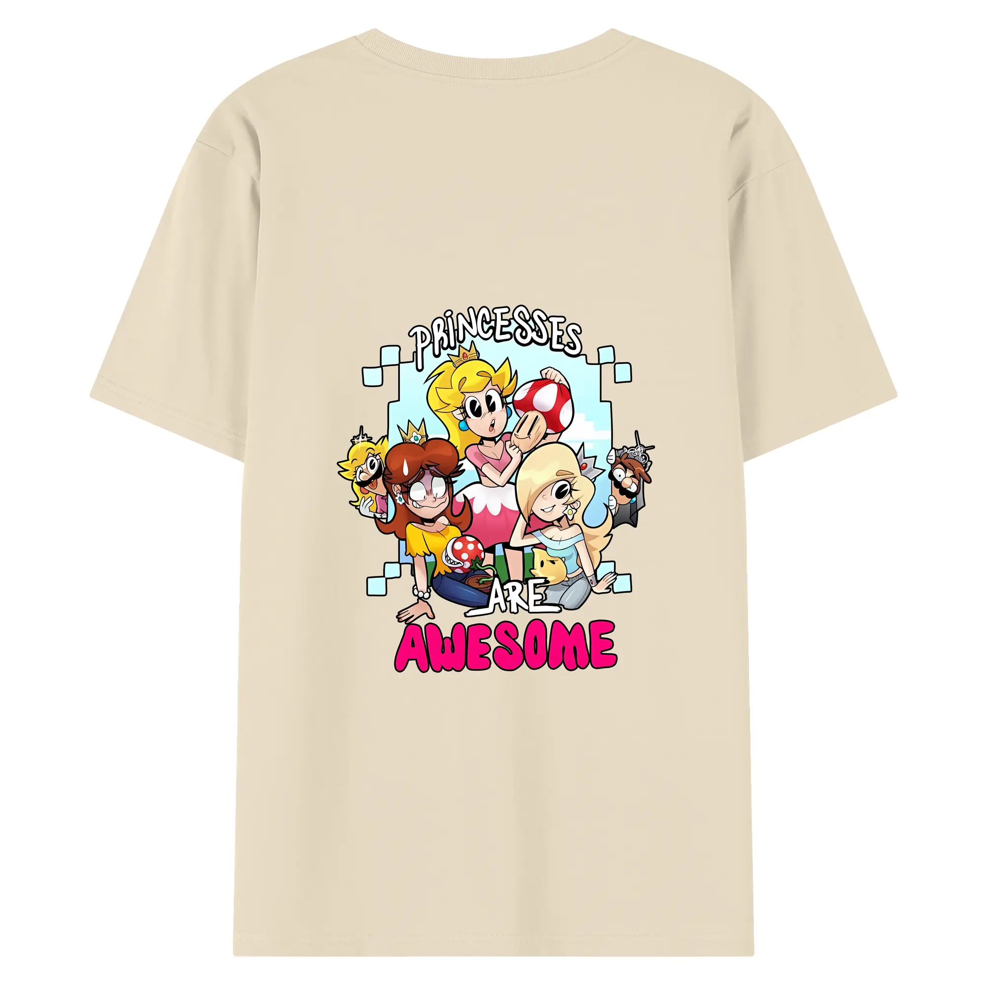 マリオ グッズ ピーチ姫 - 綿100% ヴィンテージ風 半袖Tシャツ ・ 背面プリント ・ 柔らか肌触り ・ 通気性 快適 ・ スポーツ カジュアル 外出用