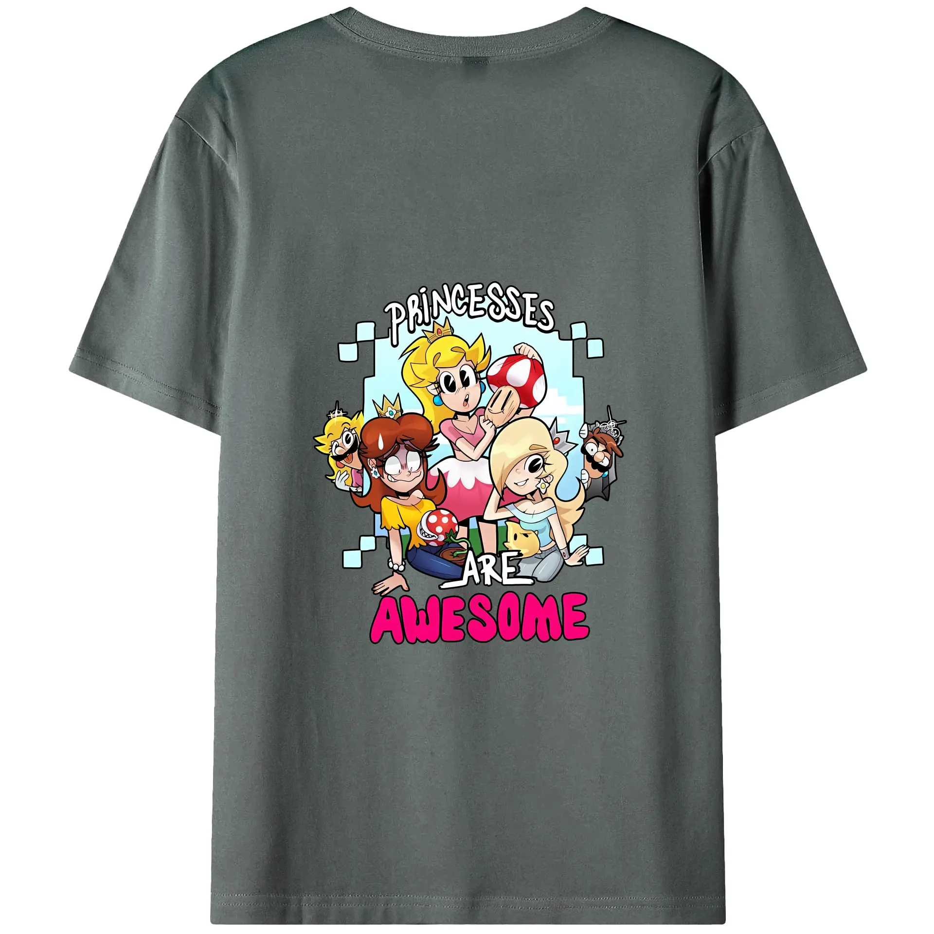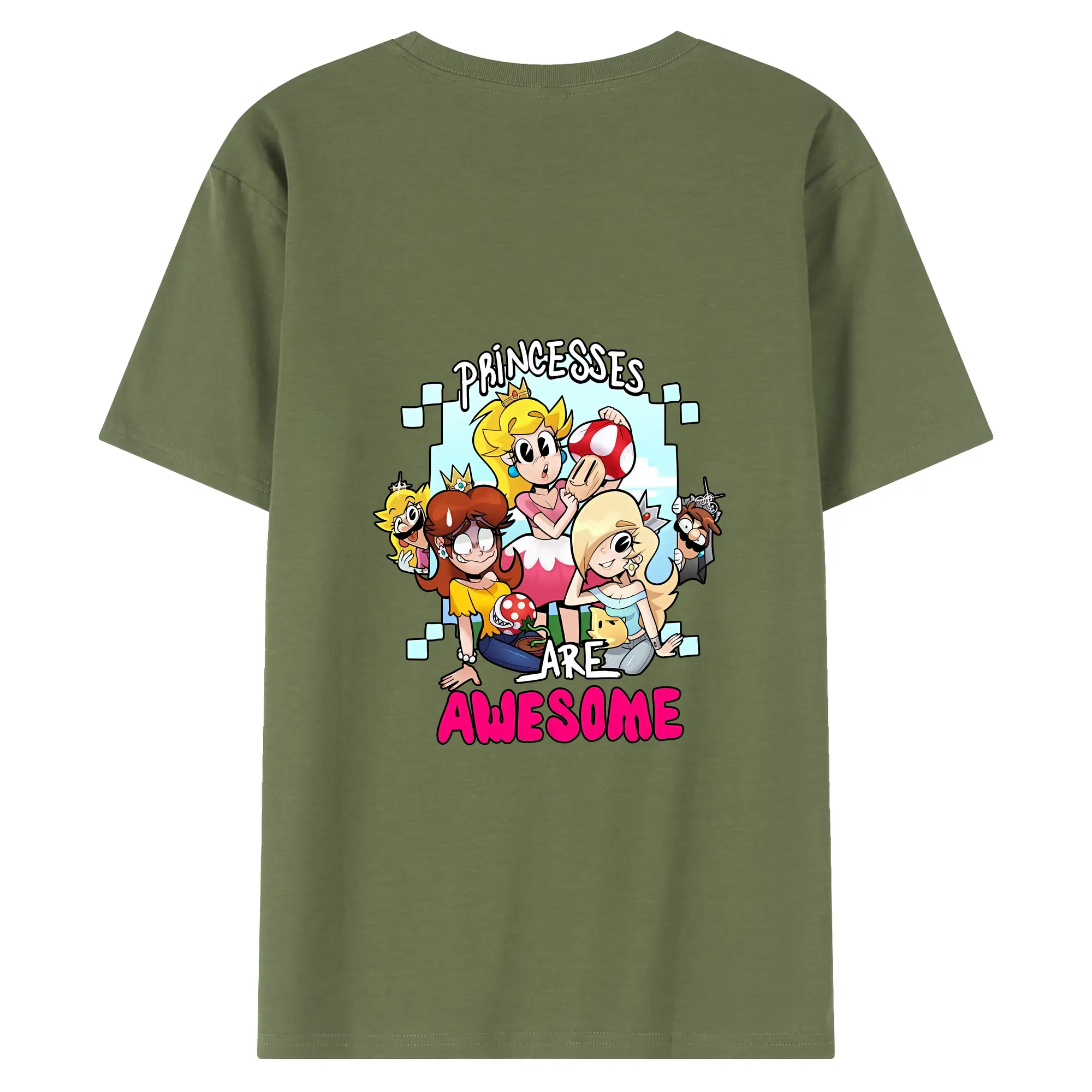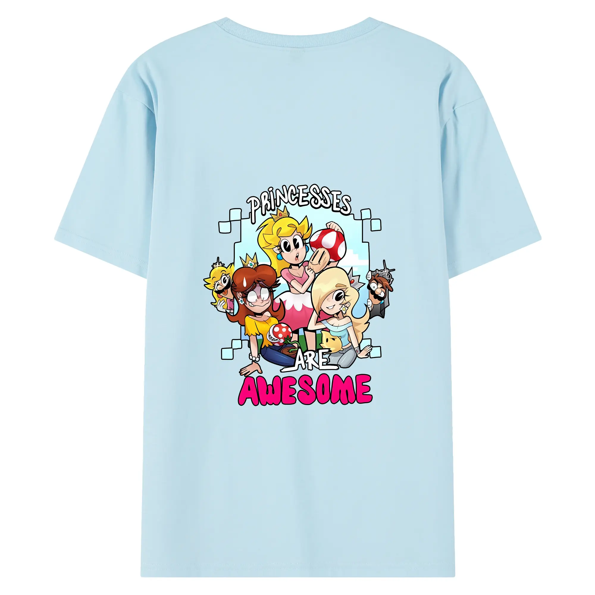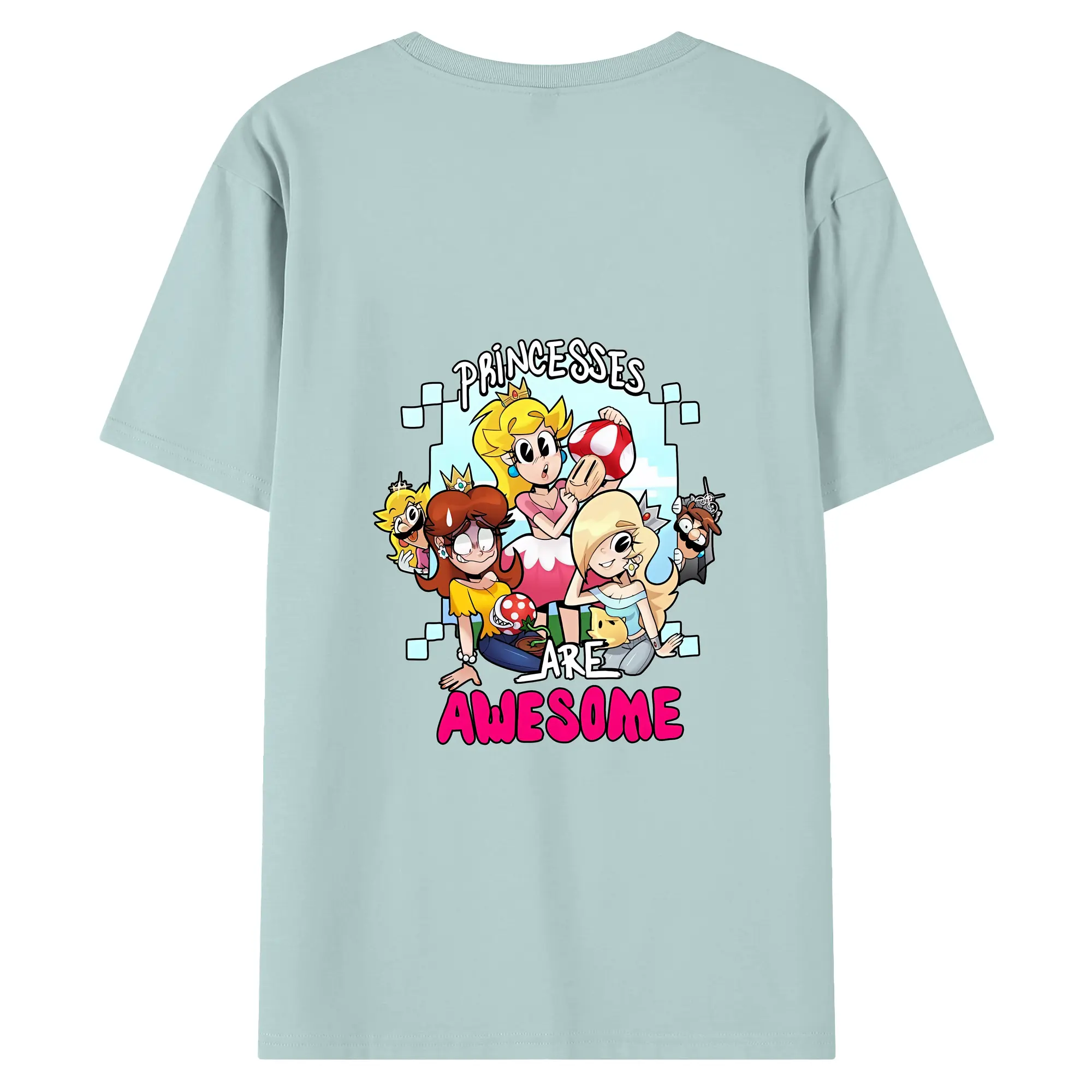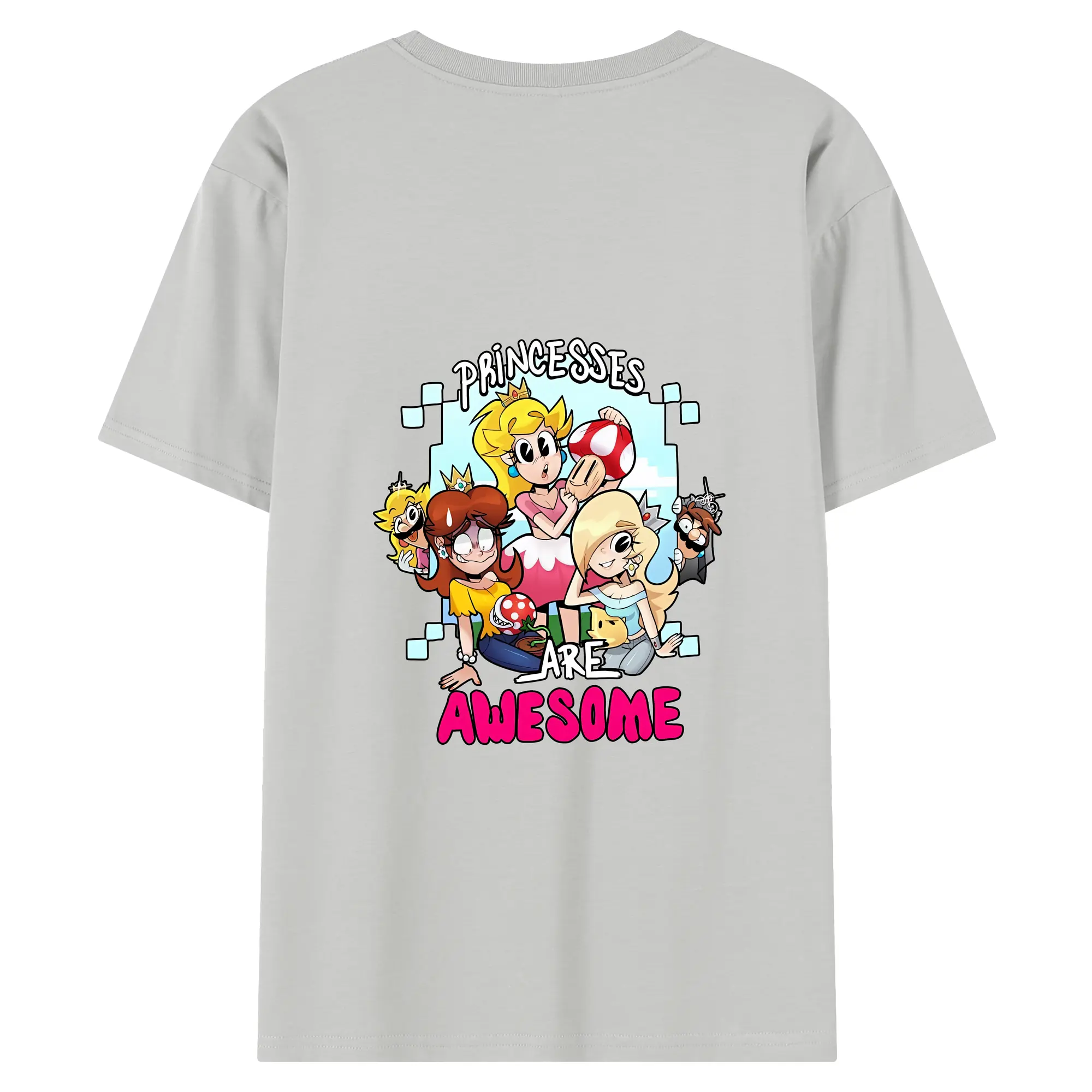 マリオ グッズ ピーチ姫 - 綿100% ヴィンテージ風 半袖Tシャツ ・ 背面プリント ・ 柔らか肌触り ・ 通気性 快適 ・ スポーツ カジュアル 外出用