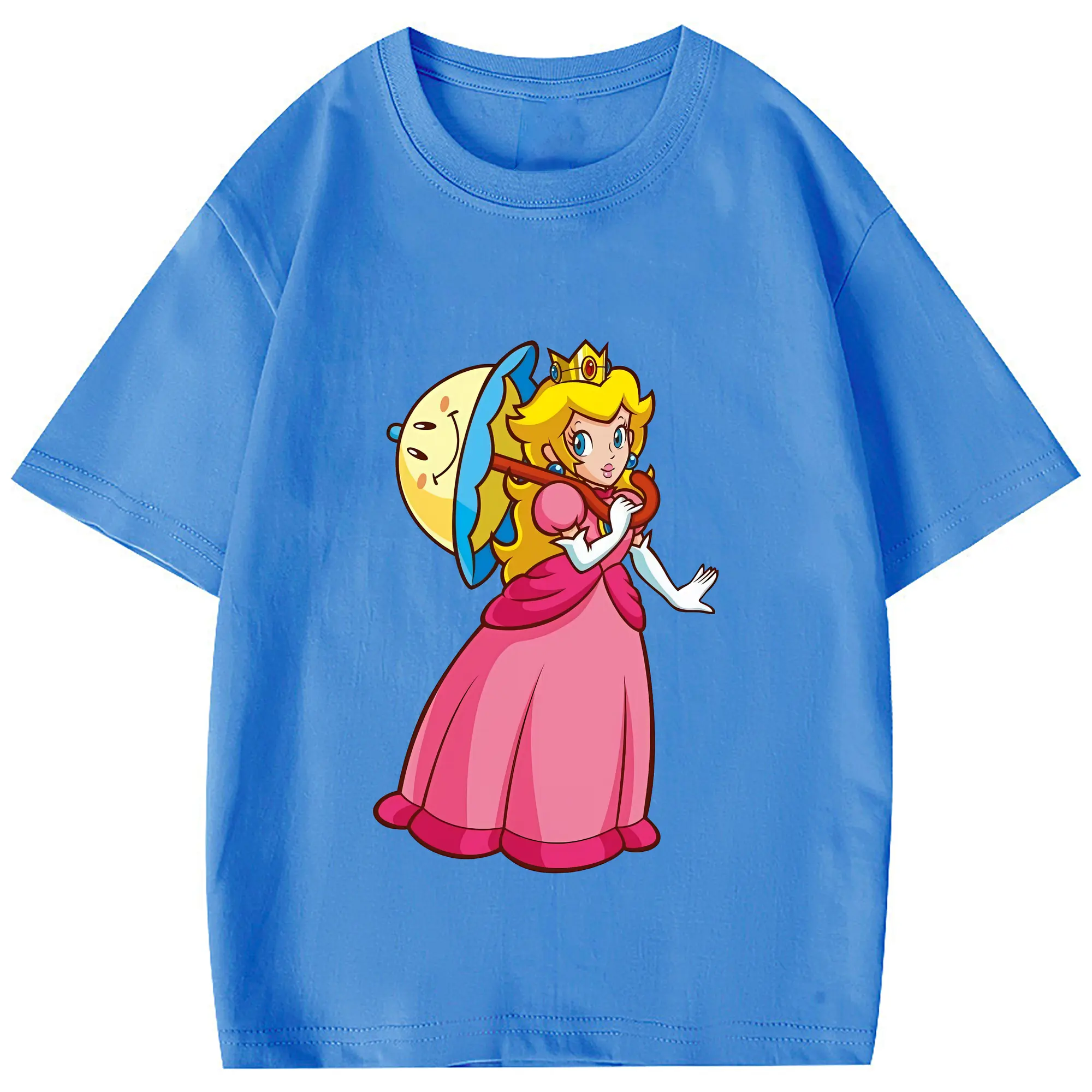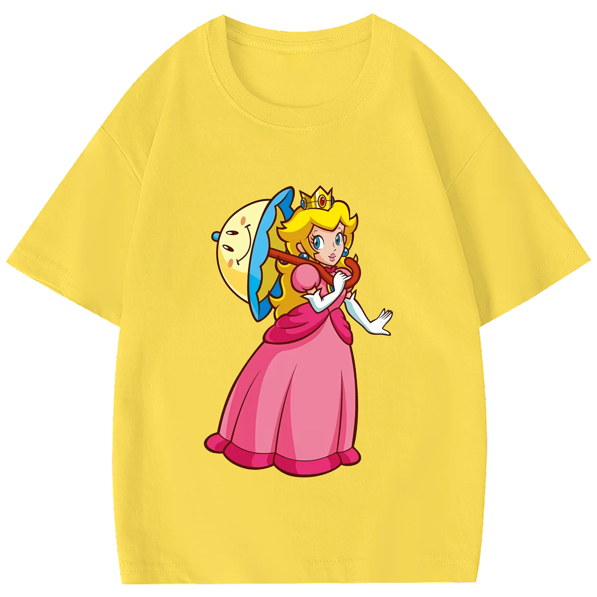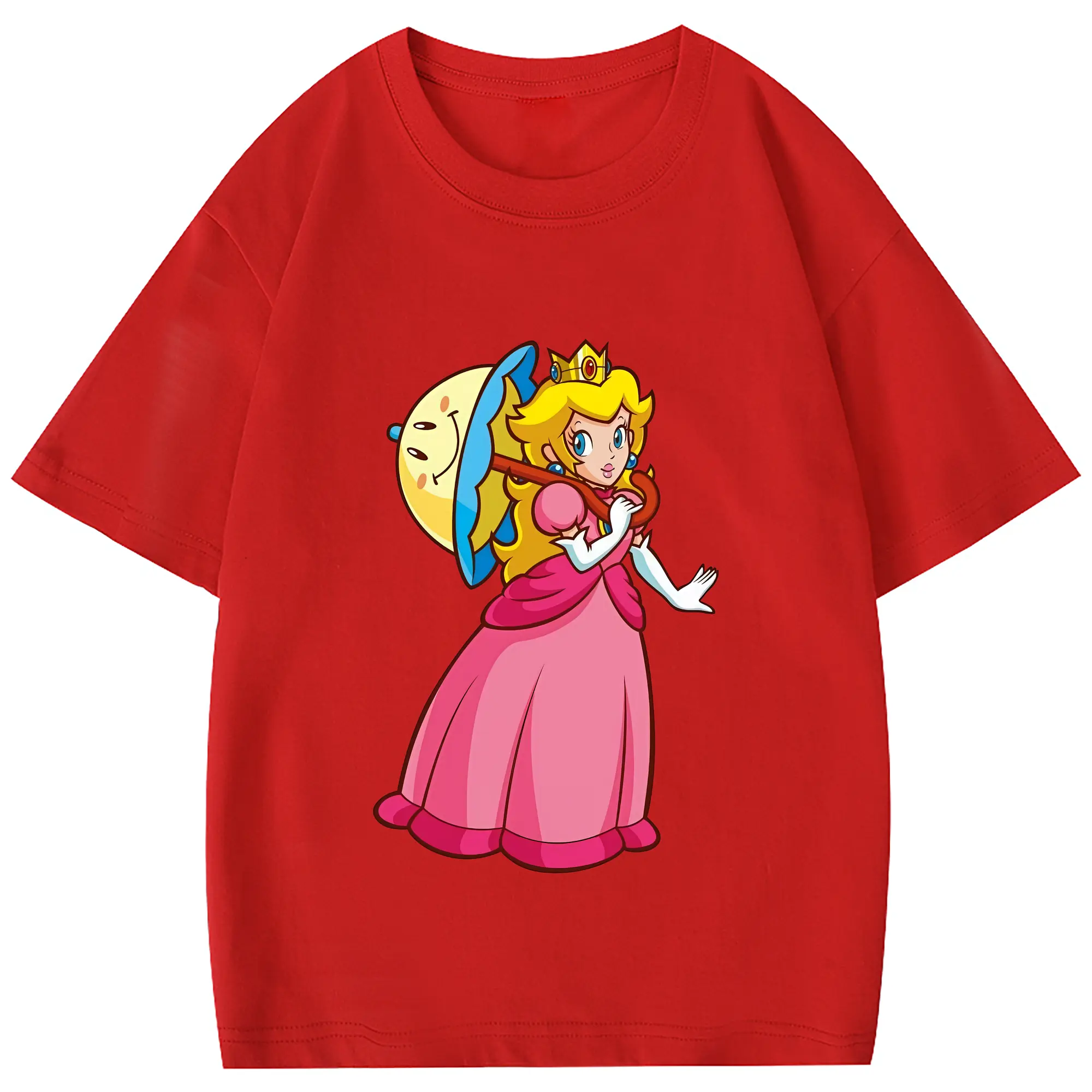 マリオ グッズ ピーチ姫 - 綿100% 半袖Tシャツ ・ フロントプリント ・ 快適 通気性 ・ 日常使い 散歩 スポーツ用
