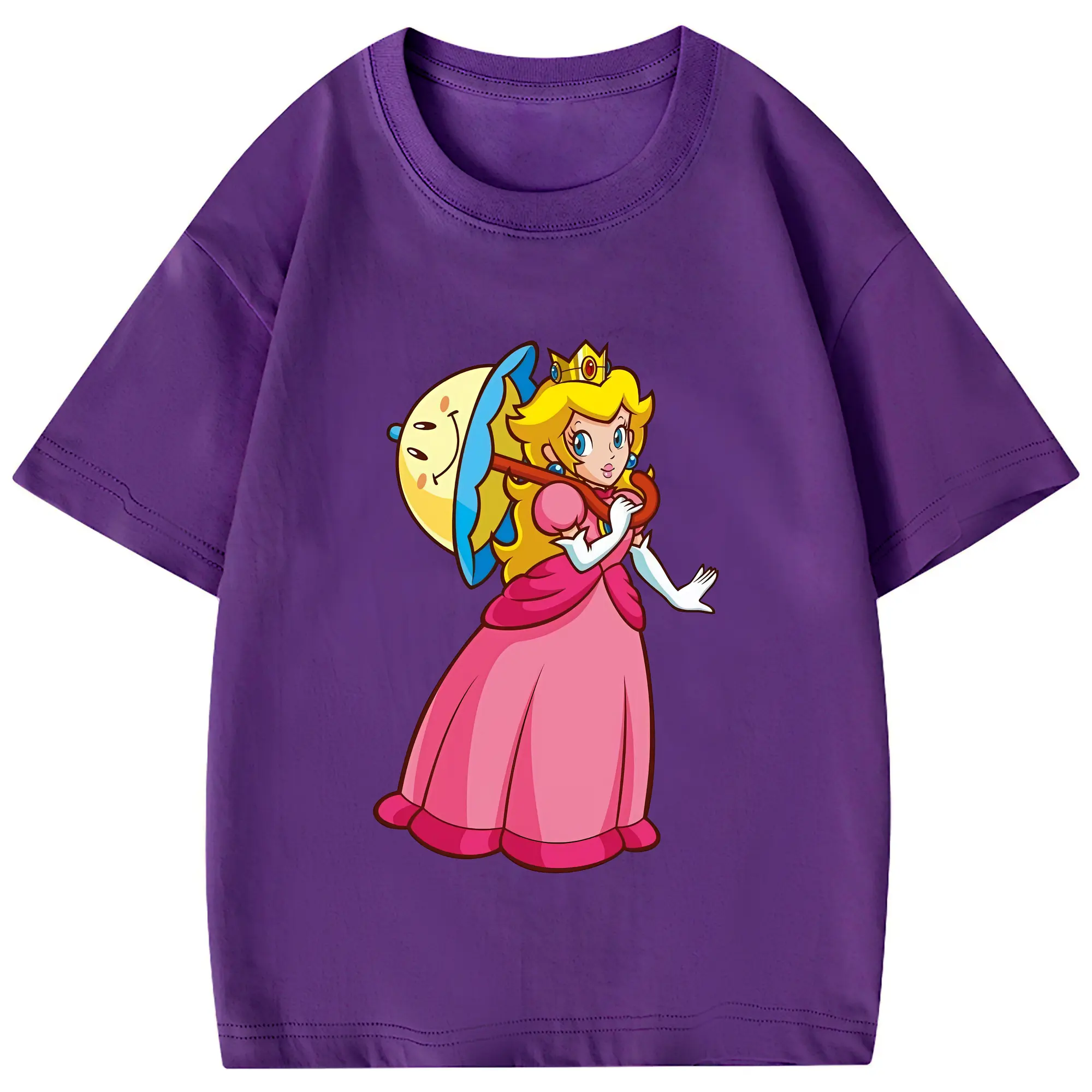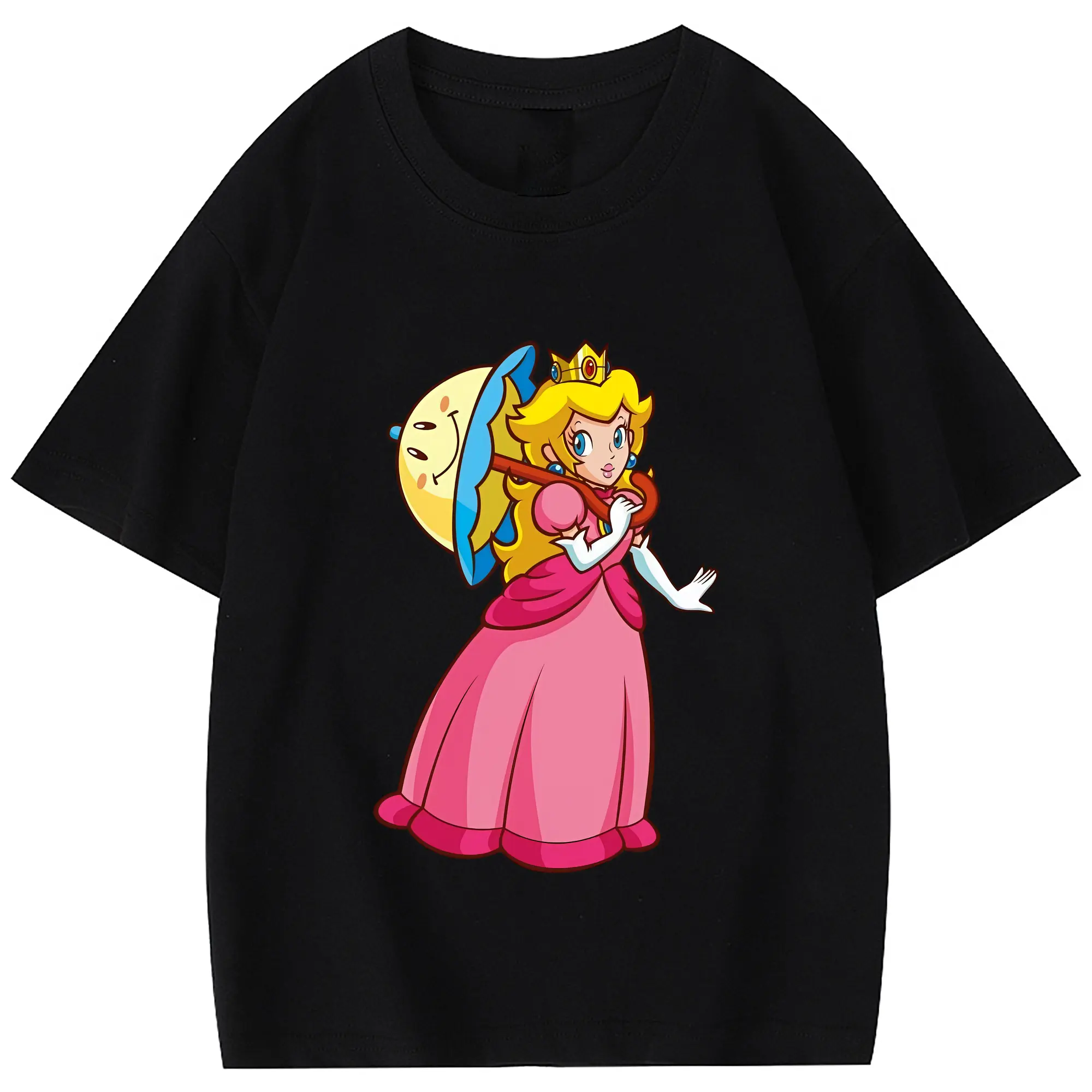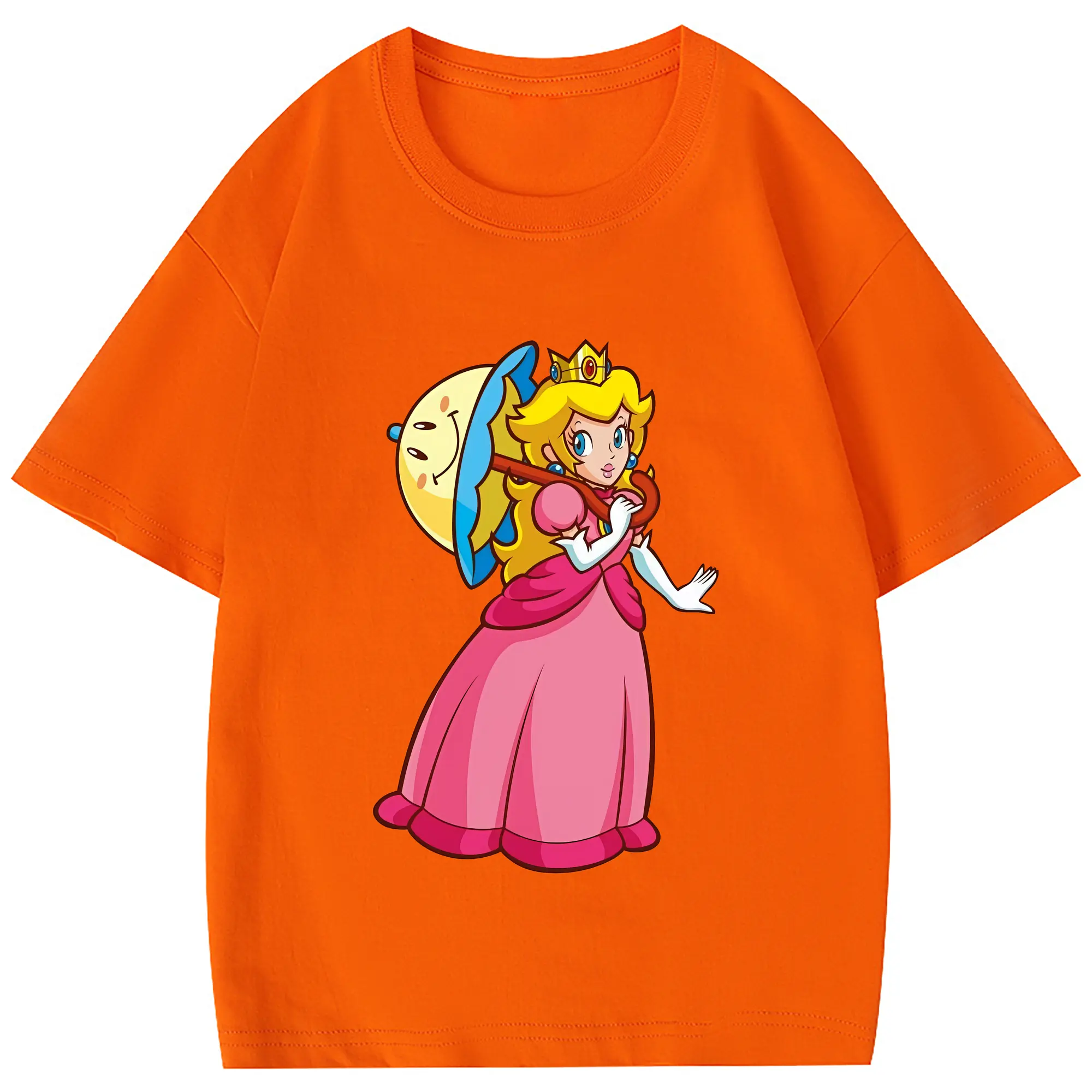 マリオ グッズ ピーチ姫 - 綿100% 半袖Tシャツ ・ フロントプリント ・ 快適 通気性 ・ 日常使い 散歩 スポーツ用