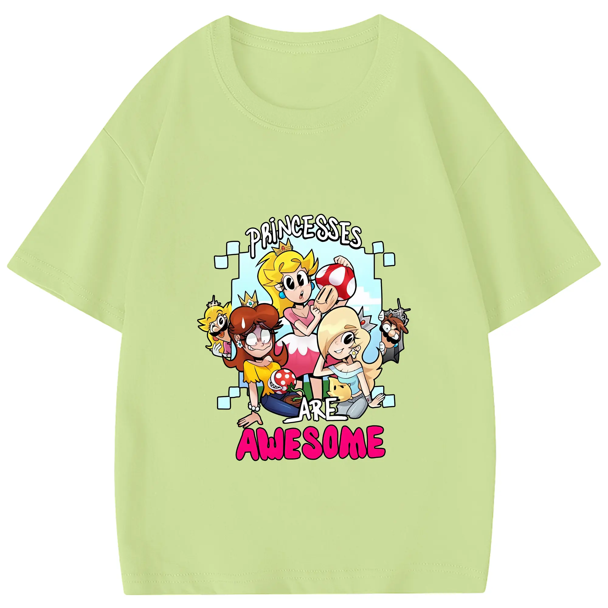 マリオ グッズ ピーチ姫 - 綿100% 半袖Tシャツ ・ フロントプリント ・ 快適 通気性 ・ 日常使い 散歩 スポーツ用