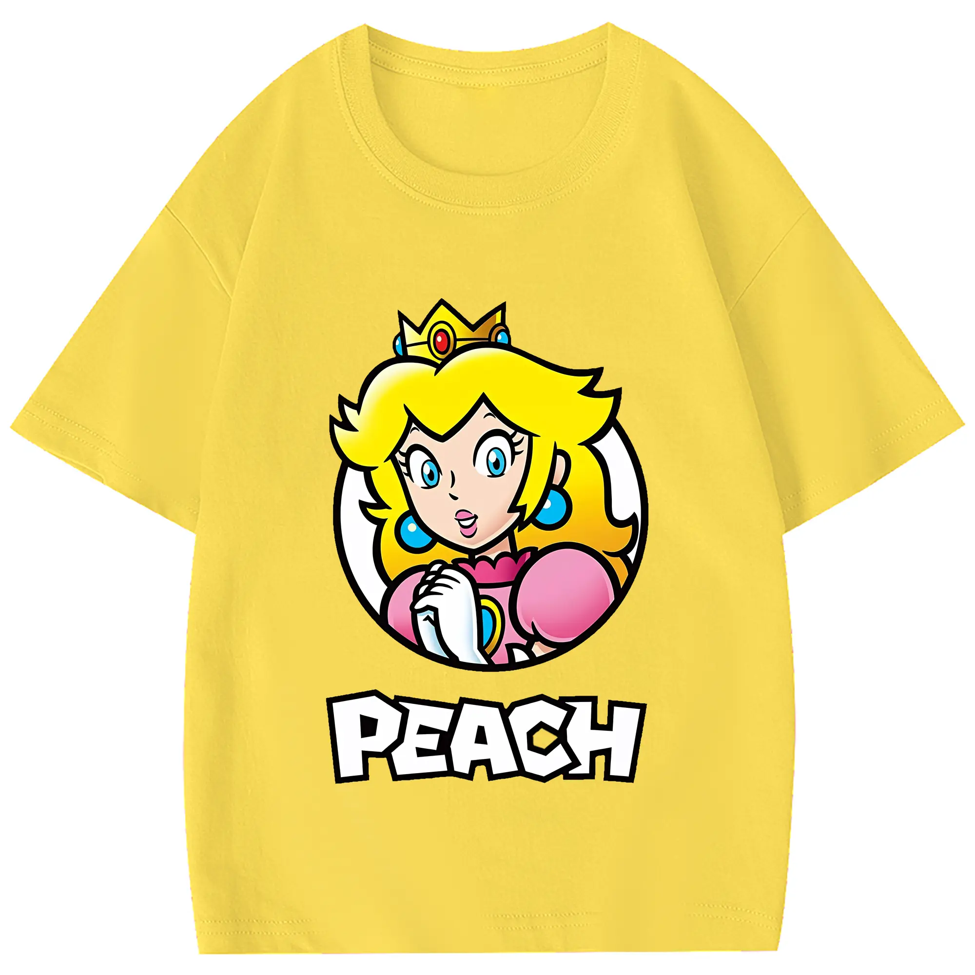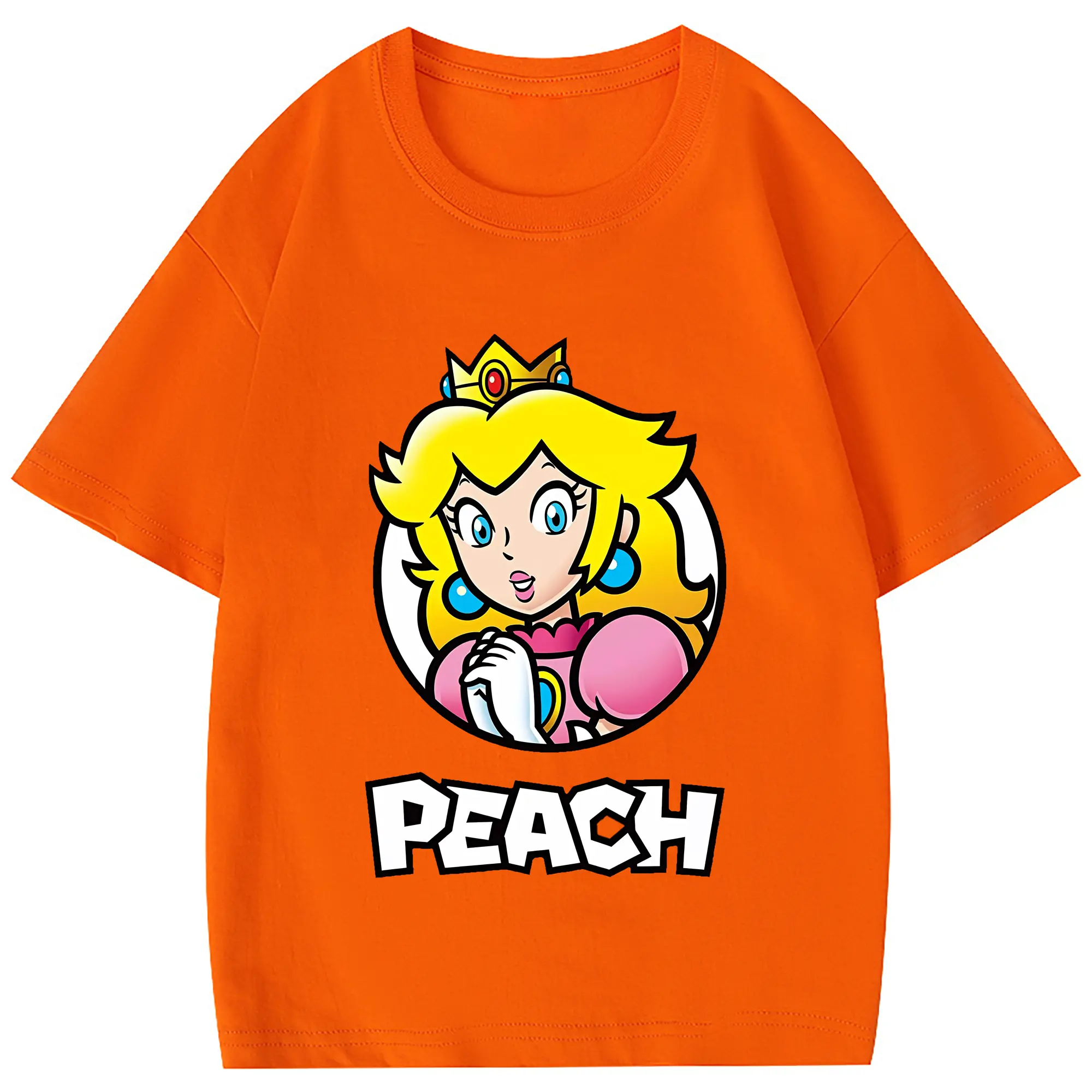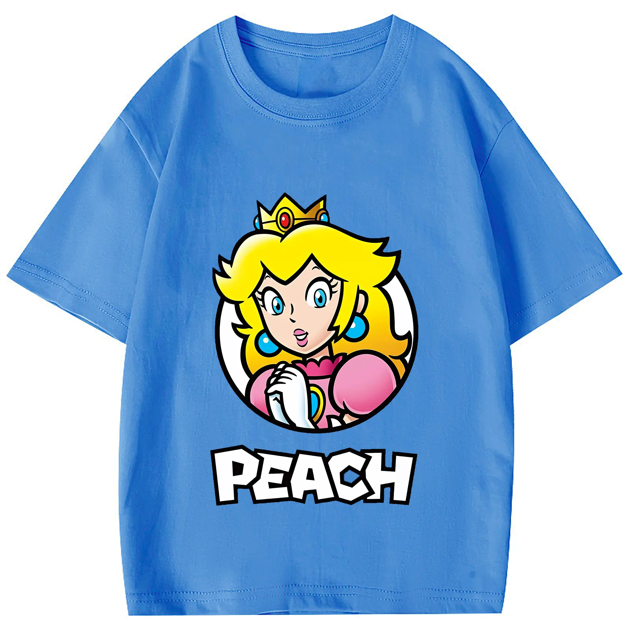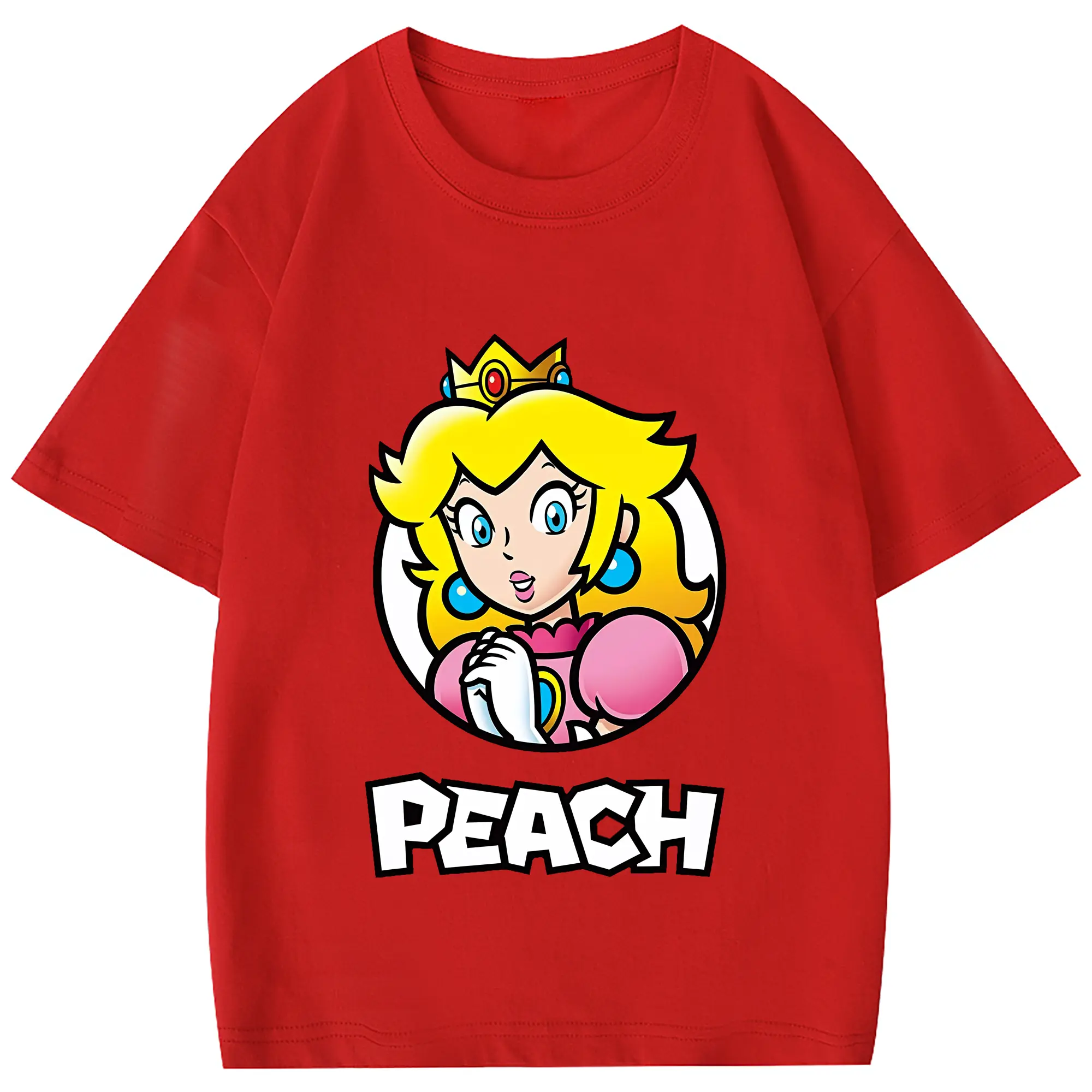 マリオ グッズ ピーチ姫 - 綿100% 半袖Tシャツ ・ フロントプリント ・ 快適 通気性 ・ 日常使い 散歩 スポーツ用