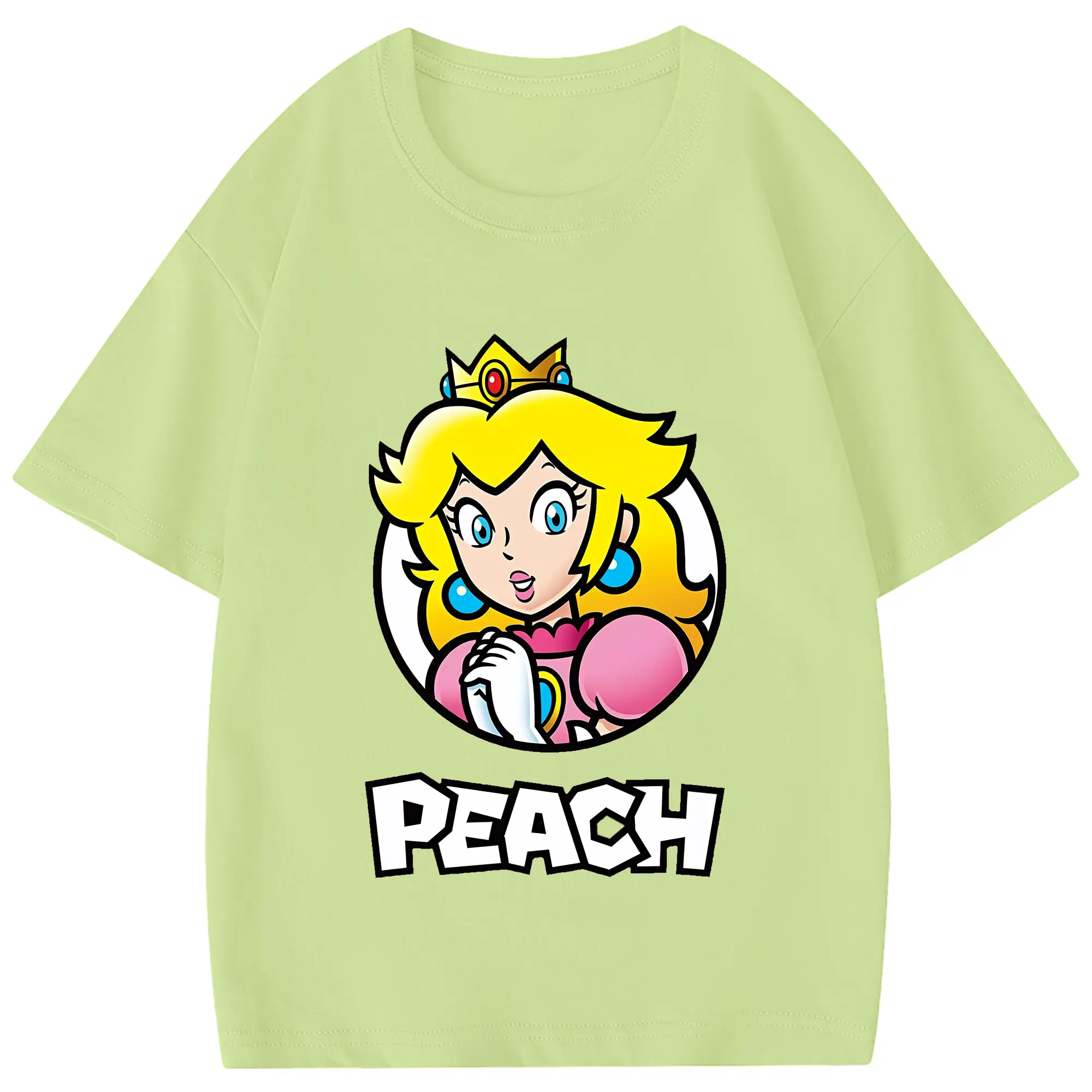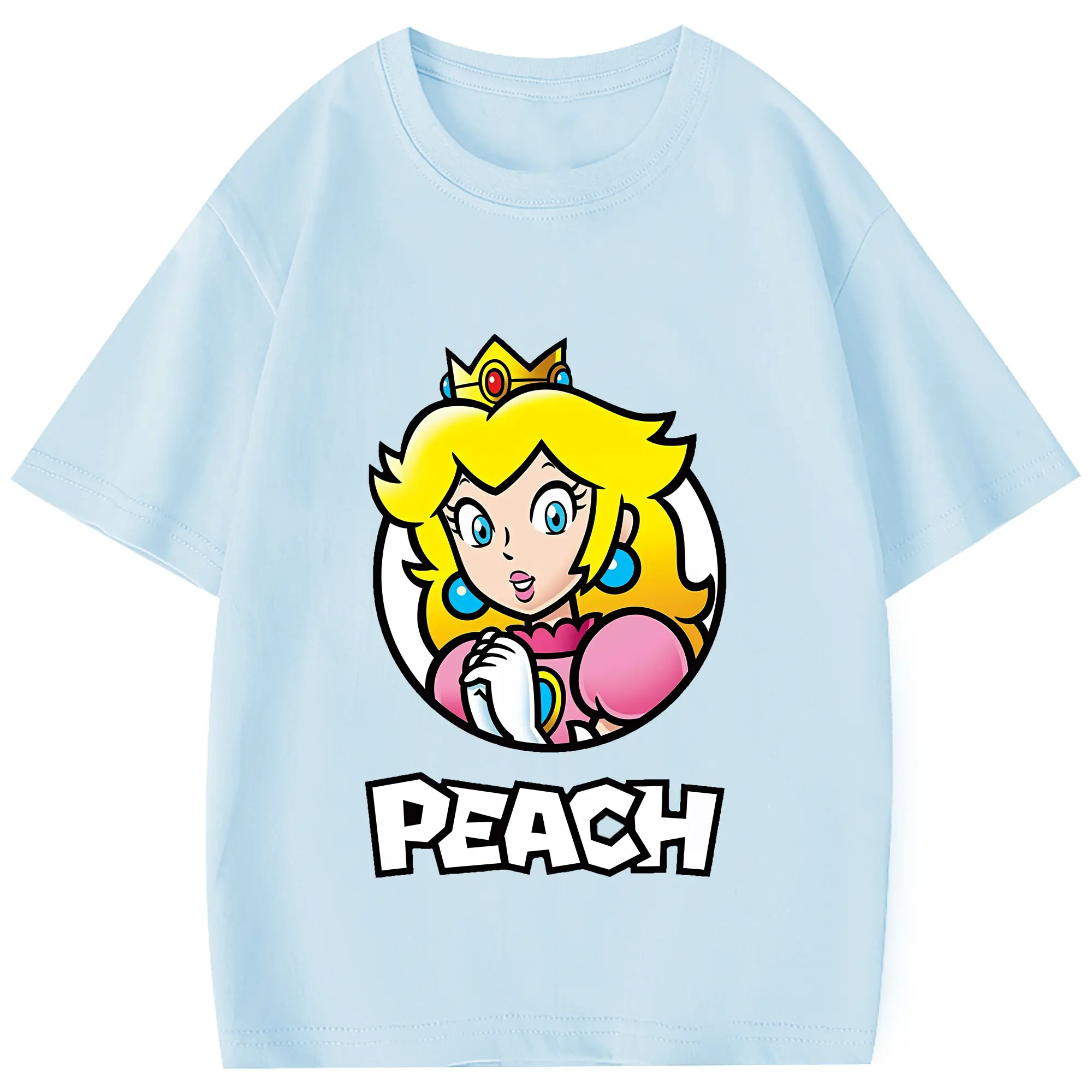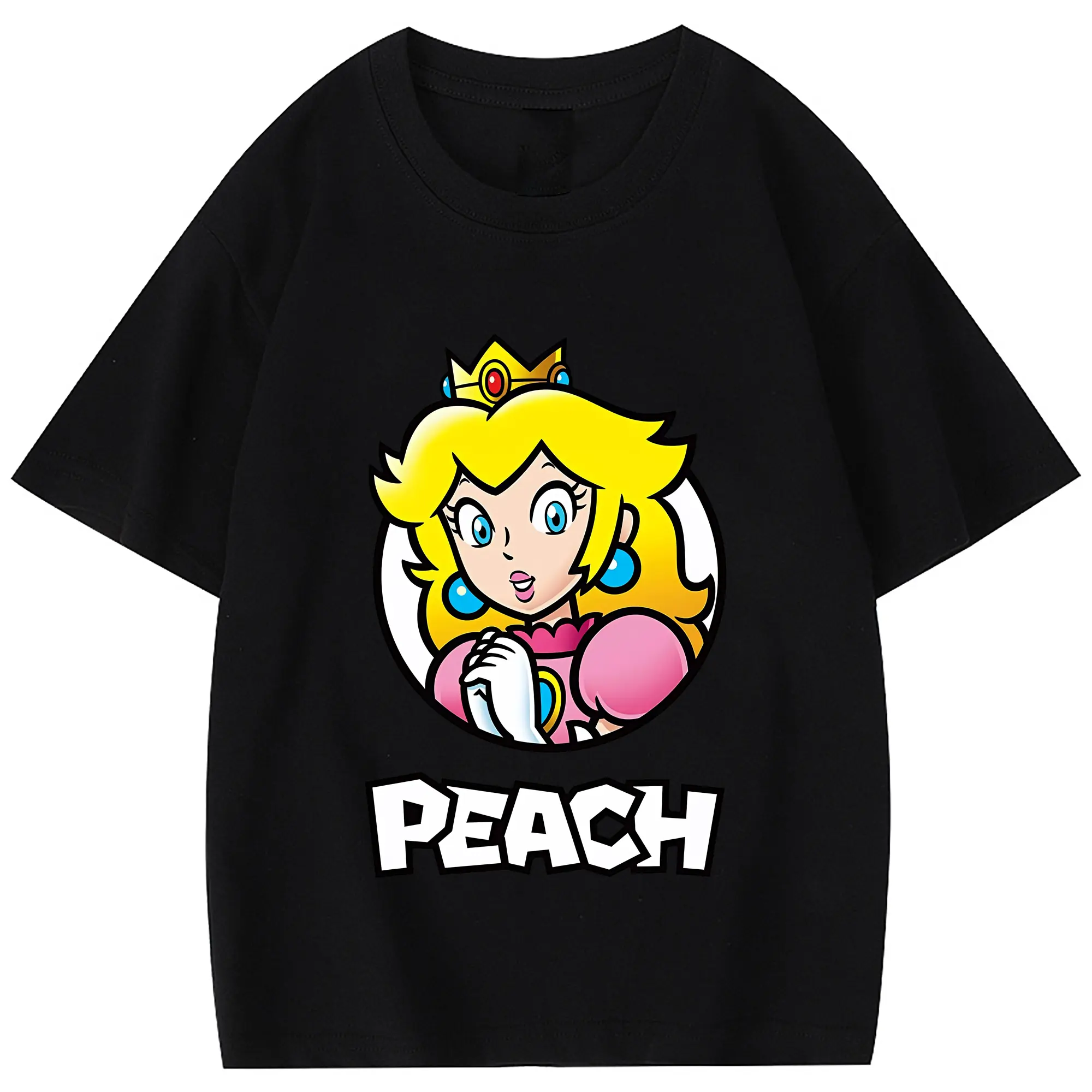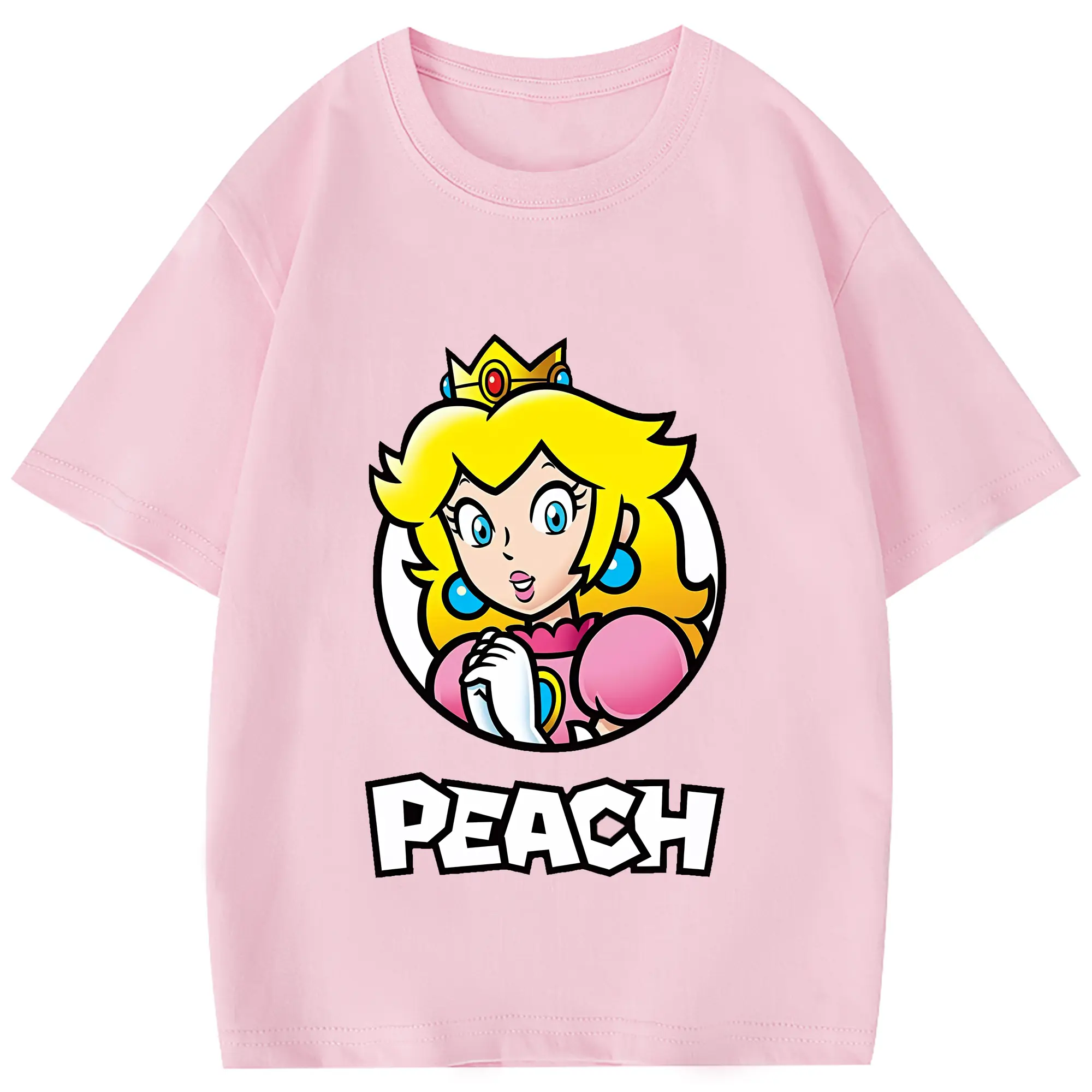 マリオ グッズ ピーチ姫 - 綿100% 半袖Tシャツ ・ フロントプリント ・ 快適 通気性 ・ 日常使い 散歩 スポーツ用