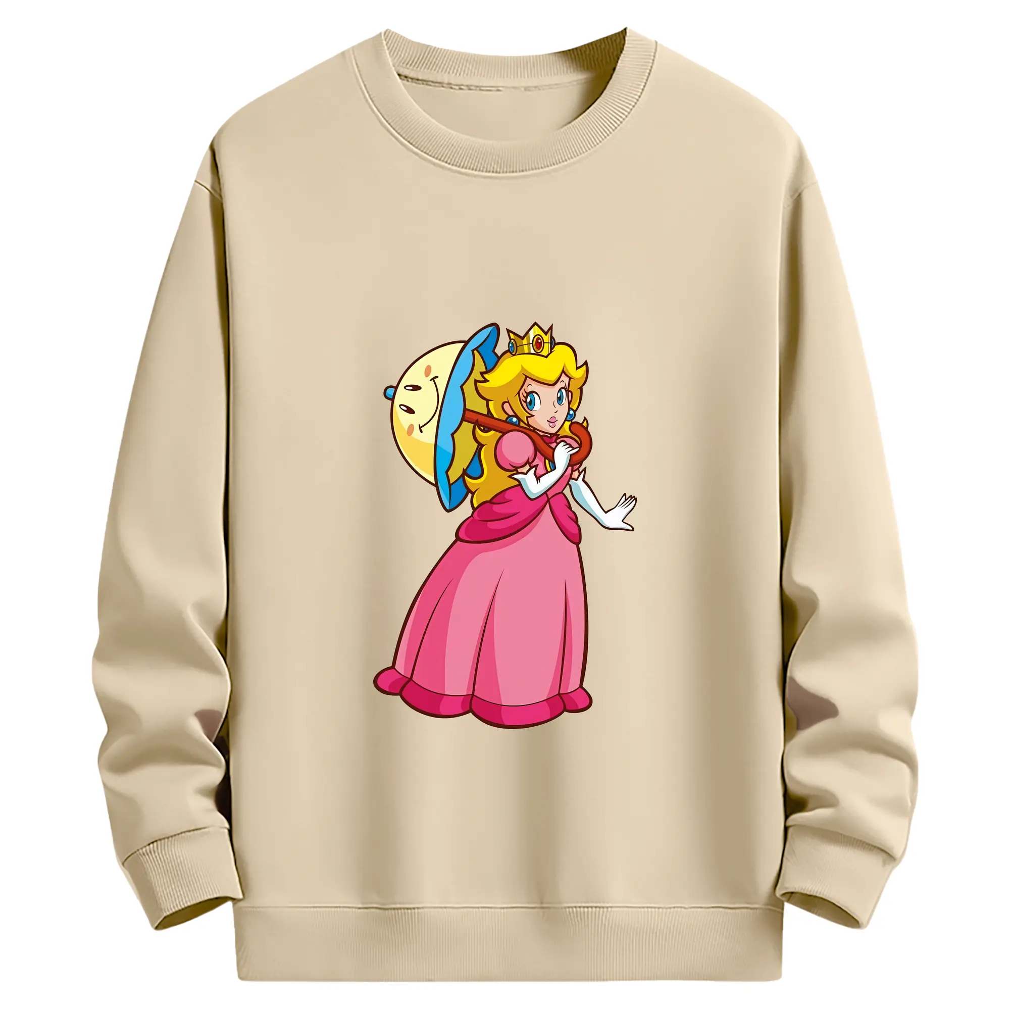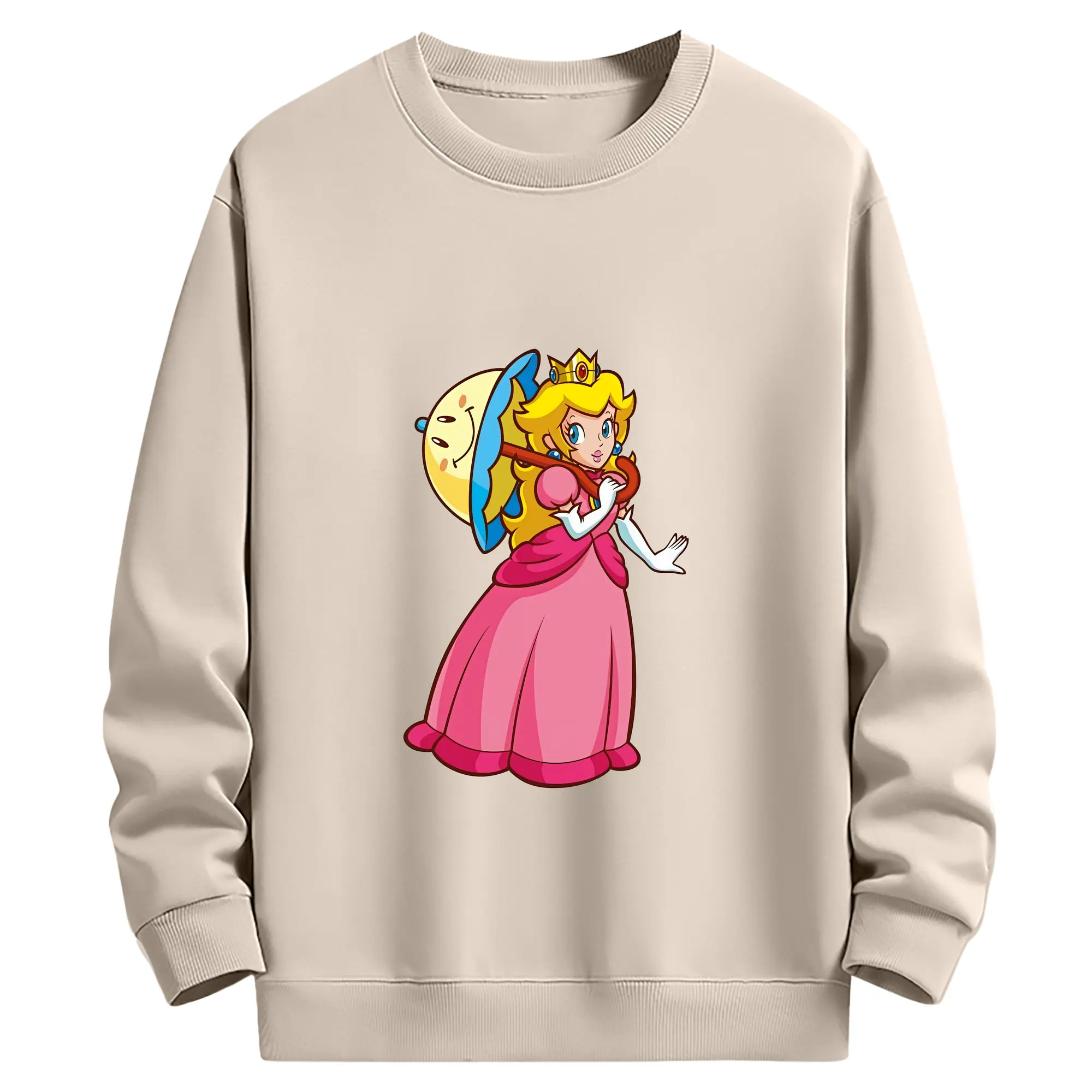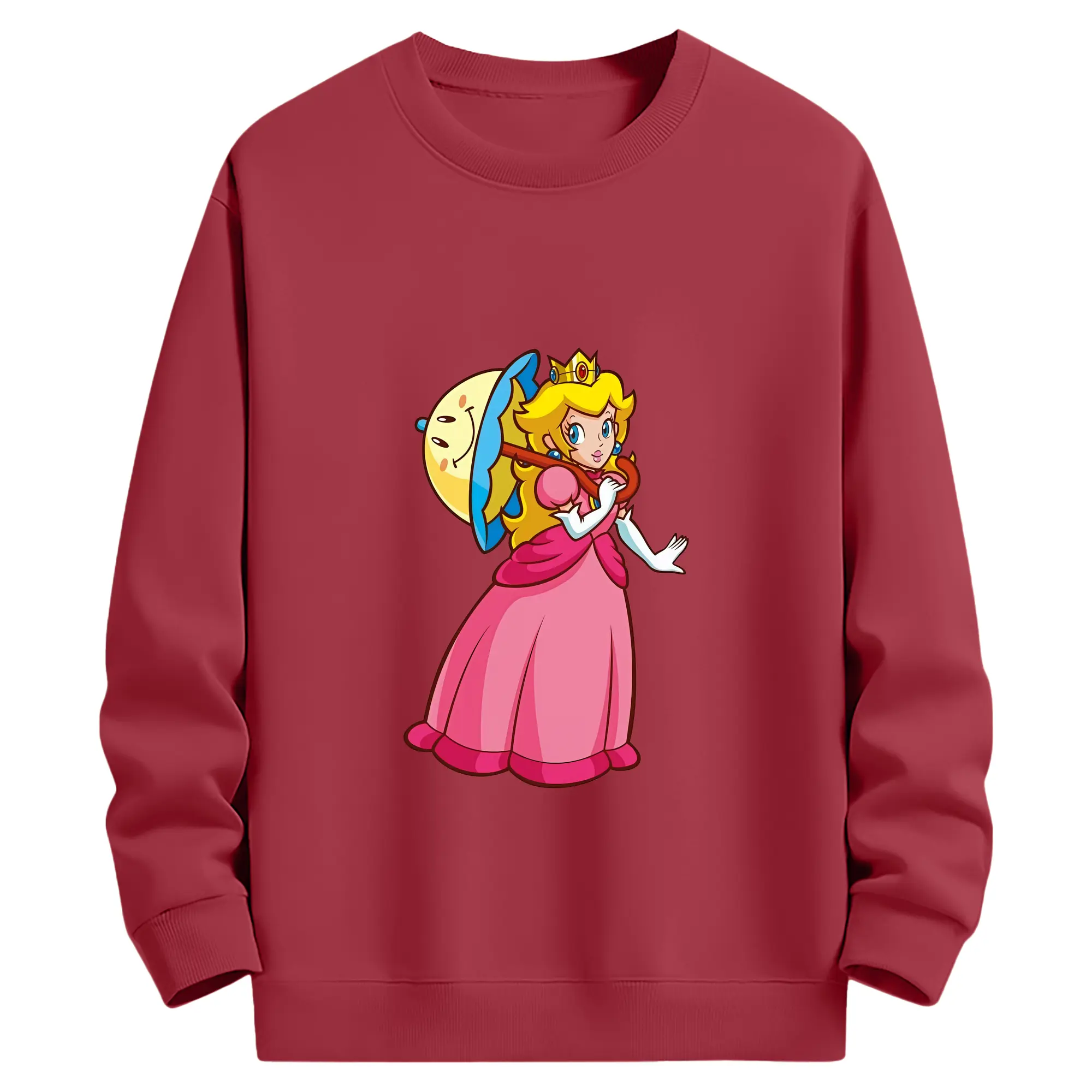 マリオ グッズ ピーチ姫 - 薄手 クルーネック スウェット 裏毛260g · ポリエステル 春秋向け カジュアル 男女兼用 · トレーナー デイリー スポーツ 散歩に最適