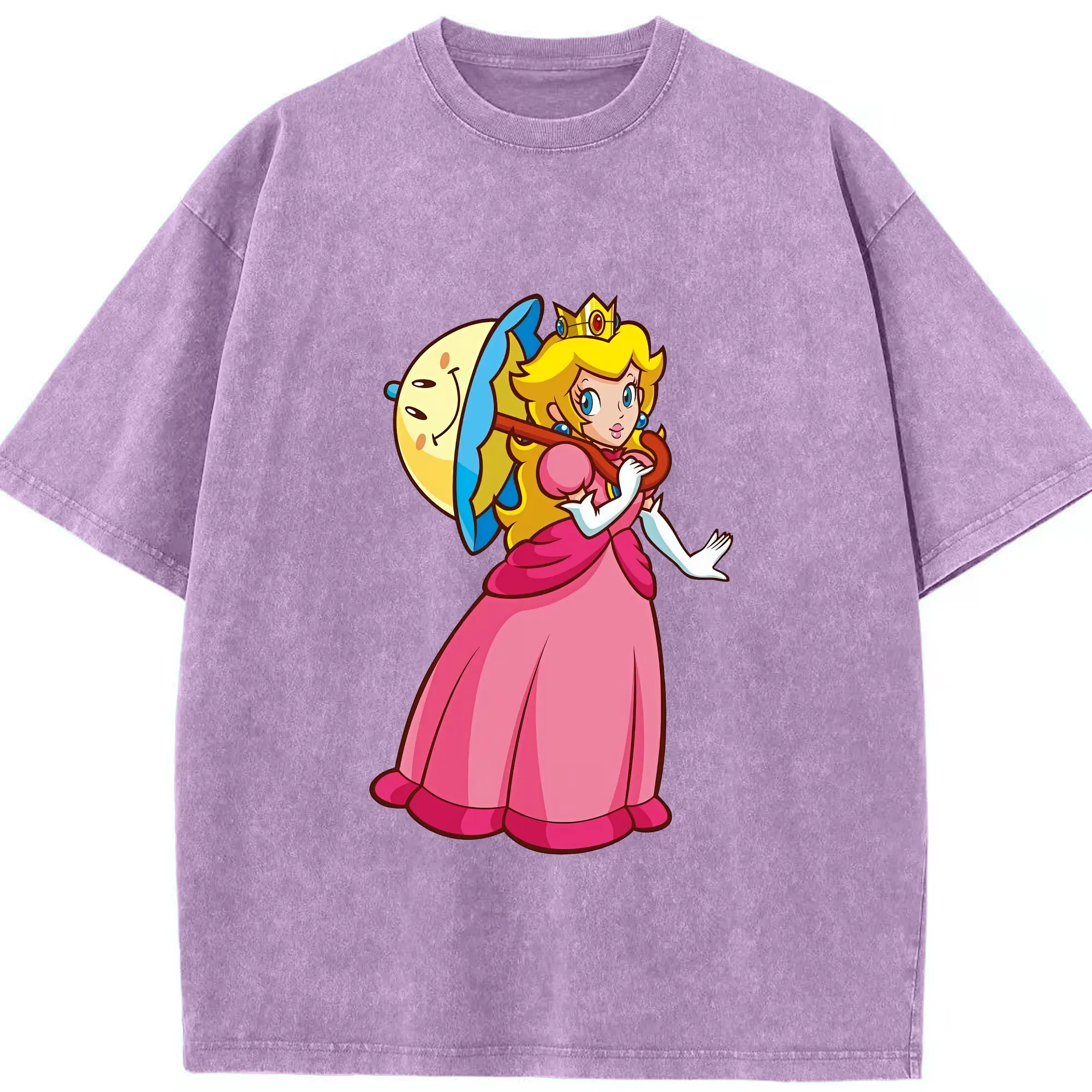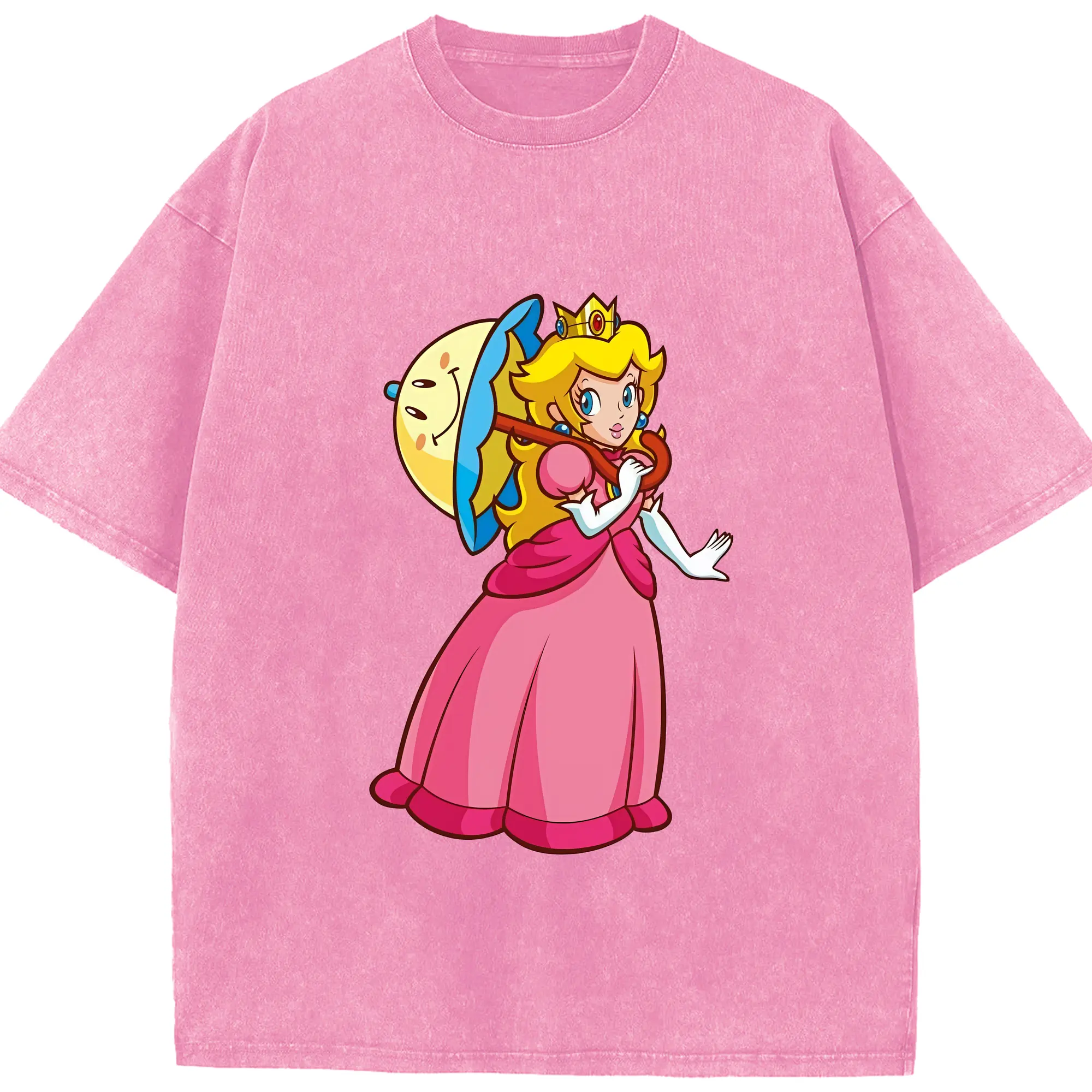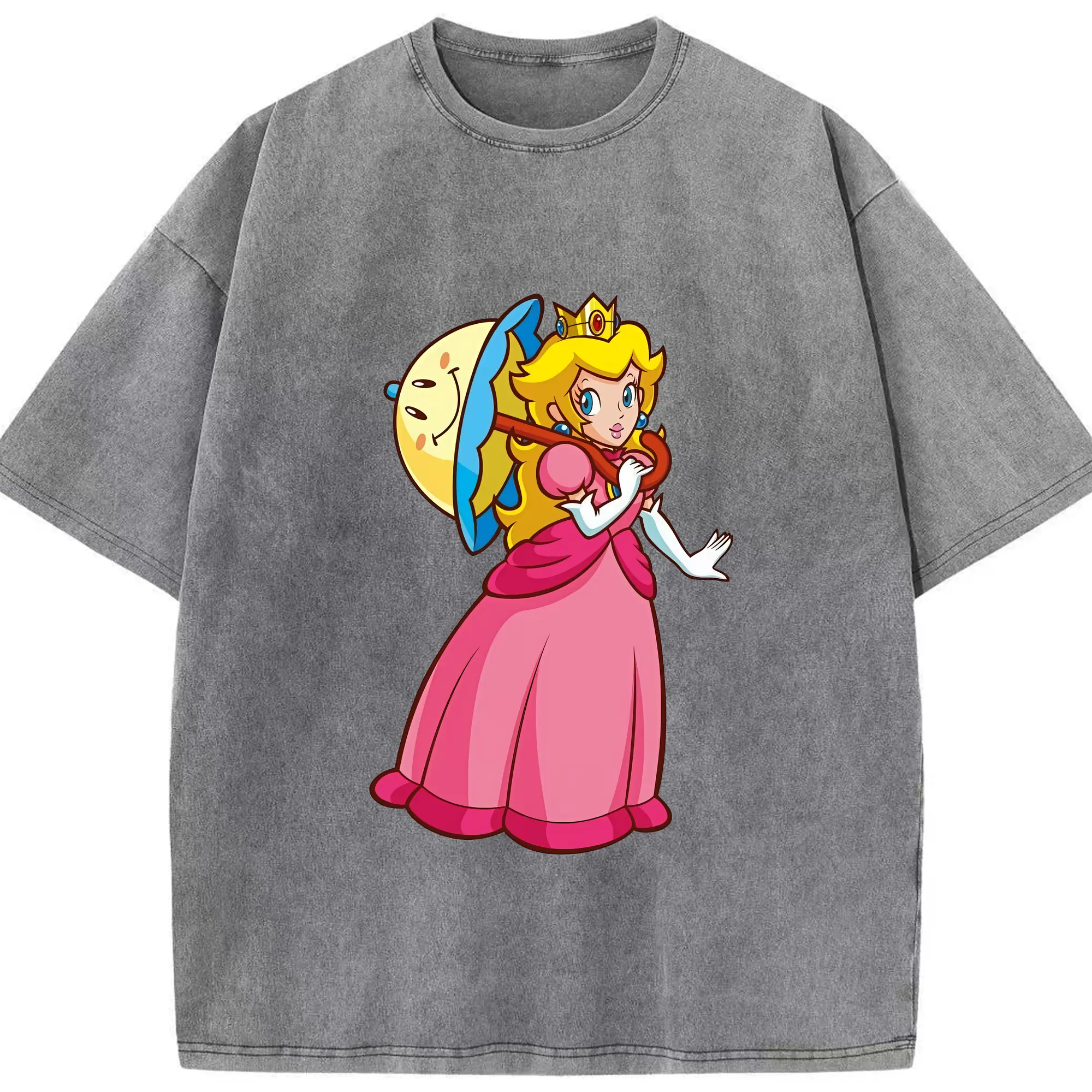 マリオ グッズ ピーチ姫 - 綿100% ヴィンテージ風 半袖Tシャツ ・ 背面プリント ・ 柔らか肌触り ・ 通気性 快適 ・ スポーツ カジュアル 外出用