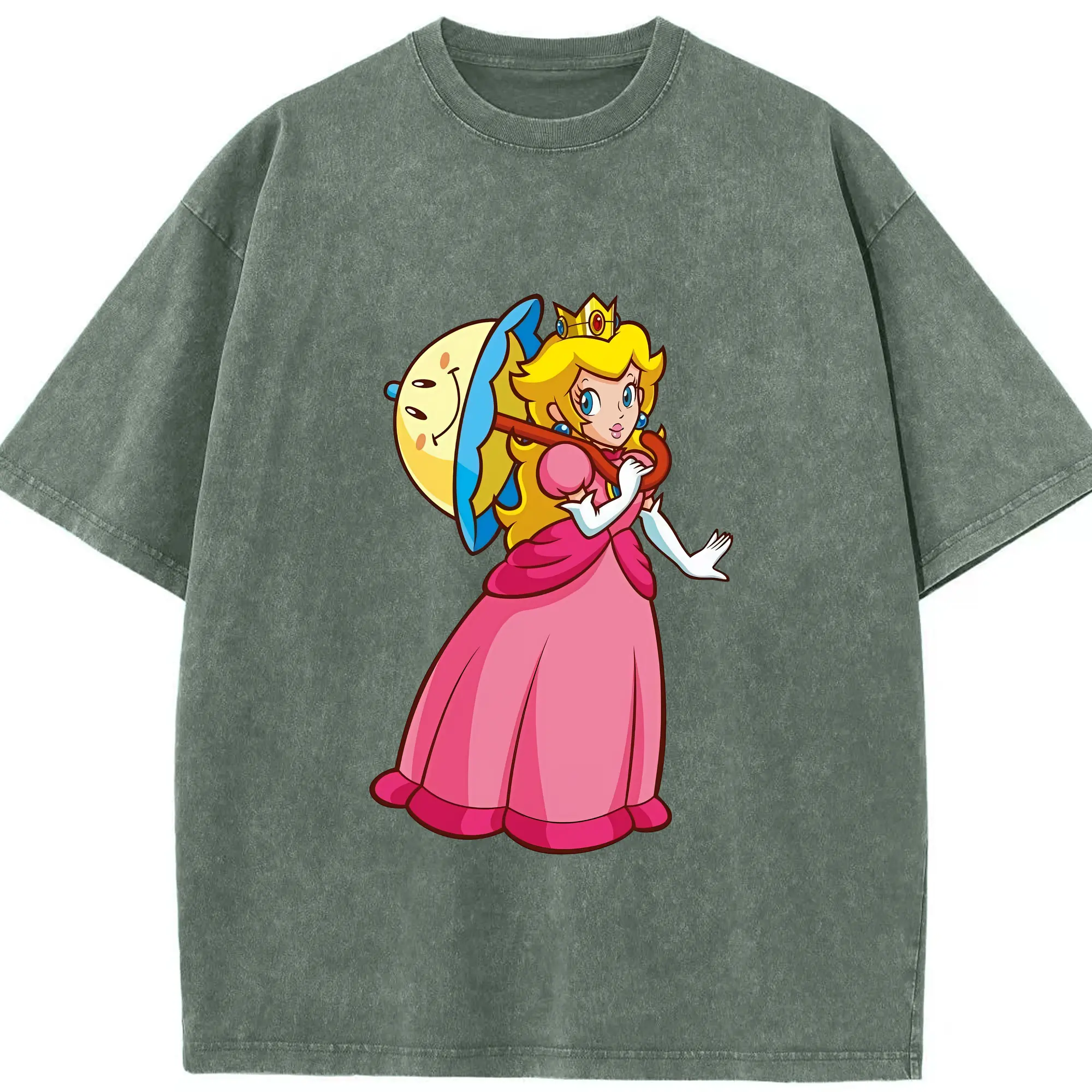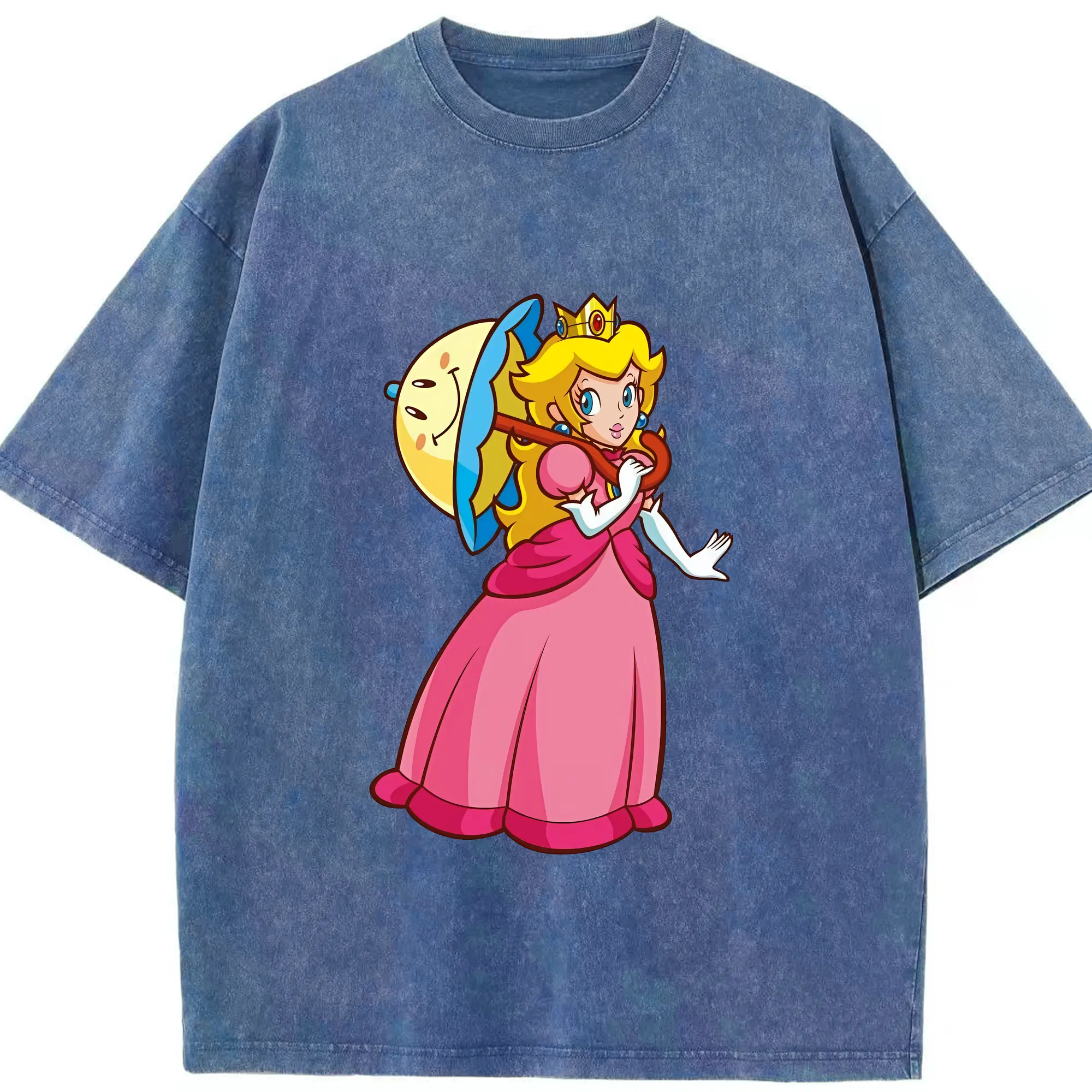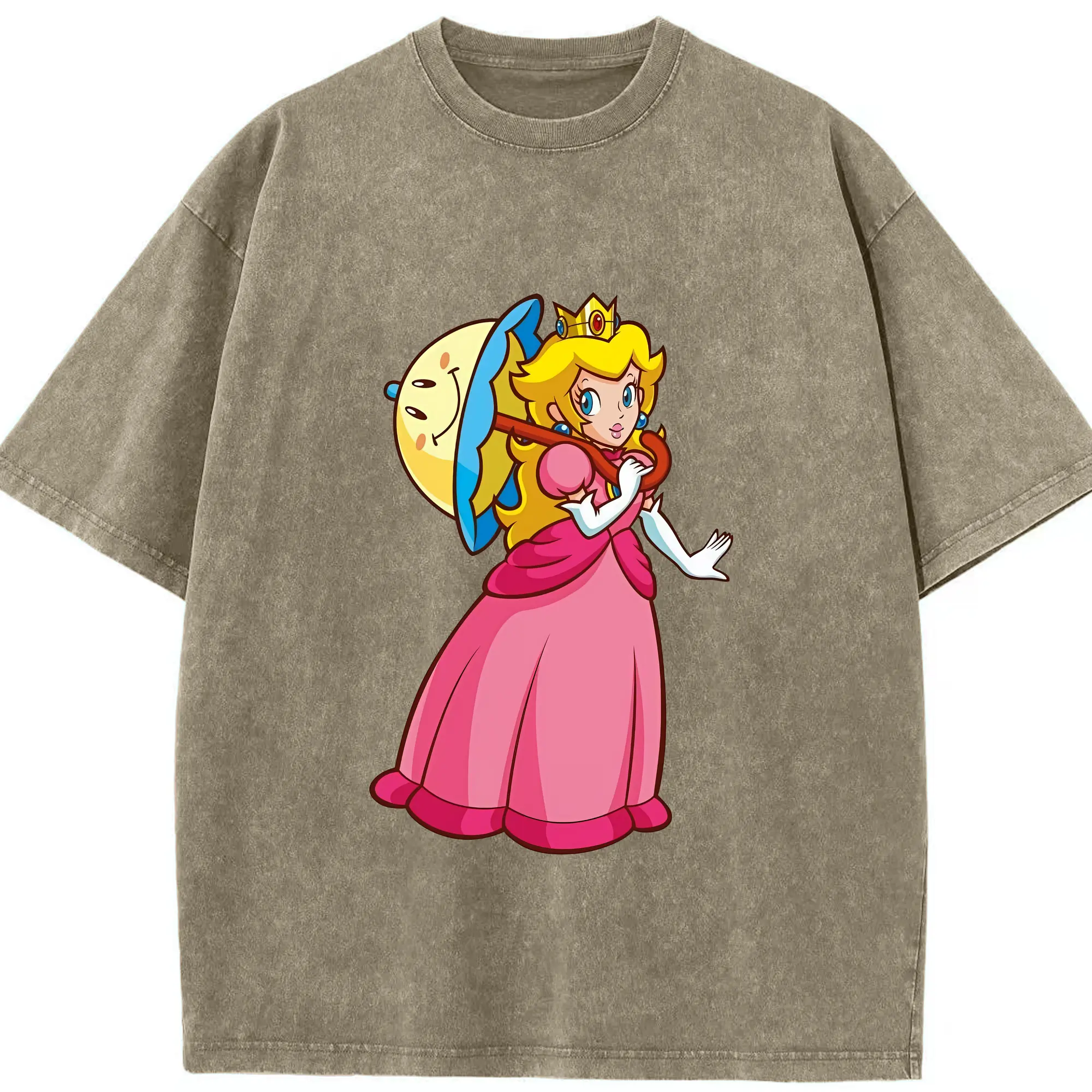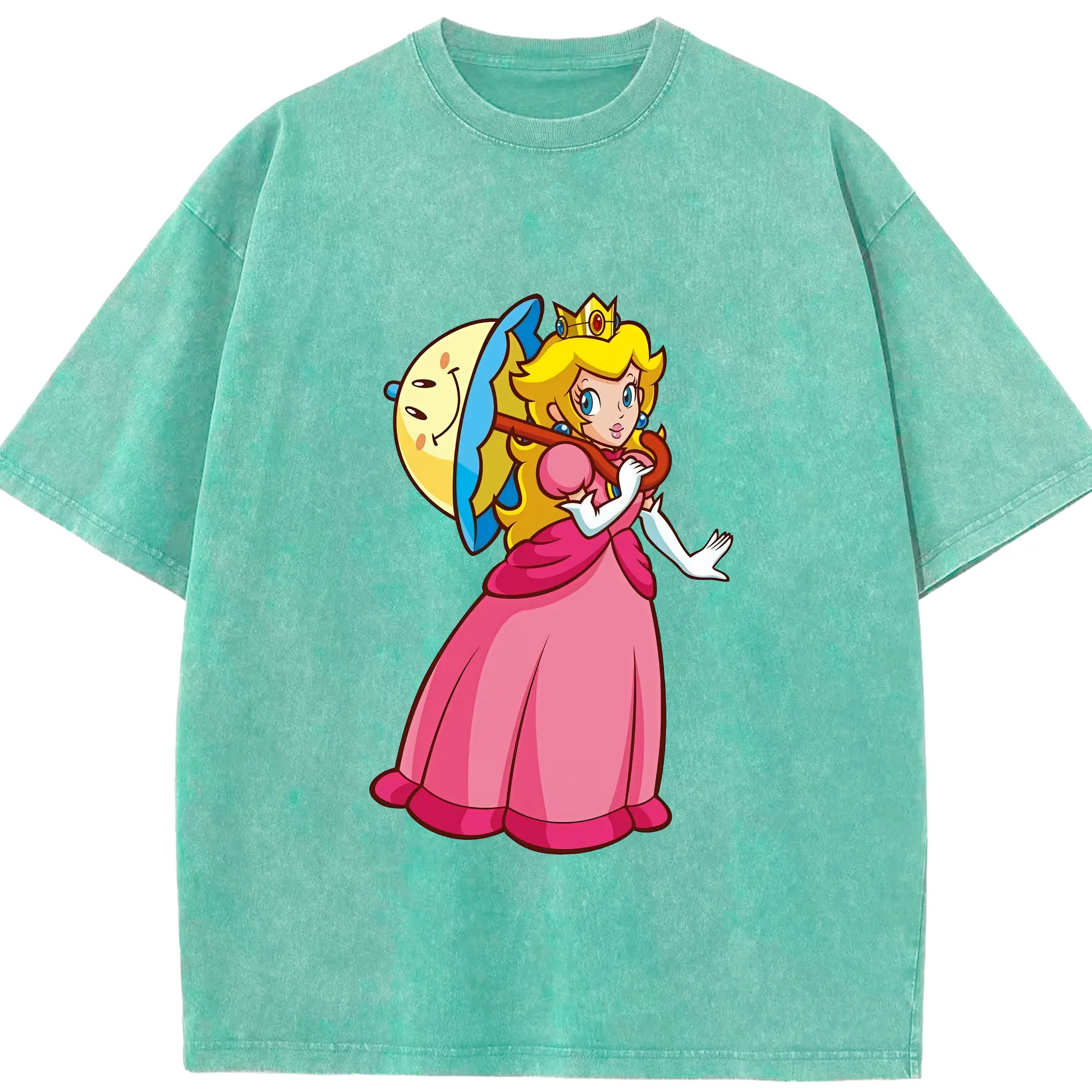 マリオ グッズ ピーチ姫 - 綿100% ヴィンテージ風 半袖Tシャツ ・ 背面プリント ・ 柔らか肌触り ・ 通気性 快適 ・ スポーツ カジュアル 外出用