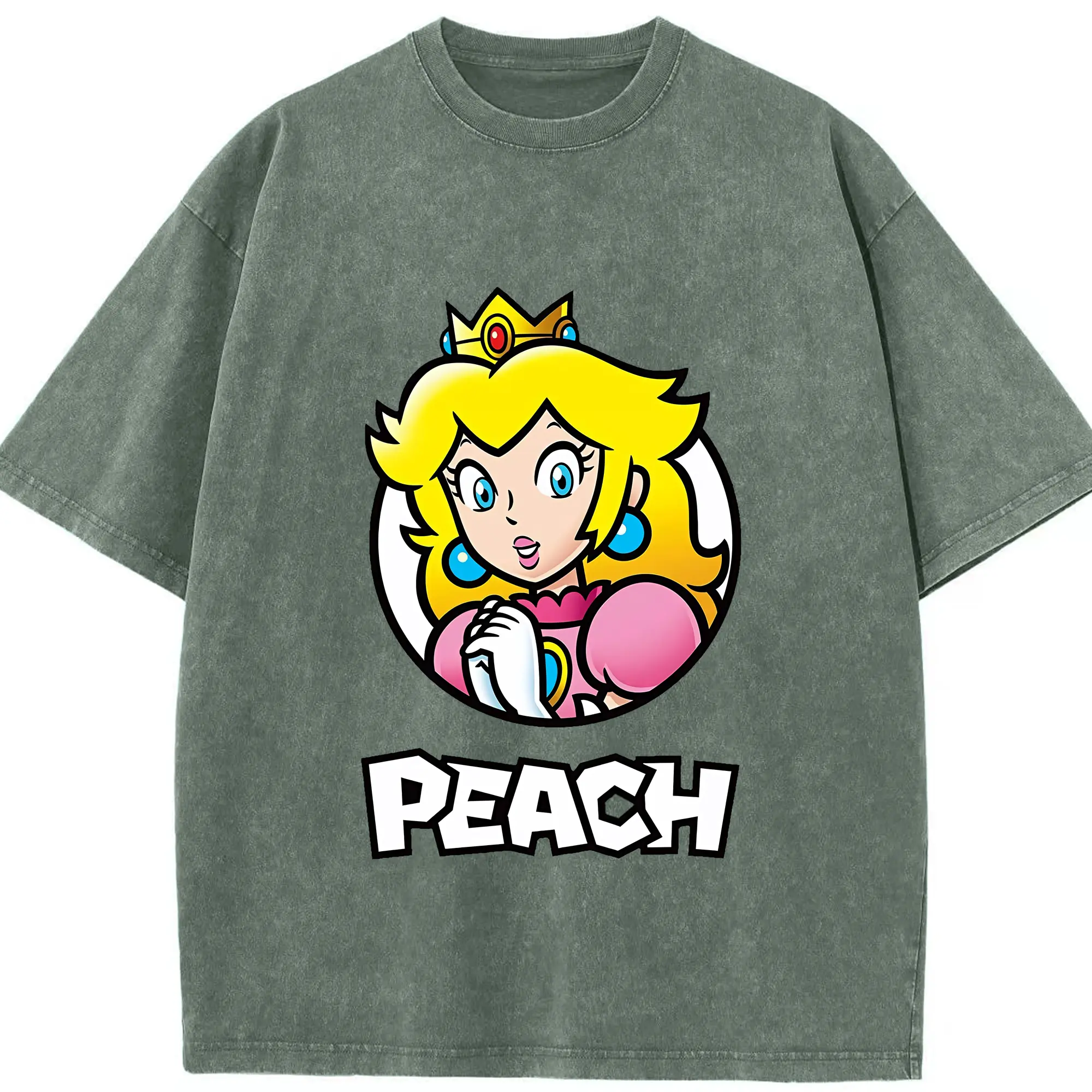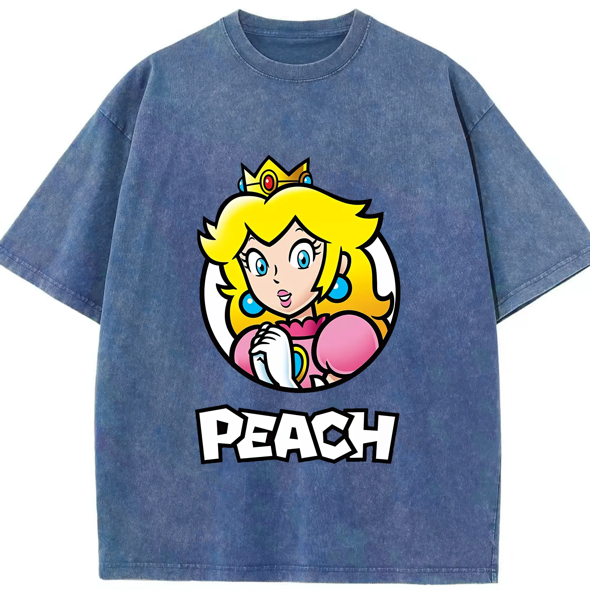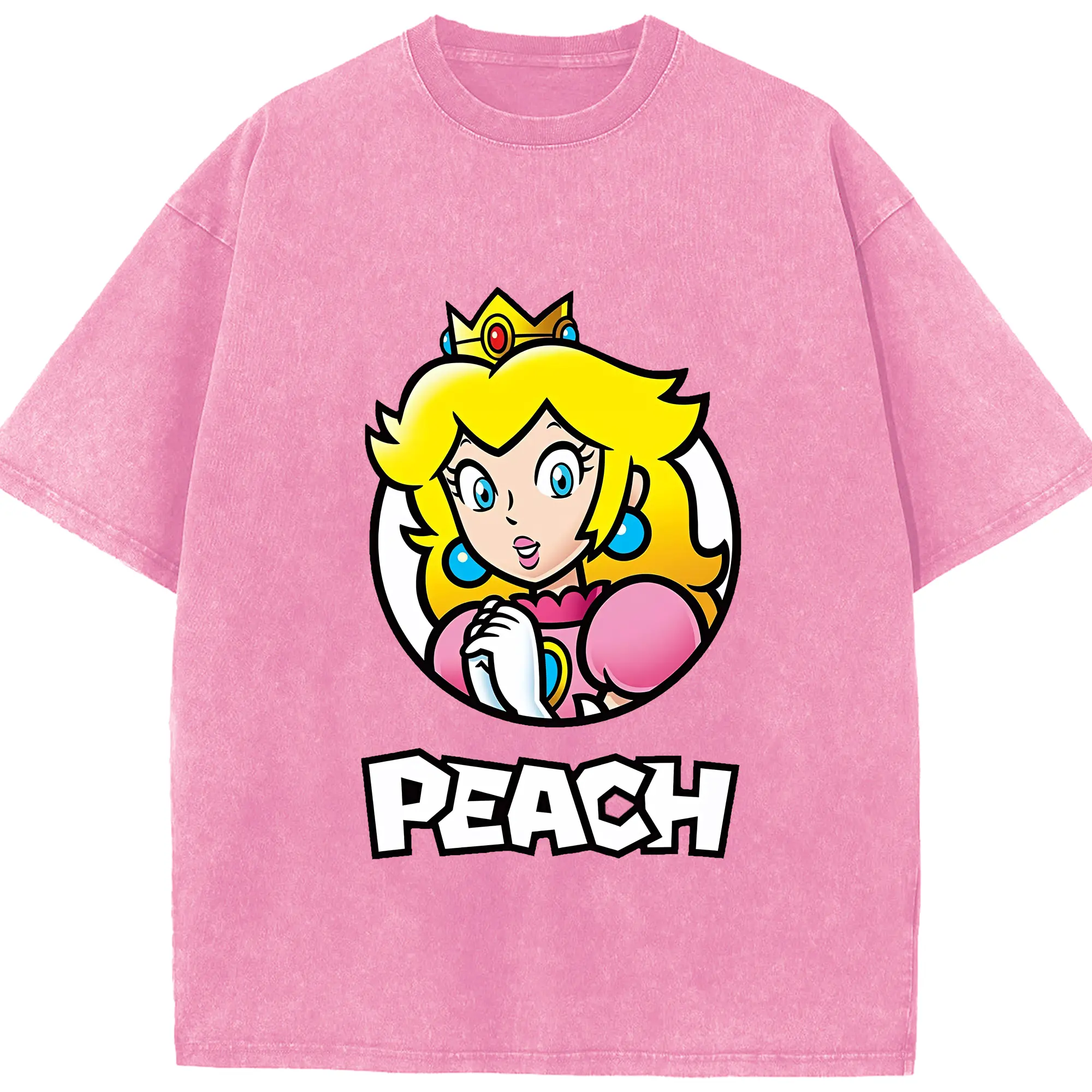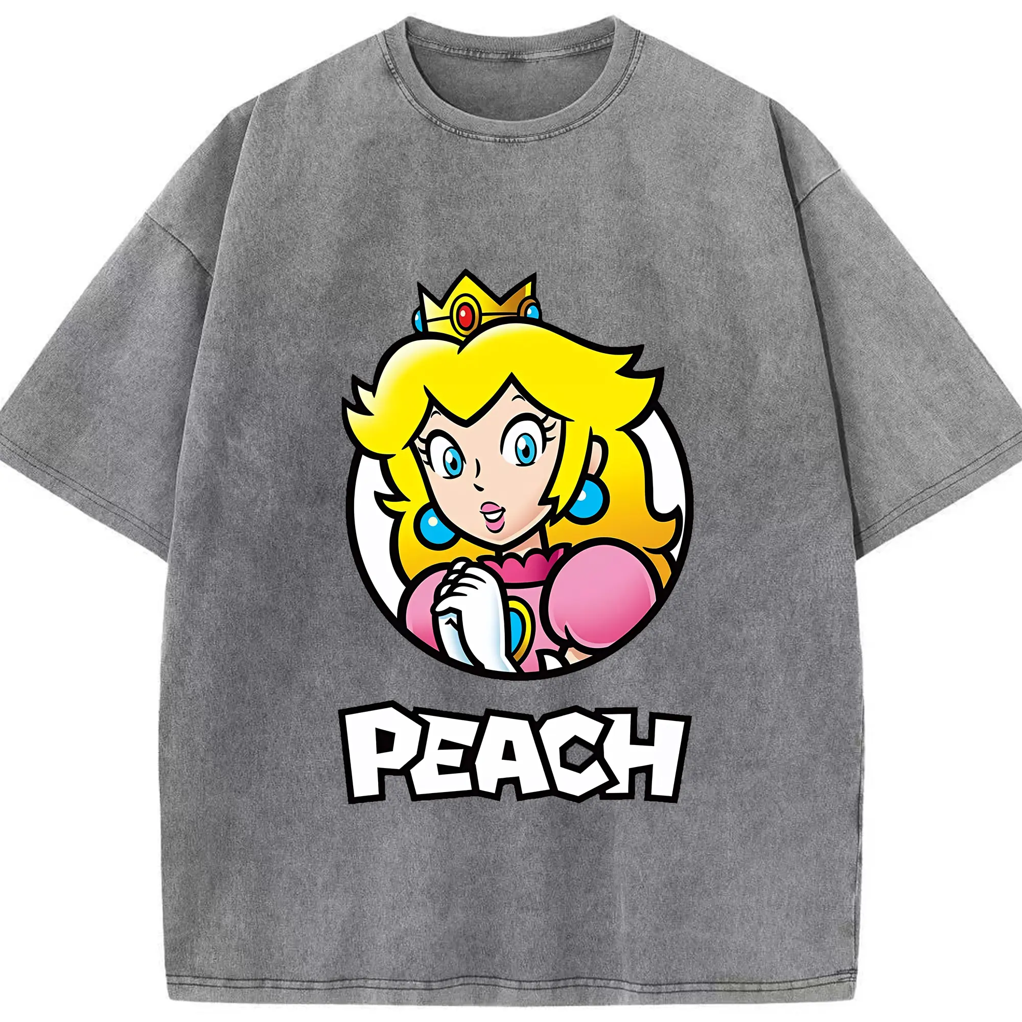 マリオ グッズ ピーチ姫 - 綿100% ヴィンテージ風 半袖Tシャツ ・ 背面プリント ・ 柔らか肌触り ・ 通気性 快適 ・ スポーツ カジュアル 外出用