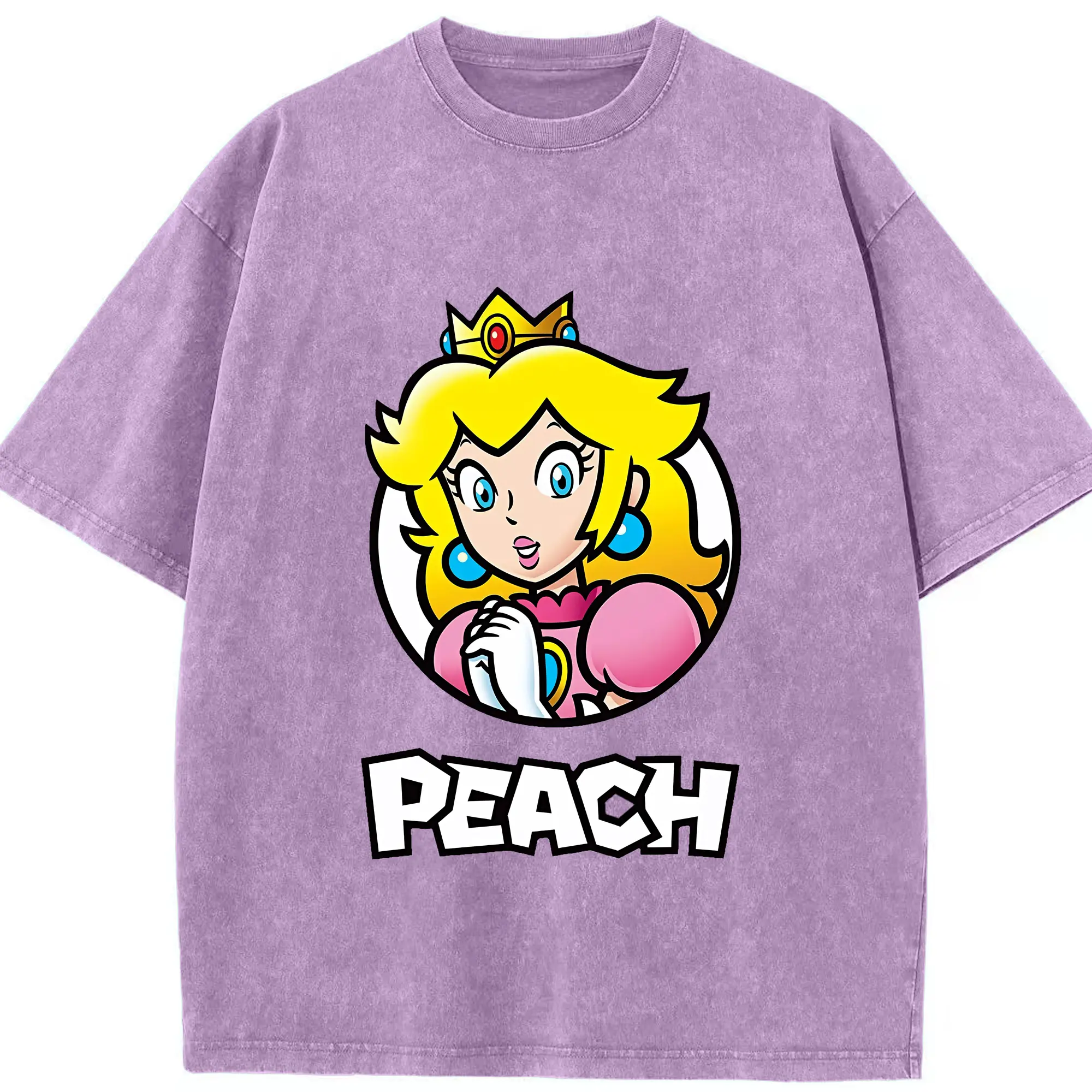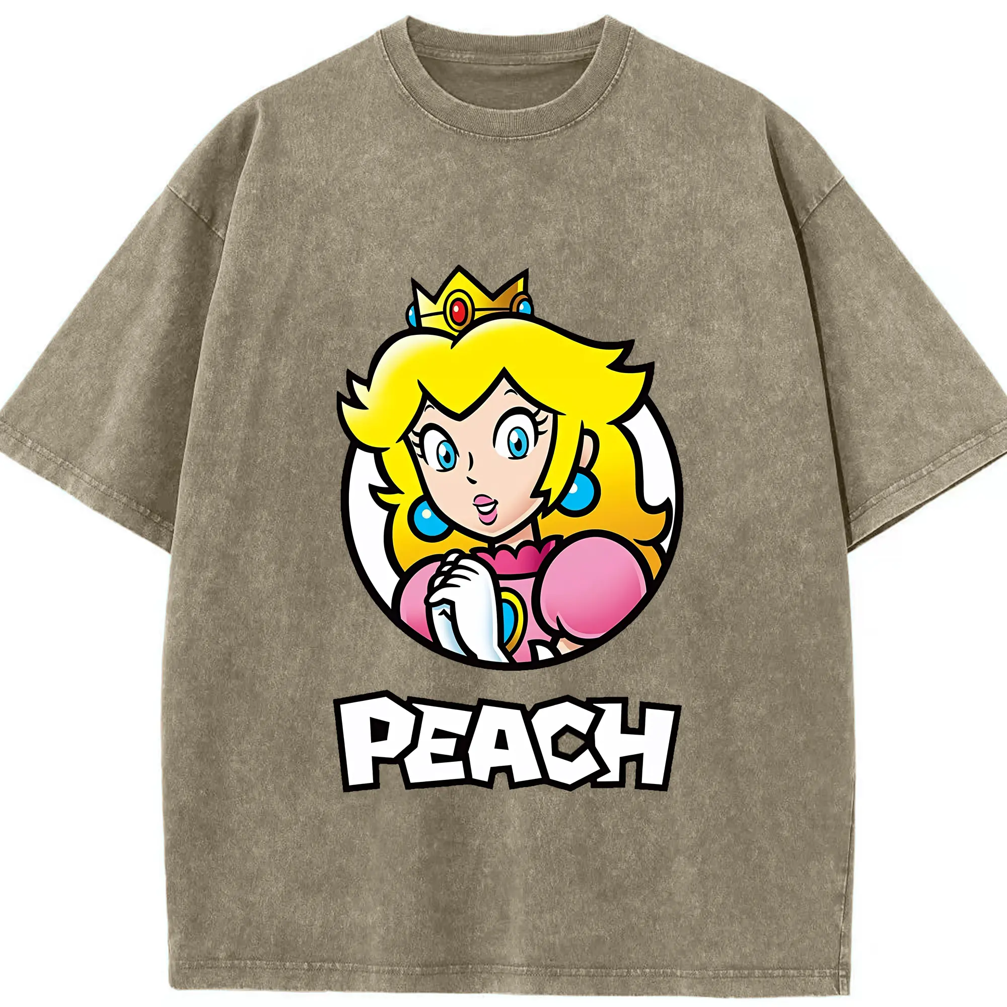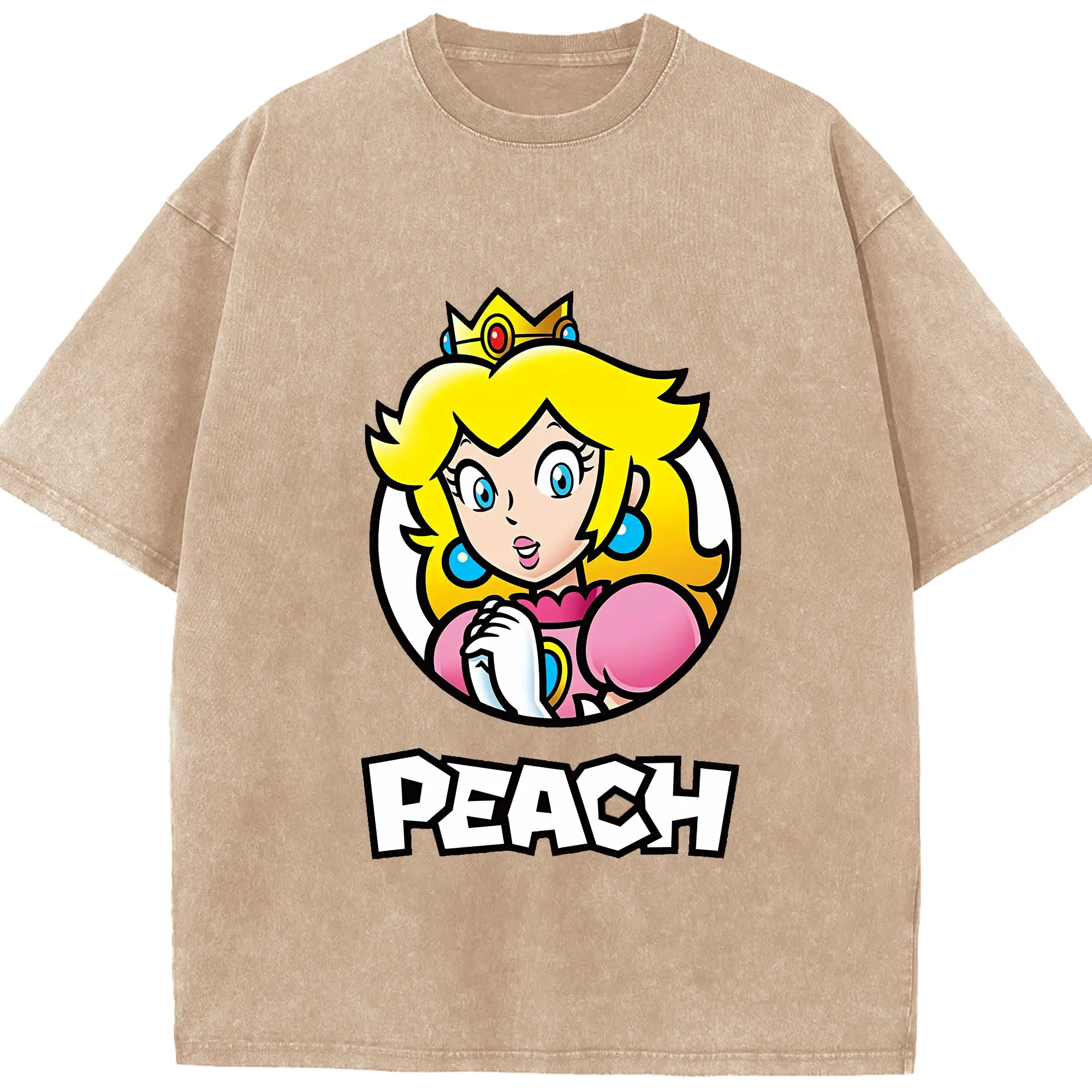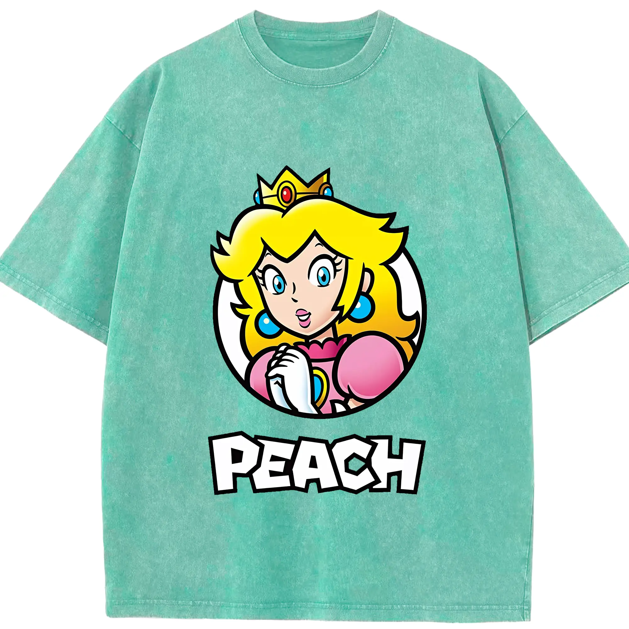 マリオ グッズ ピーチ姫 - 綿100% ヴィンテージ風 半袖Tシャツ ・ 背面プリント ・ 柔らか肌触り ・ 通気性 快適 ・ スポーツ カジュアル 外出用