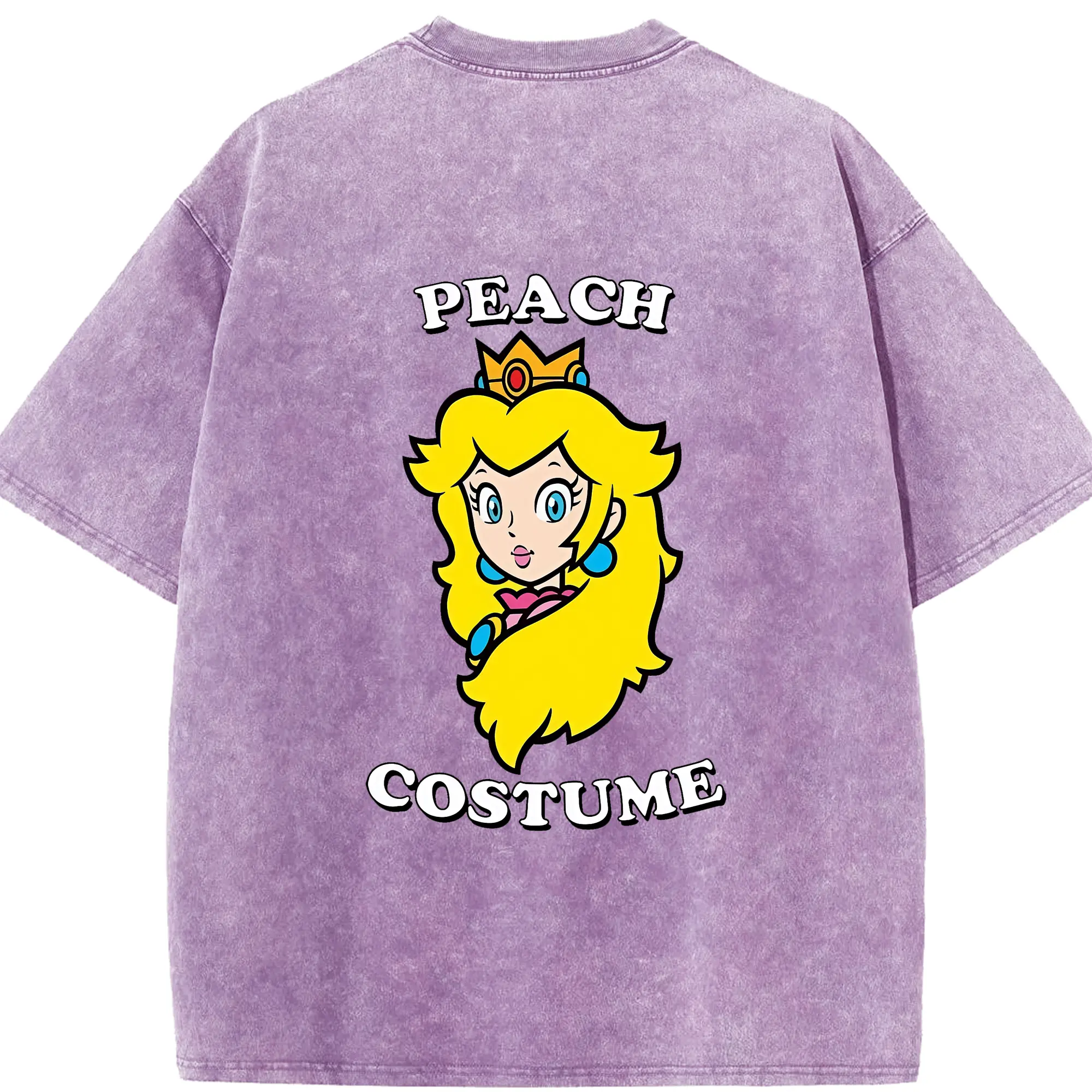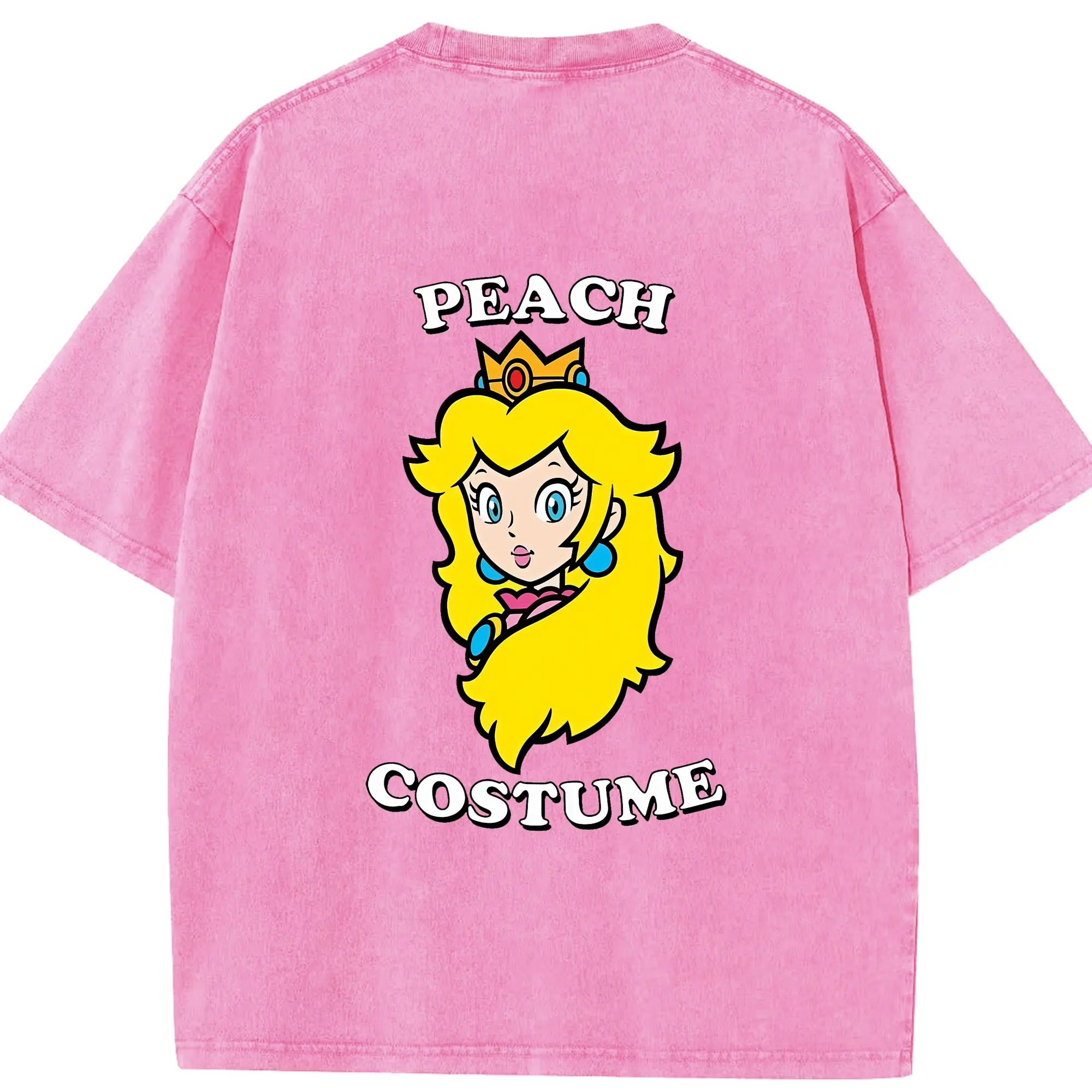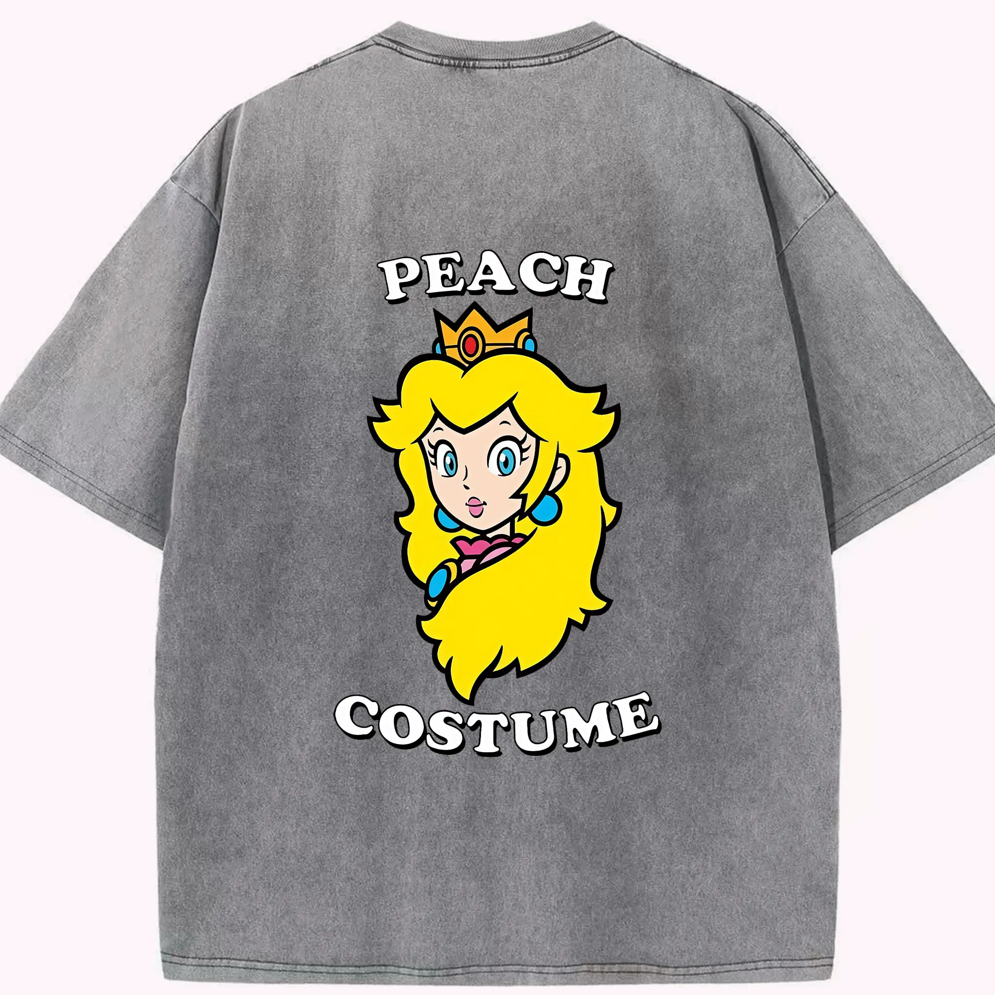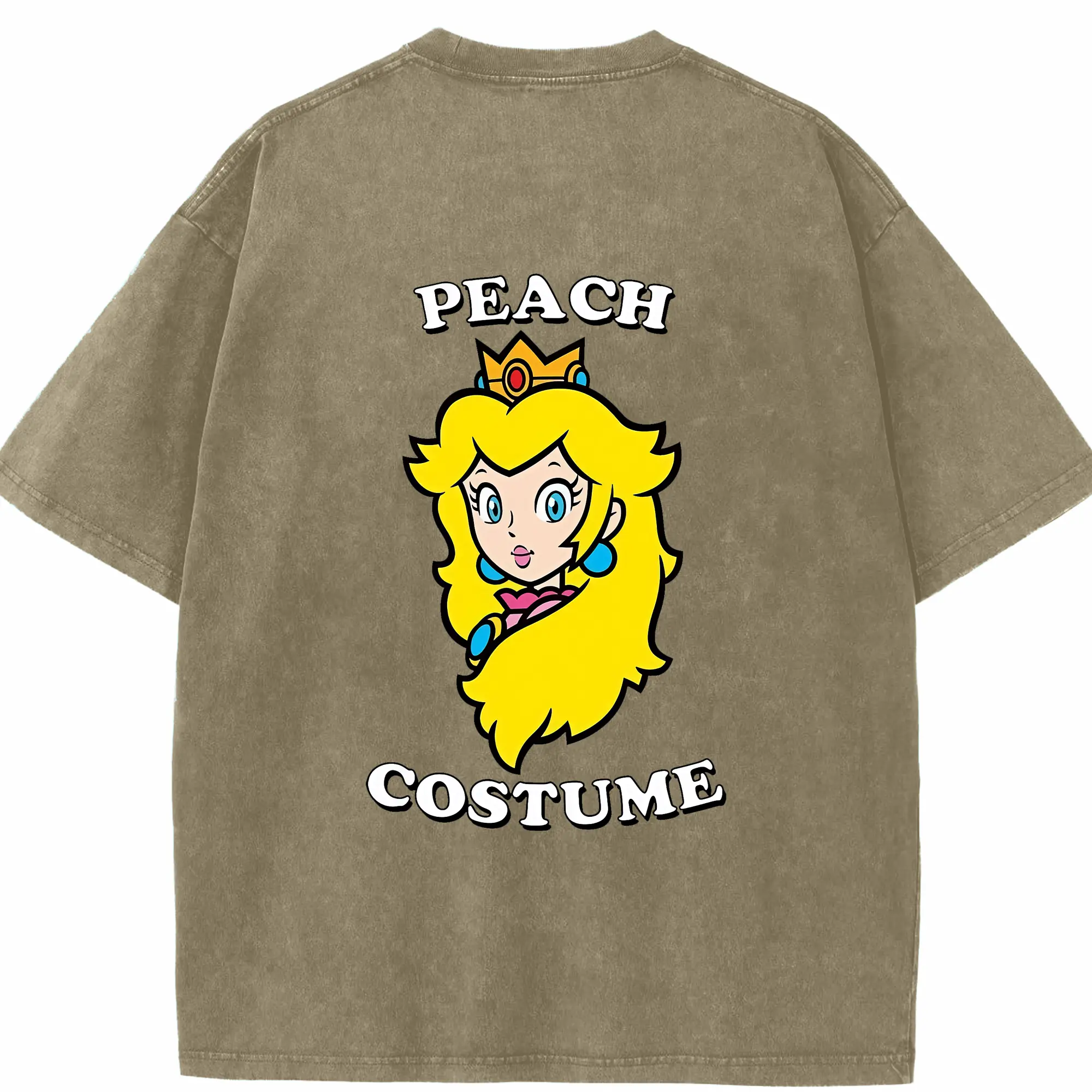 マリオ グッズ ピーチ姫 - 綿100% ヴィンテージ風 半袖Tシャツ ・ フロントプリント ・ 柔らか肌触り ・ 通気性 快適 ・ スポーツ カジュアル 外出用