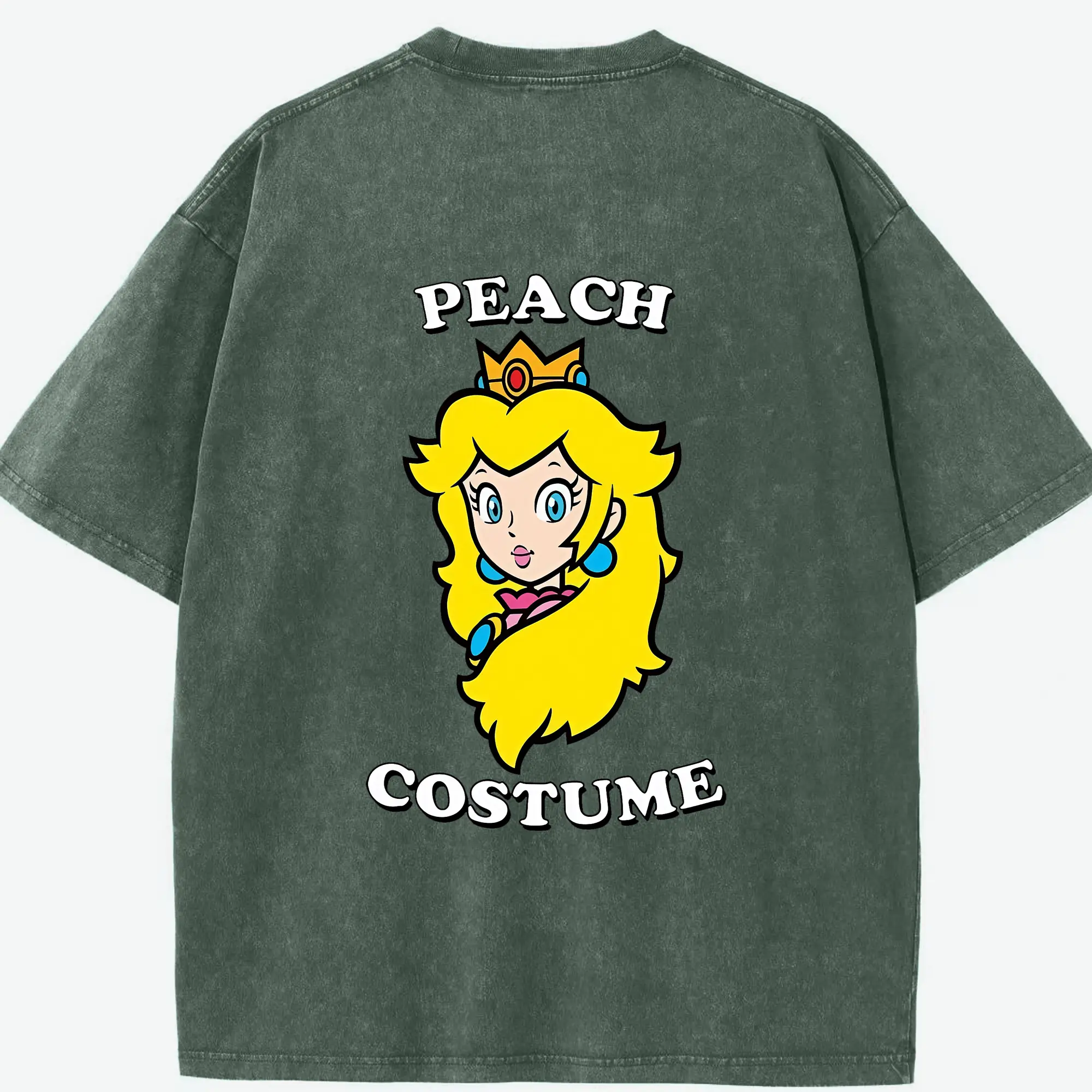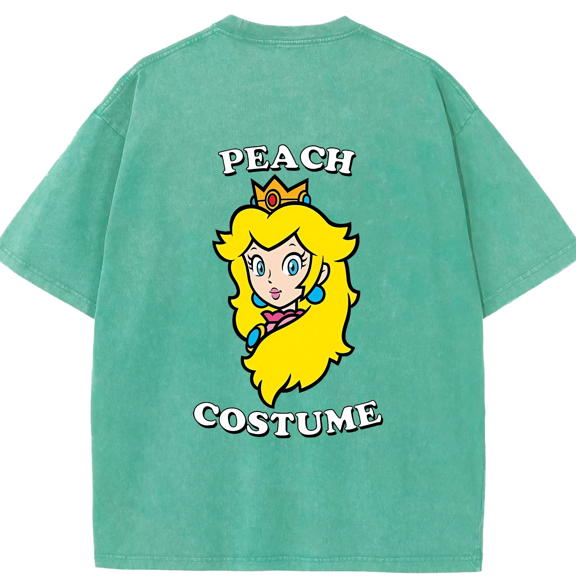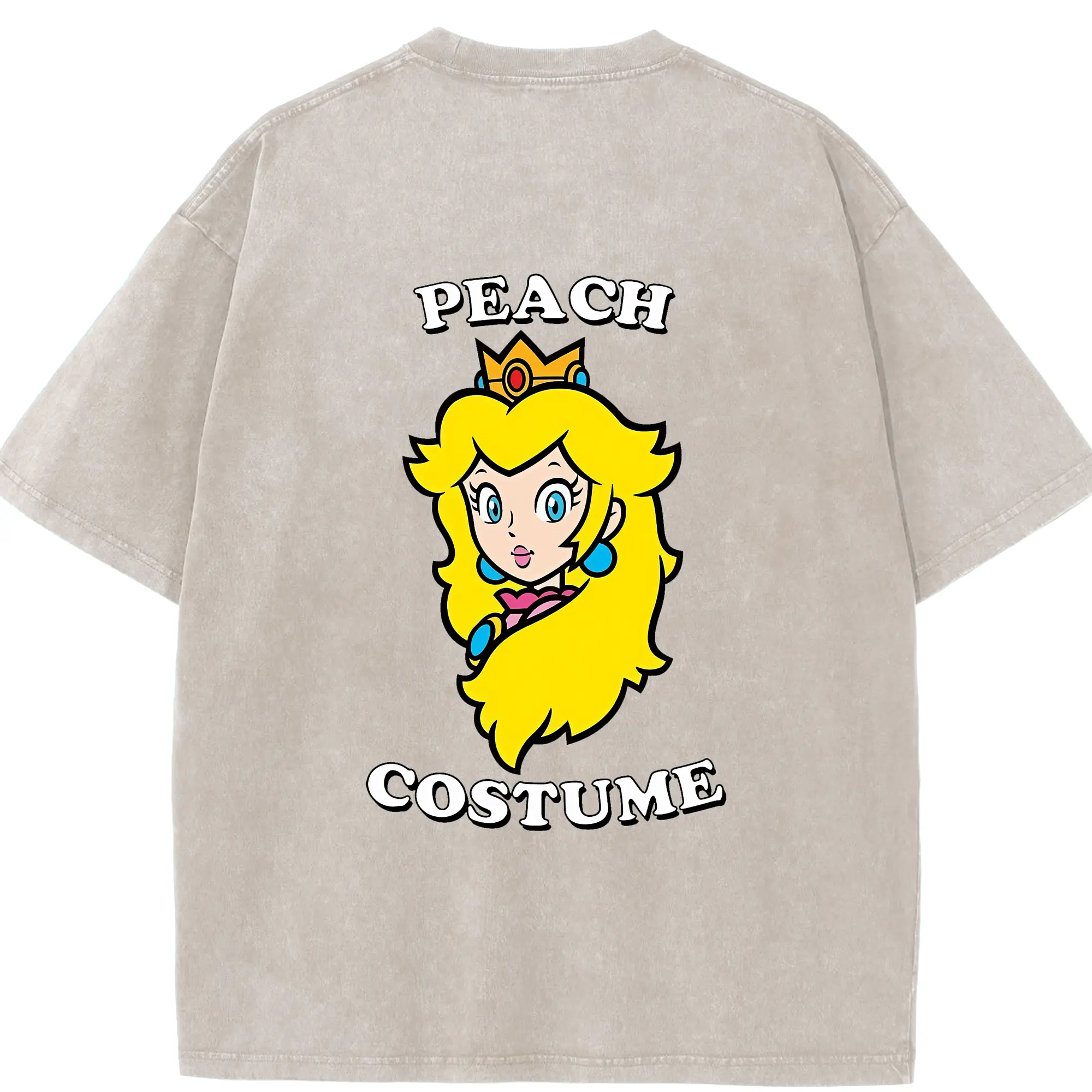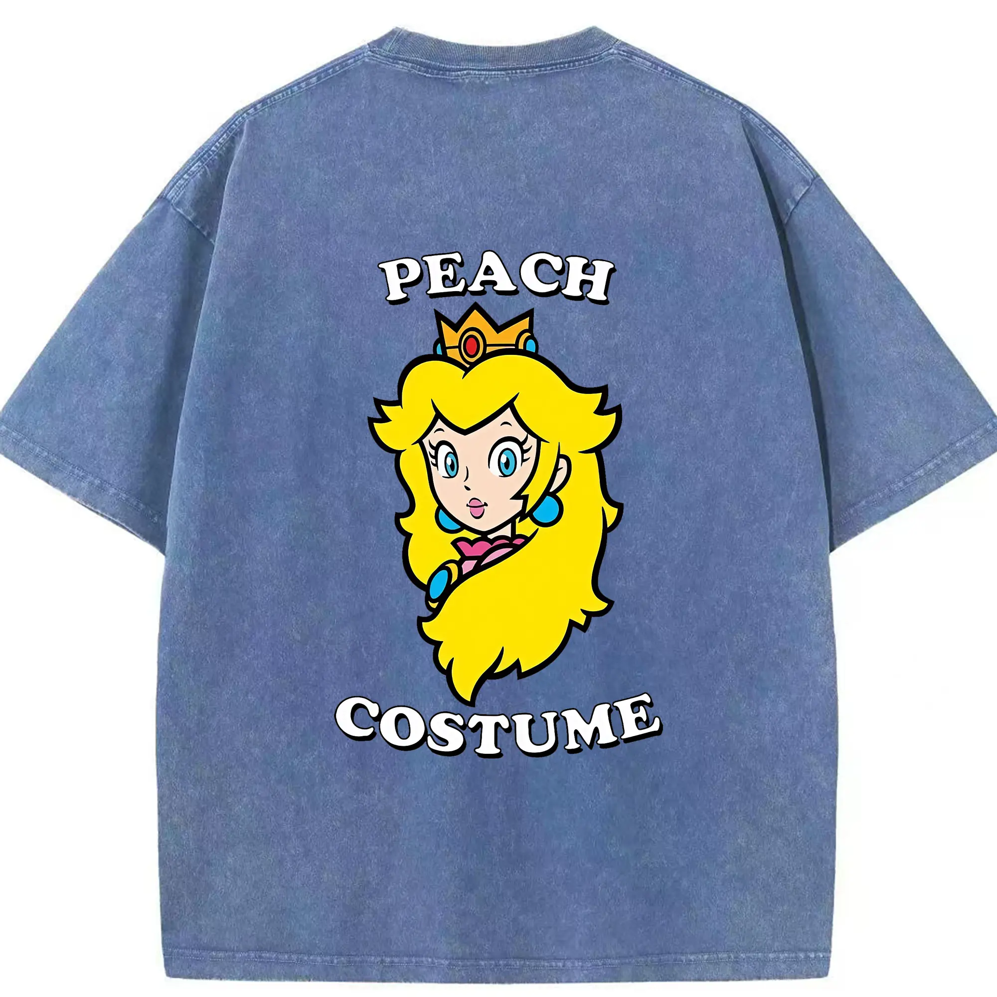 マリオ グッズ ピーチ姫 - 綿100% ヴィンテージ風 半袖Tシャツ ・ フロントプリント ・ 柔らか肌触り ・ 通気性 快適 ・ スポーツ カジュアル 外出用
