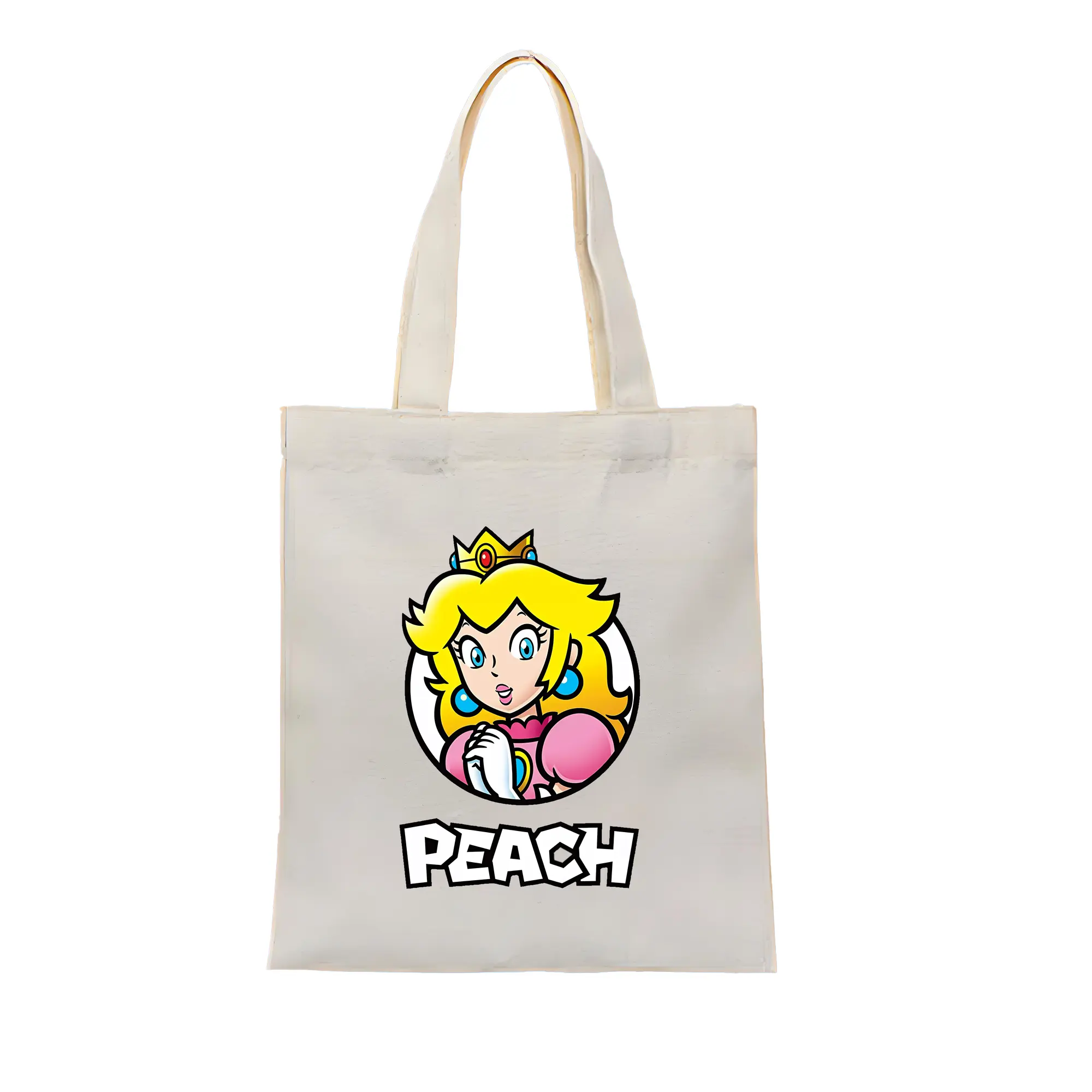 マリオ グッズ ピーチ姫 - 縦型キャンバス手提げバッグ(トートバッグ) ・ キャンバス素材 ・ ショッピング用 ・ 軽量 丈夫 お手入れ簡単