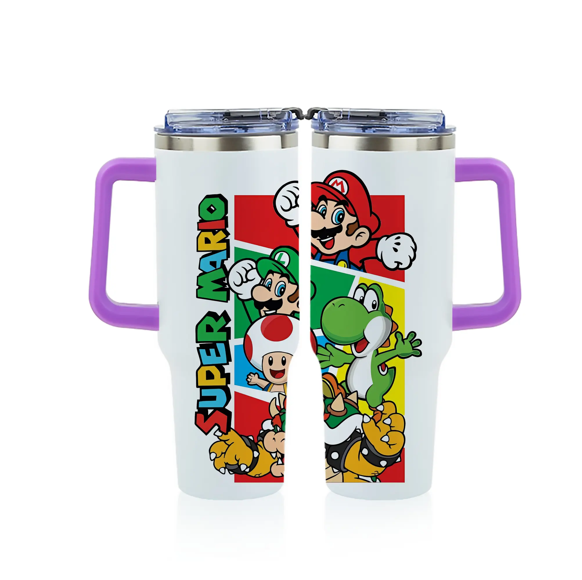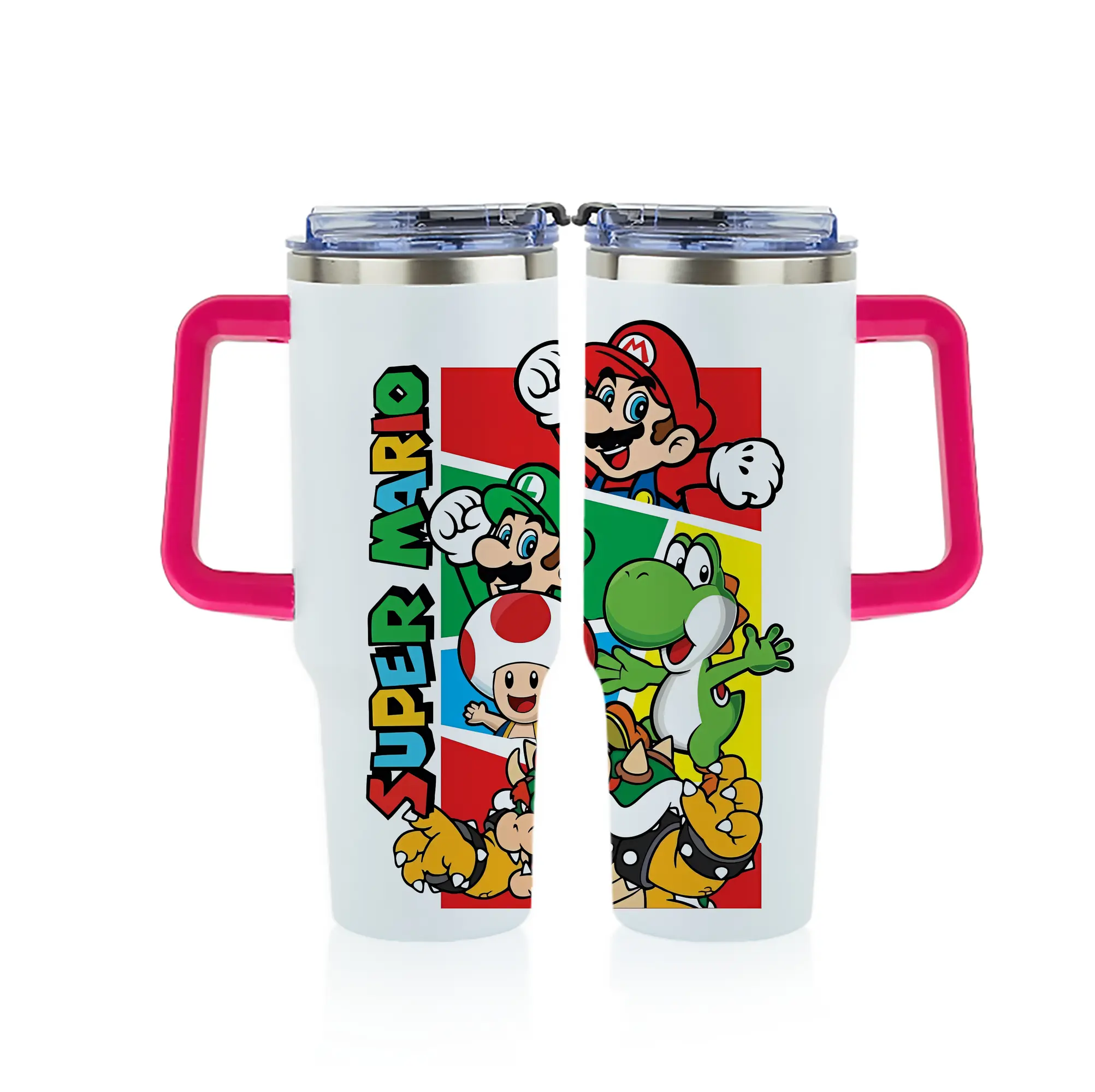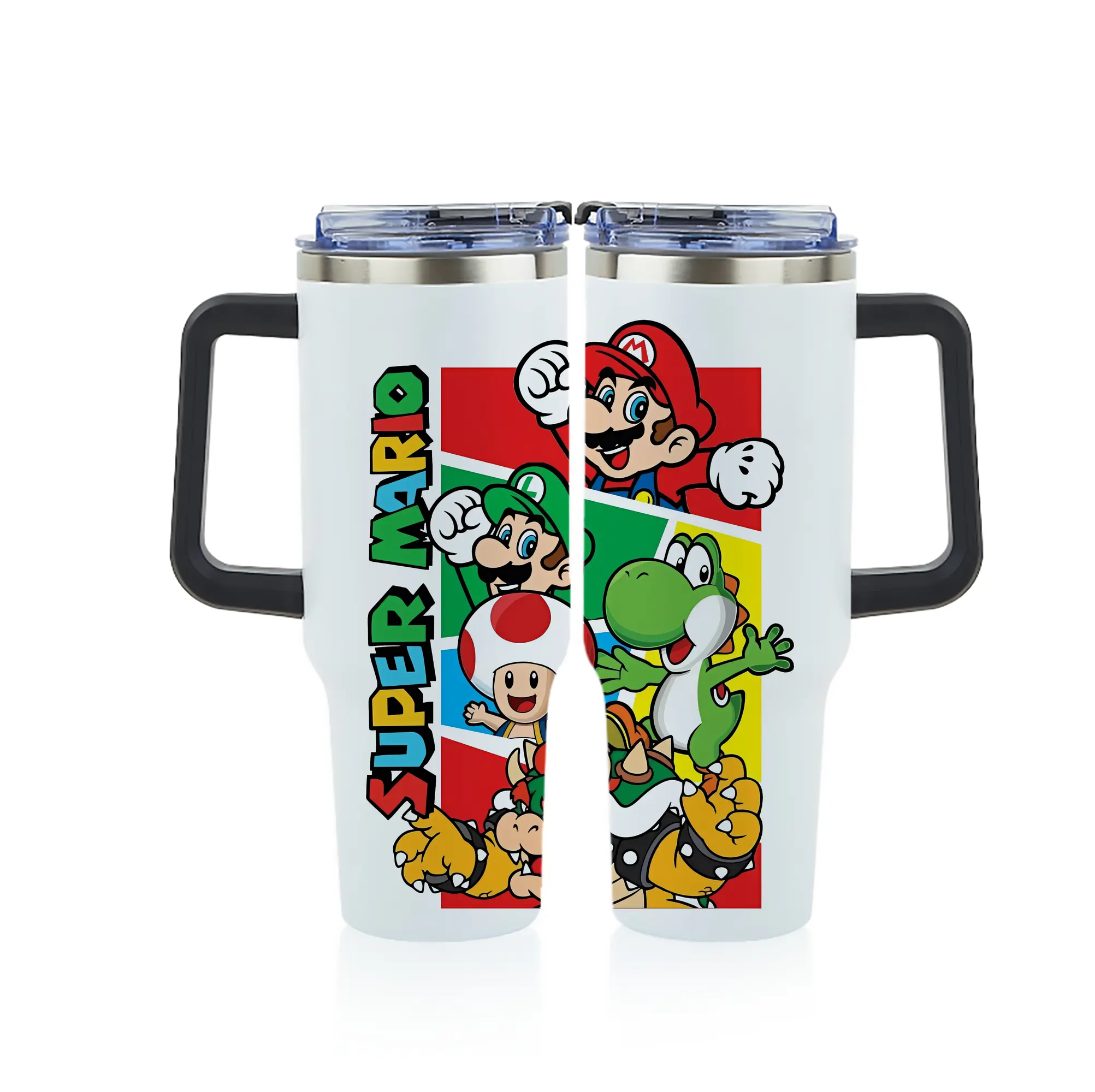 マリオ グッズ マリオ - 1200mL フルプリント車用タンブラー ・ 304ステンレス 内側 ・ 201ステンレス 外側 ・ 保温 保冷 ・ 通勤 ドライブ アウトドア用