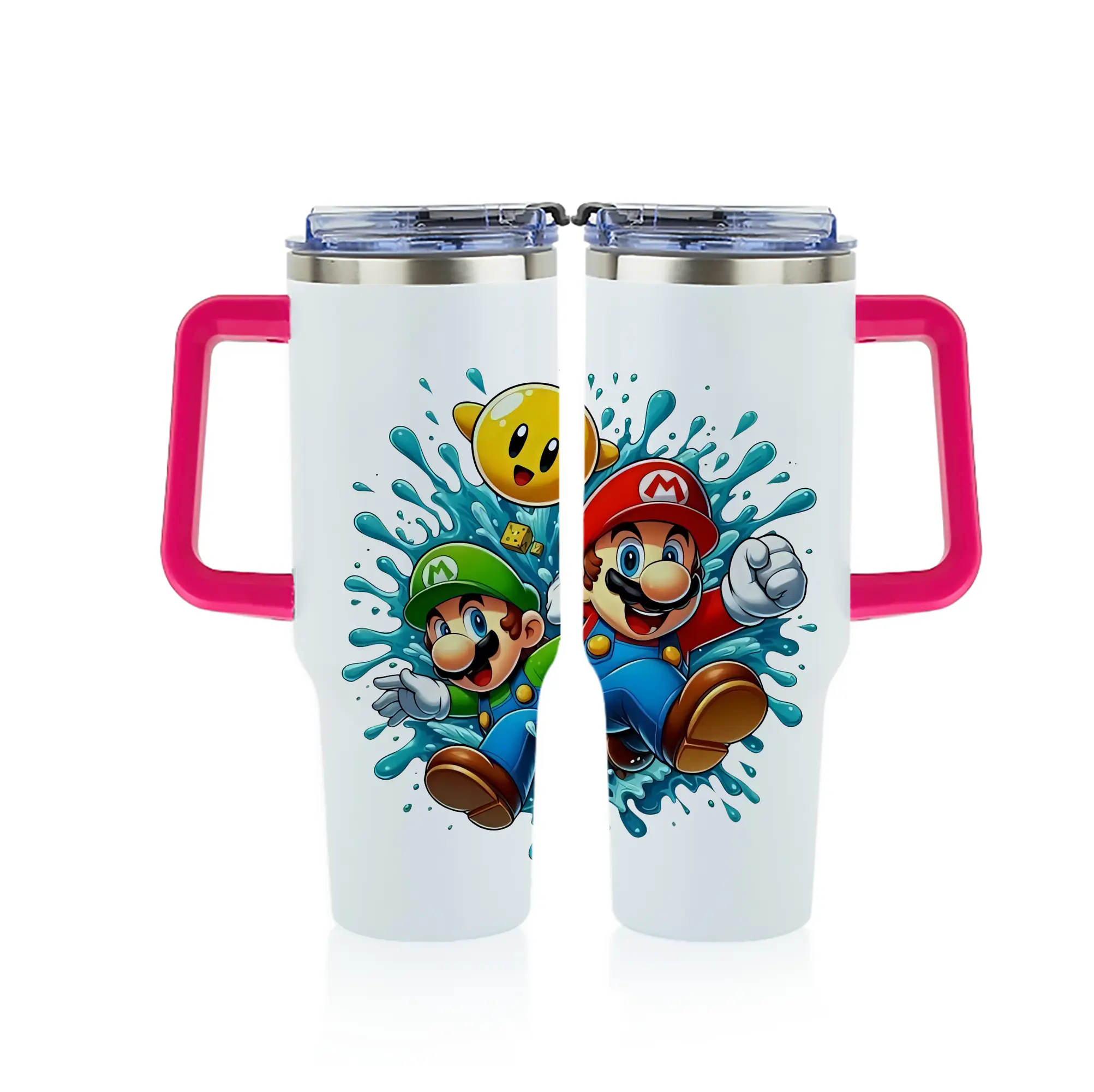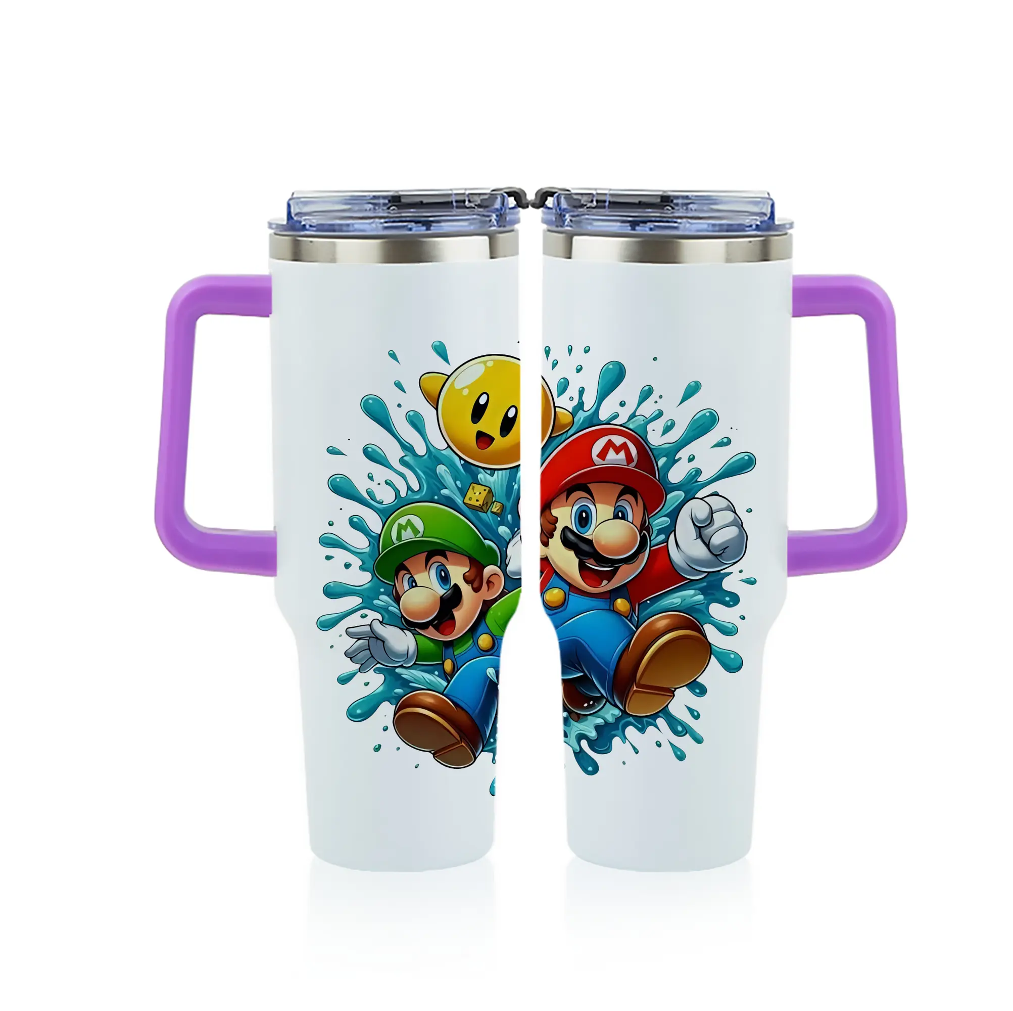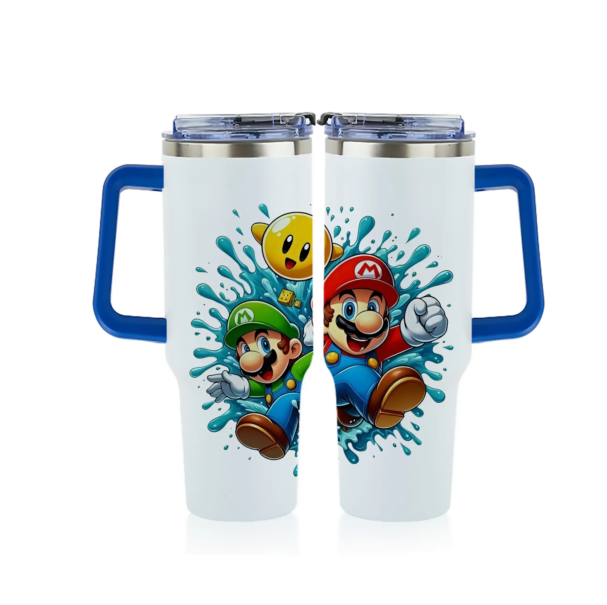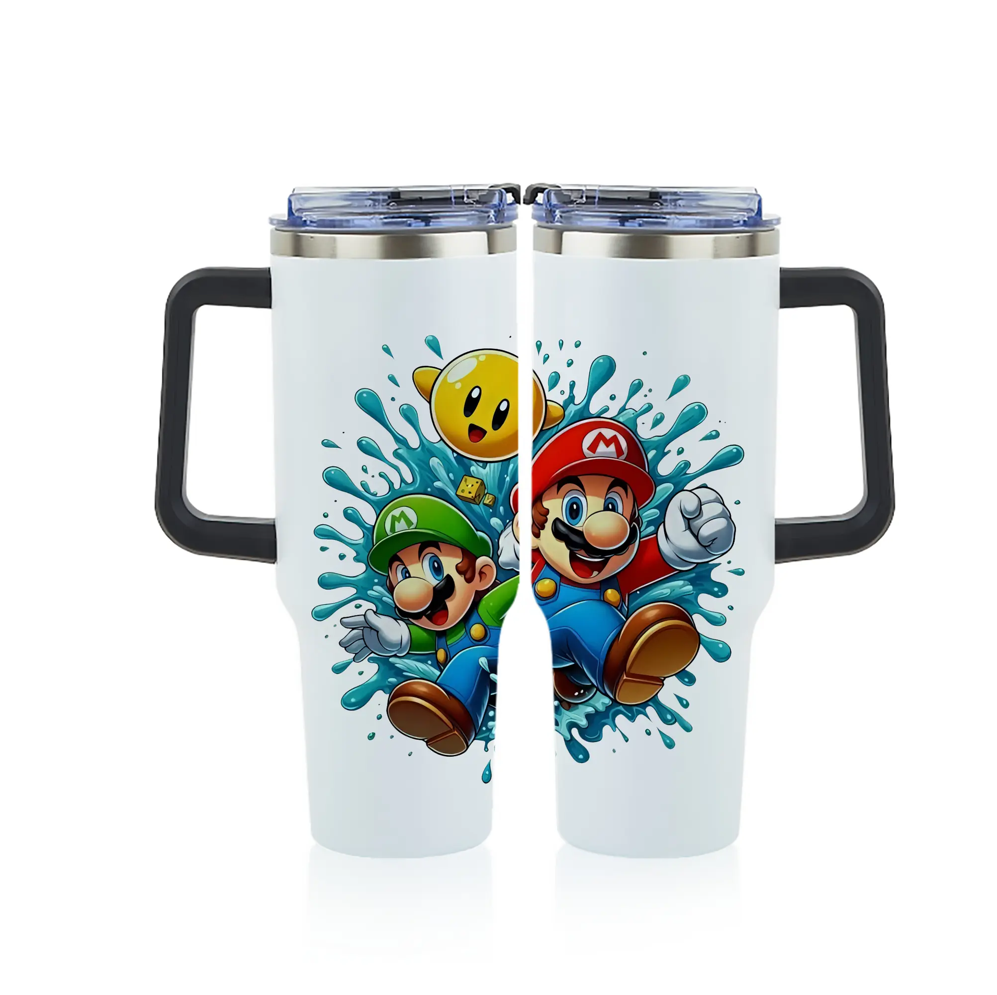 マリオ グッズ マリオ - 1200mL フルプリント車用タンブラー ・ 304ステンレス 内側 ・ 201ステンレス 外側 ・ 保温 保冷 ・ 通勤 ドライブ アウトドア用