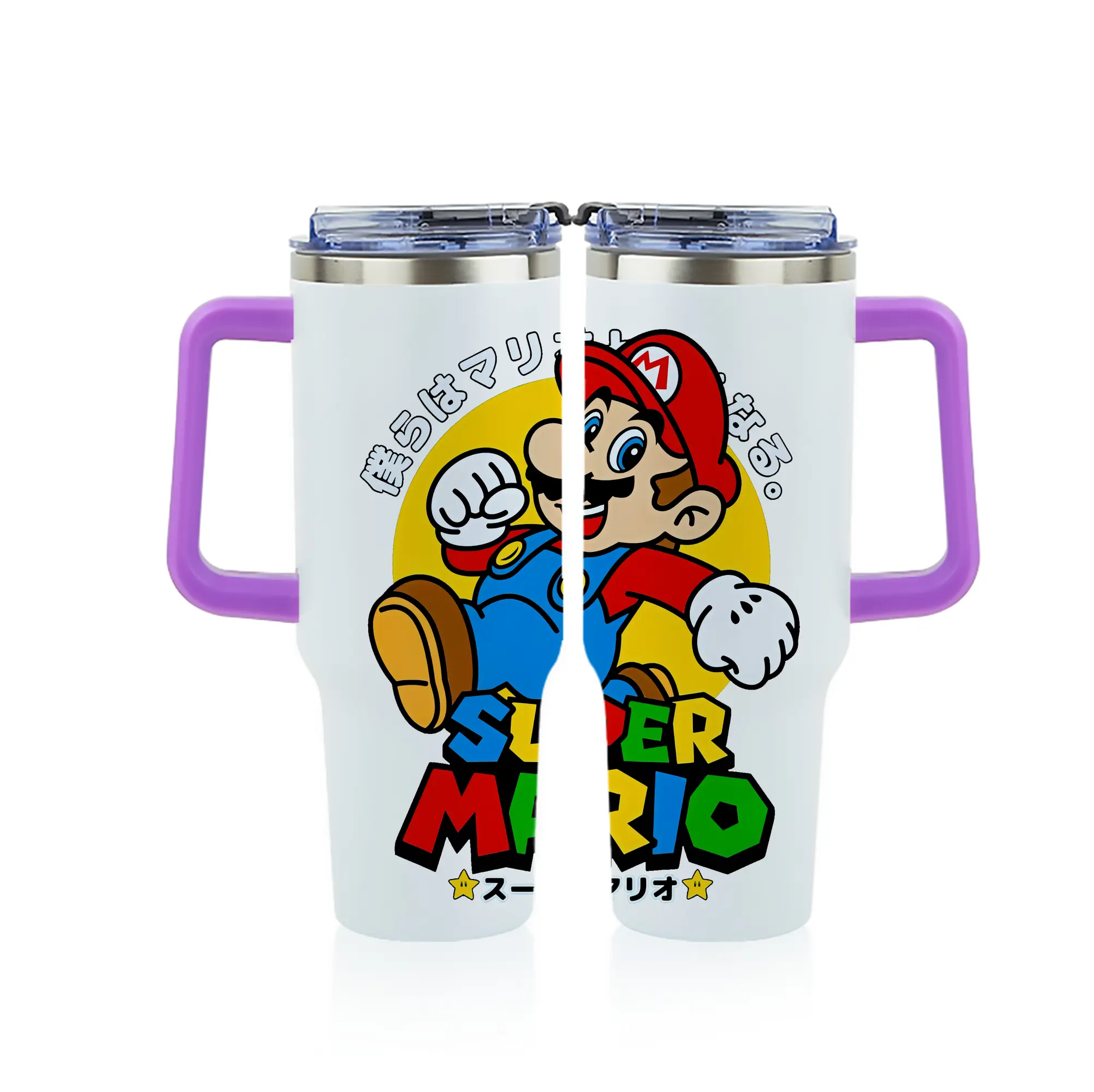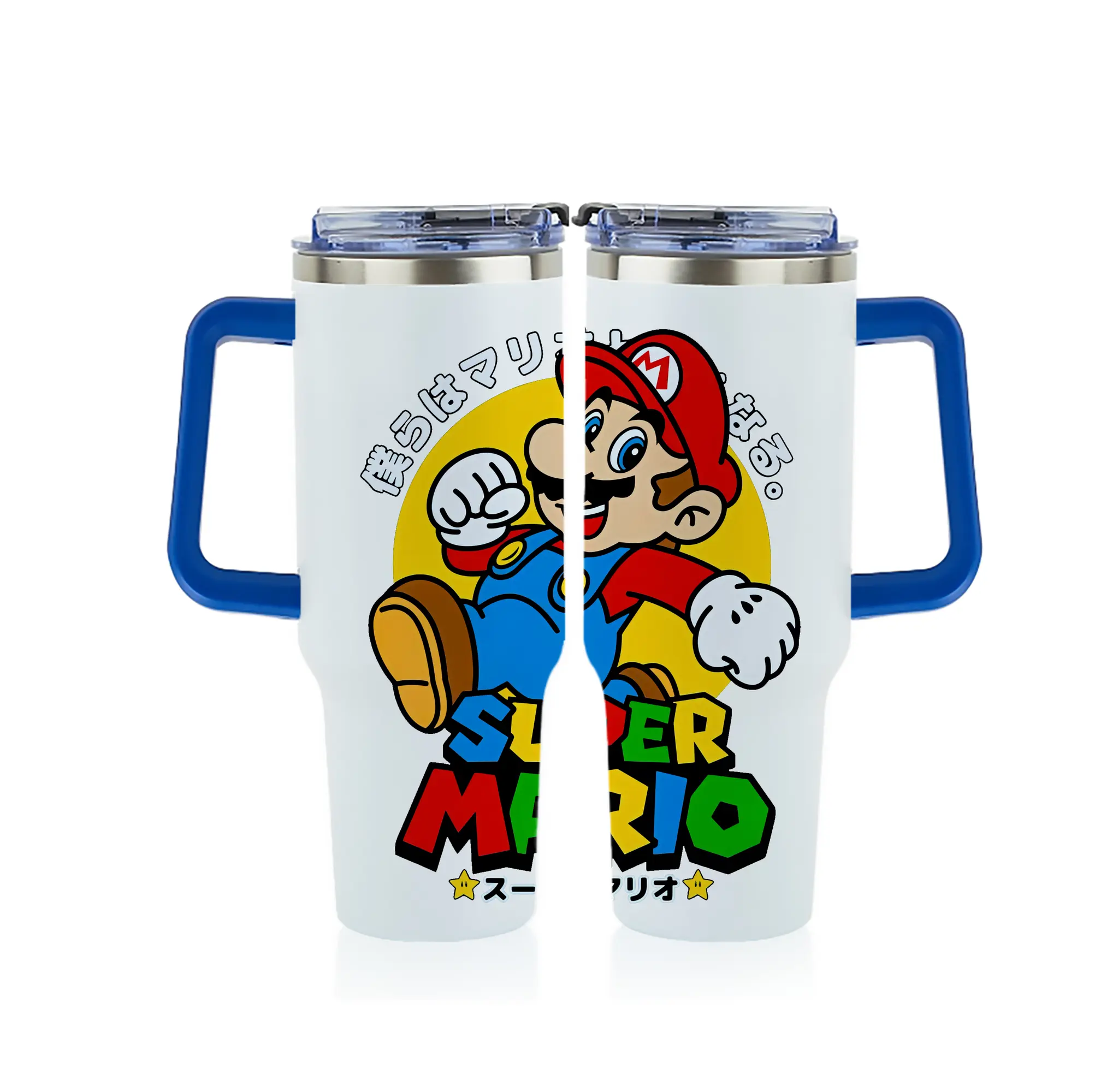 マリオ グッズ マリオ - 1200mL フルプリント車用タンブラー ・ 304ステンレス 内側 ・ 201ステンレス 外側 ・ 保温 保冷 ・ 通勤 ドライブ アウトドア用