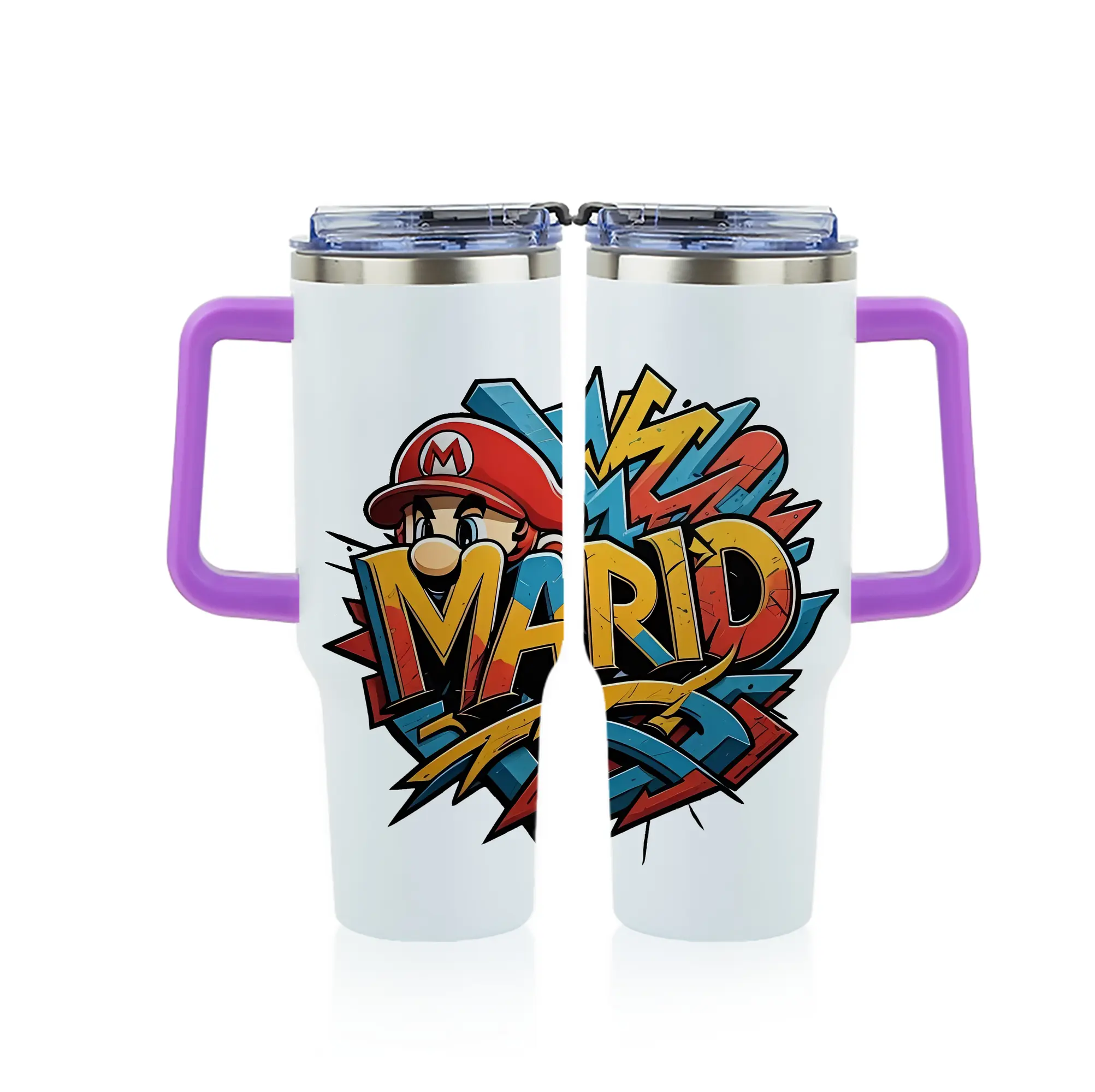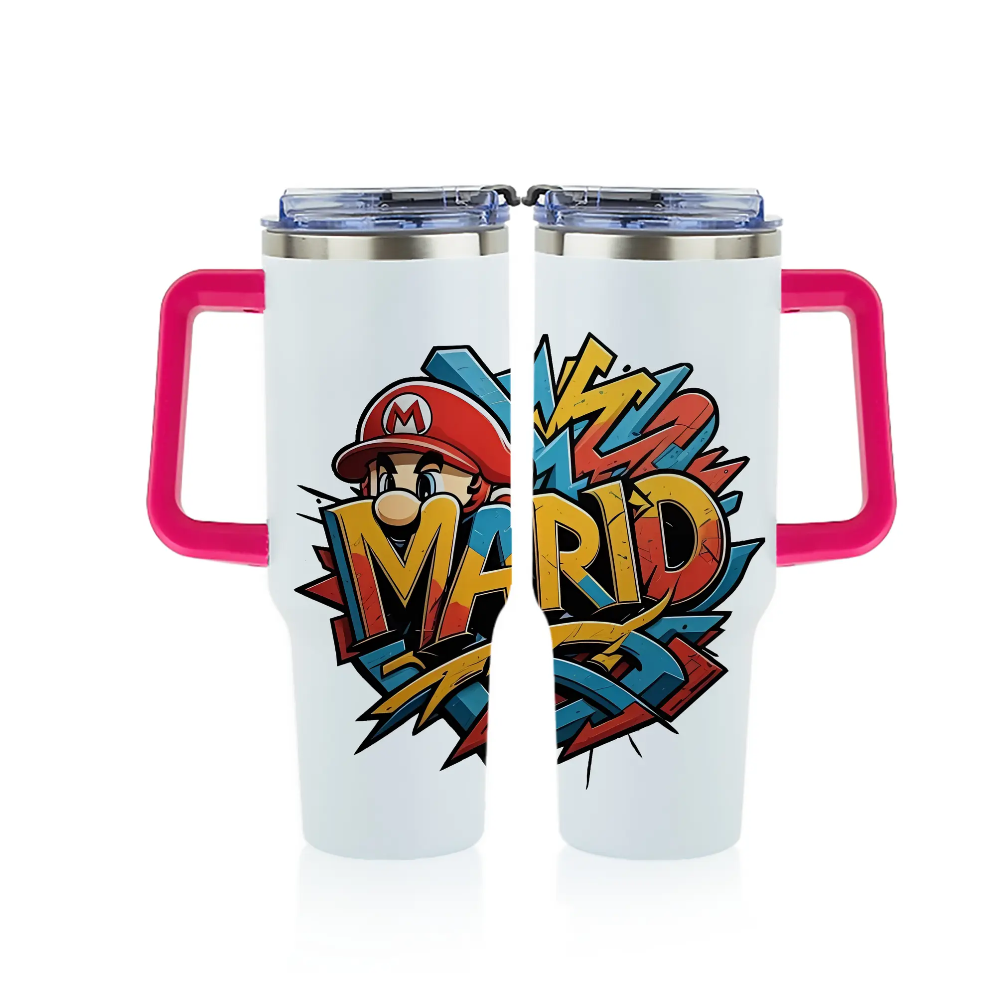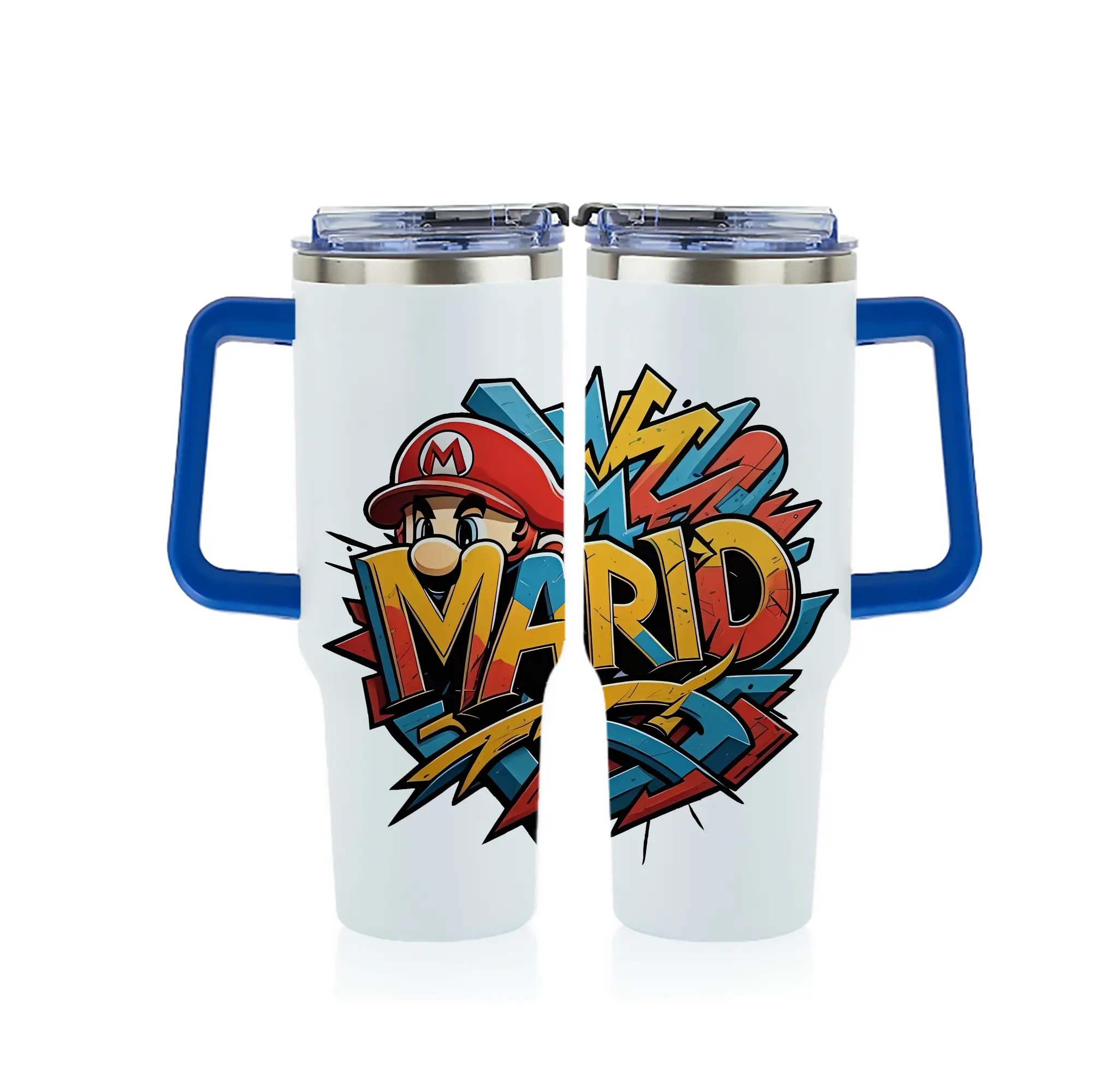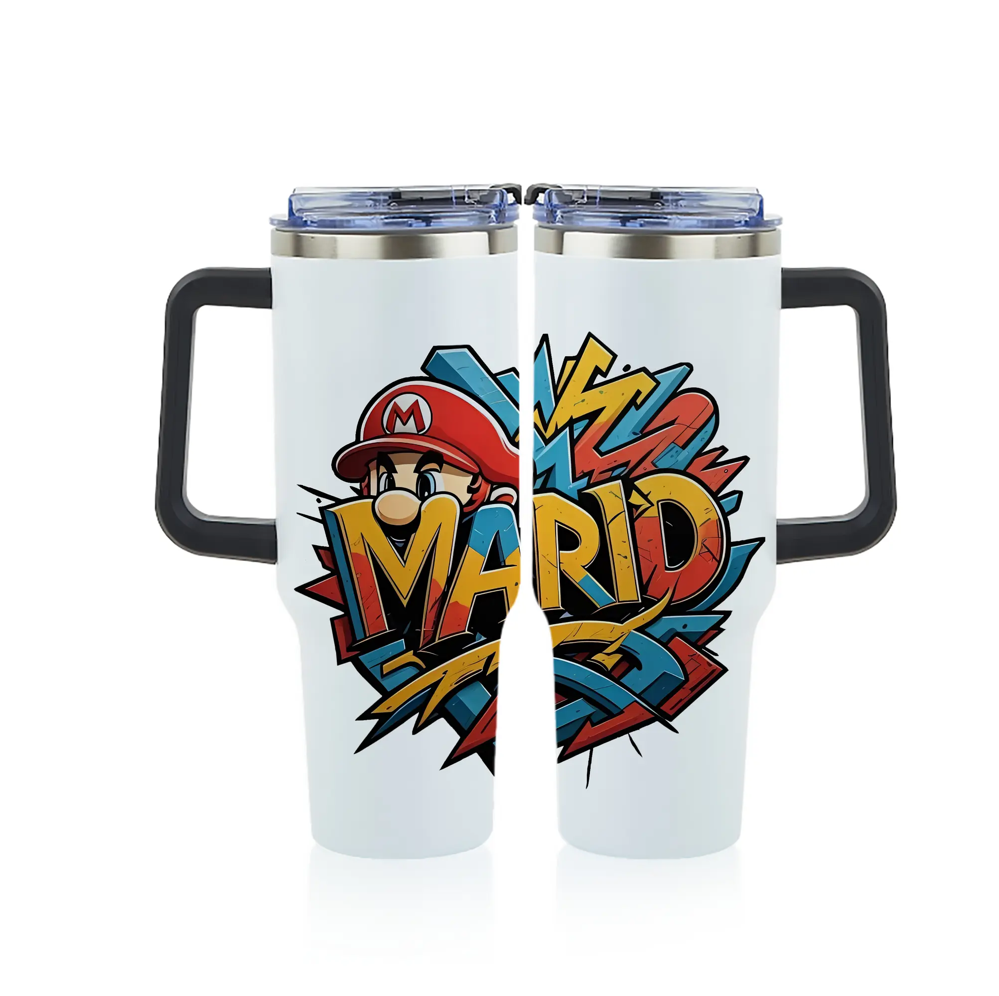 マリオ グッズ マリオ - 1200mL フルプリント車用タンブラー ・ 304ステンレス 内側 ・ 201ステンレス 外側 ・ 保温 保冷 ・ 通勤 ドライブ アウトドア用
