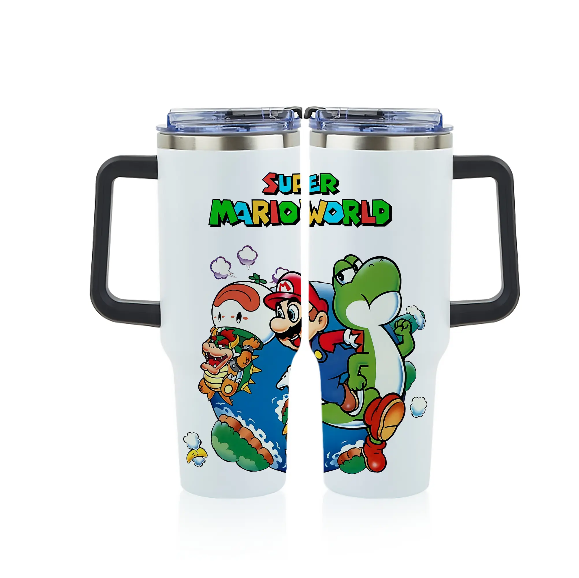 マリオ グッズ マリオ - 1200mL フルプリント車用タンブラー ・ 304ステンレス 内側 ・ 201ステンレス 外側 ・ 保温 保冷 ・ 通勤 ドライブ アウトドア用