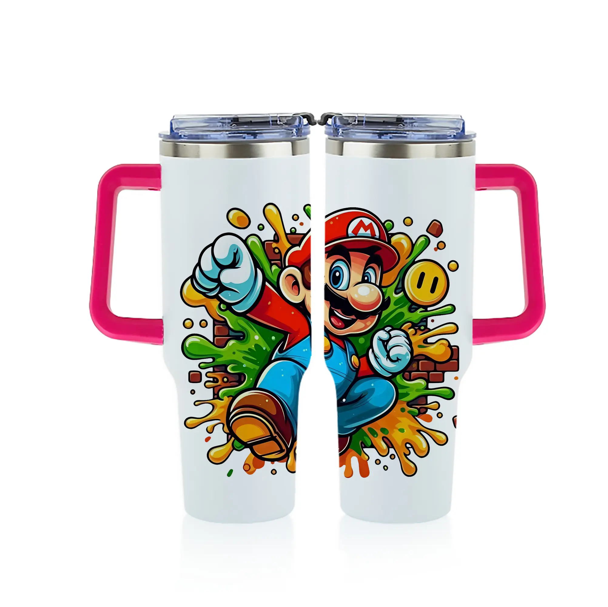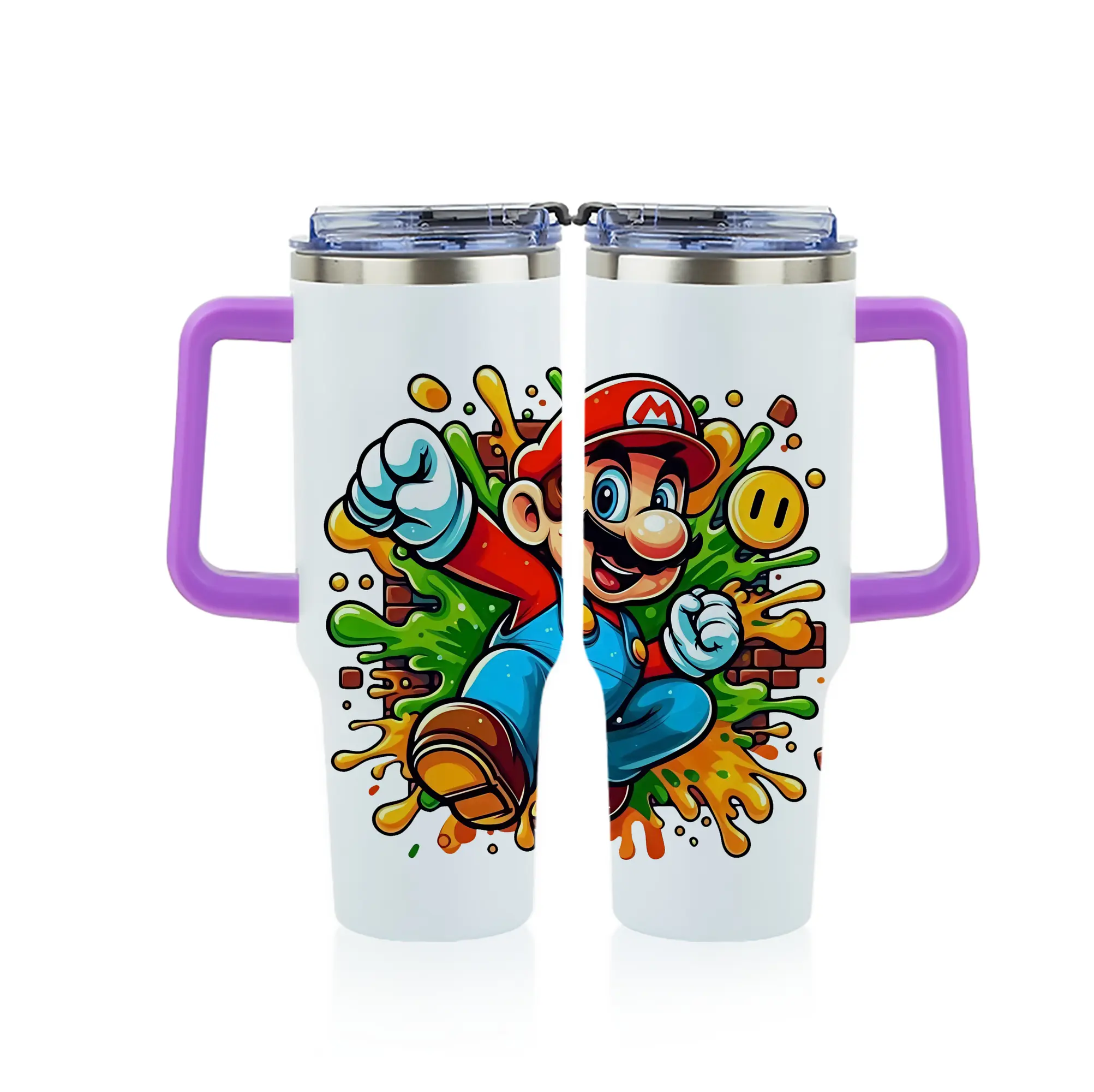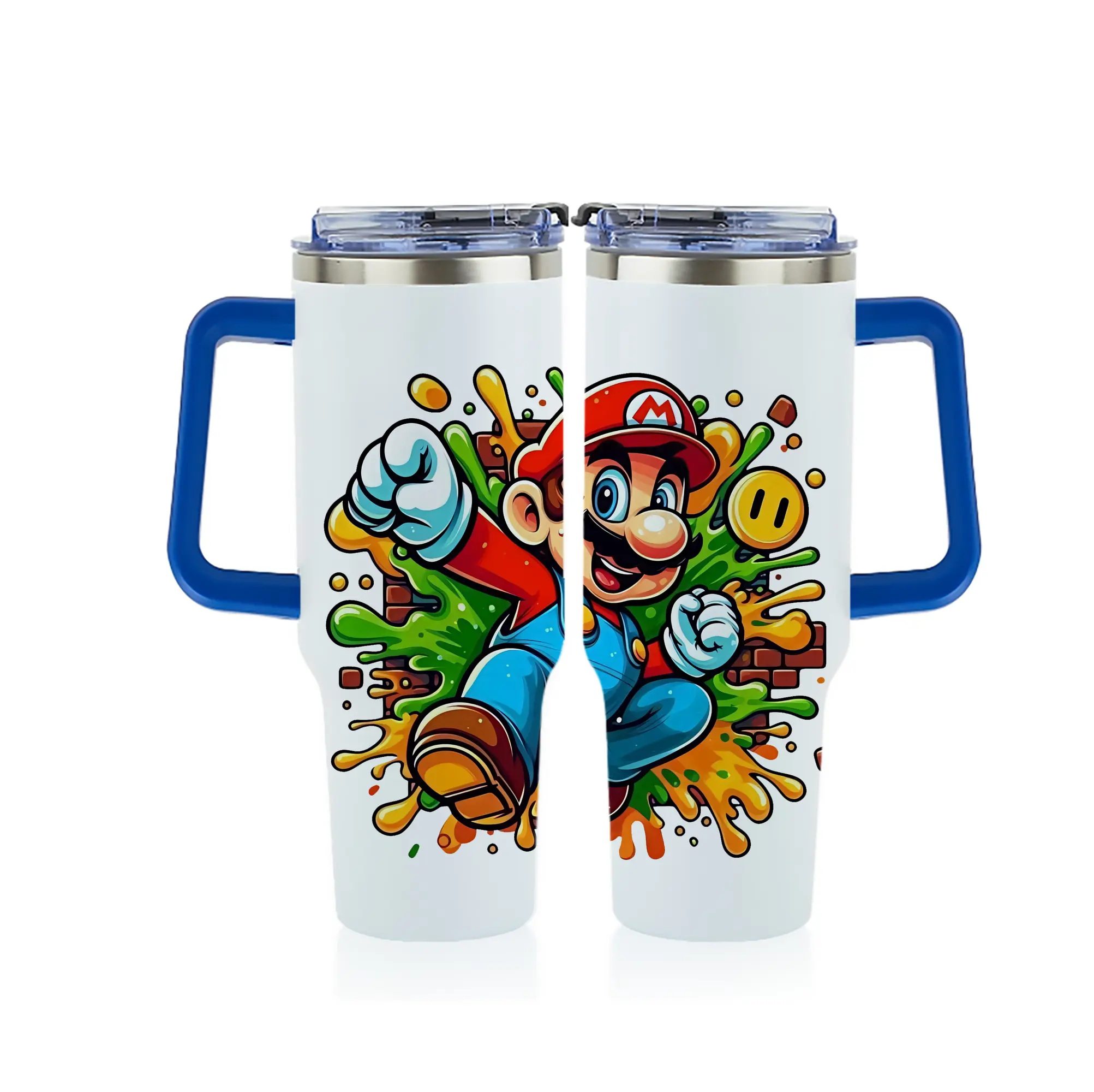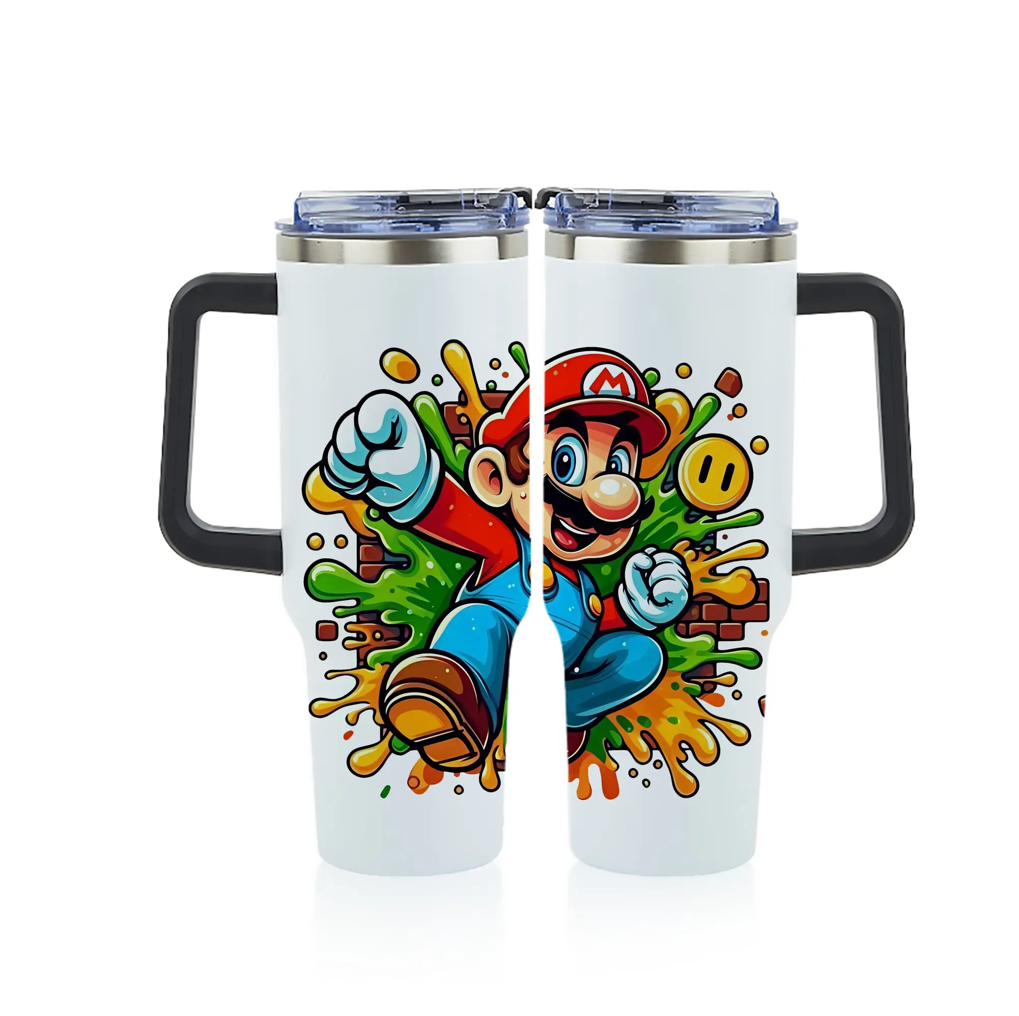 マリオ グッズ マリオ - 1200mL フルプリント車用タンブラー ・ 304ステンレス 内側 ・ 201ステンレス 外側 ・ 保温 保冷 ・ 通勤 ドライブ アウトドア用