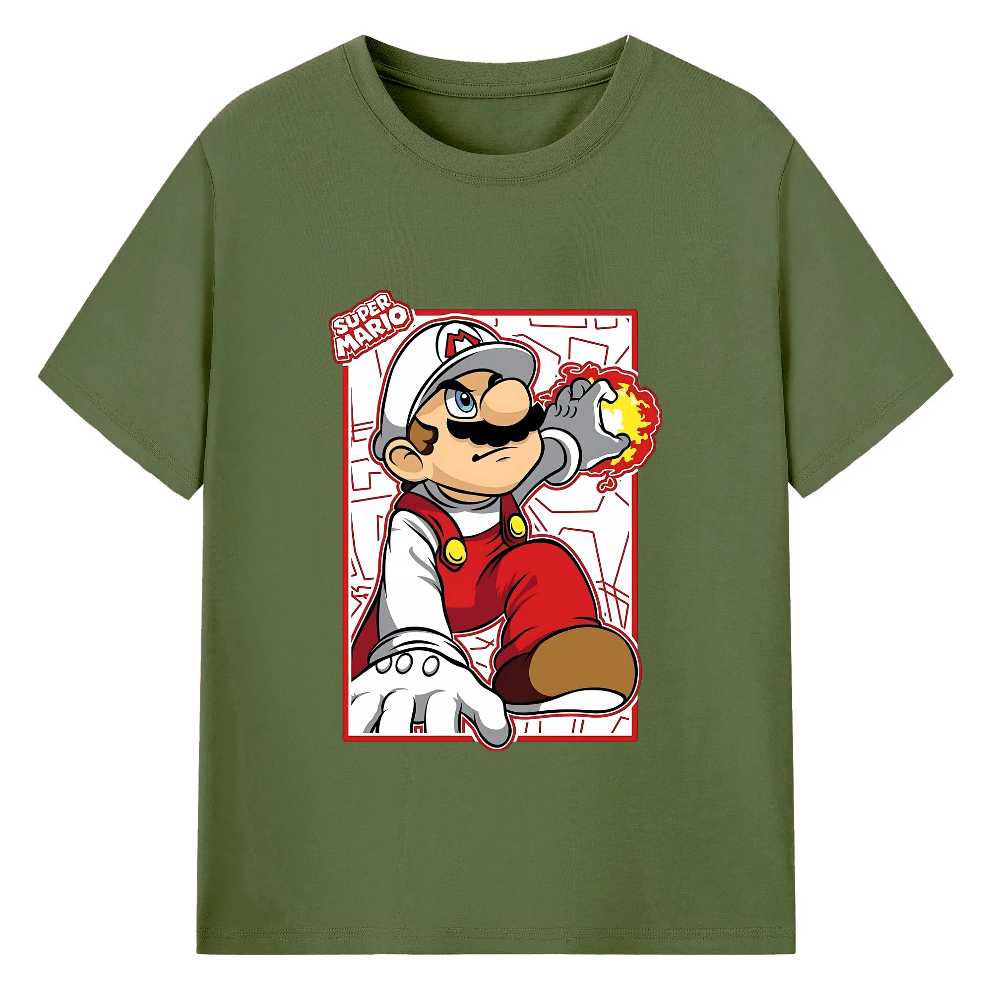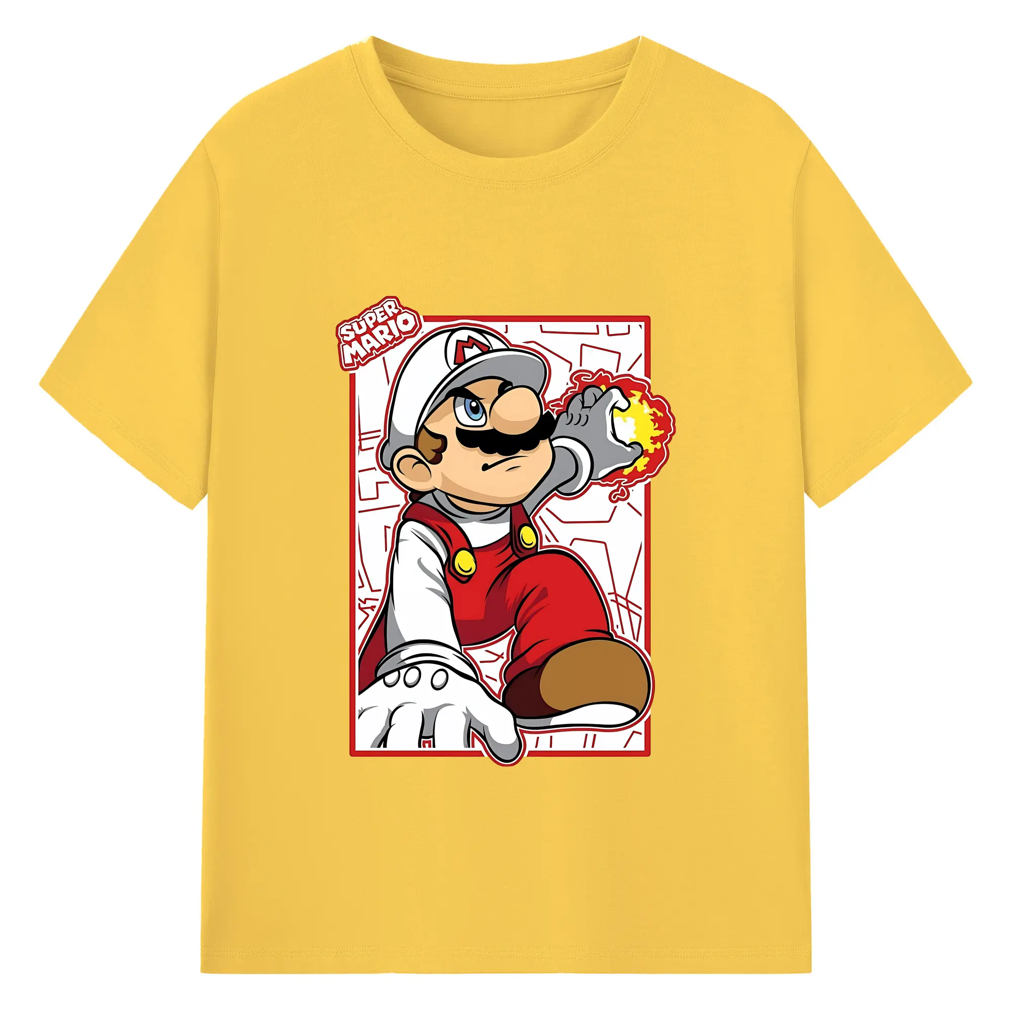 マリオ グッズ マリオ - 綿100% 半袖Tシャツ ・ バックプリント ・ 快適 通気性 ・ 日常使い 散歩 スポーツ用