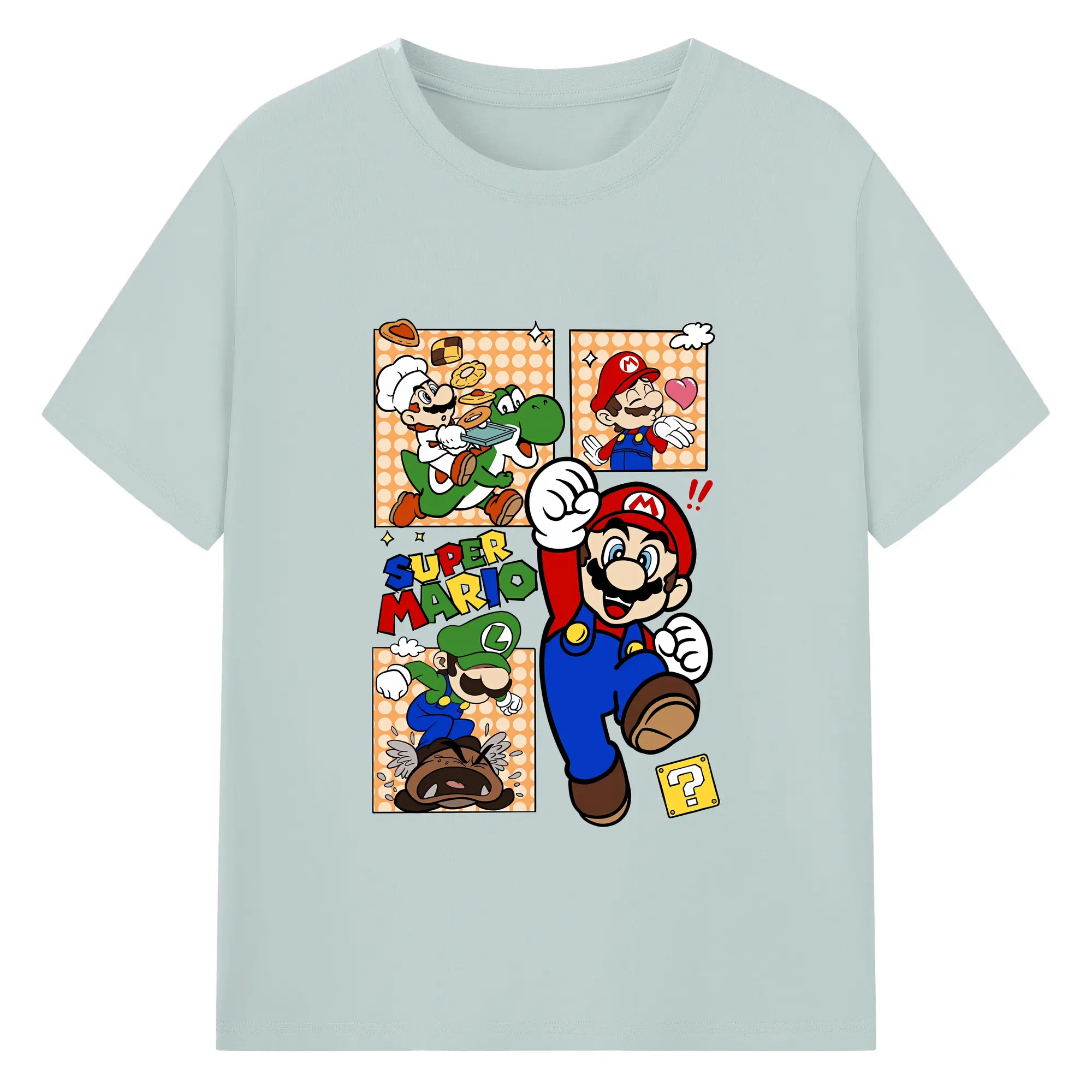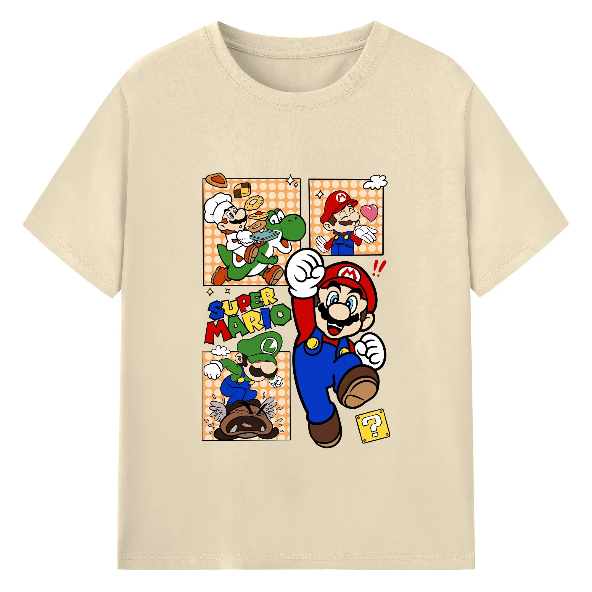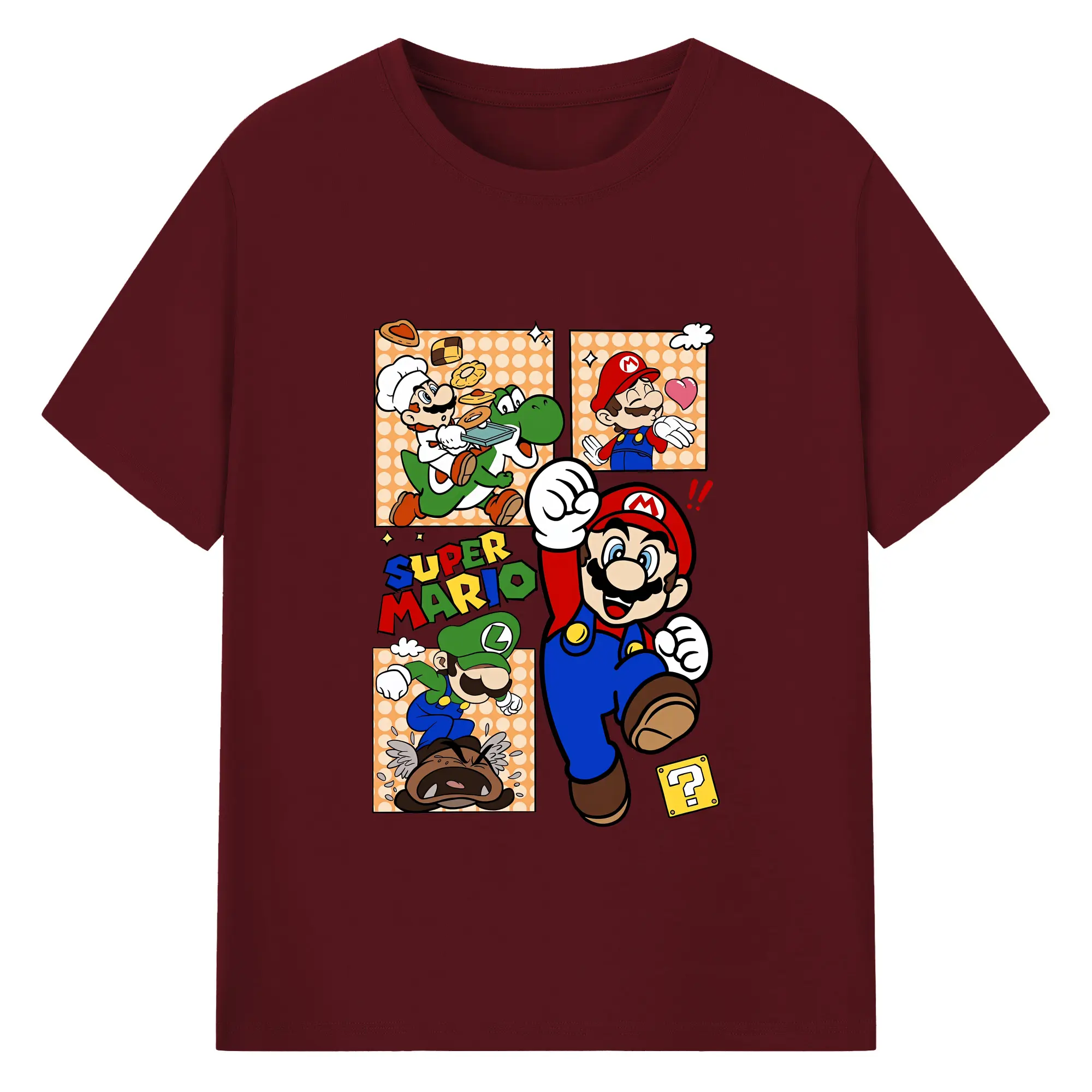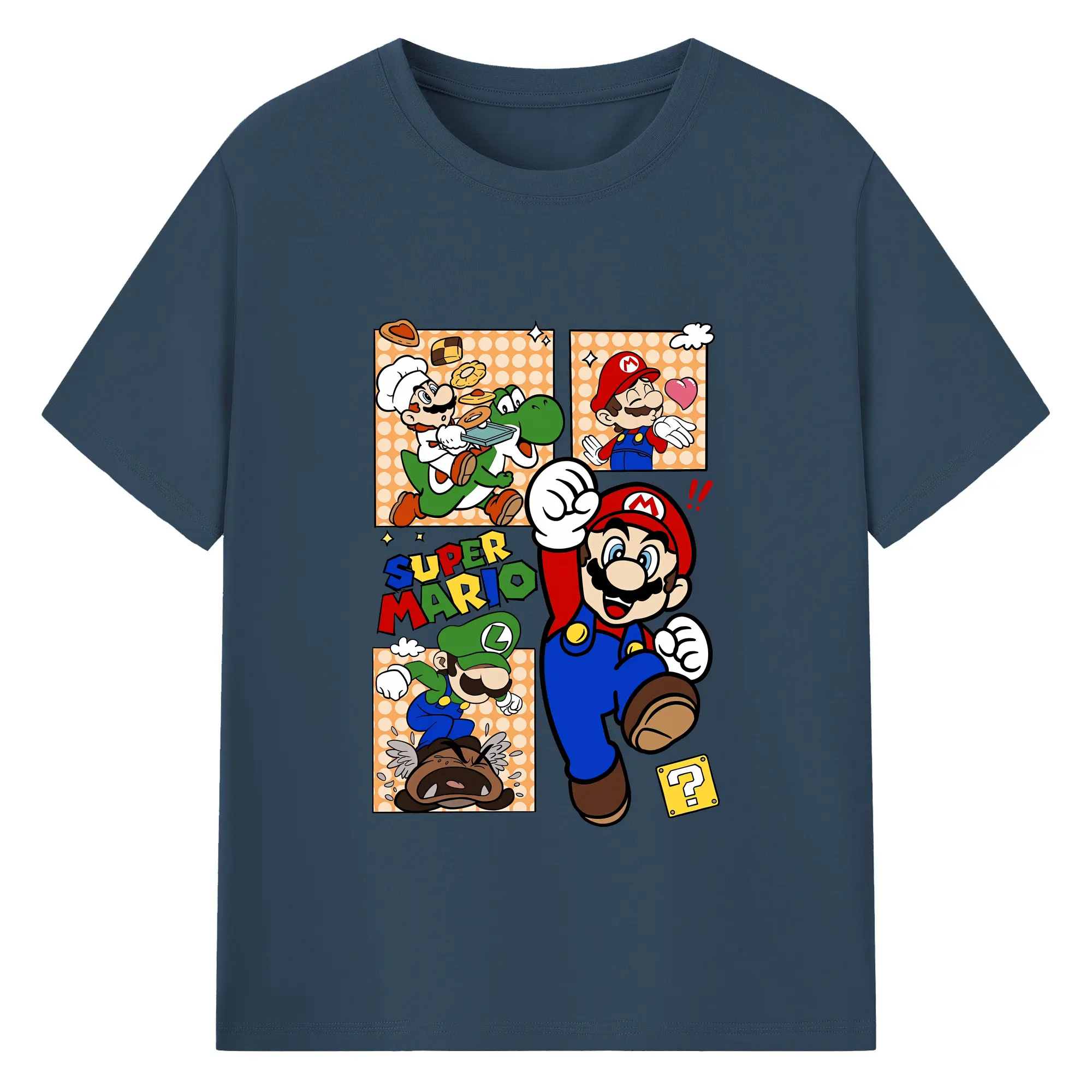 マリオ グッズ マリオ - 綿100% 半袖Tシャツ ・ バックプリント ・ 快適 通気性 ・ 日常使い 散歩 スポーツ用