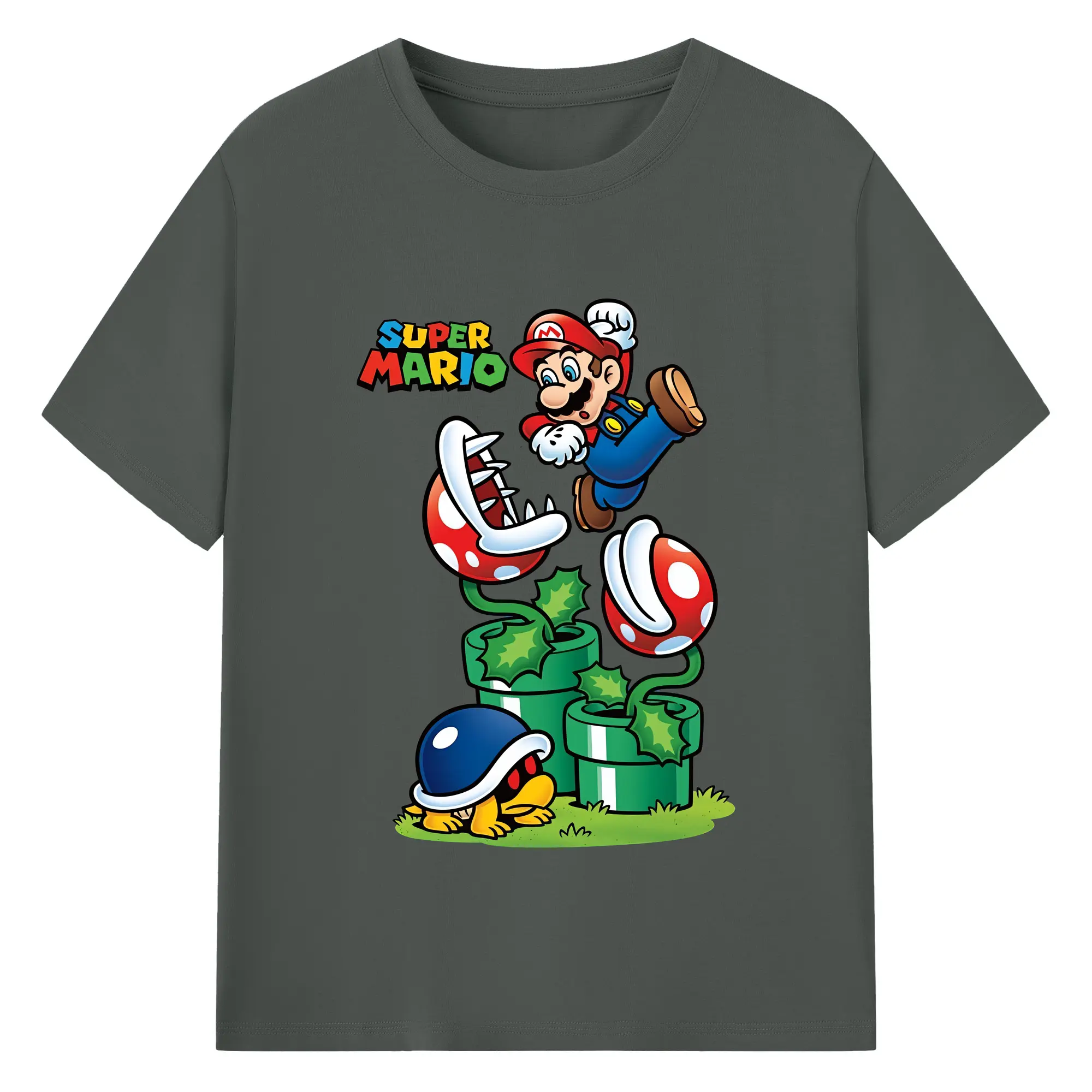 マリオ グッズ マリオ - 綿100% 半袖Tシャツ ・ バックプリント ・ 快適 通気性 ・ 日常使い 散歩 スポーツ用