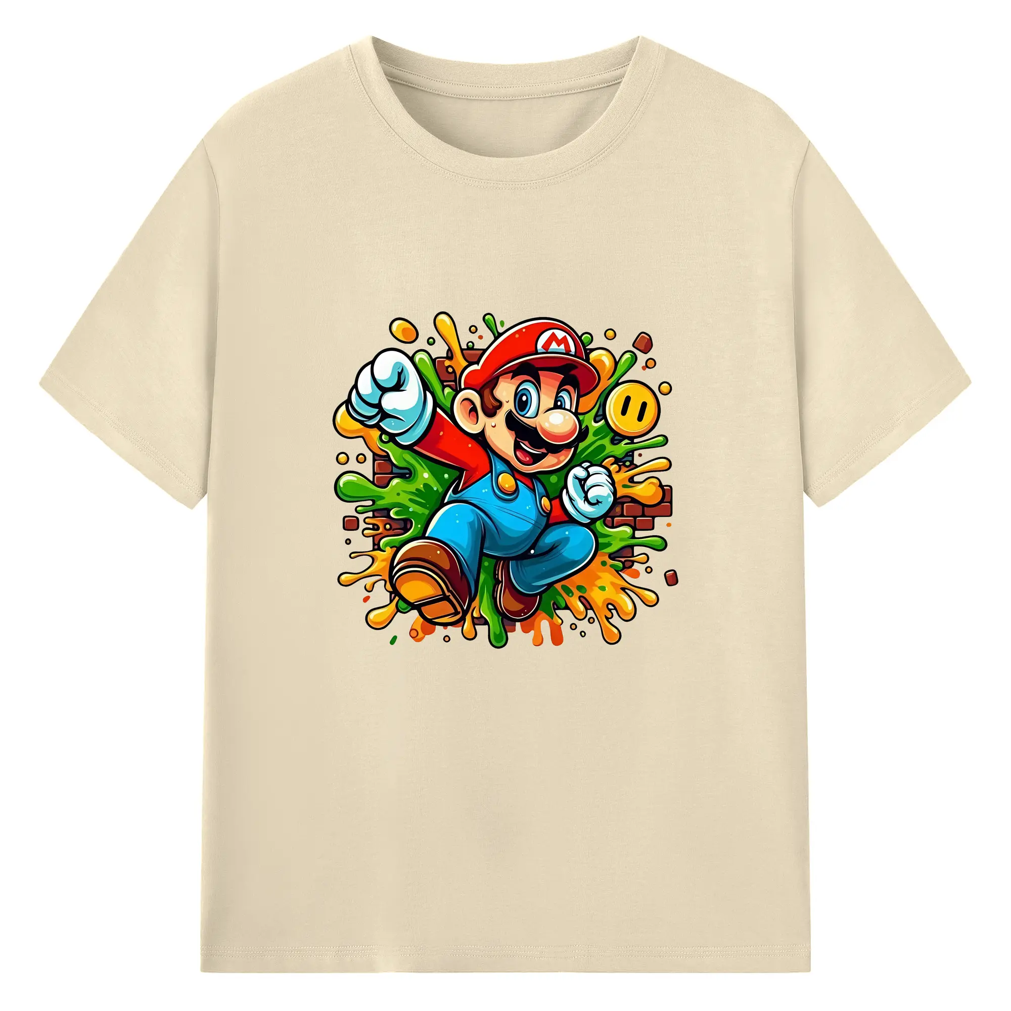 マリオ グッズ マリオ - 綿100% ヴィンテージ風 半袖Tシャツ ・ フロントプリント ・ 柔らか肌触り ・ 通気性 快適 ・ スポーツ カジュアル 外出用
