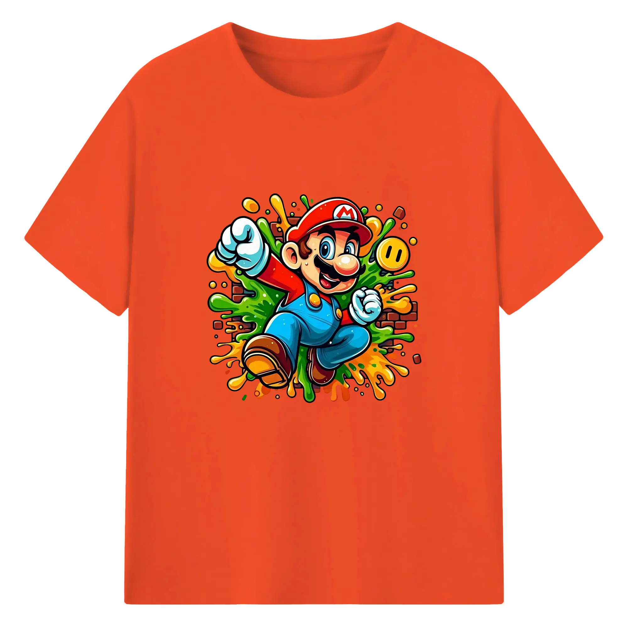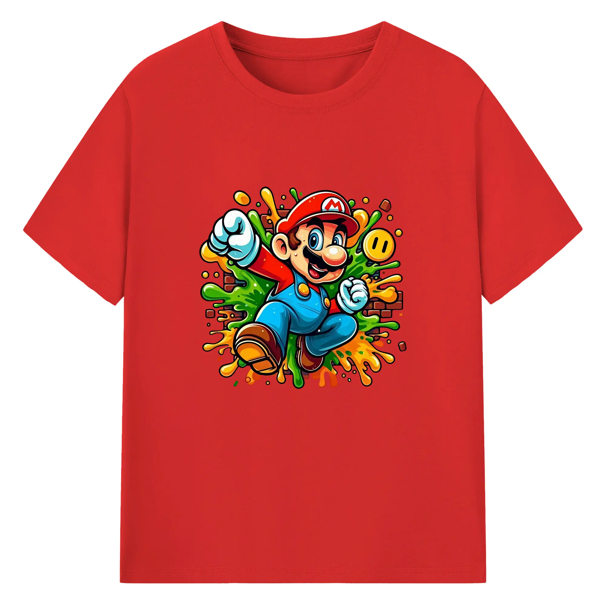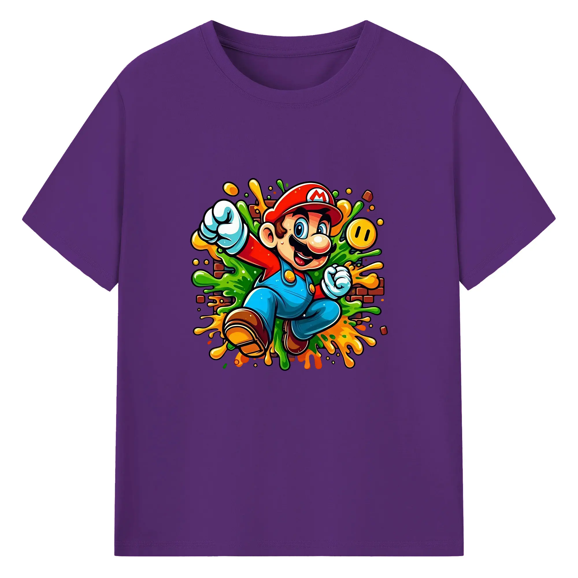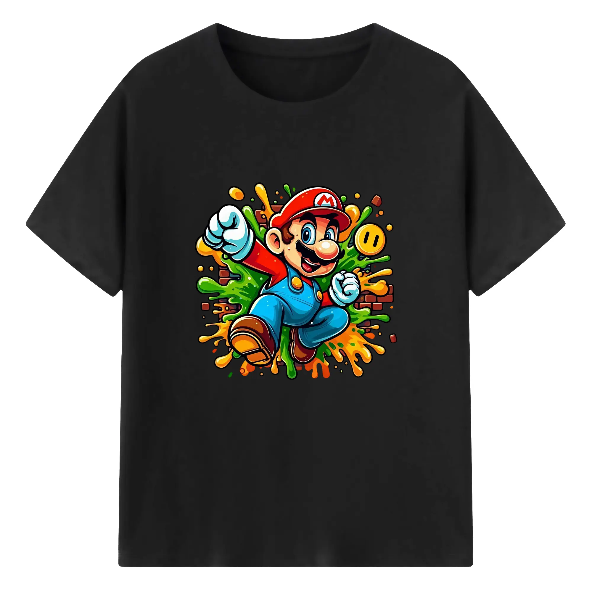 マリオ グッズ マリオ - 綿100% 半袖Tシャツ ・ バックプリント ・ 快適 通気性 ・ 日常使い 散歩 スポーツ用